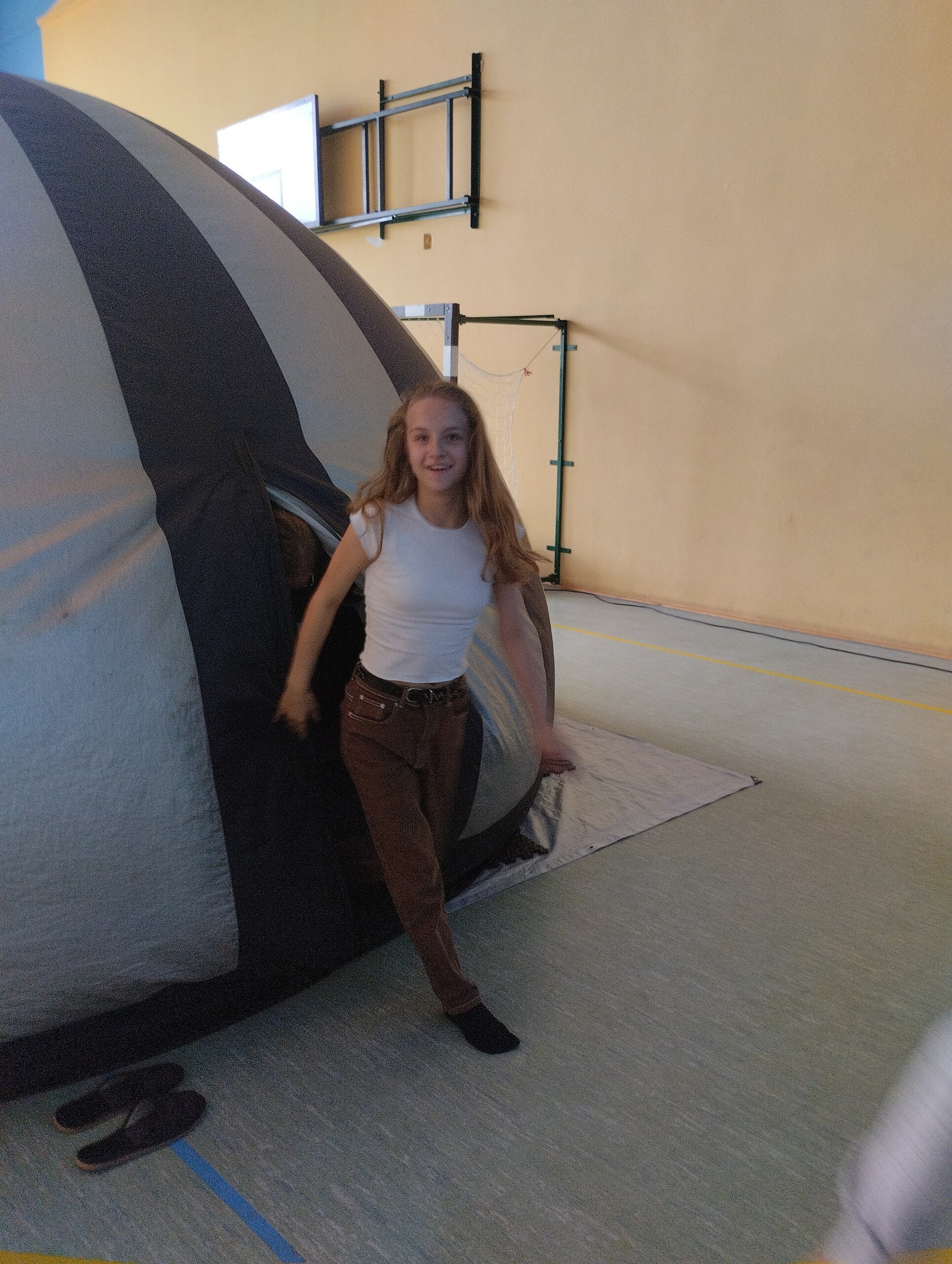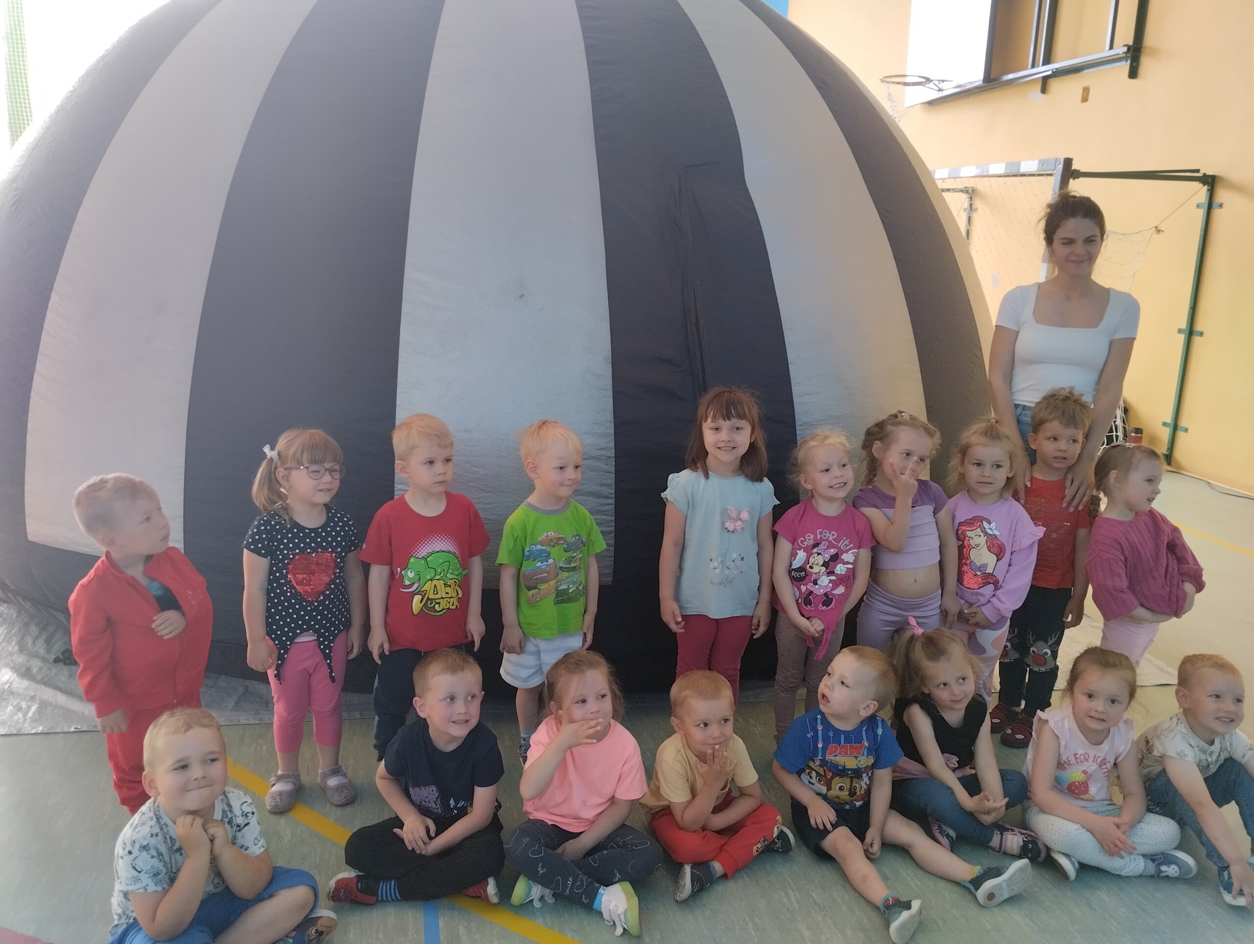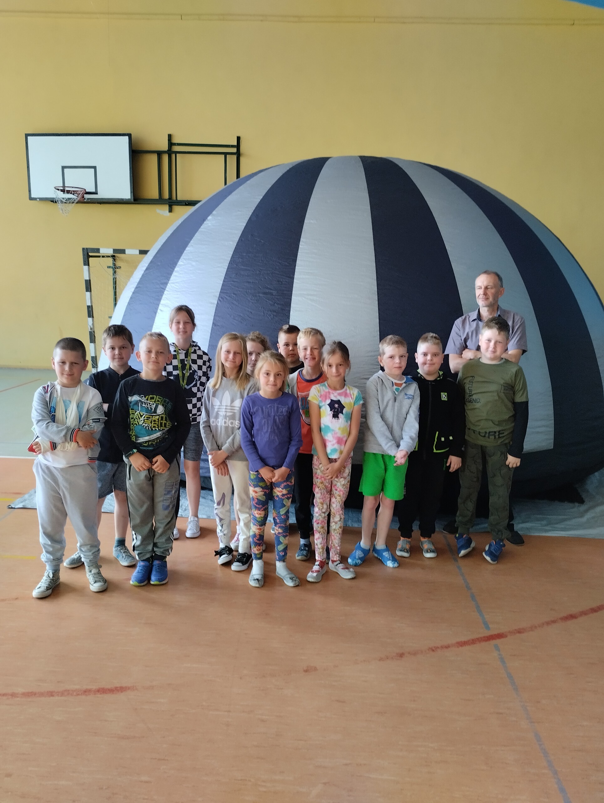 13-14 czerwca 2023r., uczniowie naszej szkoły i przedszkola mieli okazję uczestniczyć w niesamowitej projekcji filmu w kinie sferycznym, które zostało zainstalowane w naszej hali sportowej. Było to niezapomniane edukacyjne doświadczenie, które pozwoliło nam zgłębić tajniki powstania samolotu, grawitacji, kosmosu, życia w rafie koralowej oraz przebiegu II wojny światowej.
