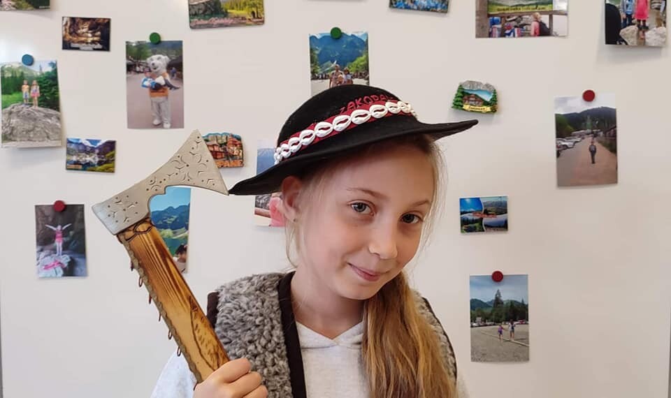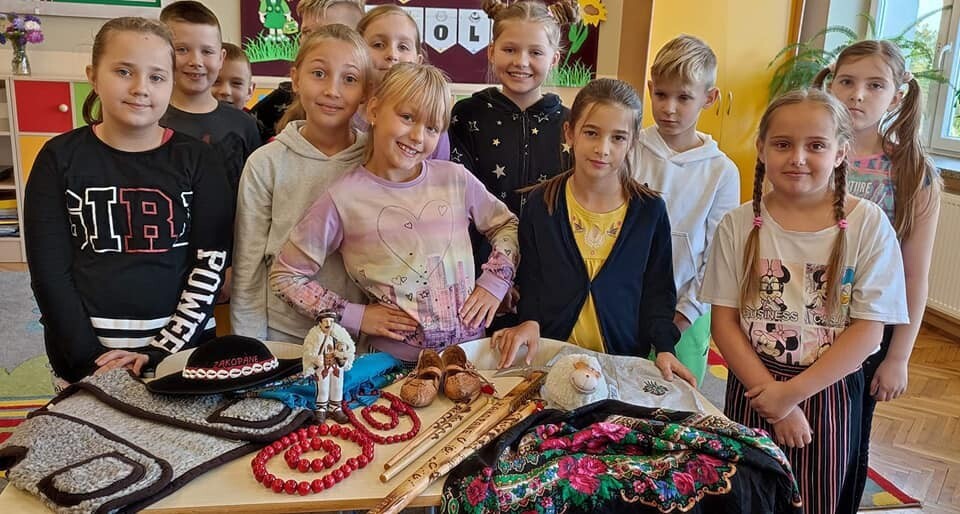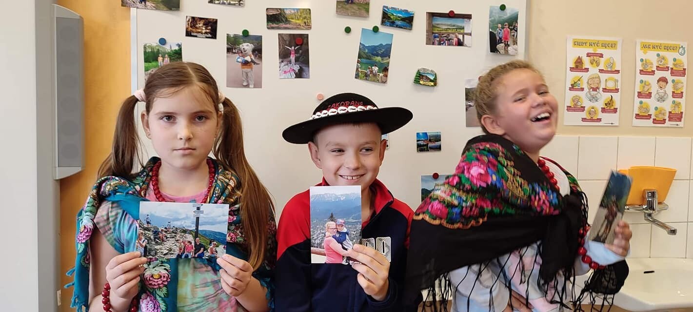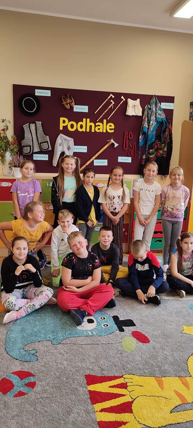 Uczniowie klasy III podczas tygodniowych zajęć mieli okazję poznać piękno polskich gór. Zapoznali się z położeniem geograficznym Tatr, kulturą i historią Podhala. Najwięcej radości sprawiła możliwość zaprezentowania się w stroju górala i góralki. Podczas zajęć zgromadziliśmy piękne pamiątki. Obejrzeliśmy zdjęcia, magnesiki, albumy, a podsuwaniem było wykonanie i zaprezentowanie pracy plastycznej "Krajobraz górski".