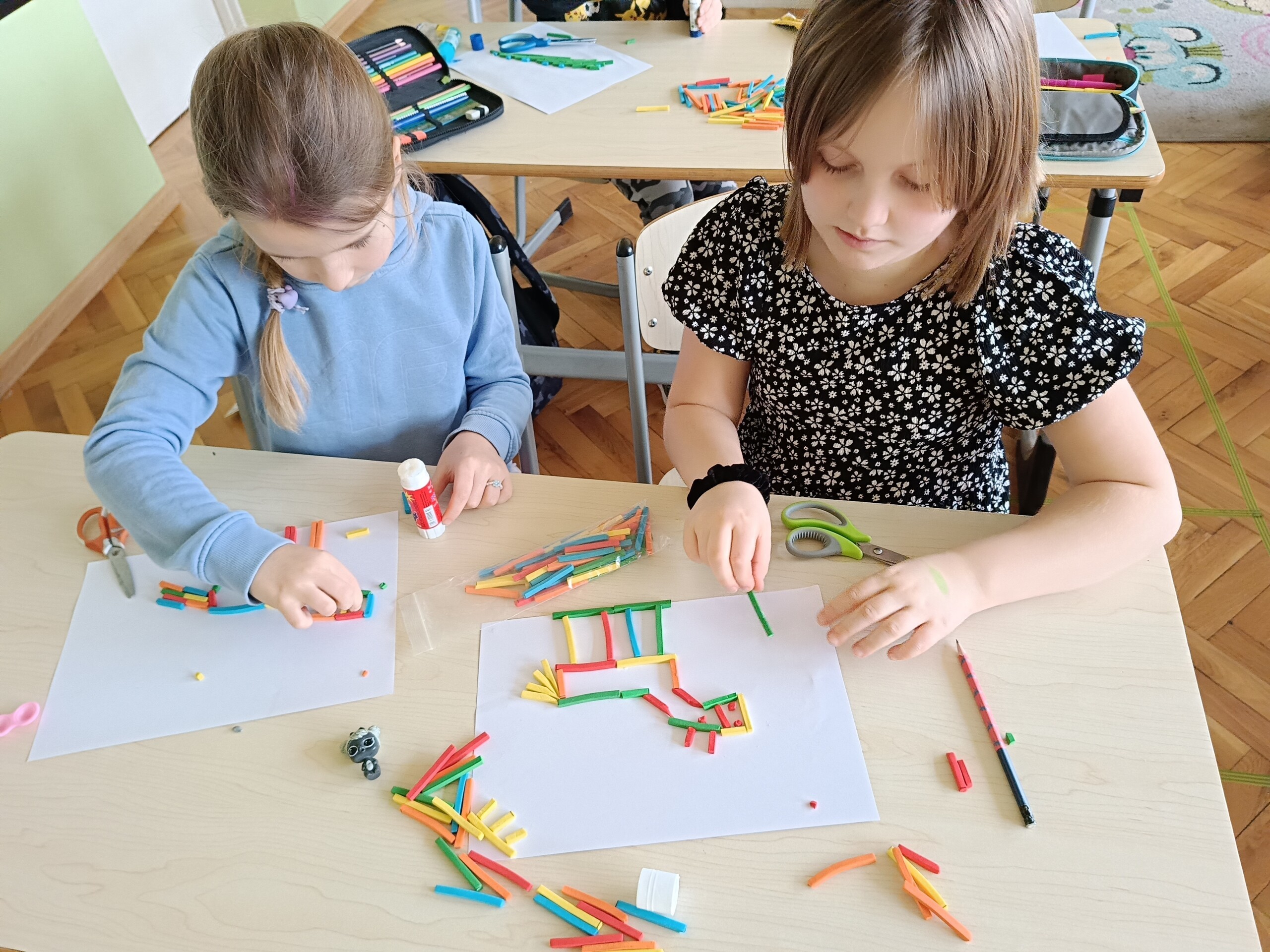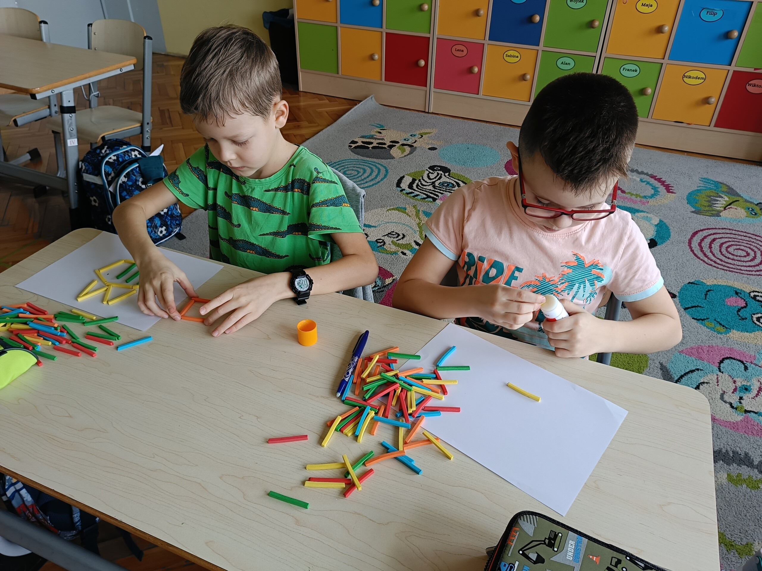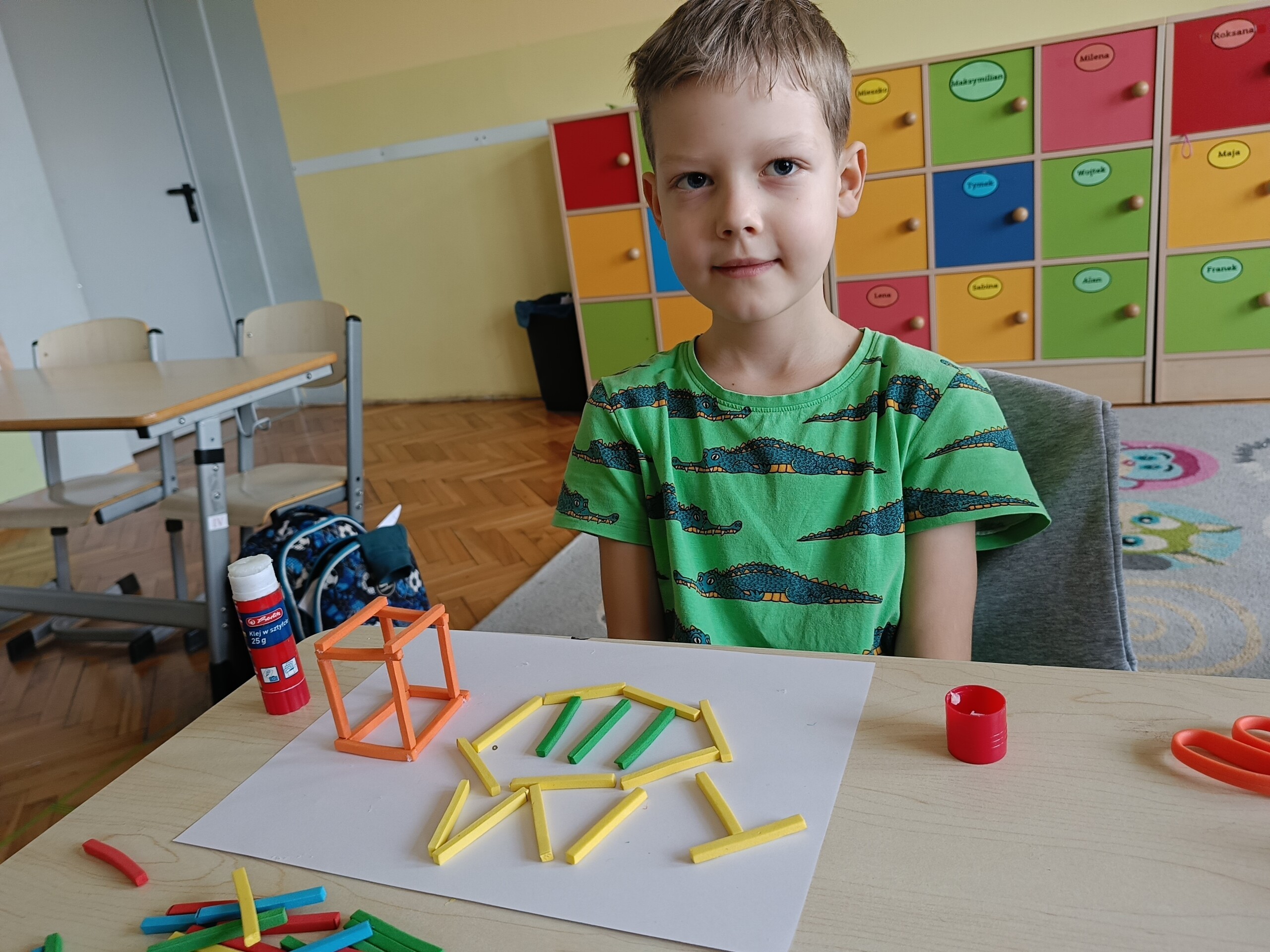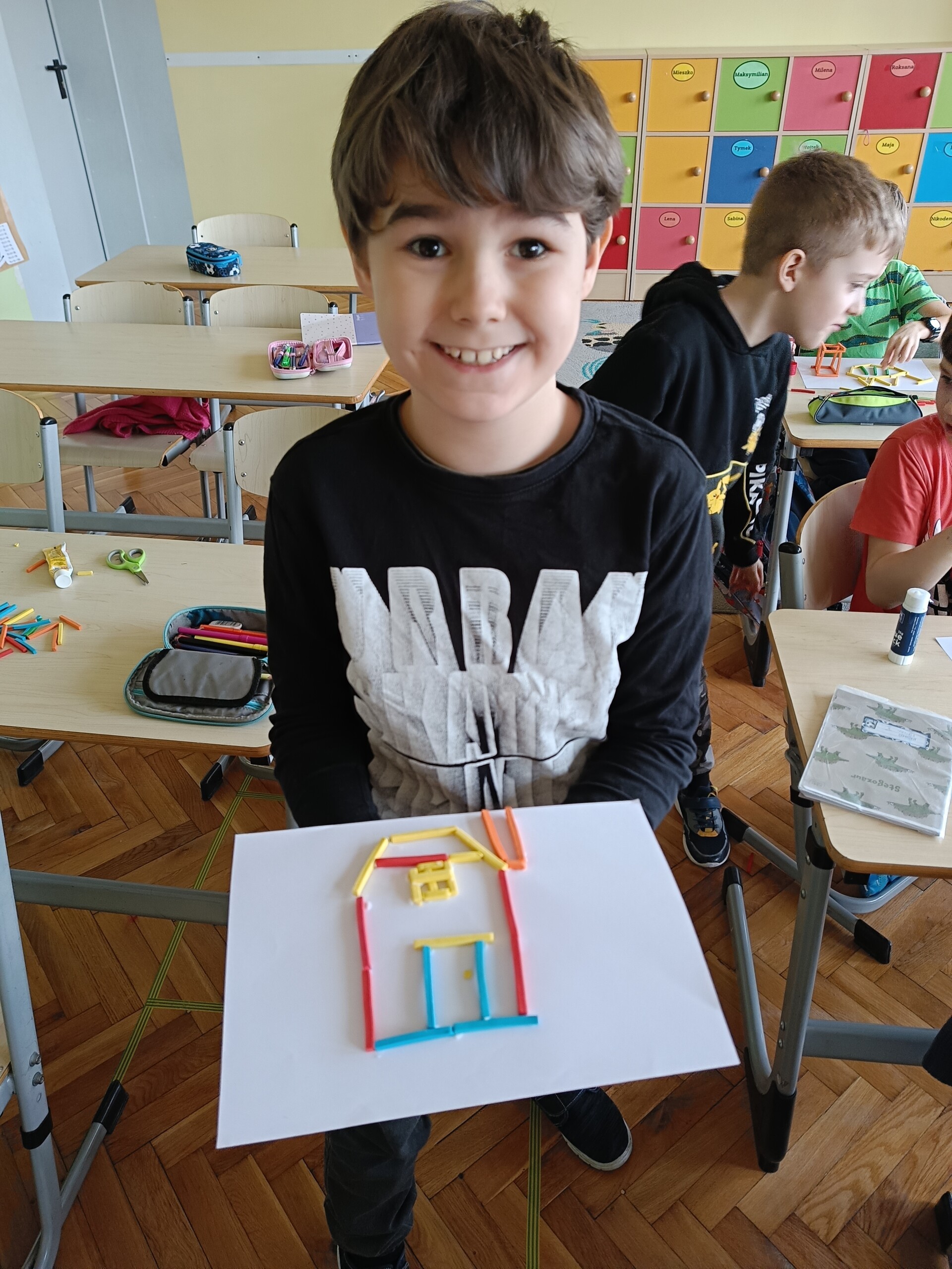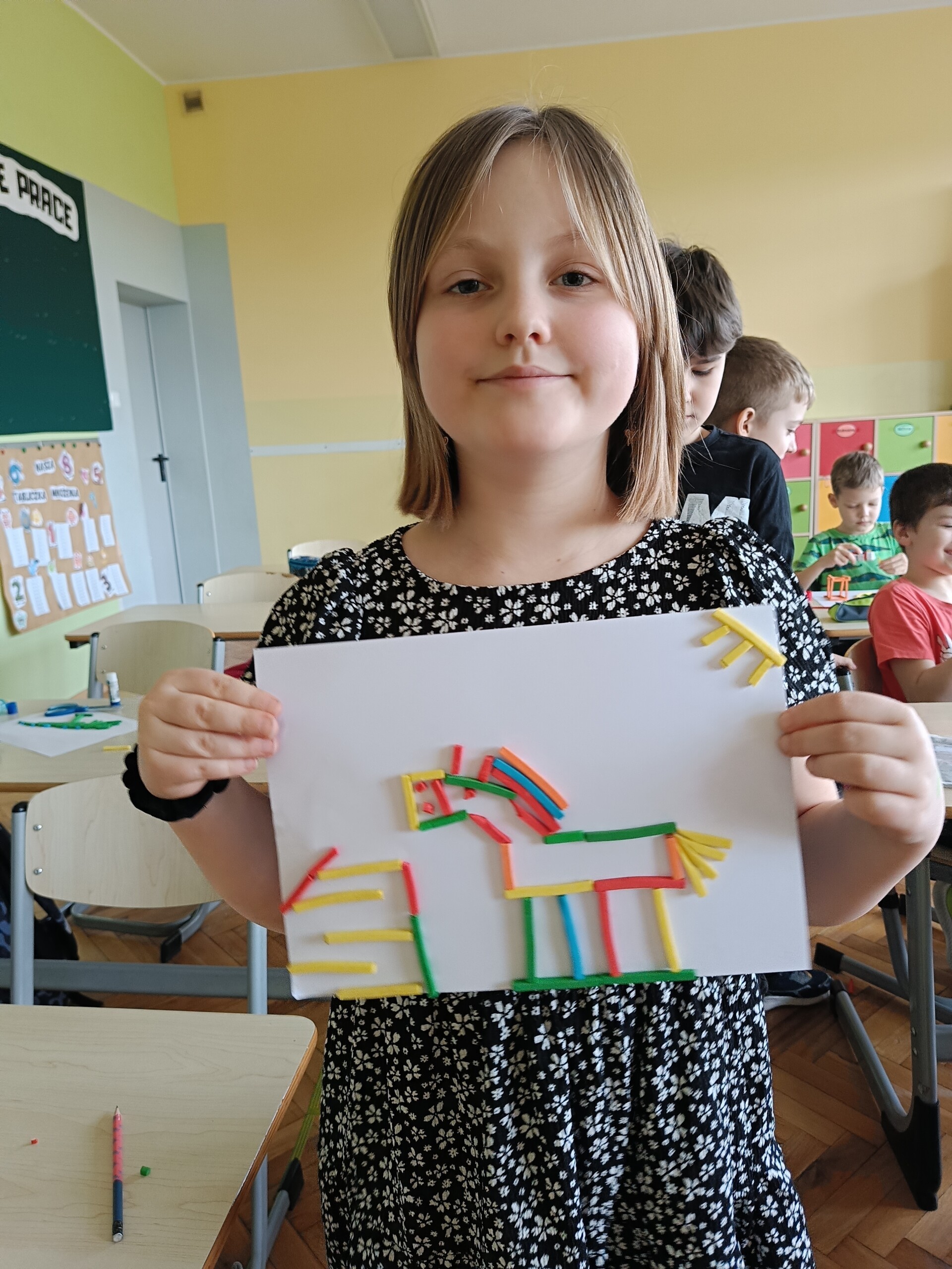 W ramach Ogólnopolskiego Projektu Edukacyjnego „Kreatywna Matematyka” uczniowie klasy 2 zrealizowali kolejny moduł - matematyczne układanki. Tworzyli płaskie oraz przestrzenne prace plastyczne z wykorzystaniem figury geometrycznej. Zadanie to z pewnością rozbudziło kreatywność i twórcze myślenie w realizacji działania.