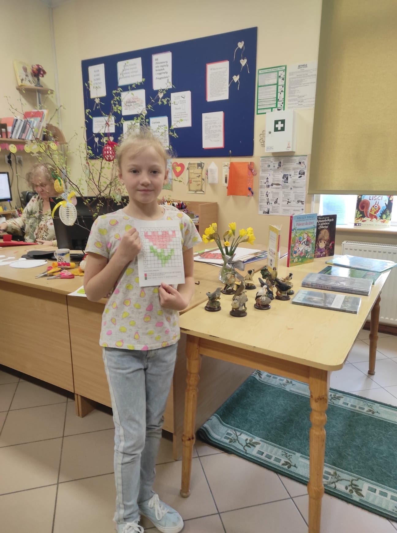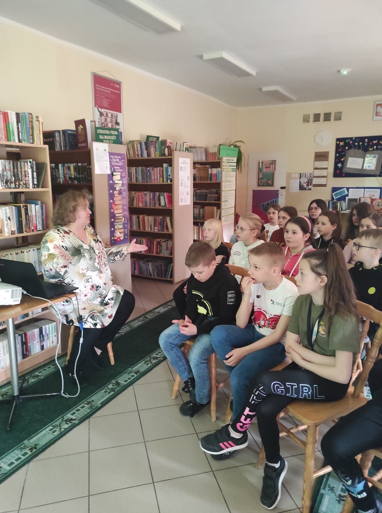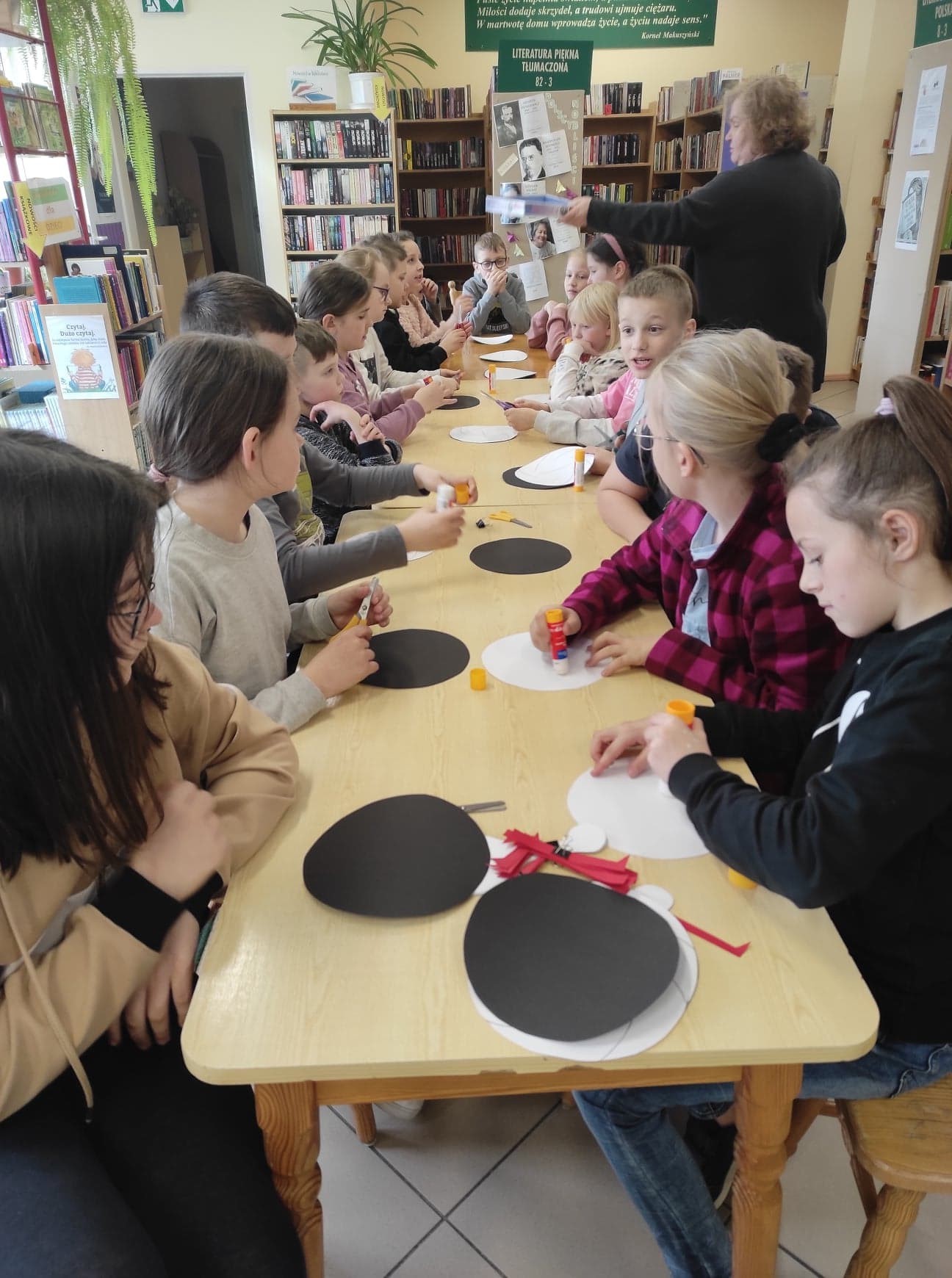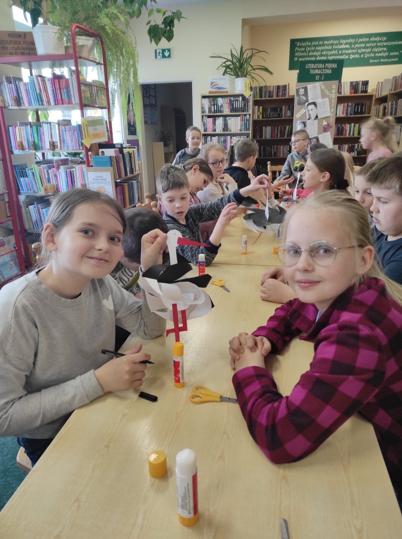 28 marca i 1 kwietnia najmłodsi uczniowie odwiedzili bibliotekę, aby poznać poezję Marii Konopnickiej – literackiej patronki roku 2022. Okazało się, że dzieci znają „Stefka Burczymuchę”, a podczas spotkania poznały inne wiersze poetki, np. „Powitanie wiosny “, „Nasze kwiaty”, „O czem ptaszek śpiewa” i inne. Ostatni wymieniony wiersz stał się podstawą do przypomnienia dzieciom o pierwszych wiosennych kwiatach. Z zaciekawieniem wzięły udział w odkodowaniu i rozpoznaniu kolorowych zwiastunów wiosny. Trzecioklasiści bez trudu rozpoznawali ptaki, które jako pierwsze odwiedzają nas po długich zimowych zimnych miesiącach. Ich śpiew rozbrzmiewał podczas wiosennego spotkania z poezją.