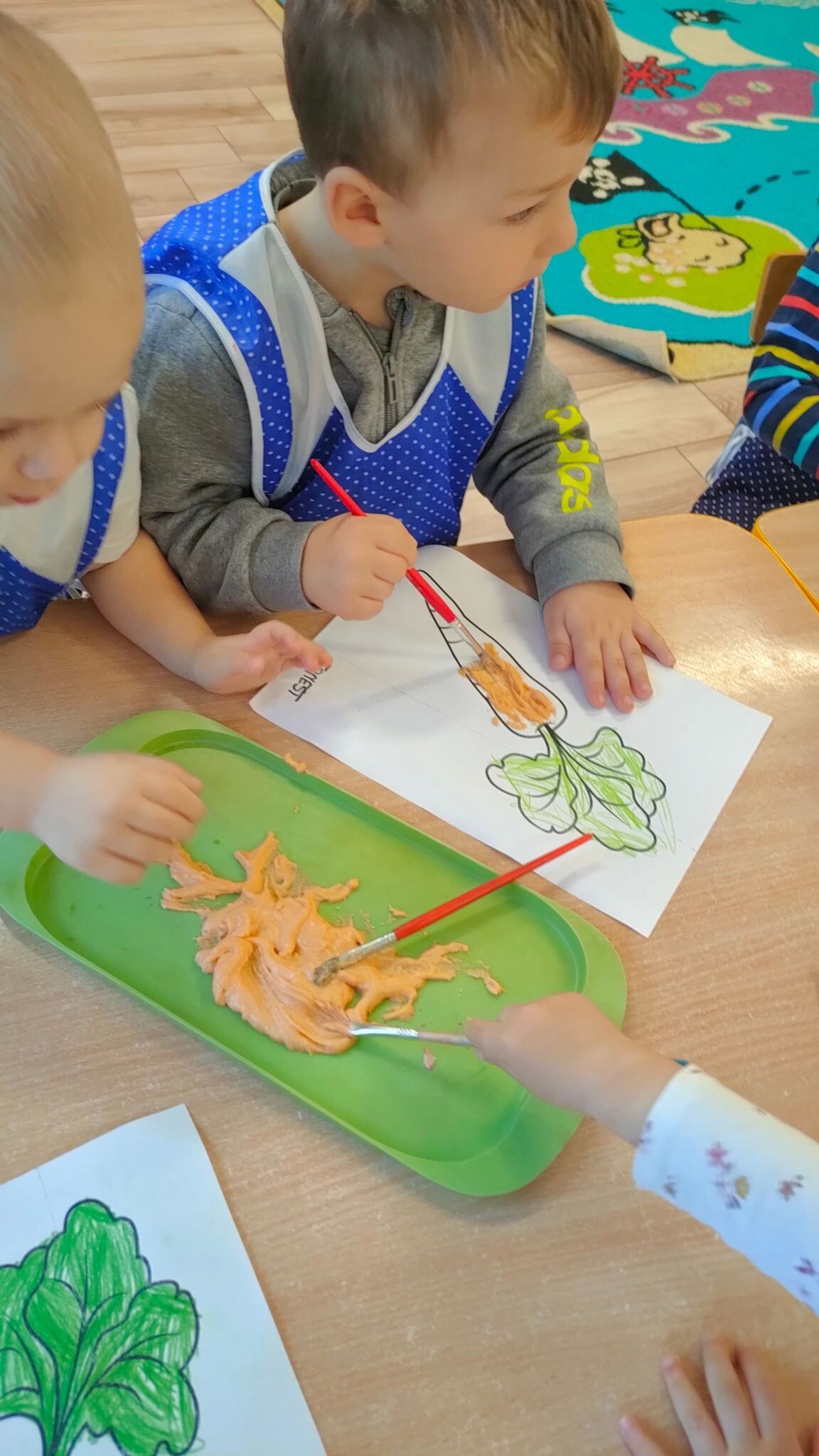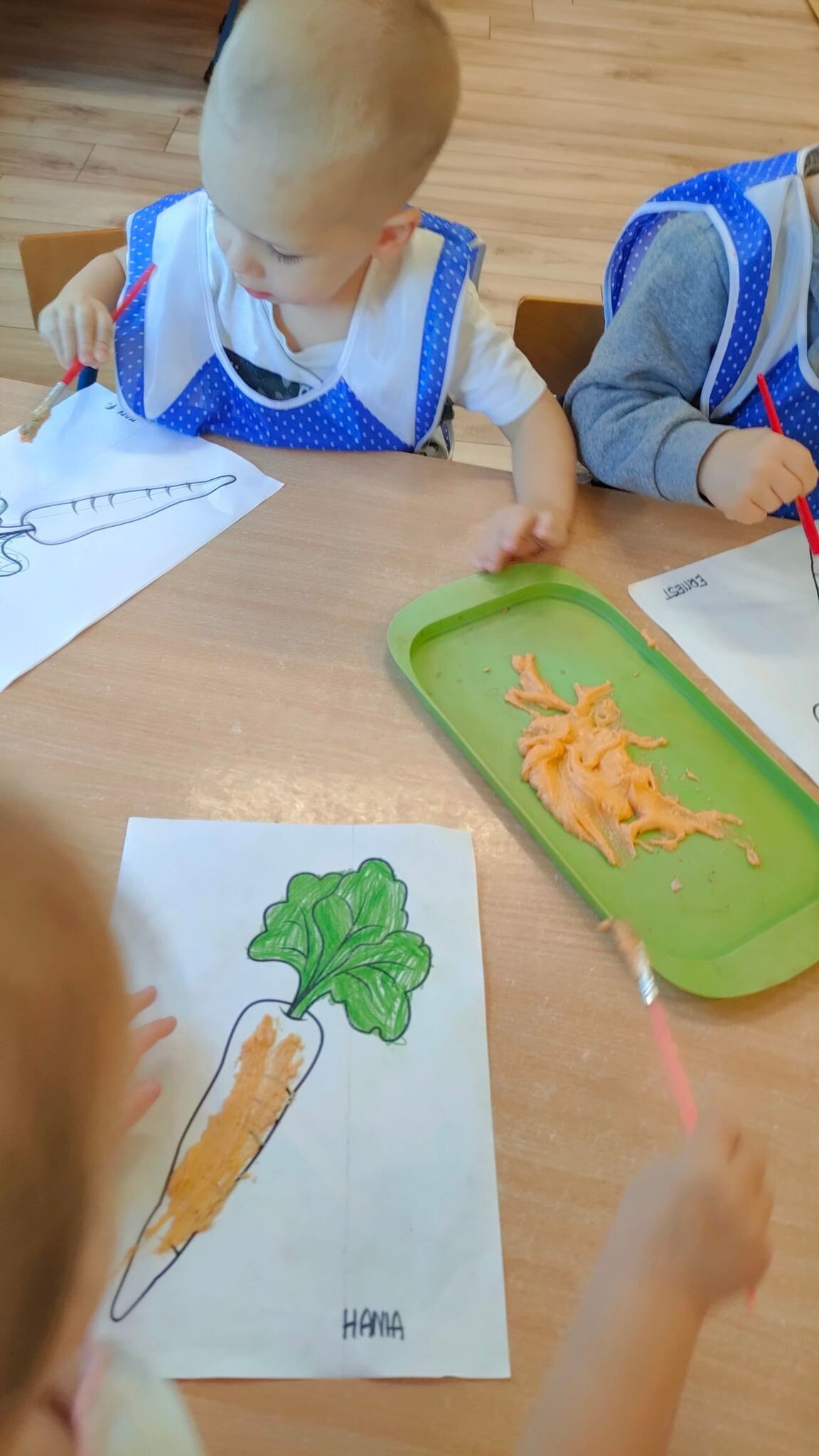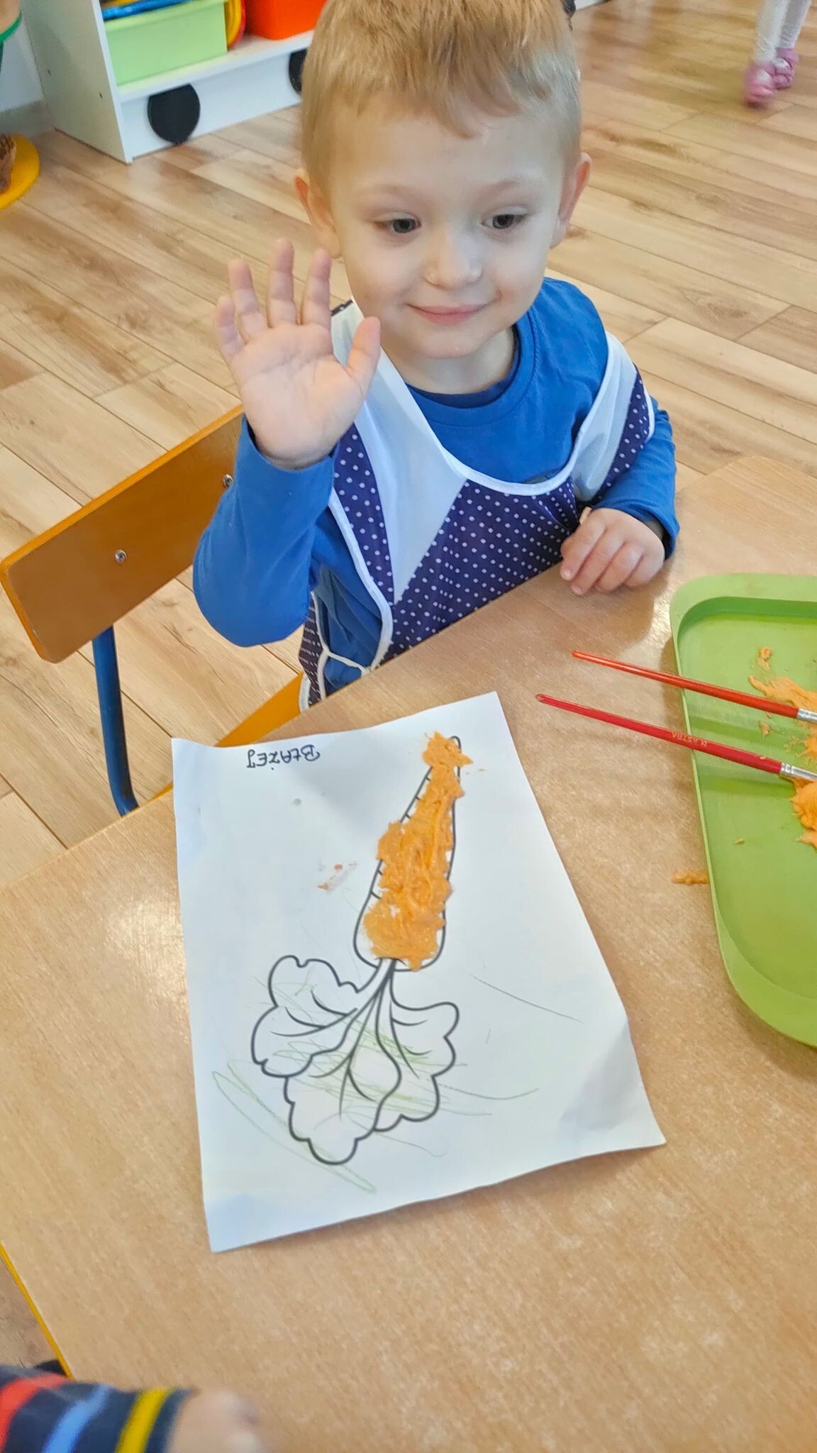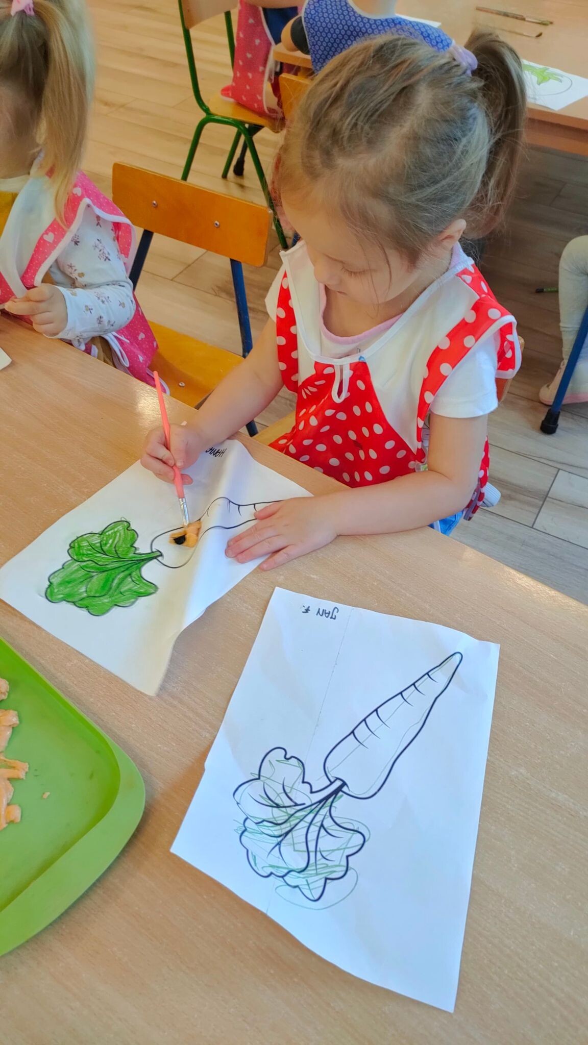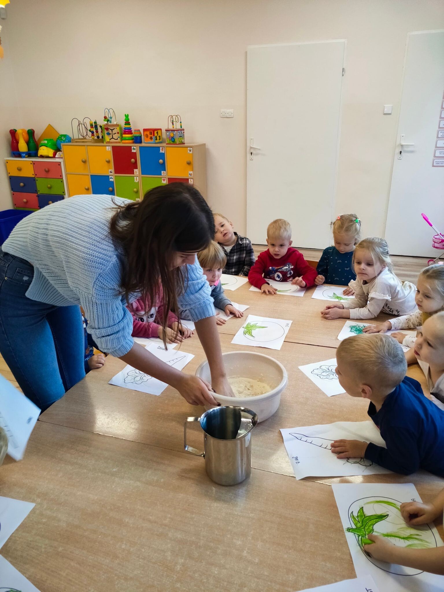 "Słoneczka" poznały dzisiaj magię rosnącej masy i z jej pomocą stworzyły piękne prace plastyczne. Wszyscy z niecierpliwością obserwowali, jak w mikrofali urosną warzywne obrazki.