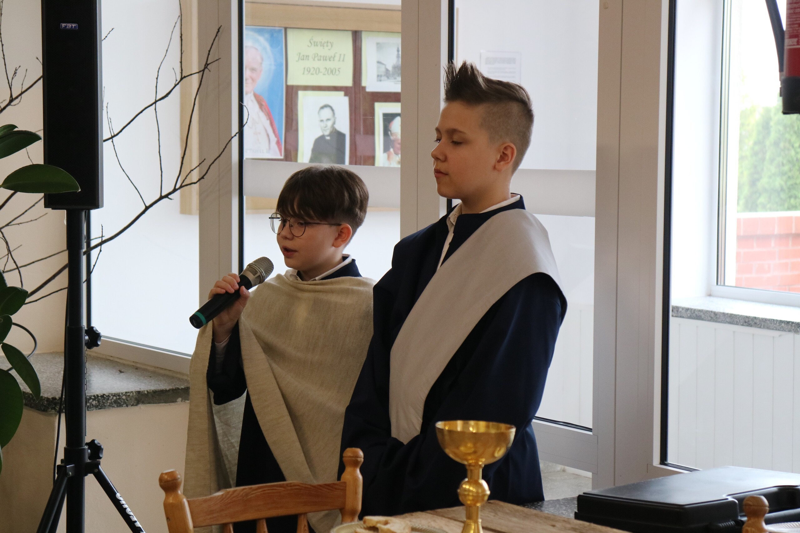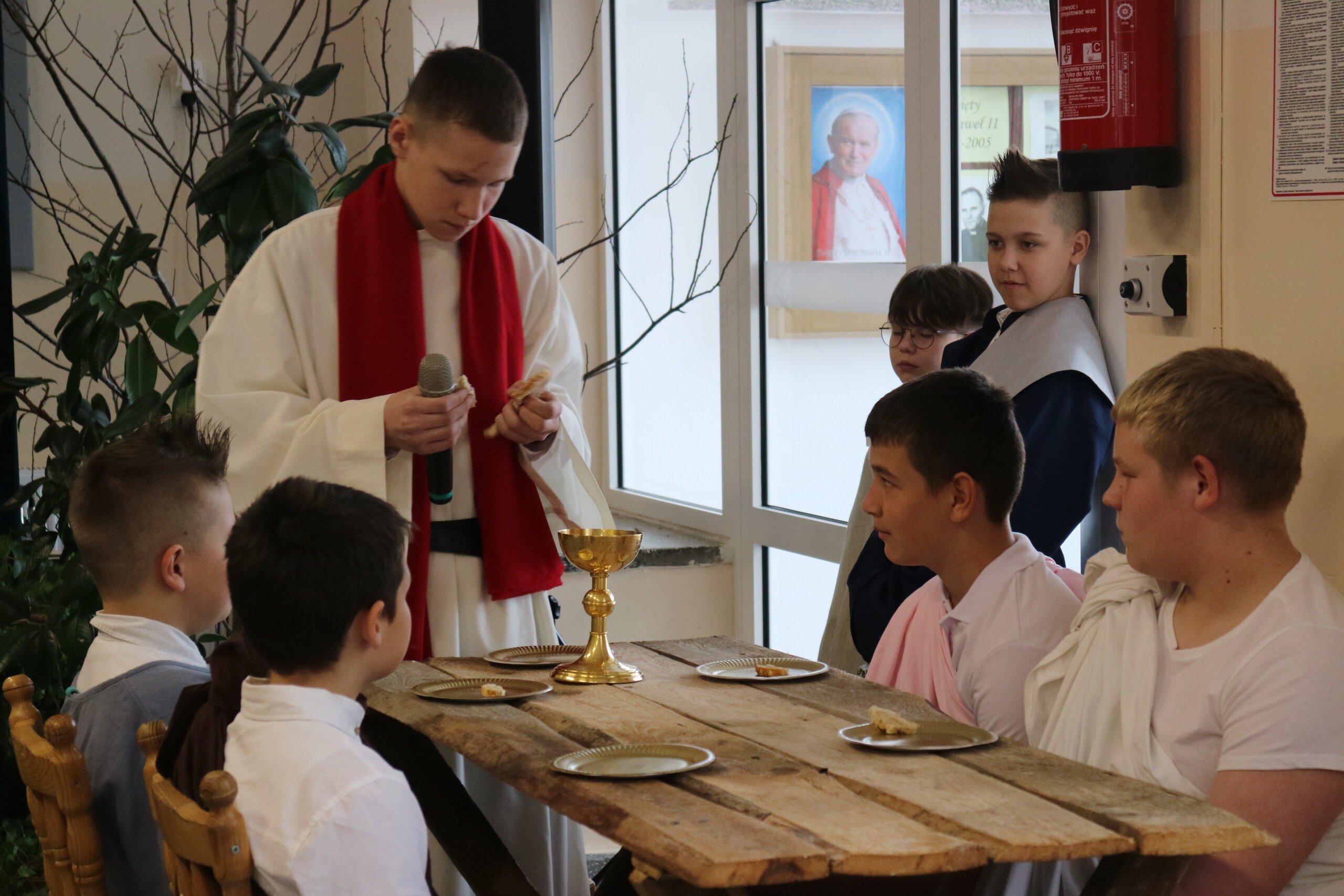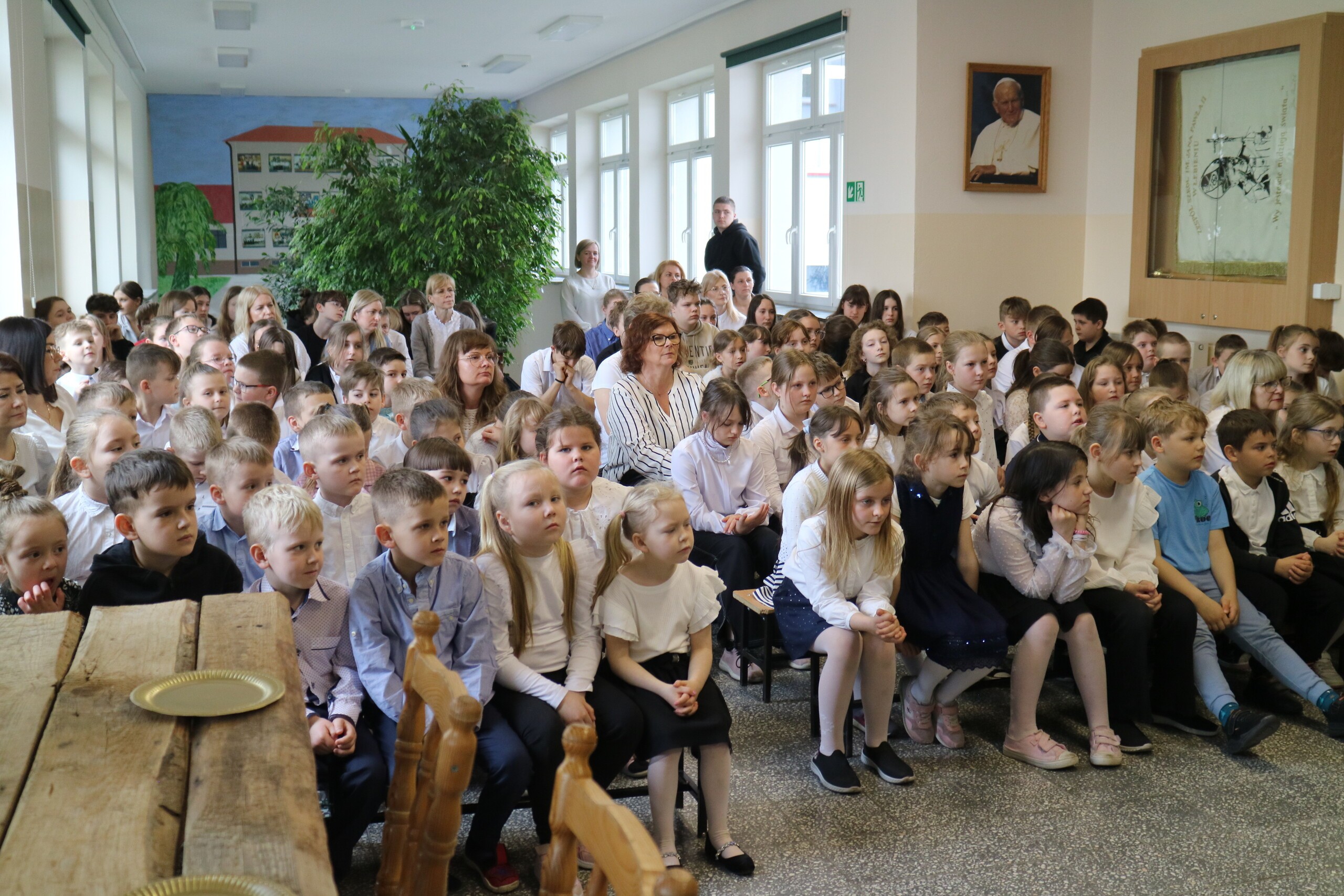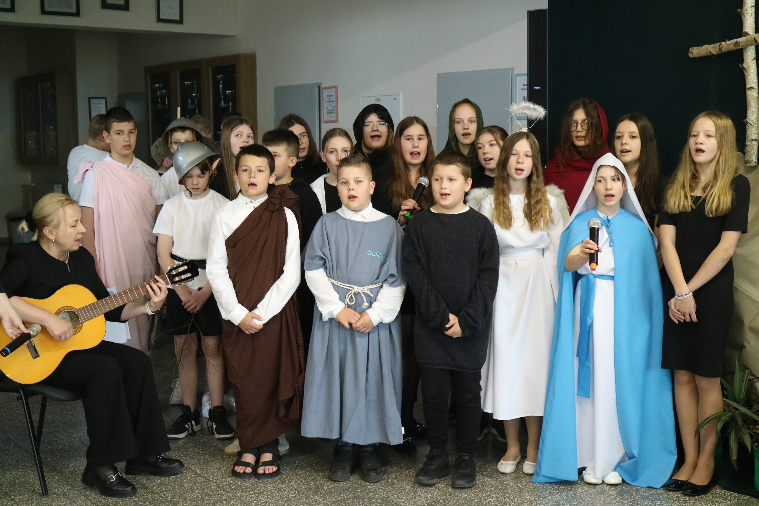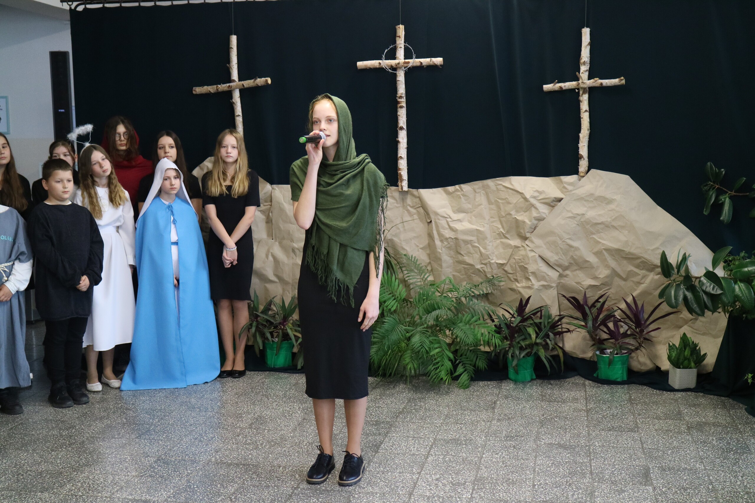 Trwa Wielki Tydzień i przygotowujemy się do obchodów najważniejszych świąt, a są to Święta Wielkanocne. Z tej okazji uczniowie klas IV, VI i VIII przygotowali Misterium Męki Pańskiej. Zaproszeni goście: ksiądz proboszcz Janusz Góral, Przewodnicząca Rady Rodziców pani Justyna Wilga i cała społeczność szkolna mogła zobaczyć przedstawienie przypominające ważne wydarzenia z życia Pana Jezusa. Przeżywamy je co roku, ale zawsze jakby to było po raz pierwszy. Uczniowie doskonale wcielili się w biblijne postaci. Wymowna dekoracja, stroje i odpowiednio dobrane wielkopostne pieśni potęgowały poważny nastrój. Oglądany spektakl spotkał się z uznaniem oglądających i nagrodzony gromkimi brawami. Dyrektor Krzysztof Wojtysiak podziękował uczniom i nauczycielom, którzy przygotowali to ważne wydarzenie oraz złożył życzenia z okazji Świąt Wielkanocnych. Życzenia świąteczne złożył również proboszcz Janusz Góral i Przewodnicząca Rady rodziców Justyna Wilga. W świątecznym nastroju rozeszliśmy się do klas.