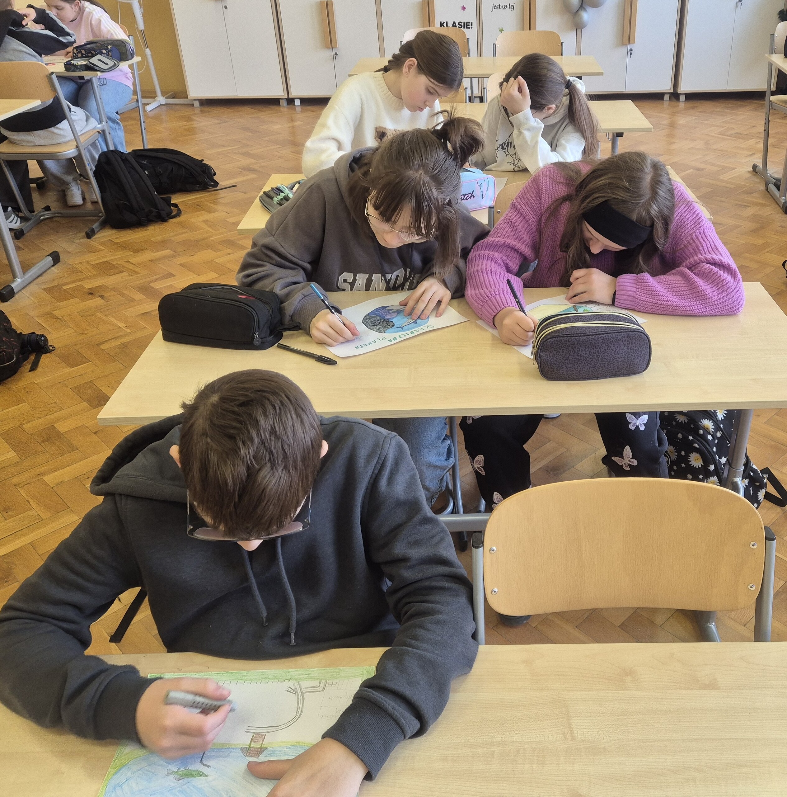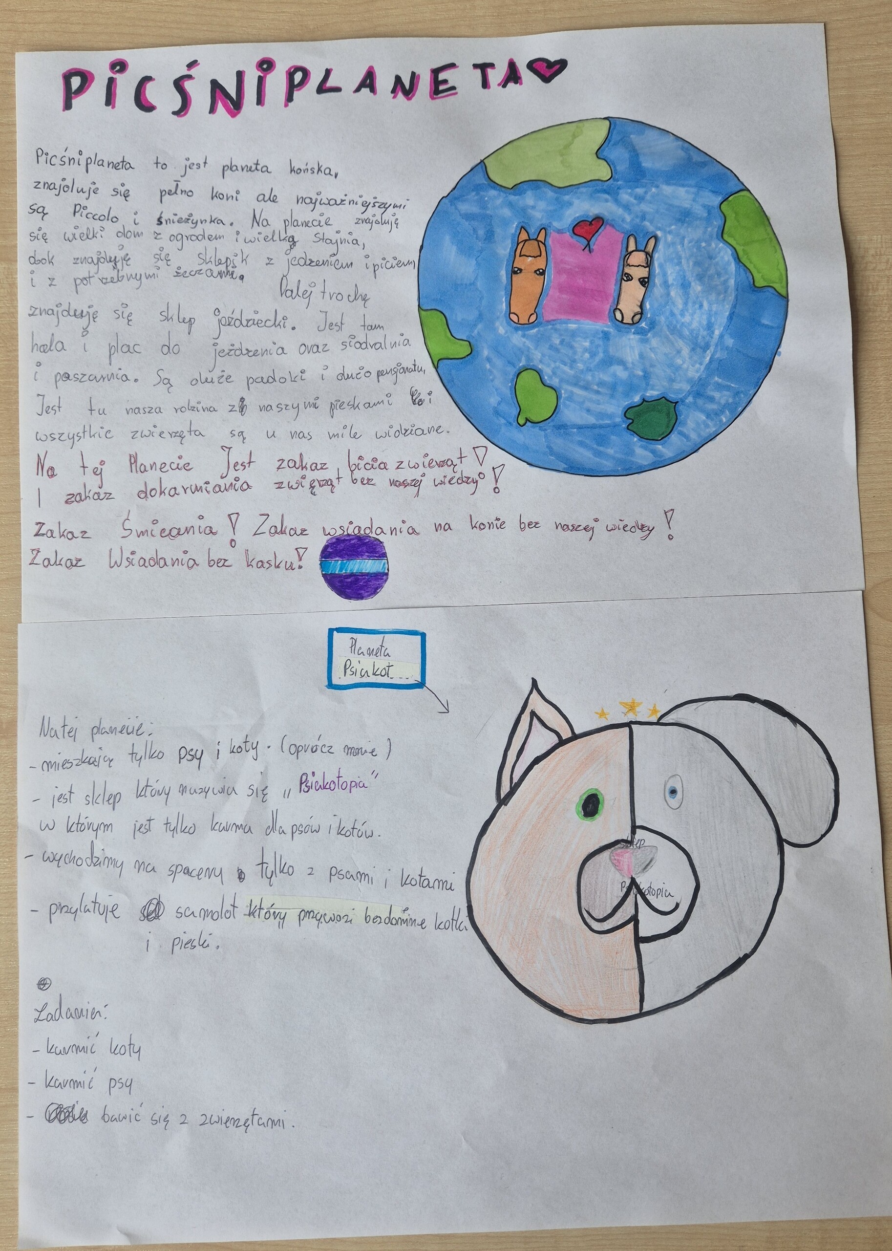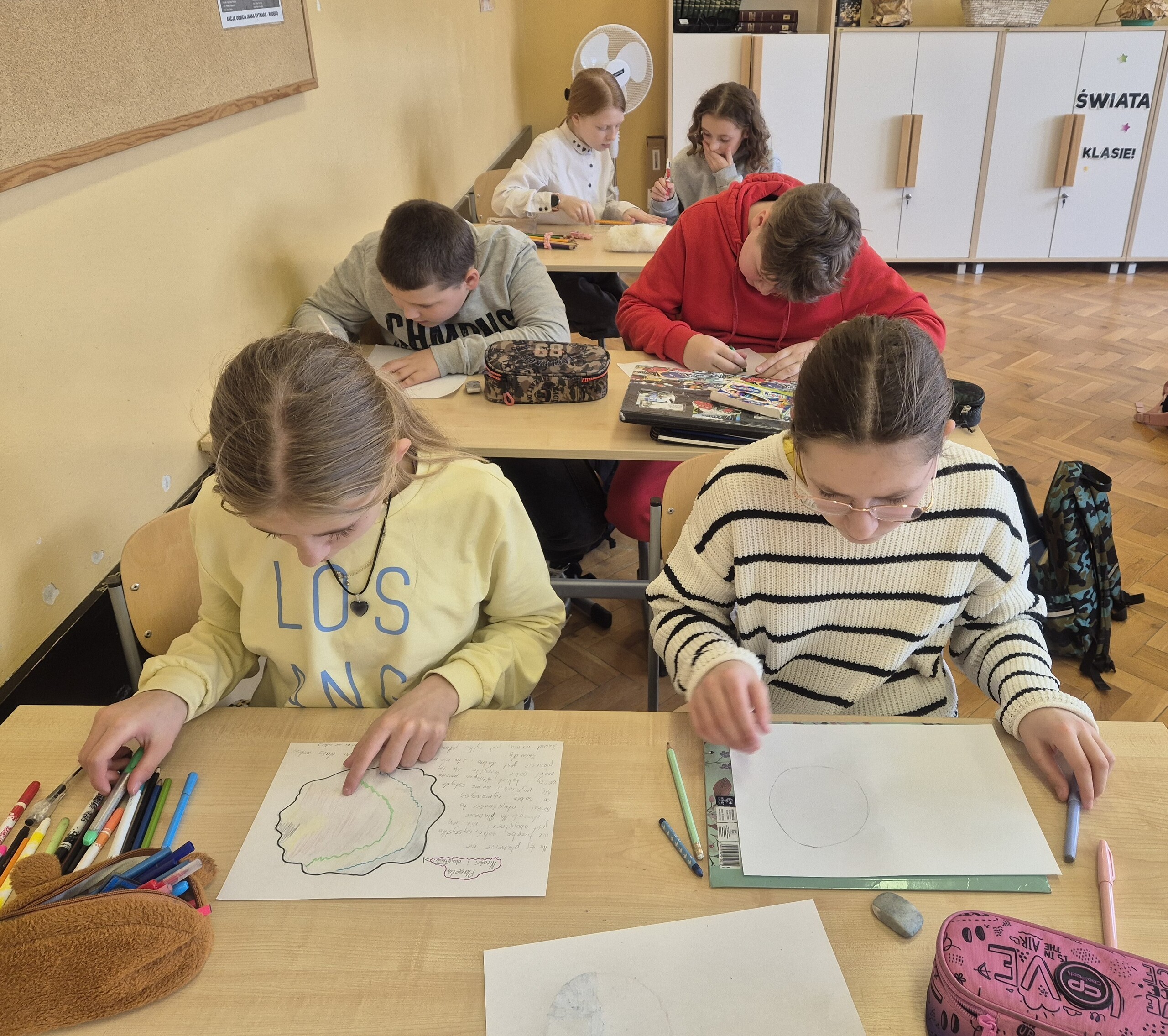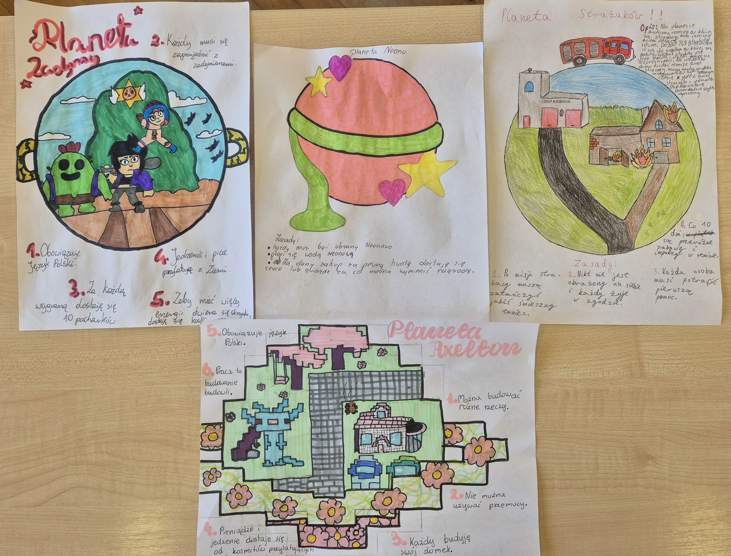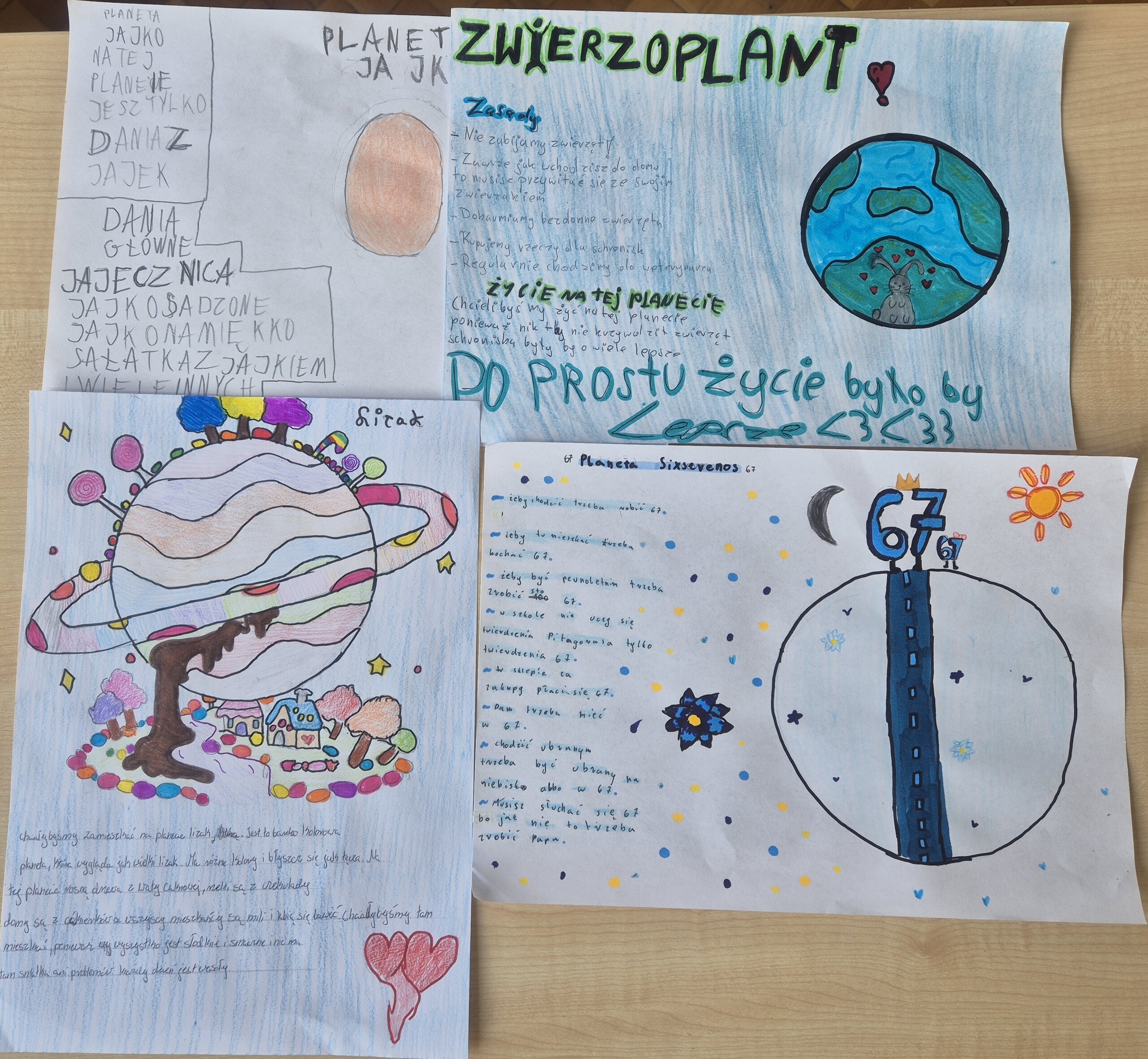Uczniowie klasy 5 i 6 na lekcji języka polskiego wykonali kolejne zadanie Ogólnopolskiego Projektu Edukacyjnego - Polak ma essę. Tym razem zadanie polegało na zaprojektowaniu i opisaniu swojej własnej planety, na której nasi uczniowie chcieliby żyć. Dzięki temu uczniowie wyobrazili sobie swoje wymarzone miejsce, tylko dla nich i ćwiczyli opisywanie. Zaczęliśmy od dyskusji, potem były pomysły i realizacja zadania. Celem tego projektu było rozwijanie kreatywności, wyobraźni oraz umiejętności wypowiadania się zarówno w formie pisemnej, jak i ustnej. Realizacja projektu sprzyjała także doskonaleniu kompetencji językowych, umiejętności logicznego i twórczego myślenia, a także kształtowała zdolność prezentowania własnych pomysłów przed grupą.
