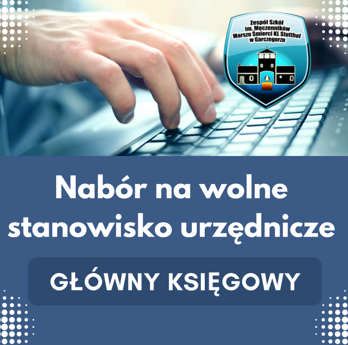 Nabór na wolne stanowisko urzędnicze w Zespole Szkół im. Męczenników Marszu Śmierci KL Stutthof w Garczegorzu - Główny księgowy/Główna księgowa