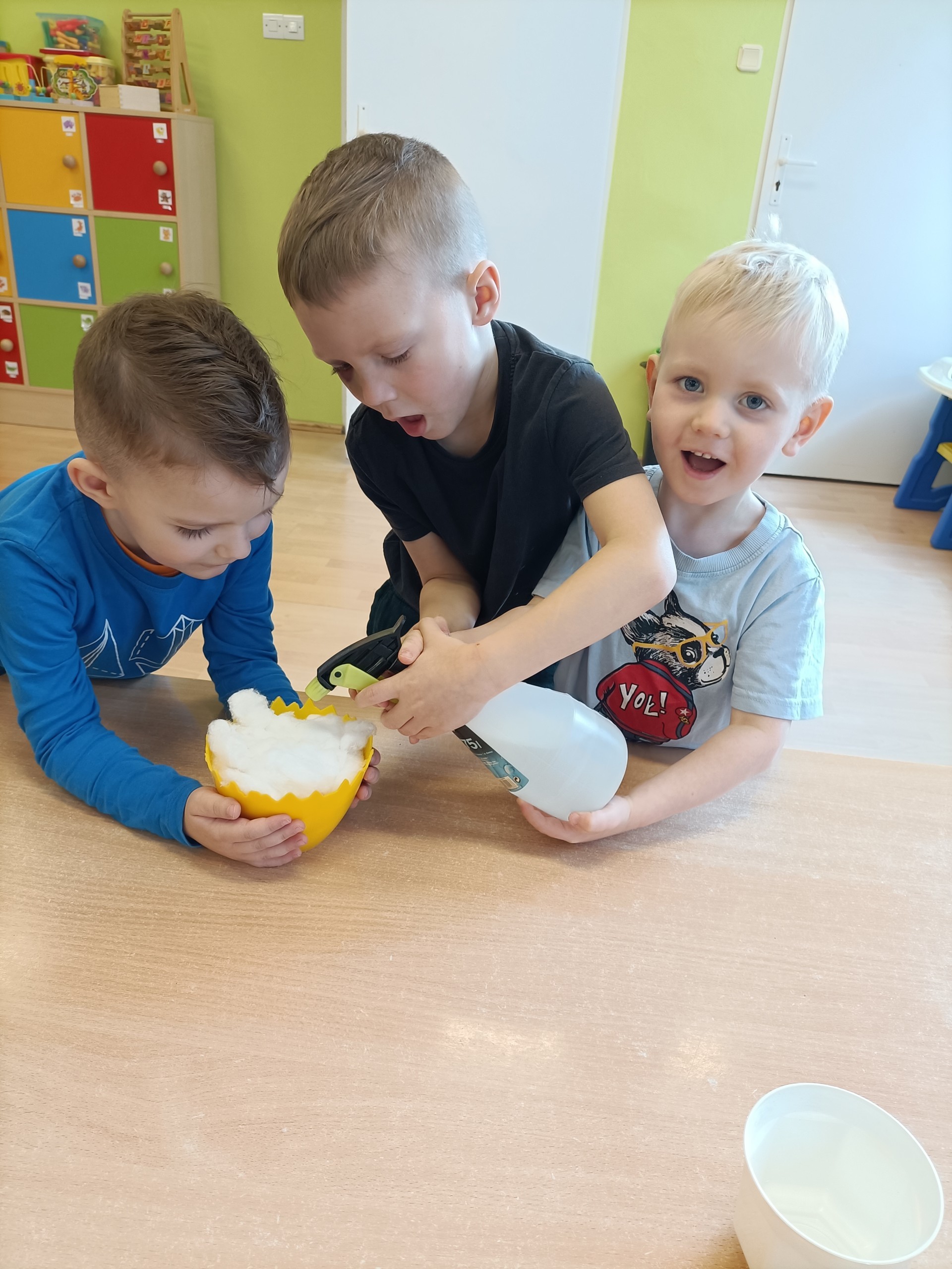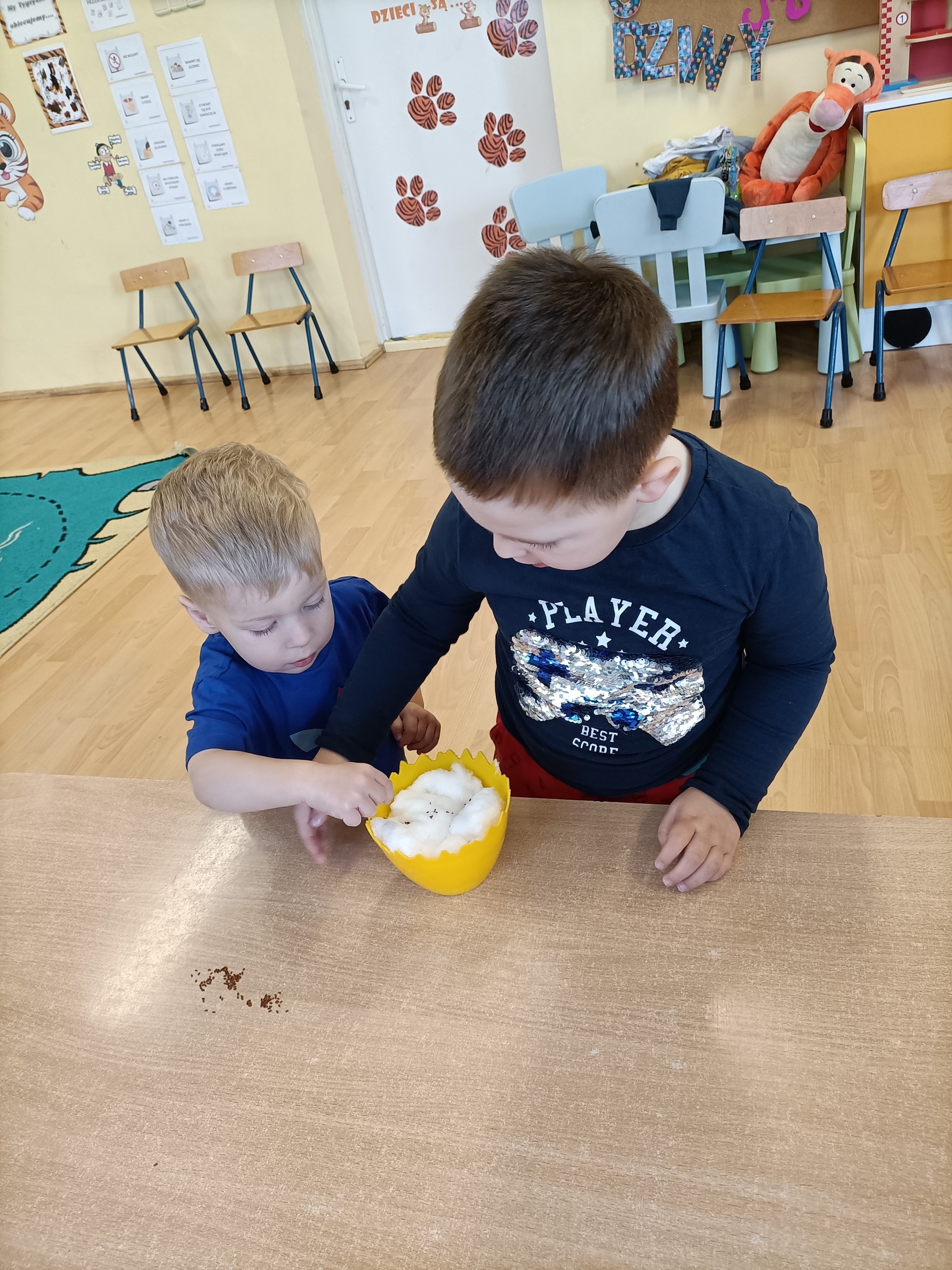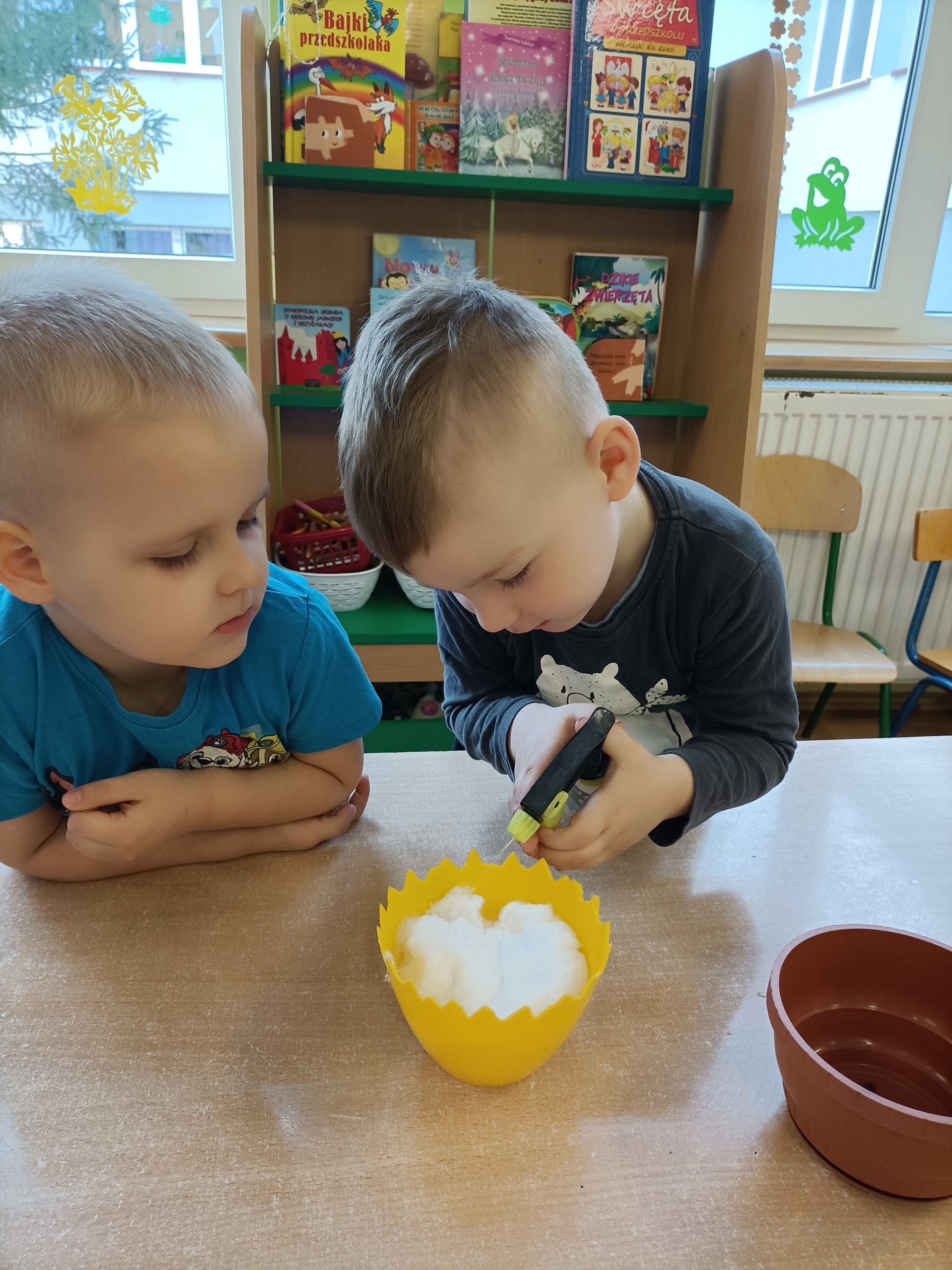 Nic nie sprawia tyle radości jak wspólna praca. Dzieci ucieszyły się na wieść, że będziemy tworzyć swój ogródek. Na zdjęciach widać, jak chętnie zabrały się do pracy. Teraz zerkają co chwilę i pytają: ,,Kiedy urośnie szczypiorek?".