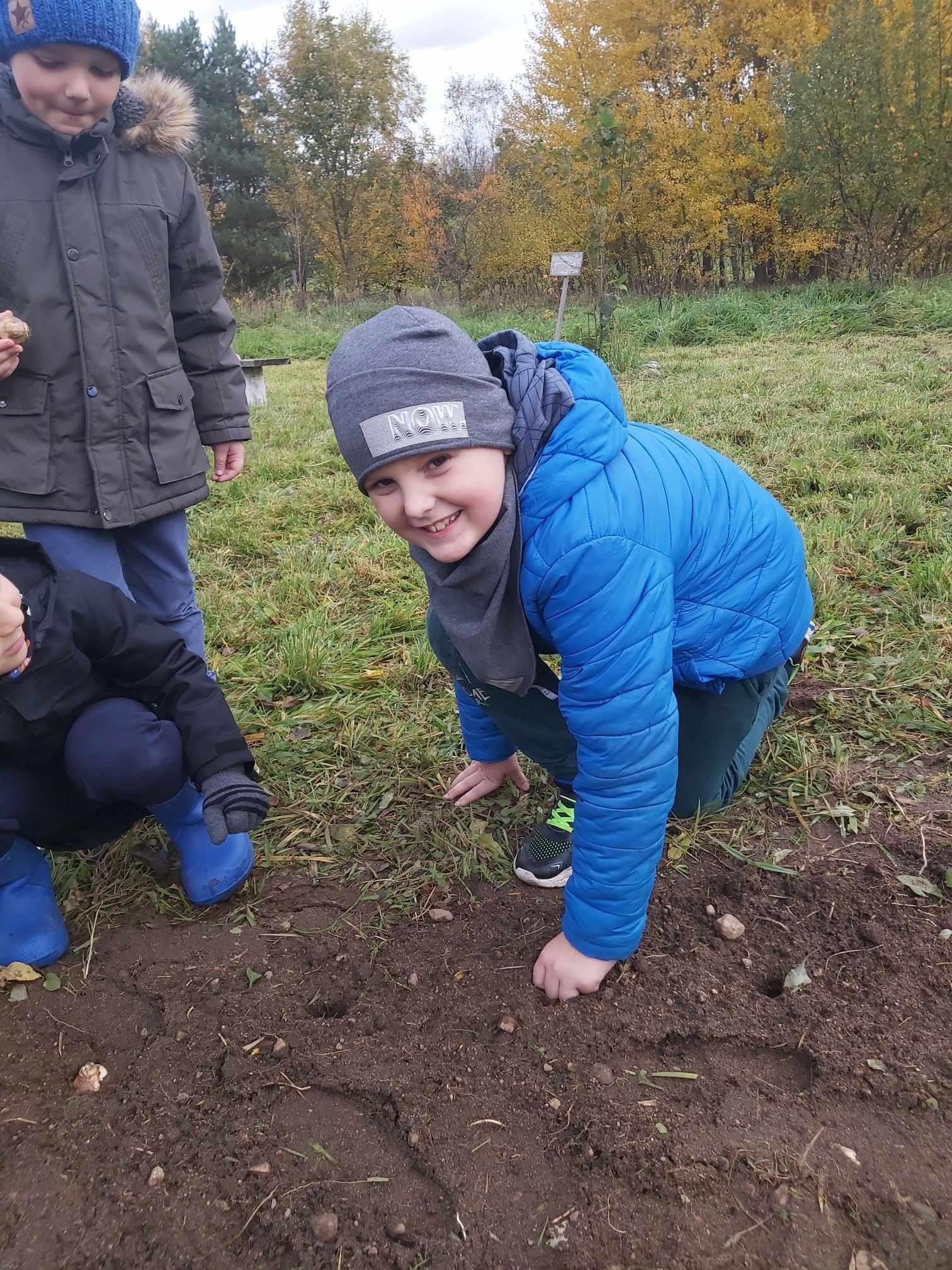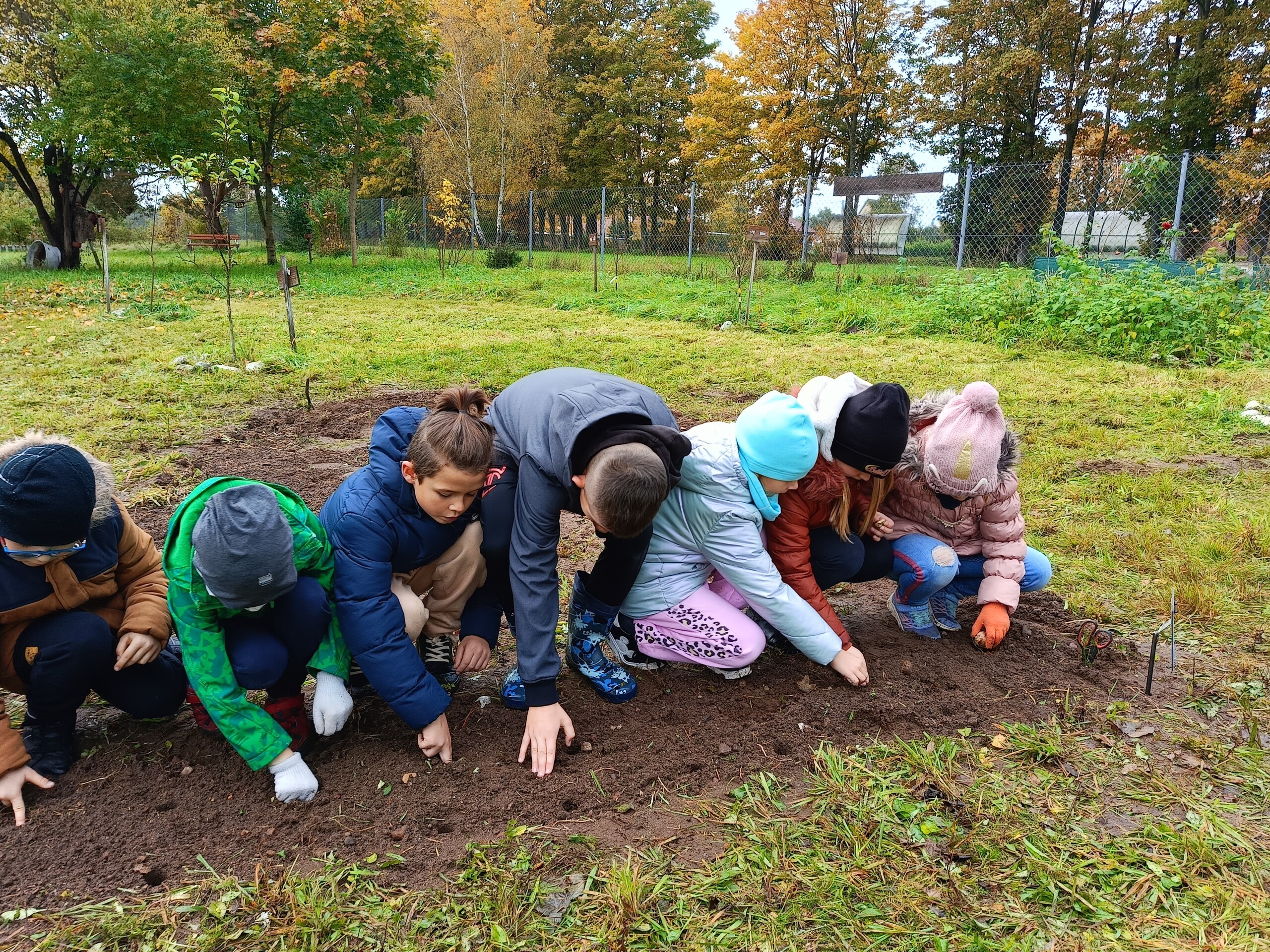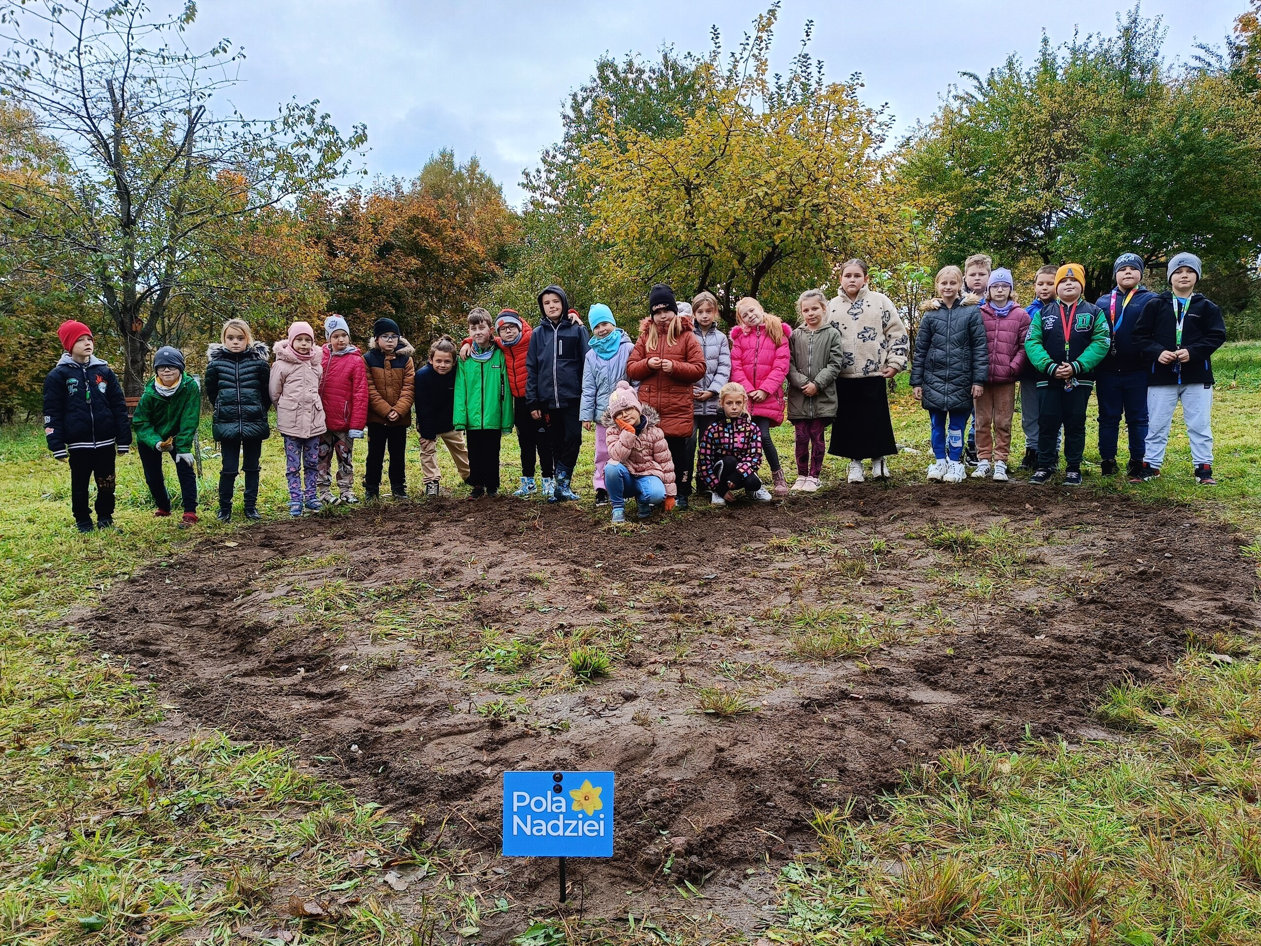 Otwarci na pomoc drugiemu człowiekowi przystąpiliśmy do akcji zainicjowanej przez Lęborskie Hospicjum Stacjonarne pod nazwą „Lęborskie Pola Nadziei”. Czujemy, że jest naszym obowiązkiem kierować nasze serca ku potrzebującym, a szczególnie ku chorym. Z tego też powodu cała nasza społeczność szkolna i przedszkolna podjęła się tego wyzwania. W szkolnym ogrodzie - sadzie rodzice uczniów i przedszkolaków przygotowali miejsce pod posadzenie cebulek żonkili. Przygotowali je w kształcie serca, a uczniowie, przedszkolaki, rodzice i nauczyciele posadzili cebulki żonkili. To nasze „łebieńskie serce – Pole Nadziei” zakwitnie na żółto wiosną i będzie to znak, że czas ruszyć do akcji , bo jak co roku w marcu wolontariusze z puszkami i naręczami żonkili wyruszą na ulice, by prosić o pomoc dla chorych przebywających w hospicjum. Również i nasi wolontariusze – rodzice, pracownicy, nauczyciele i uczniowie wezmą udział w wiosennej akcji „Pola Nadziei” i wierzymy, że już z posadzonymi przez nas żonkilami.