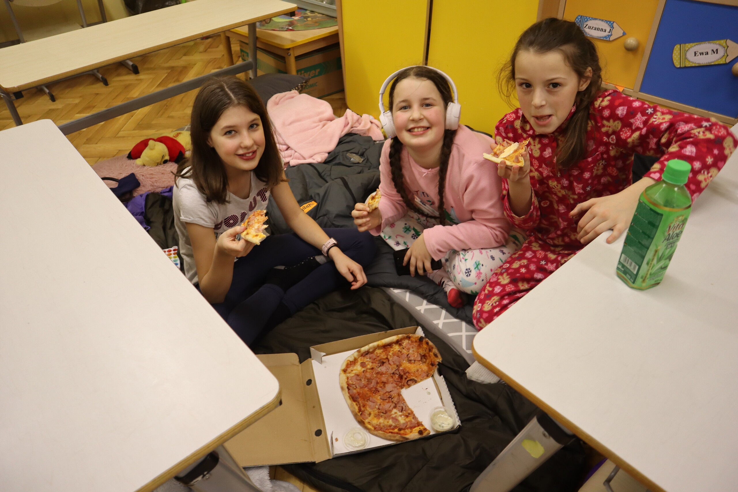 Miłym akcentem była przerwa na posiłek. I choć godzina nie sprzyjała (21.00!) wszyscy zasiedli i spożyli pizzę. Dostarczyła ona pokaźną ilość energii do dalszych zabaw.