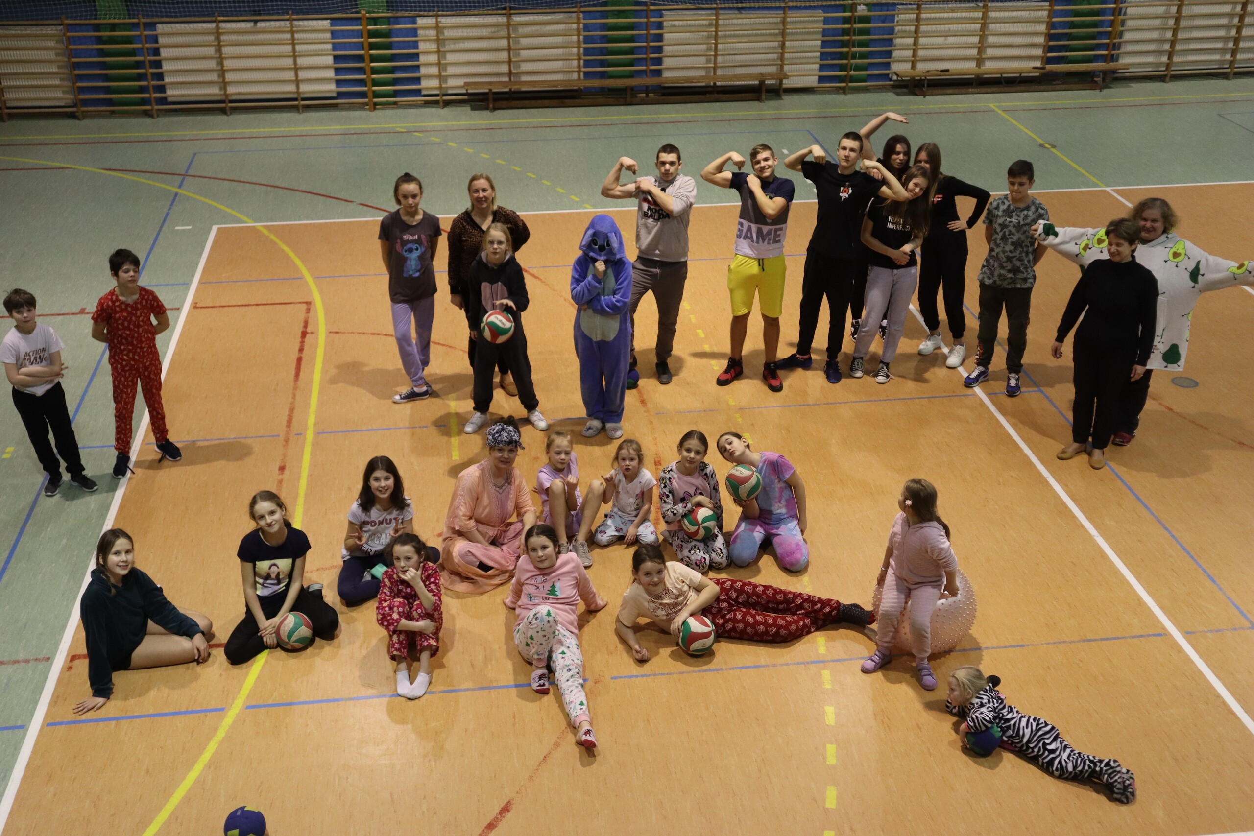 Następnie rozegraliśmy mecz siatkówki na sali gimnastycznej. Wiele emocji wzbudził nocleg w spartańskich warunkach.