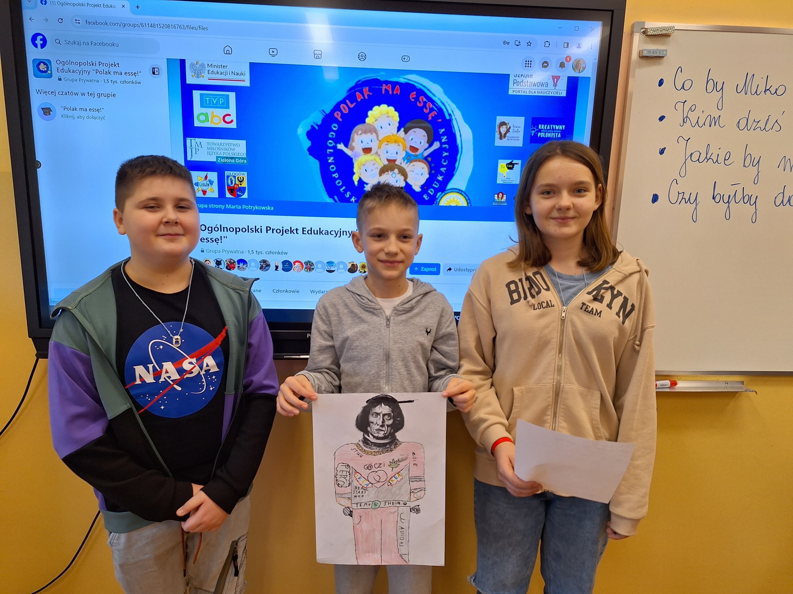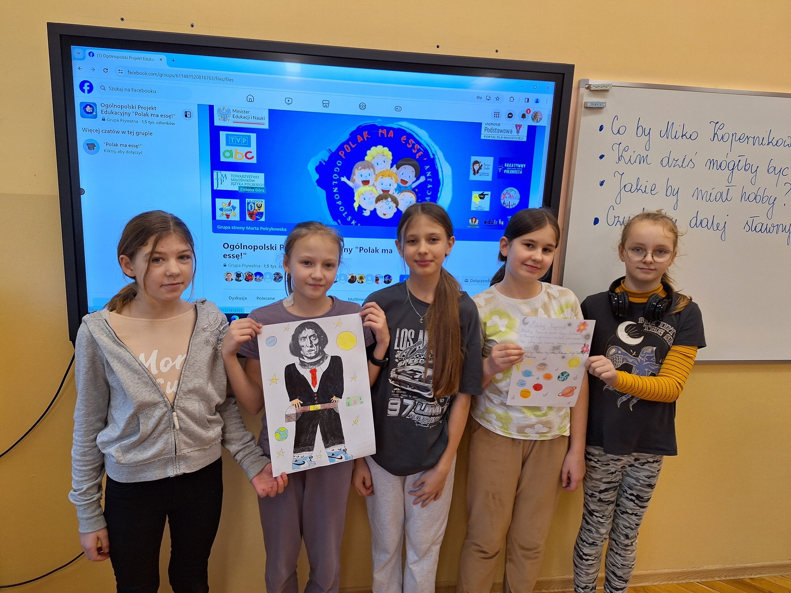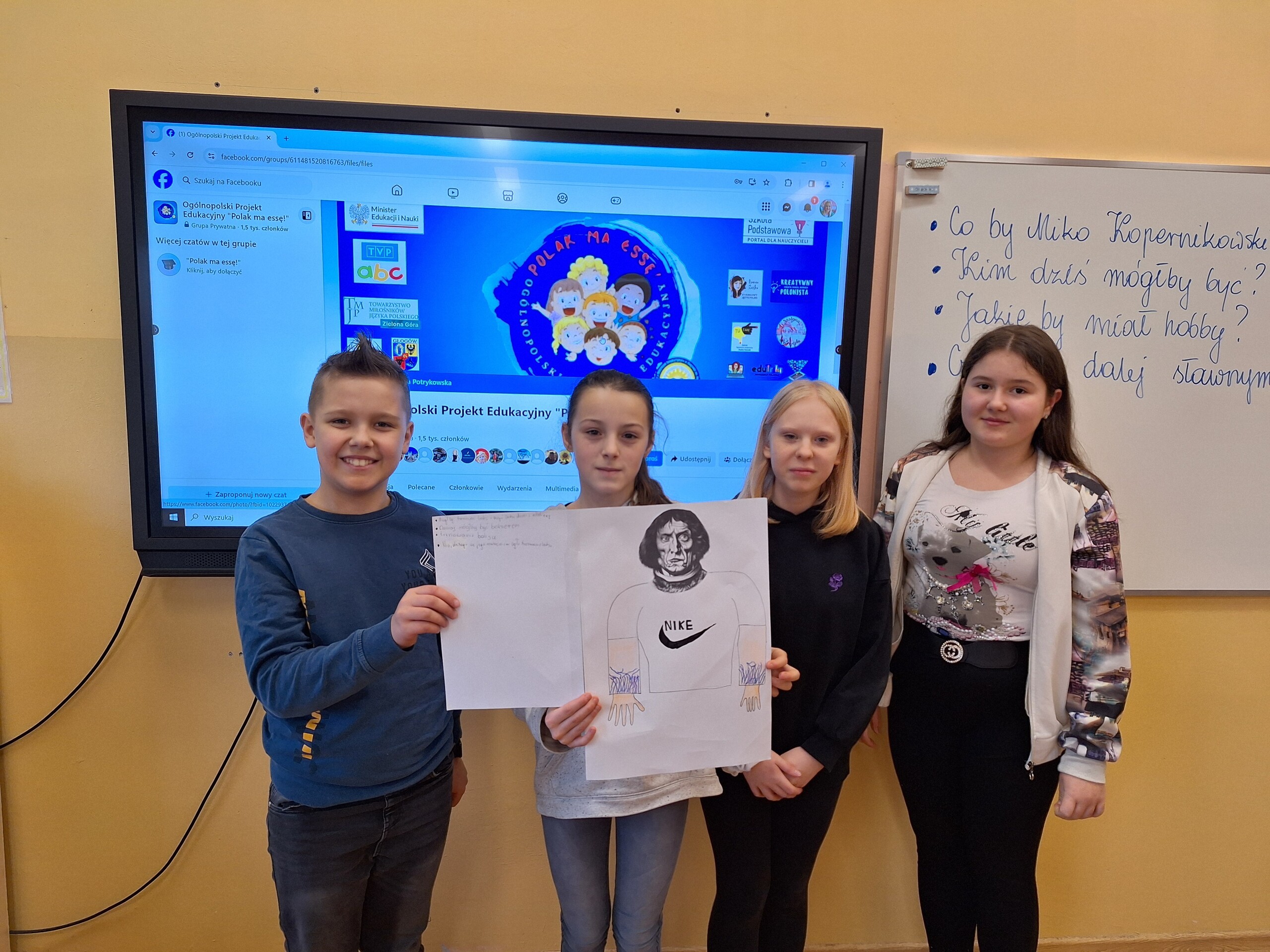 W nowym zadaniu Ogólnopolskiego Projektu Edukacyjnego „Polak ma essę” uczniowie klasy 5, na lekcji języka polskiego, mieli przedstawić Kopernika w nowej odsłonie. Rozpoczęli pracę od zapoznania się z postacią polskiego uczonego . Obejrzeli film, z którego dowiedzieli się, czym zasłynęła ta postać. Nasi uczniowie dali się ponieść fantazji. Mieli przy tym sporo radości! Najbardziej zaintrygowała ich powierzchowność polskiego astronoma. Niektórzy uważali ją za groźną, a inni za dumną i dystyngowaną. Mikołaj Kopernik jako astronauta, policjant, a może... sportowiec? Gdyby Mikołaj Kopernik żył współcześnie byłby naukowcem, bokserem, koszykarzem i drillowcem... Nasz wielki uczony z pewnością byłby bardzo zaskoczony w jakich rolach widzą go uczniowie klasy 5.