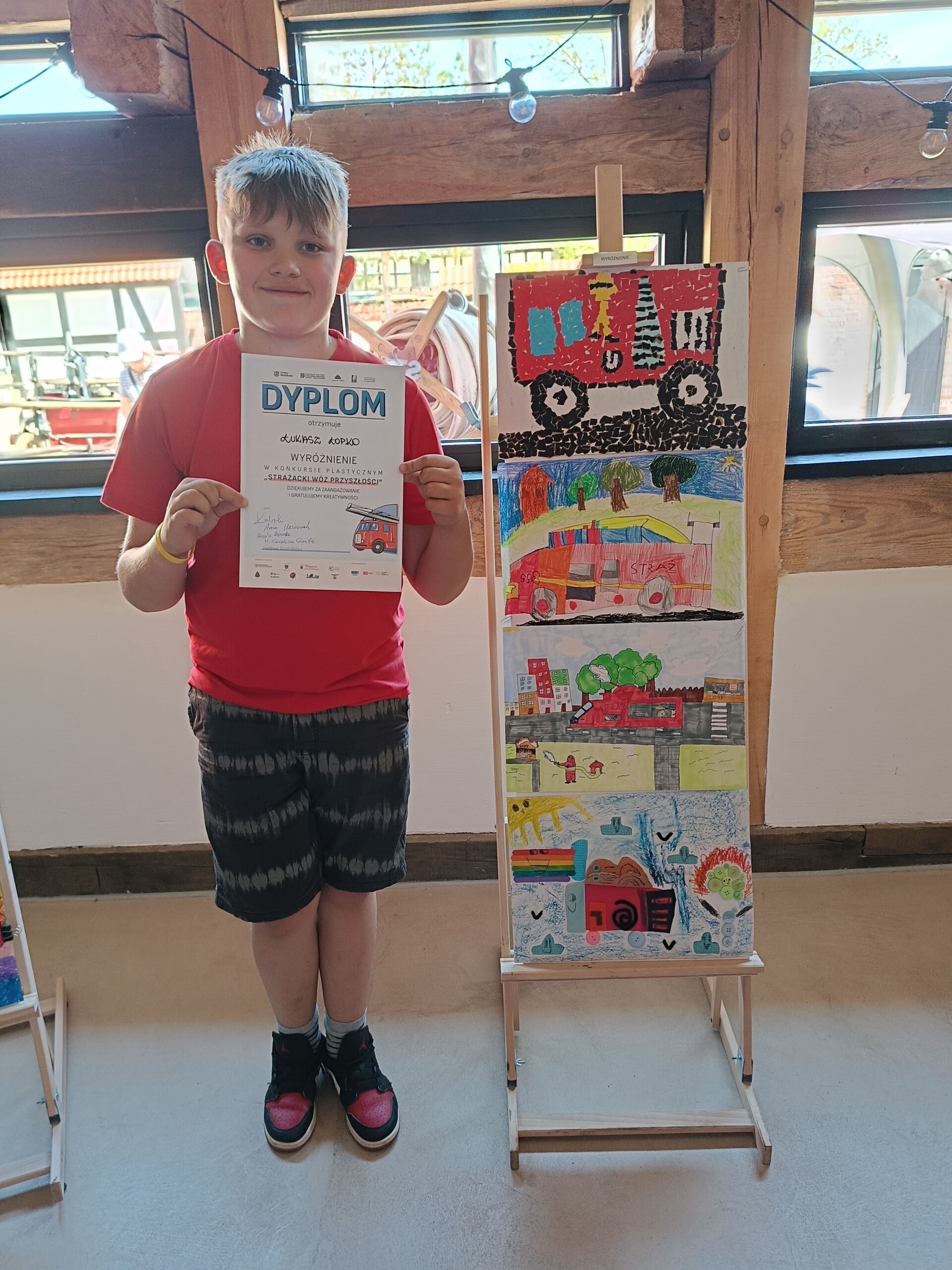 Uczniowie naszej szkoły Hanna Jaskulska, Zuzanna Jeka, Filip Jeka, Aleksander Bartnik i Łukasz Łapko, którzy są druhami Młodzieżowej Drużyny Pożarniczej w Łebieniu, wzięli udział w Ogólnopolskim Konkursie Plastycznym „Strażacki Wóz Przyszłości”. Na konkurs wpłynęło ponad 120 prac nadesłanych przez dzieci z całej Polski. Nasi uczniowie zajęli wysokie miejsca na podium.