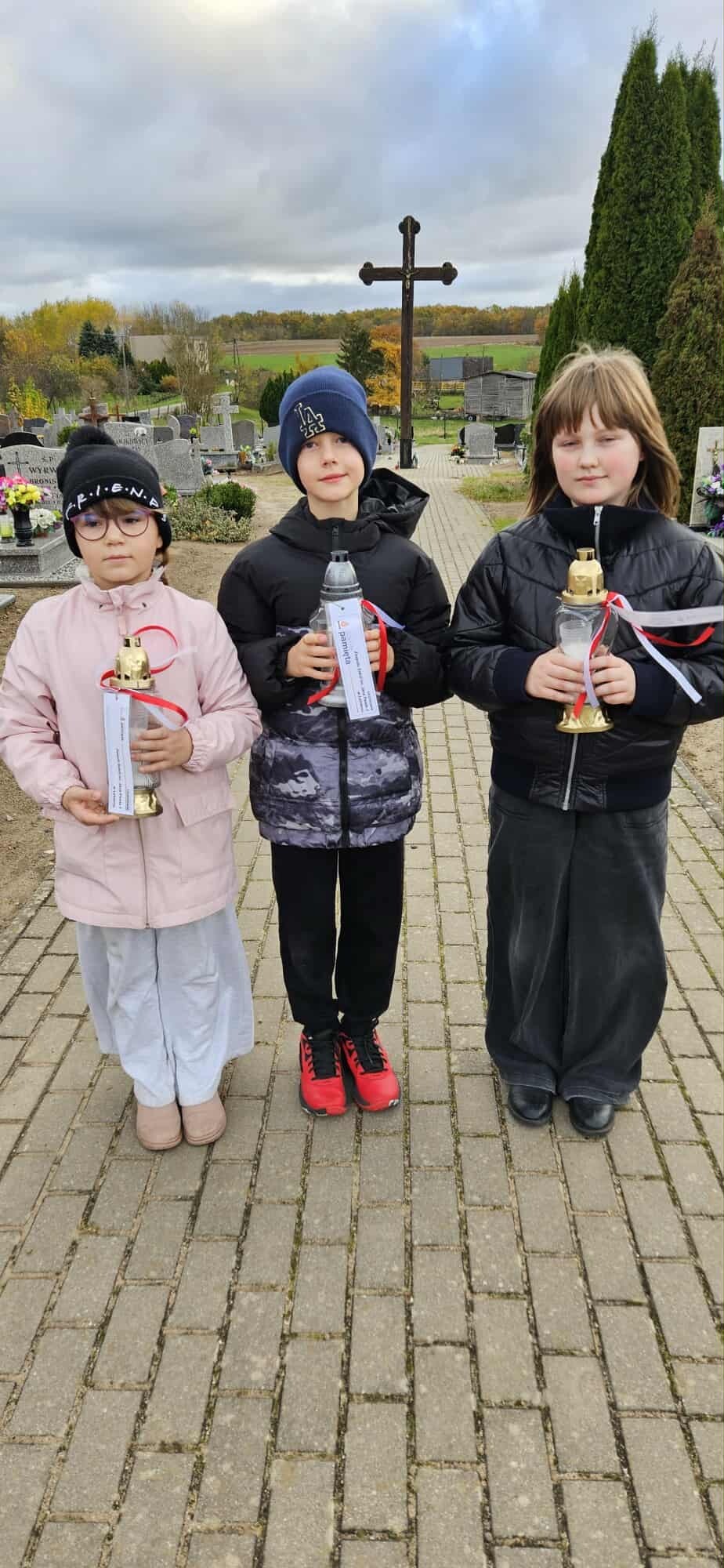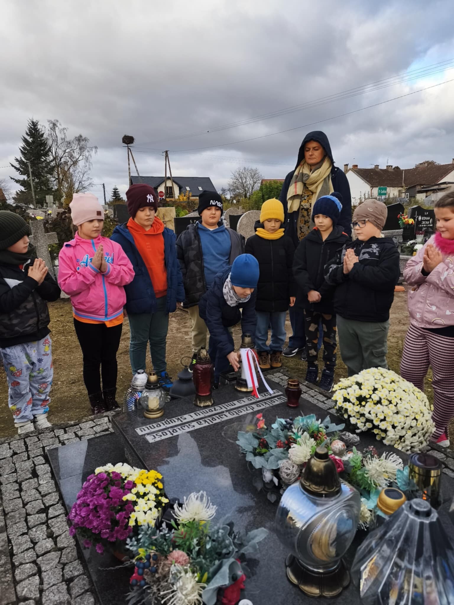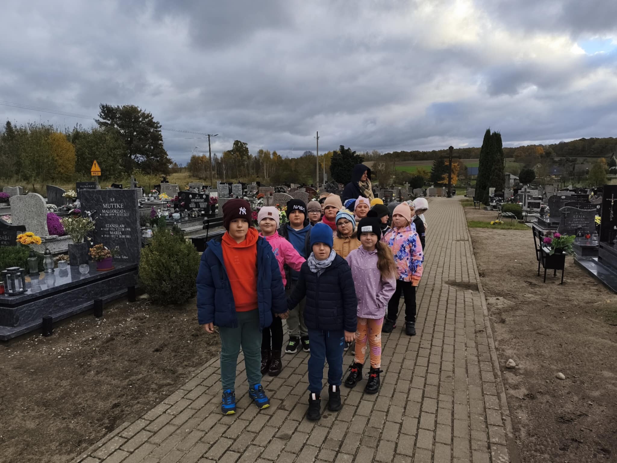 Pod koniec października, w czasie poprzedzającym Dzień Wszystkich Świętych i Zaduszki, uczniowie i nauczyciele naszej szkoły oraz przedszkolaki wybrali się na cmentarze, by uczcić pamięć tych, którzy odeszli. Odwiedzili groby byłych dyrektorów, nauczycieli i pracowników szkoły, a także osób szczególnie zasłużonych dla naszej społeczności — sołtysów, strażaków i samorządowców.
