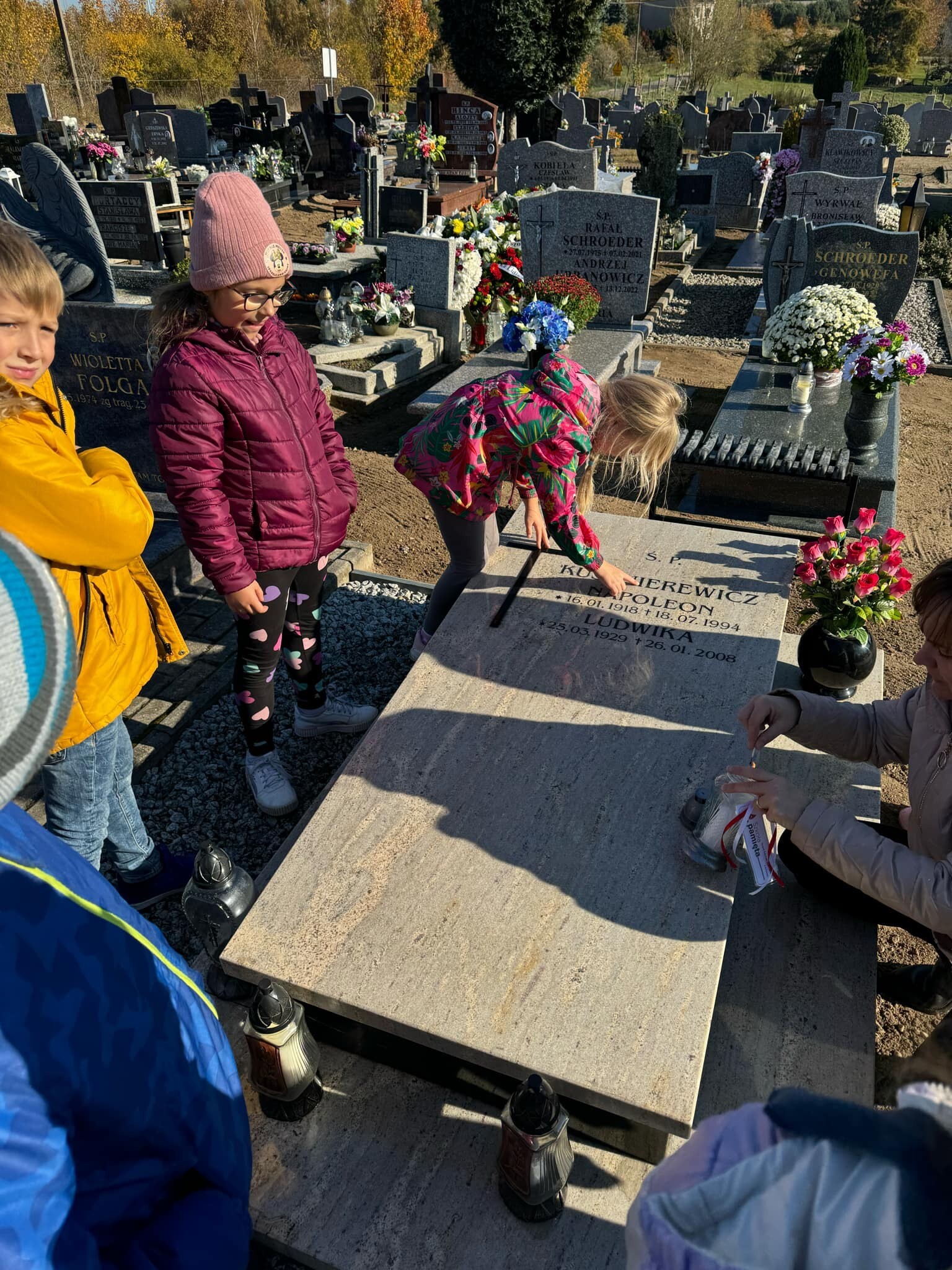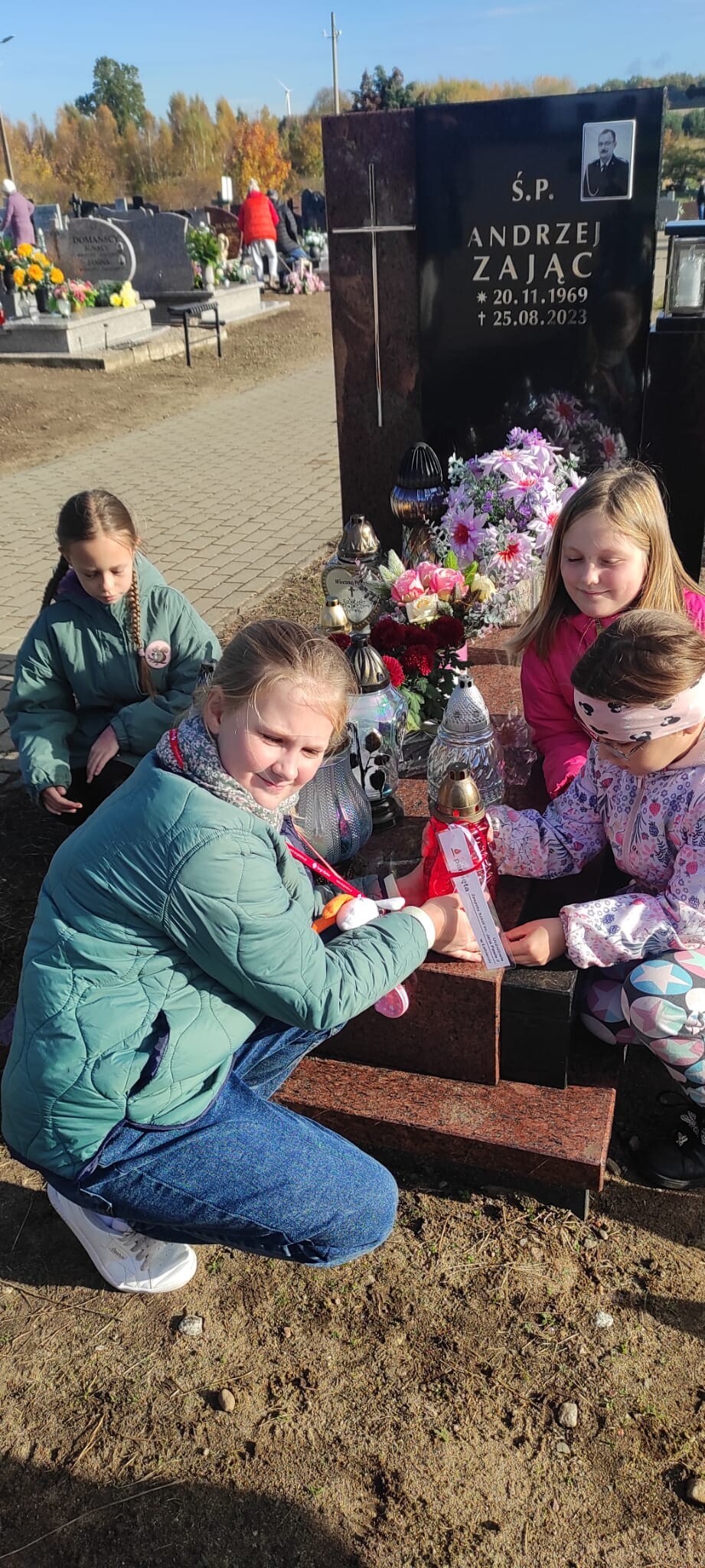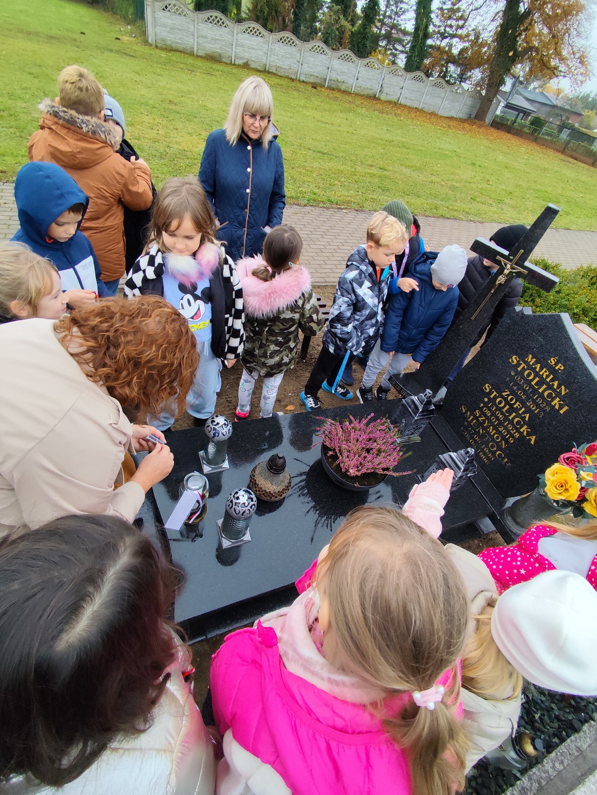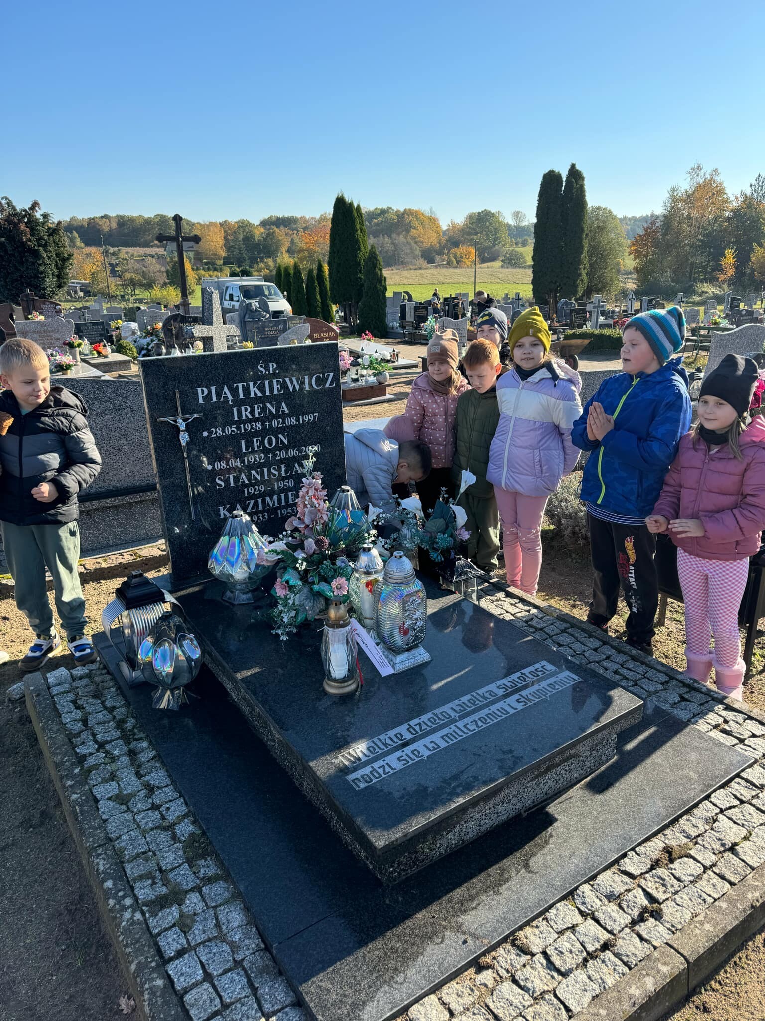 W końcu października przed Dniem Wszystkich Świętych i Zaduszkami uczniowie i nauczyciele naszej szkoły i wychowankowie przedszkola odwiedzili cmentarze, na których znajdują się groby byłych dyrektorów, nauczycieli i pracowników naszej szkoły, a także osób, które zapisały się w pamięci mieszkańców naszej społeczności lokalnej: sołtysi, strażacy, pracownicy administracji samorządowej. Na znak pamięci, uczniowie zapalili symboliczne znicze.