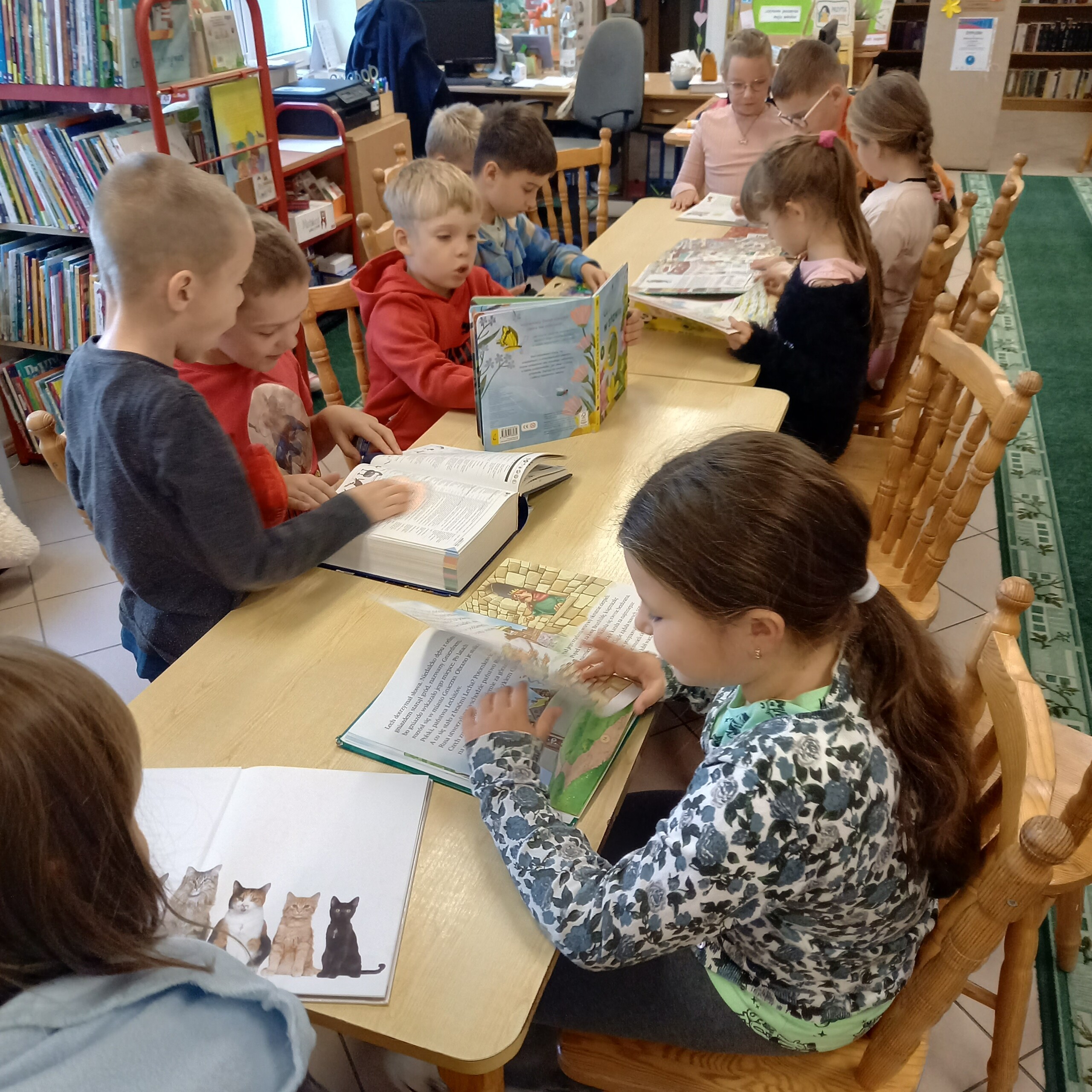 - Pierwszoklasiści w szkolnej bibliotece