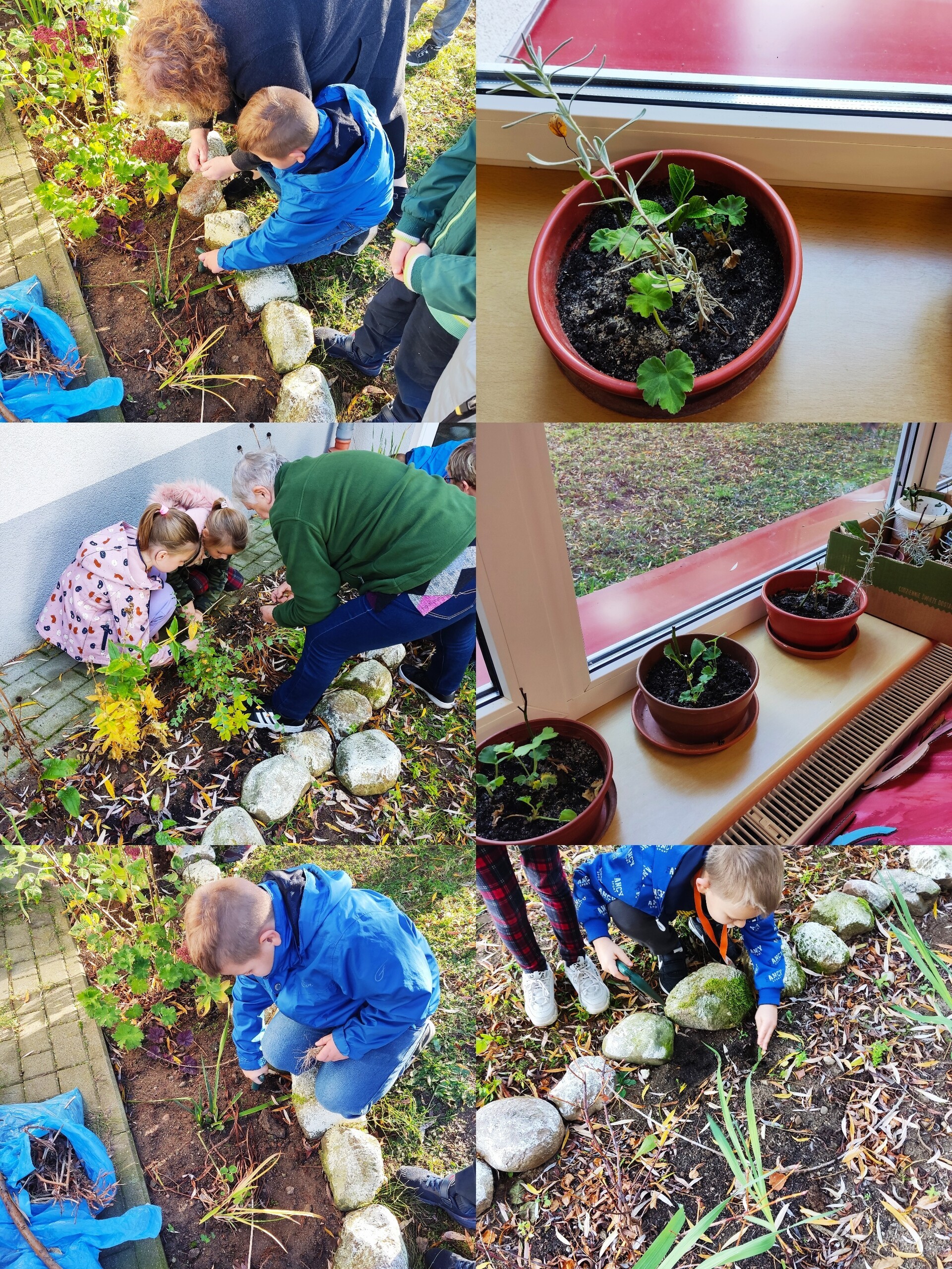 - Współpraca z" Biblioteką pod chmurką "poszerzanie wiedzy na temat drzew, krzewów oraz kwiatów. Sadzenie kwiatów oraz sianie trawy.