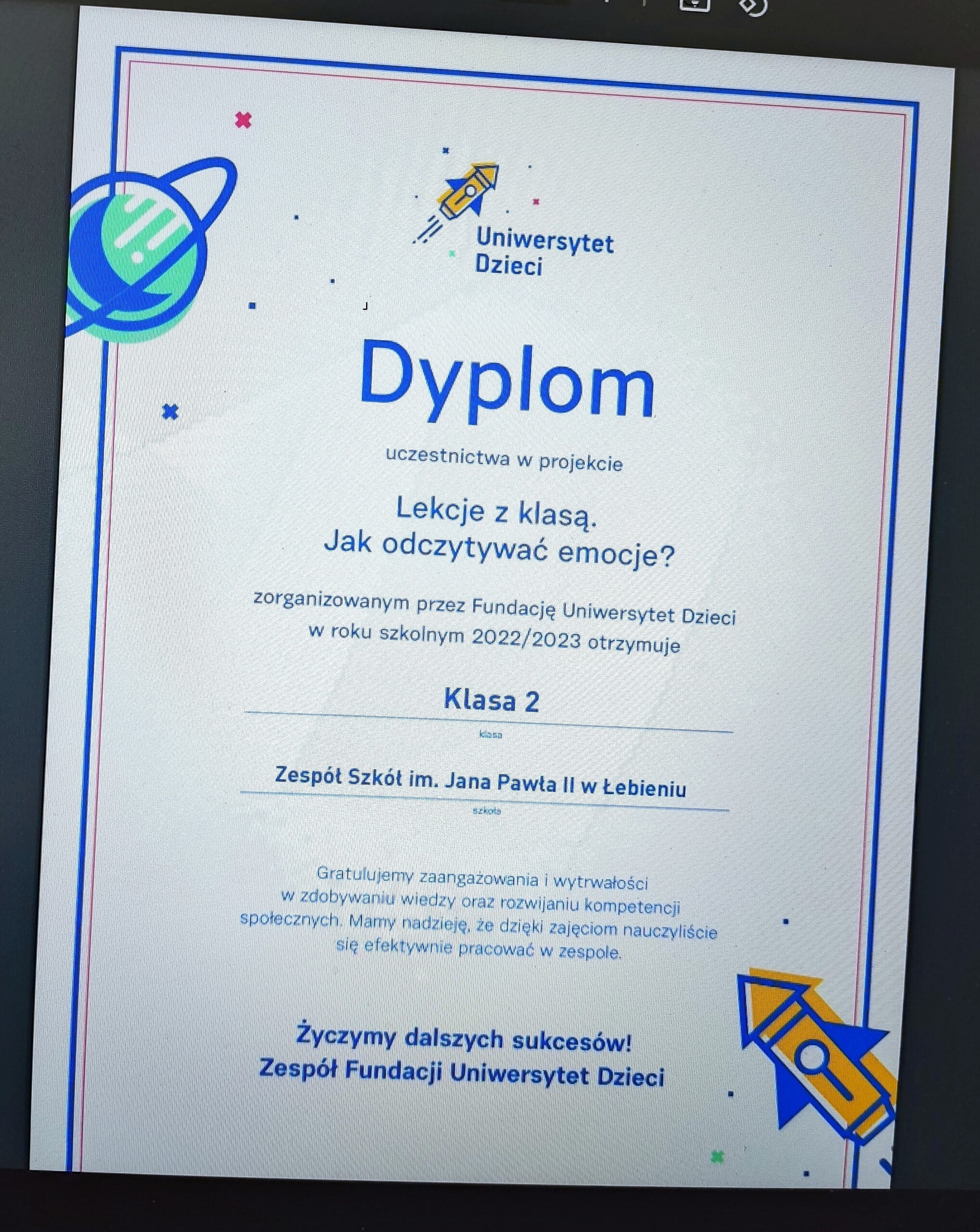 - Podsumowanie projektu edukacyjnego „Lekcje z klasą. Jak odczytywać emocje?"