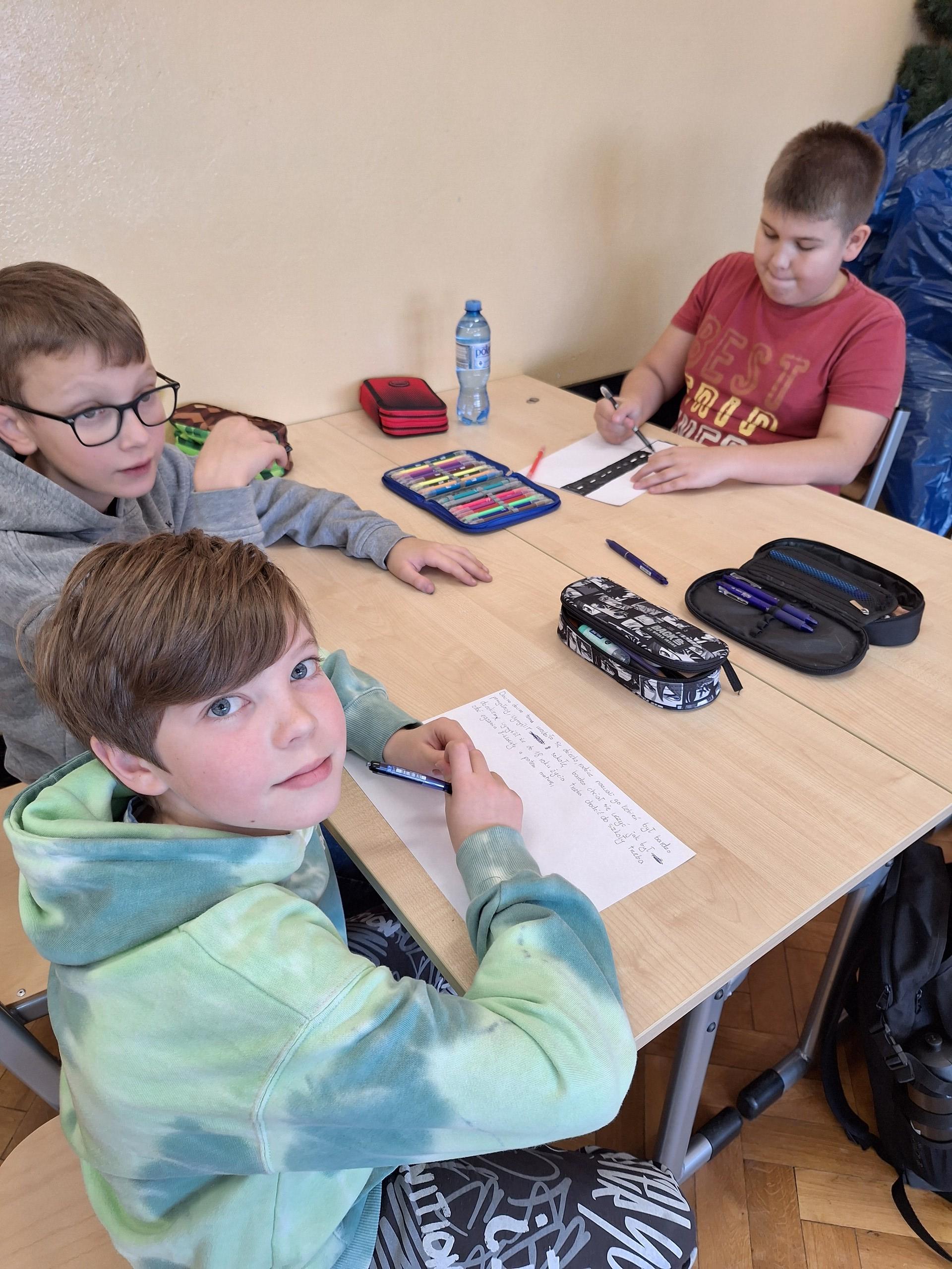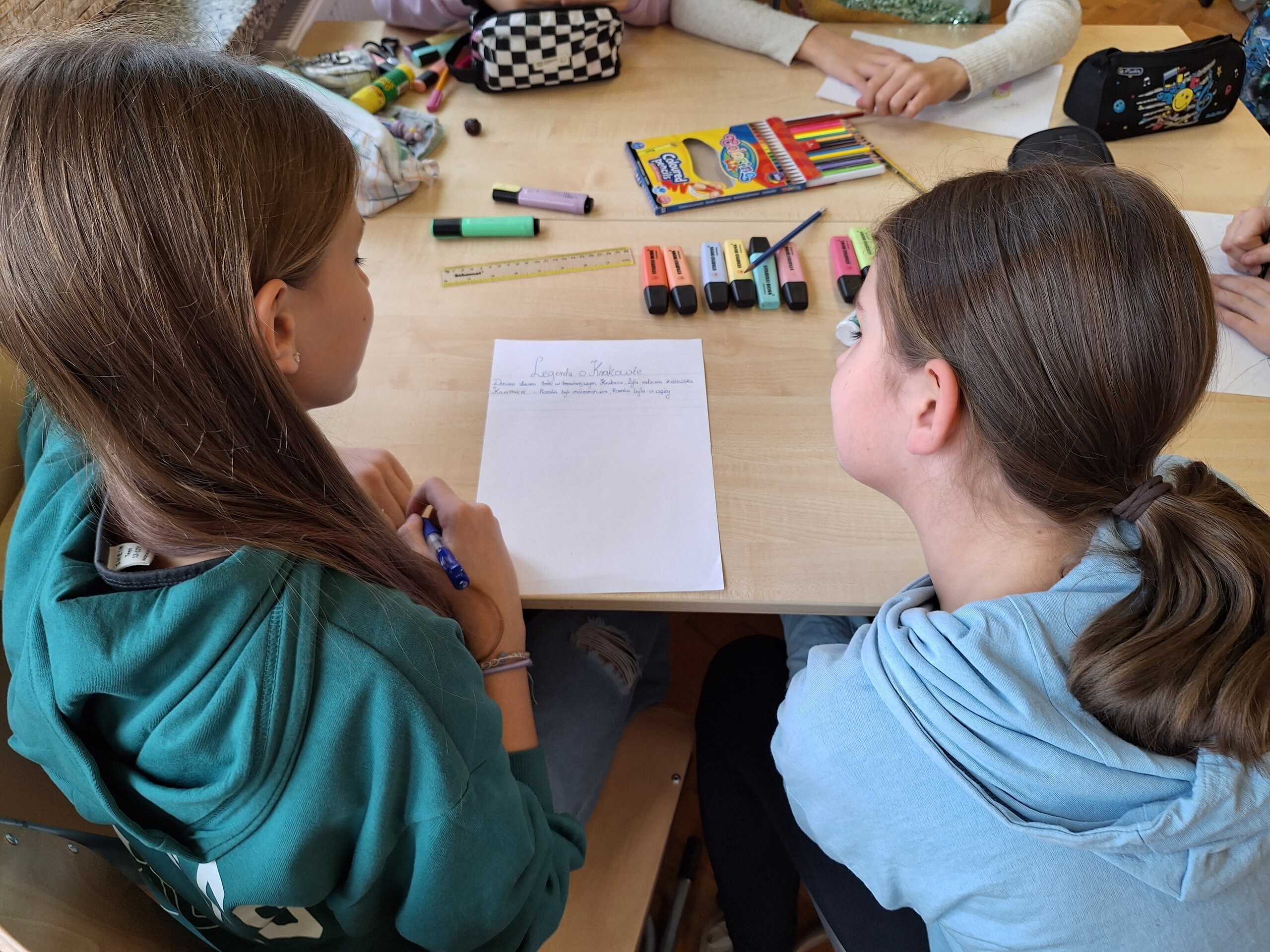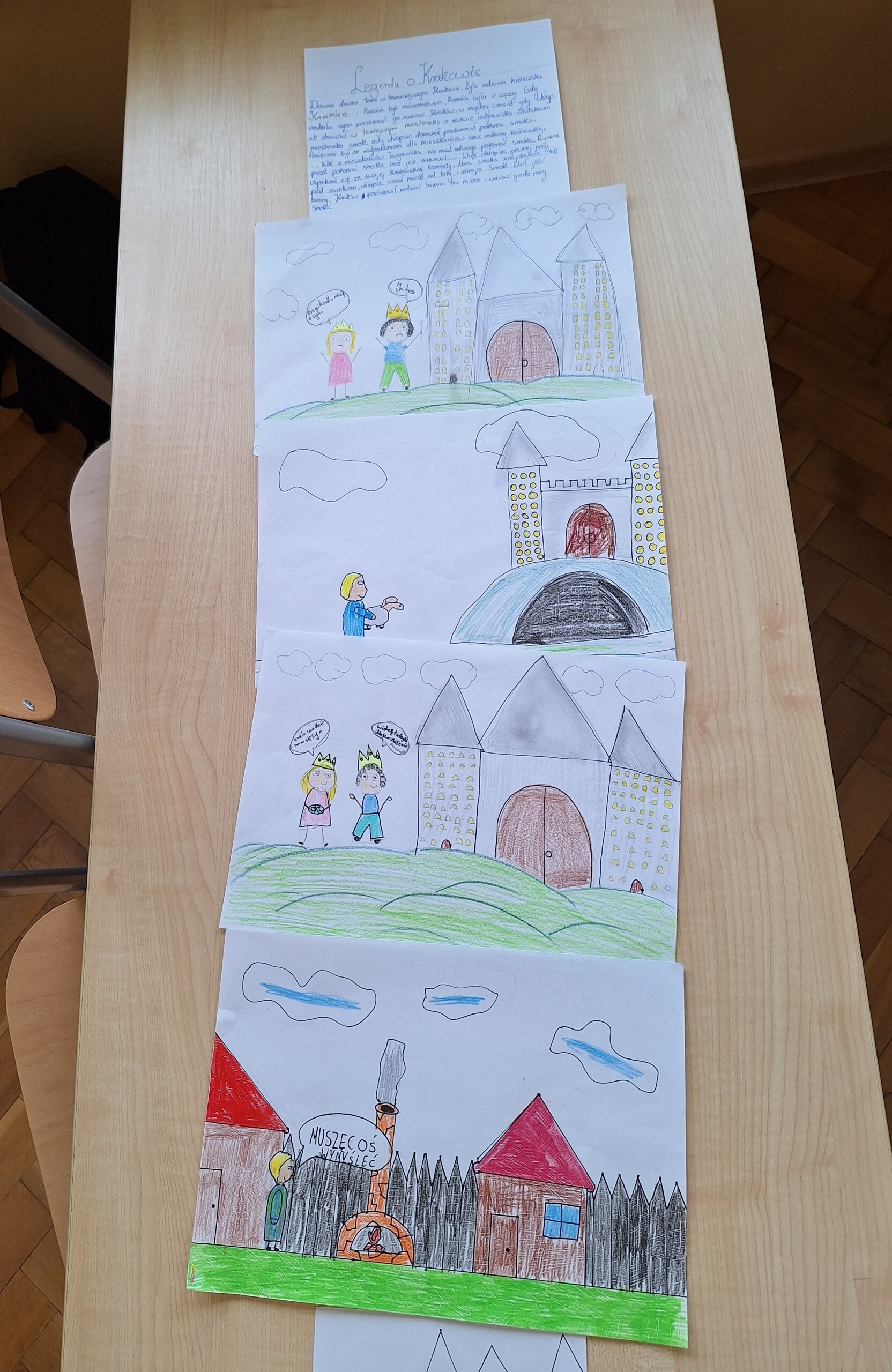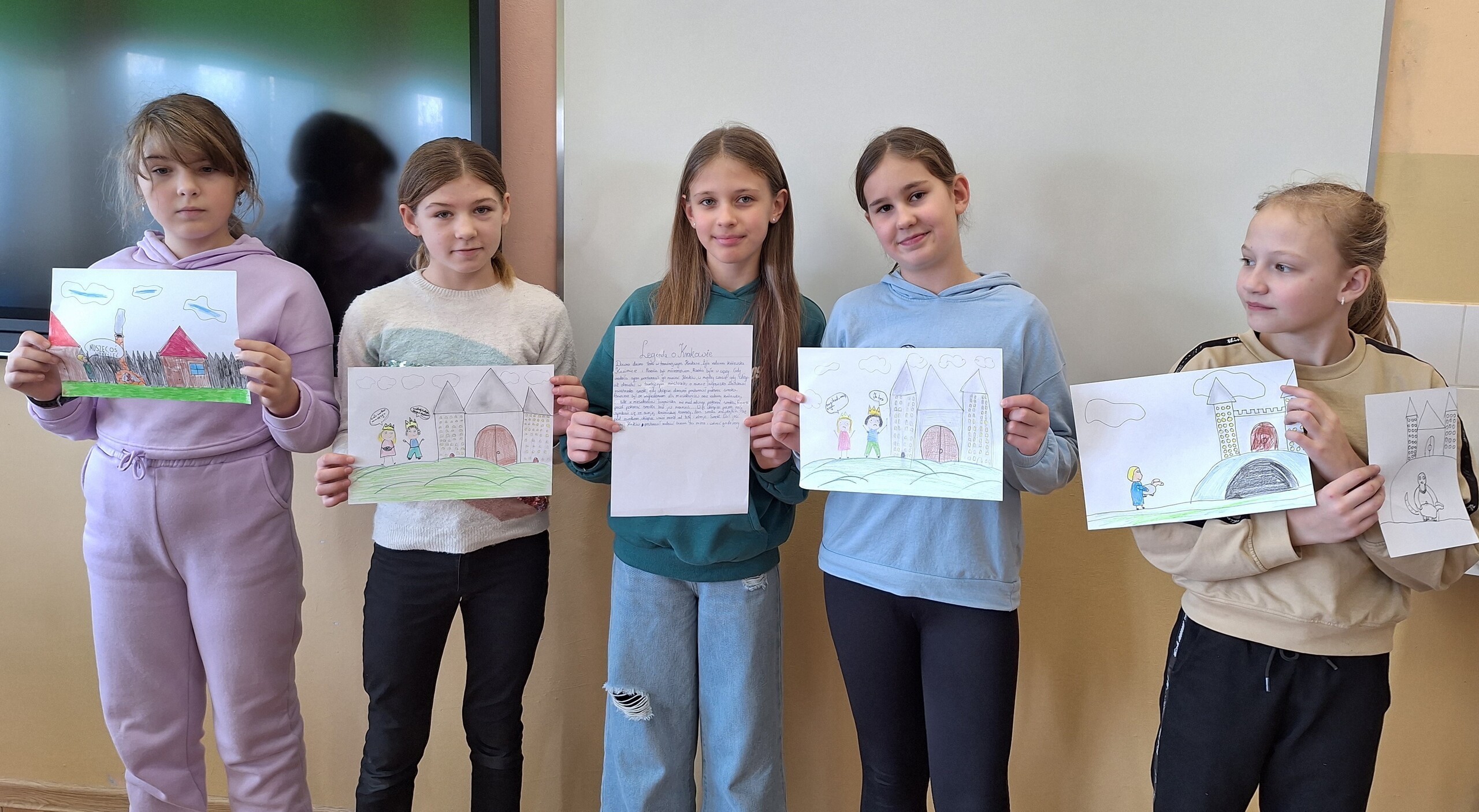 Kolejne zadanie wykonane! Na lekcji języka polskiego klasa 5 wykonała kolejne zadanie z Projektu "Polak ma essę". Tym razem uczniowie zmierzyli się z zadaniem 7, czyli "Legendy na propsie". Zaczęliśmy od przypomnienia trzech legend: „O Lechu, Czechu i Rusie”, „Wars i Sawa” i „ O smoku wawelskim”. Następnie uczniowie postanowili napisać własne autorskie legendy i wykonać do nich ilustracje. Efekty zaskoczyły samych uczniów, dzieci nie zdawały sobie sprawy ze swojej bujnej wyobraźni. Zabawy i śmiechu było niemiara.