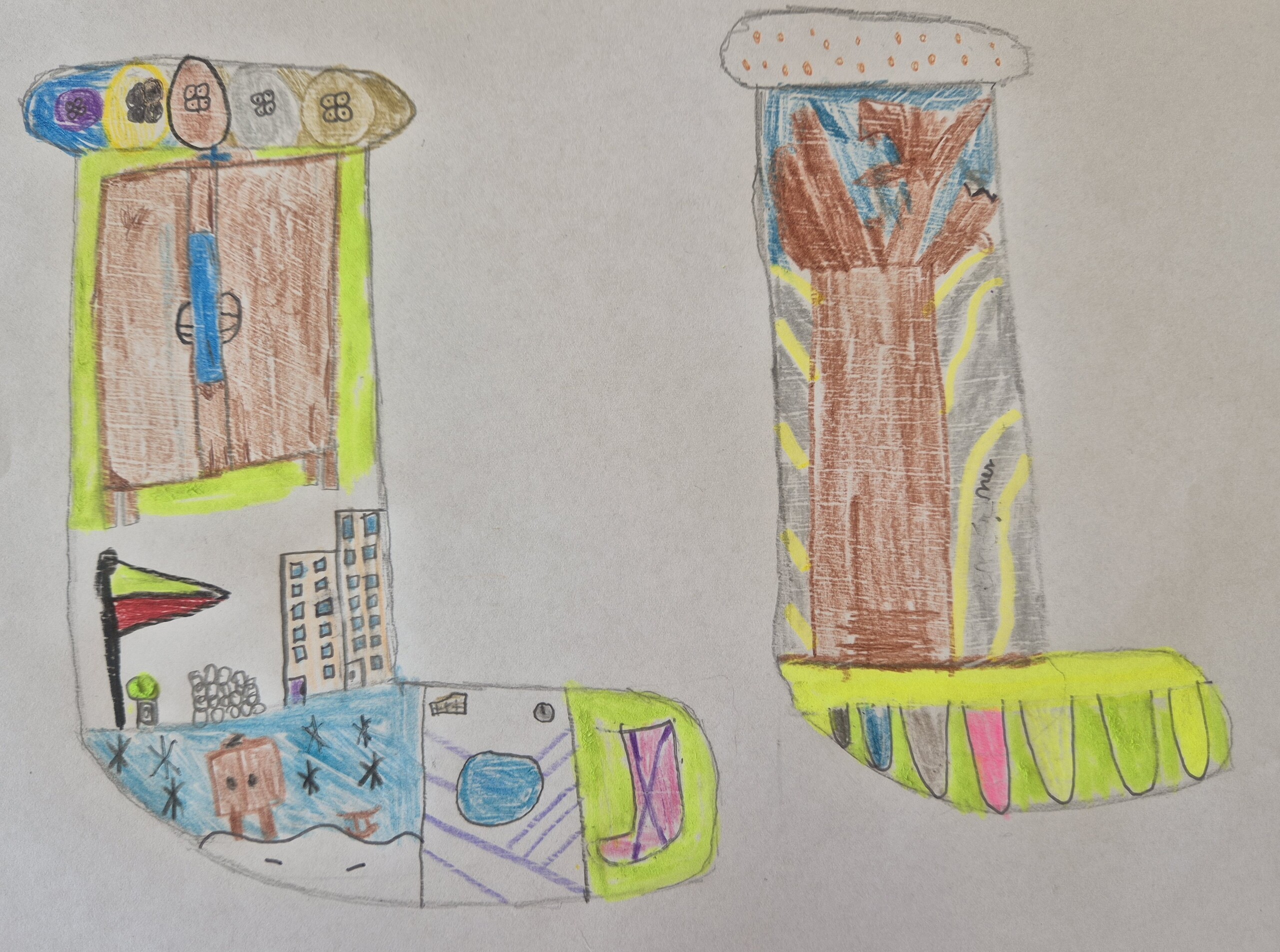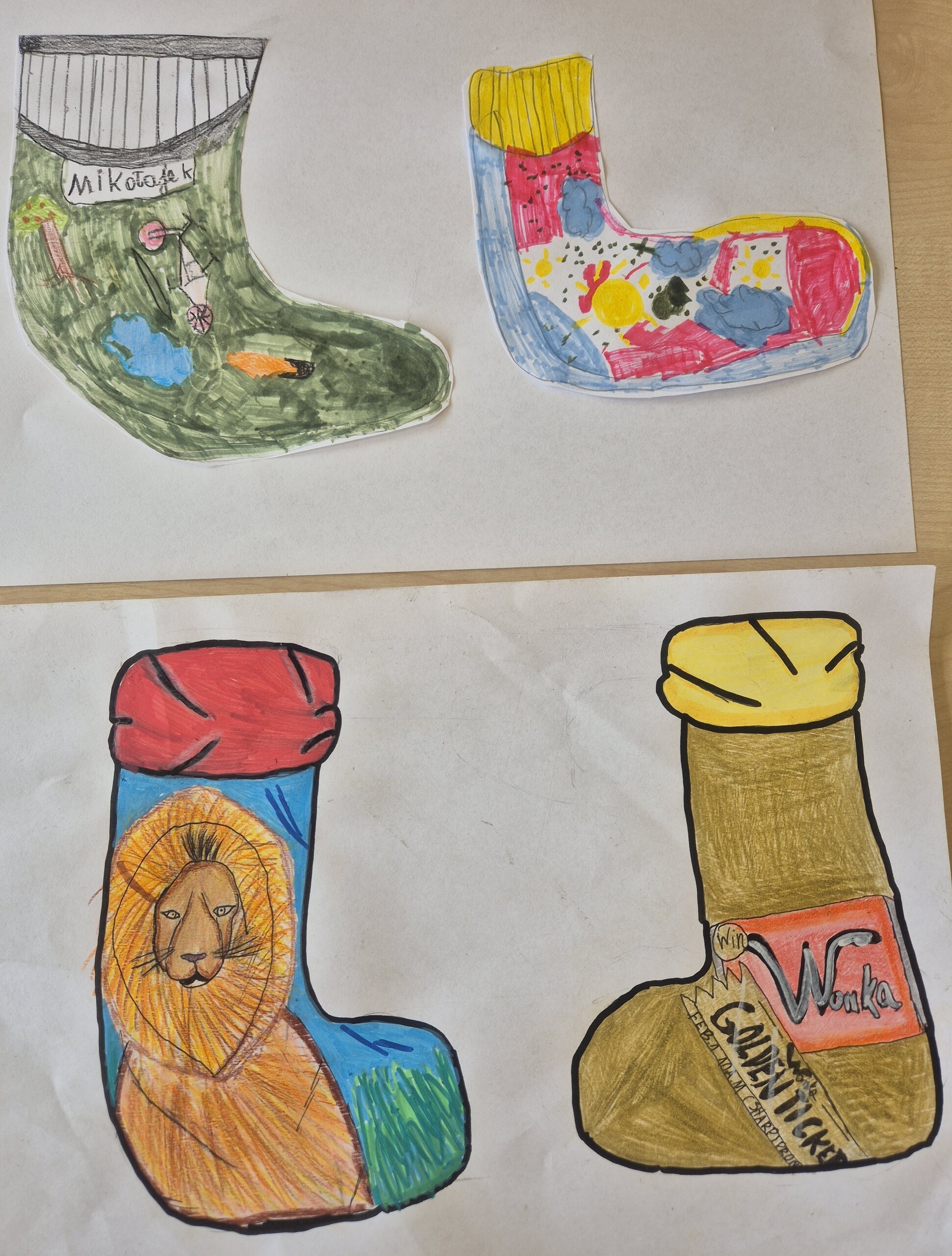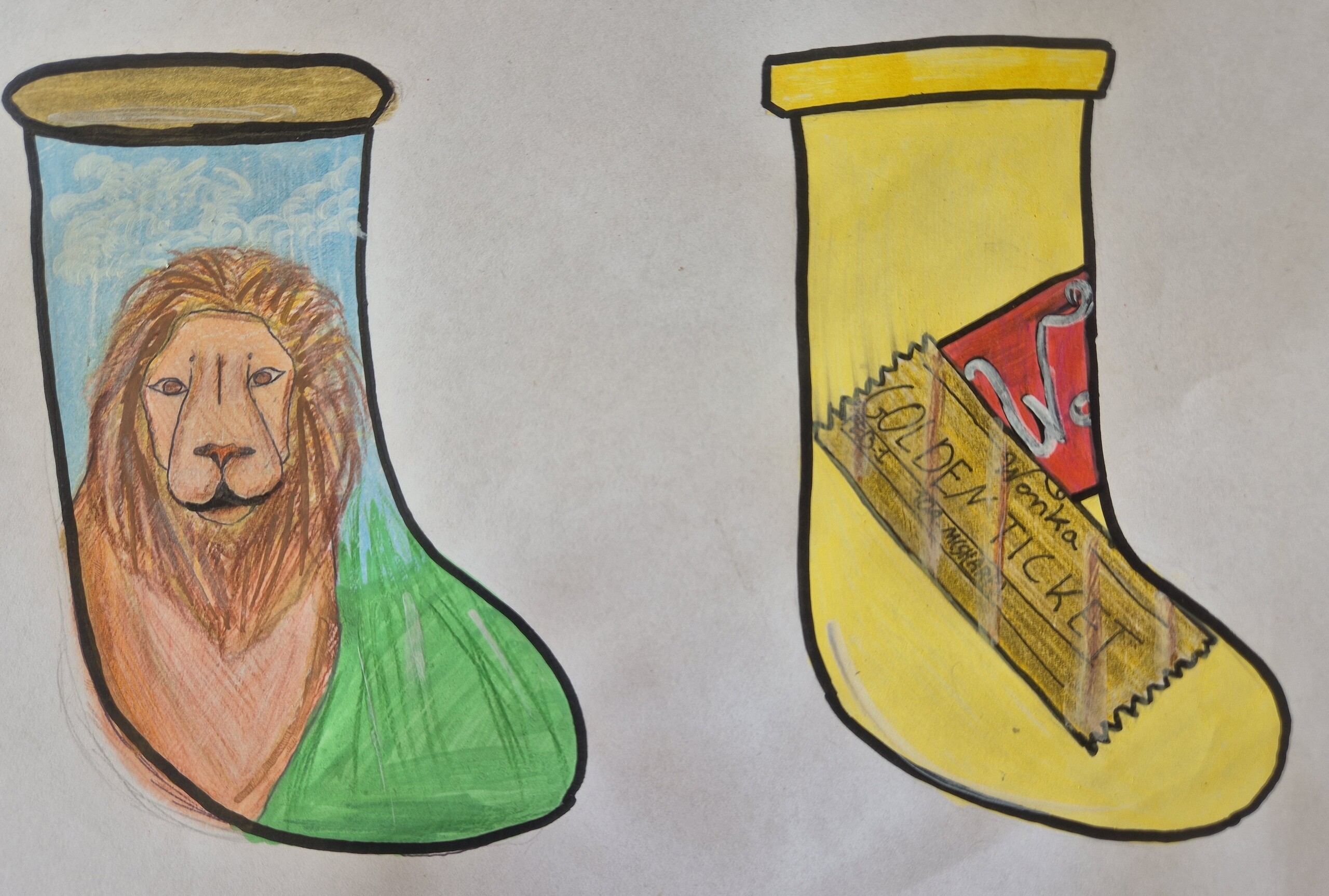 "Skarpetki nie do pary" to kolejne zadanie, z którego uczniowie klasy 5 wywiązali się w ramach Ogólnopolskiego Projektu Edukacyjnego "Polak na essę!2". Piątoklasiści zaprojektowali skarpetki, na których umieścili symbole graficzne związane z ulubionymi lekturami omawianymi podczas lekcji języka polskiego. To zadanie było inspiracją i naszym powtórzeniem wiedzy dotyczącej elementów świata przedstawionego w dotychczas poznanych utworach. Oto plastyczne efekty.