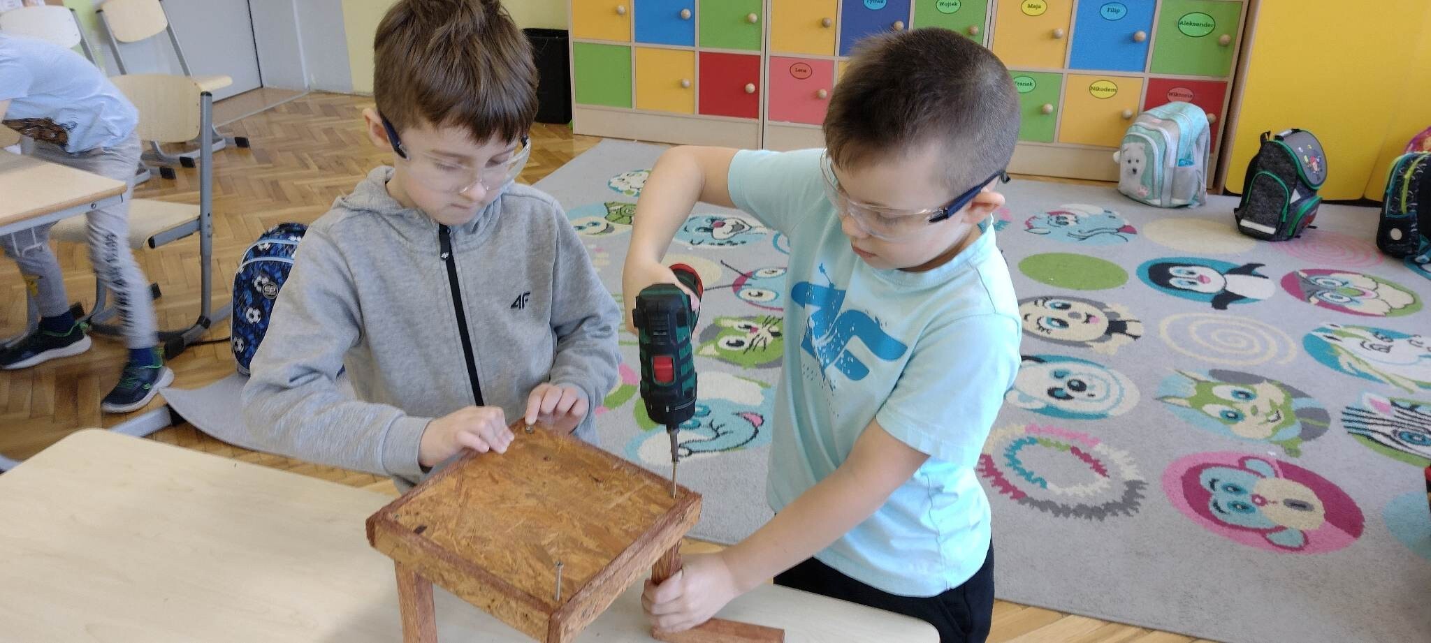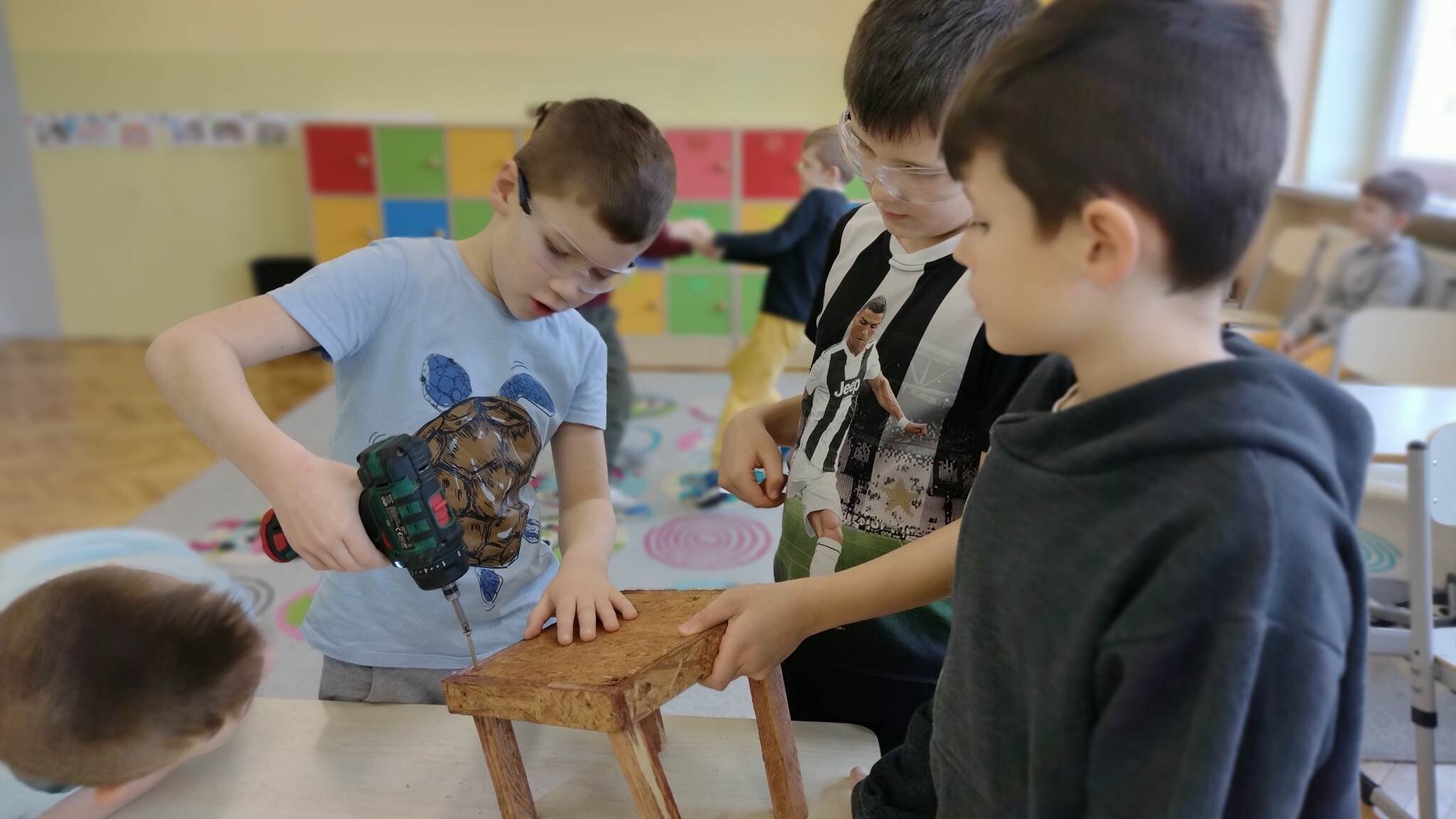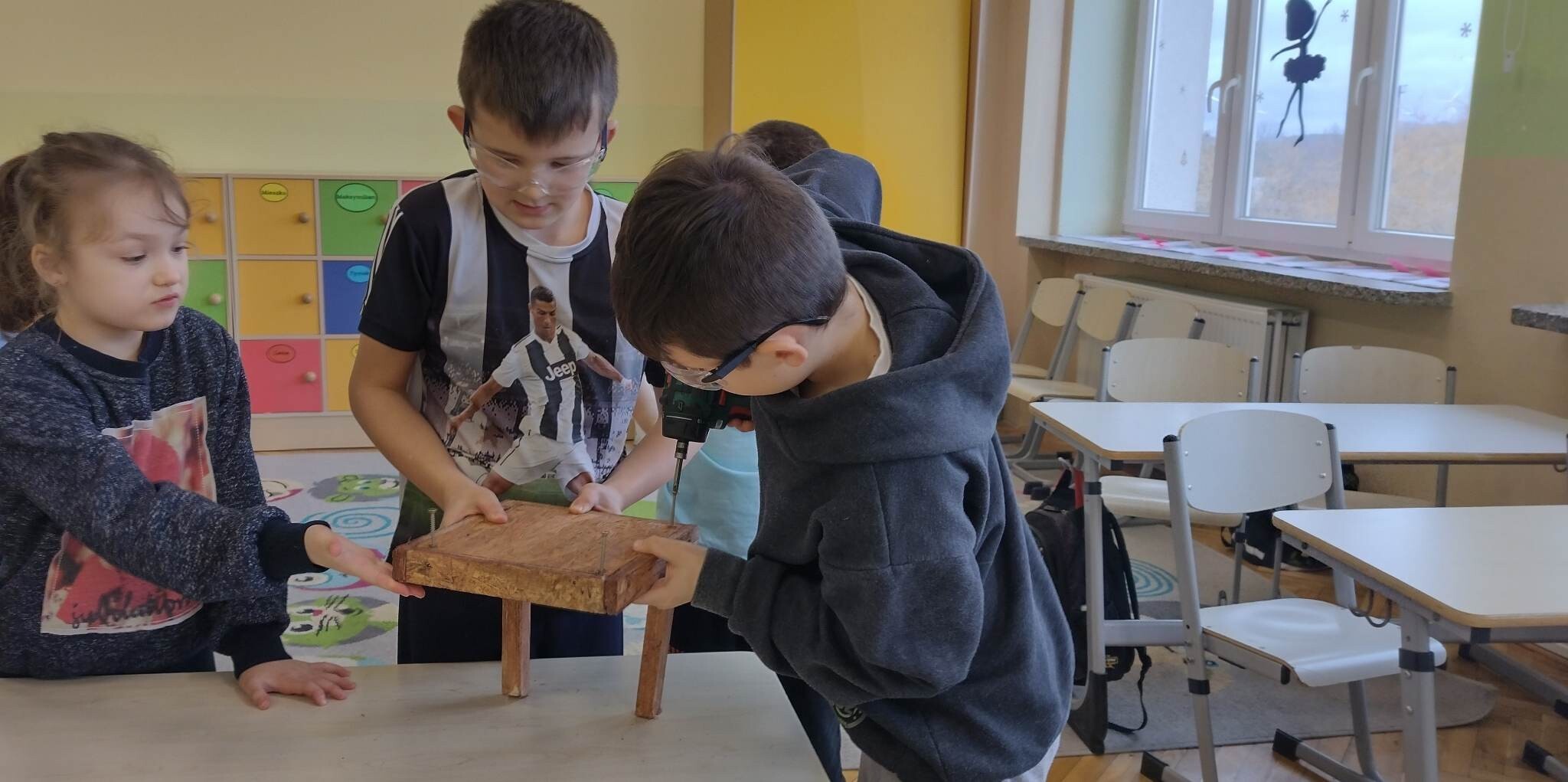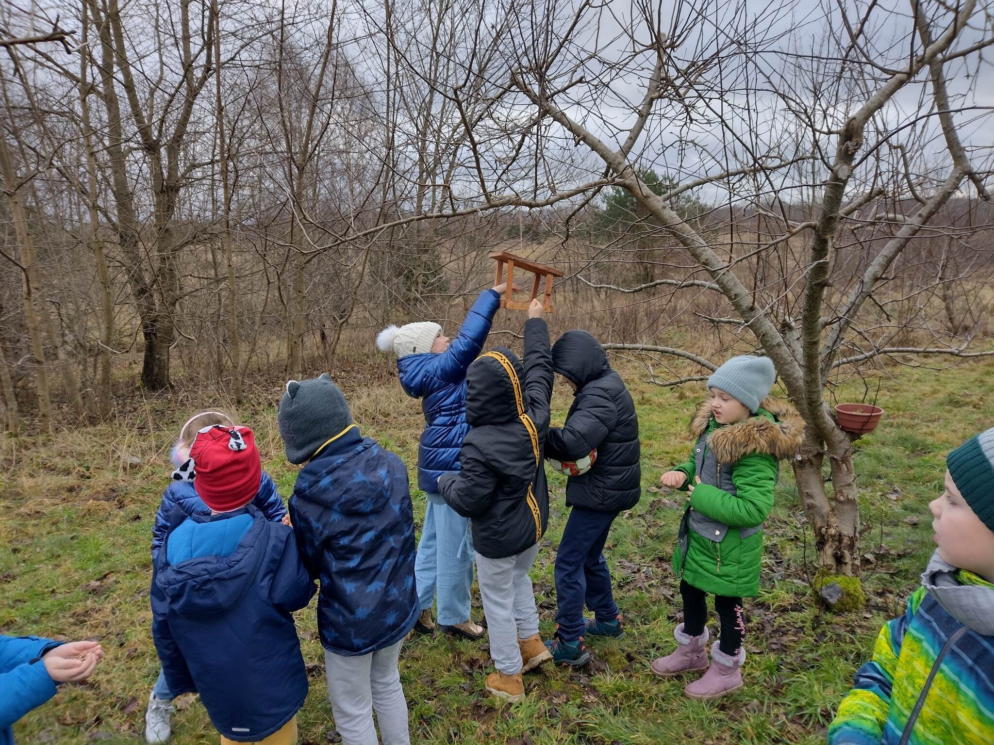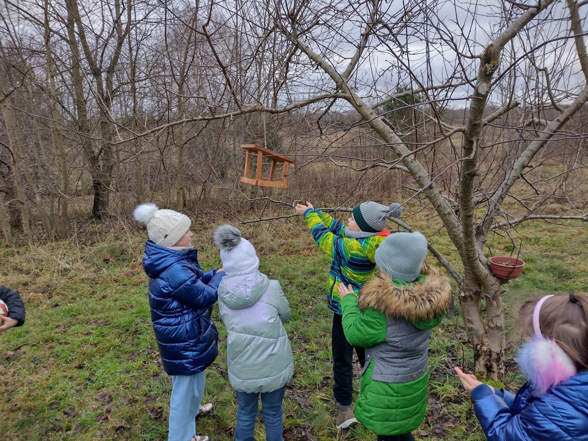Wykonali samodzielnie dwa karmniki, które powiesili na drzewach w szkolnym sadzie. Następnie uczniowie zadbali o napełnienie karmników odpowiednim pożywieniem. Zawiesili na gałęziach także inne smakołyki dla ptaków.