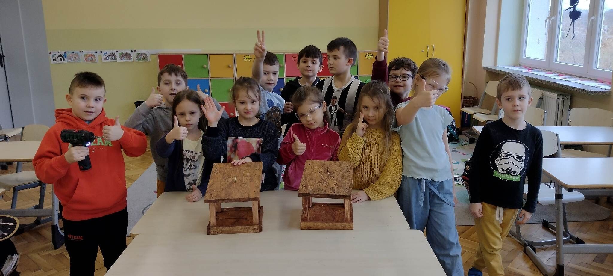 Zima to najtrudniejszy czas dla ptaków zimujących w naszej strefie klimatycznej. Chodź śnieżna i mroźna zima jeszcze nie nadeszła, to i tak uczniowie klasy pierwszej postanowili im pomóc. Podczas lekcji poznali ptaki, które odlatują do ciepłych krajów, te, które zostają, a także takie, które na zimę do nas przylatują.