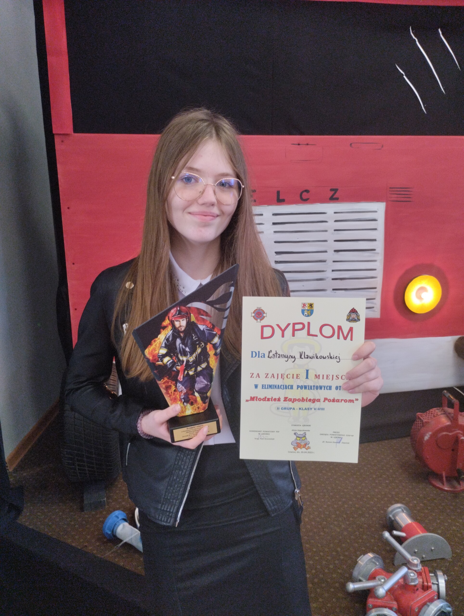 Dnia 20.04.2023 r. W Gminnym Centrum Kultury w Cewicach odbył się Powiatowy Turniej Wiedzy Pożarniczej "Młodzież Zapobiega Pożarom". I miejsce w starszej grupie wiekowej zajęła nasza uczennica Katarzyna Klawikowska. Kasia będzie reprezentowała Powiat Lęborski w etapie wojewódzkim turnieju. Wielkie brawa dla naszej reprezentantki za zajęcie I miejsca i ogromną wiedzę na temat ochrony przeciwpożarowej przekazaną przez Pana Marka Klicha. Gratulacje!