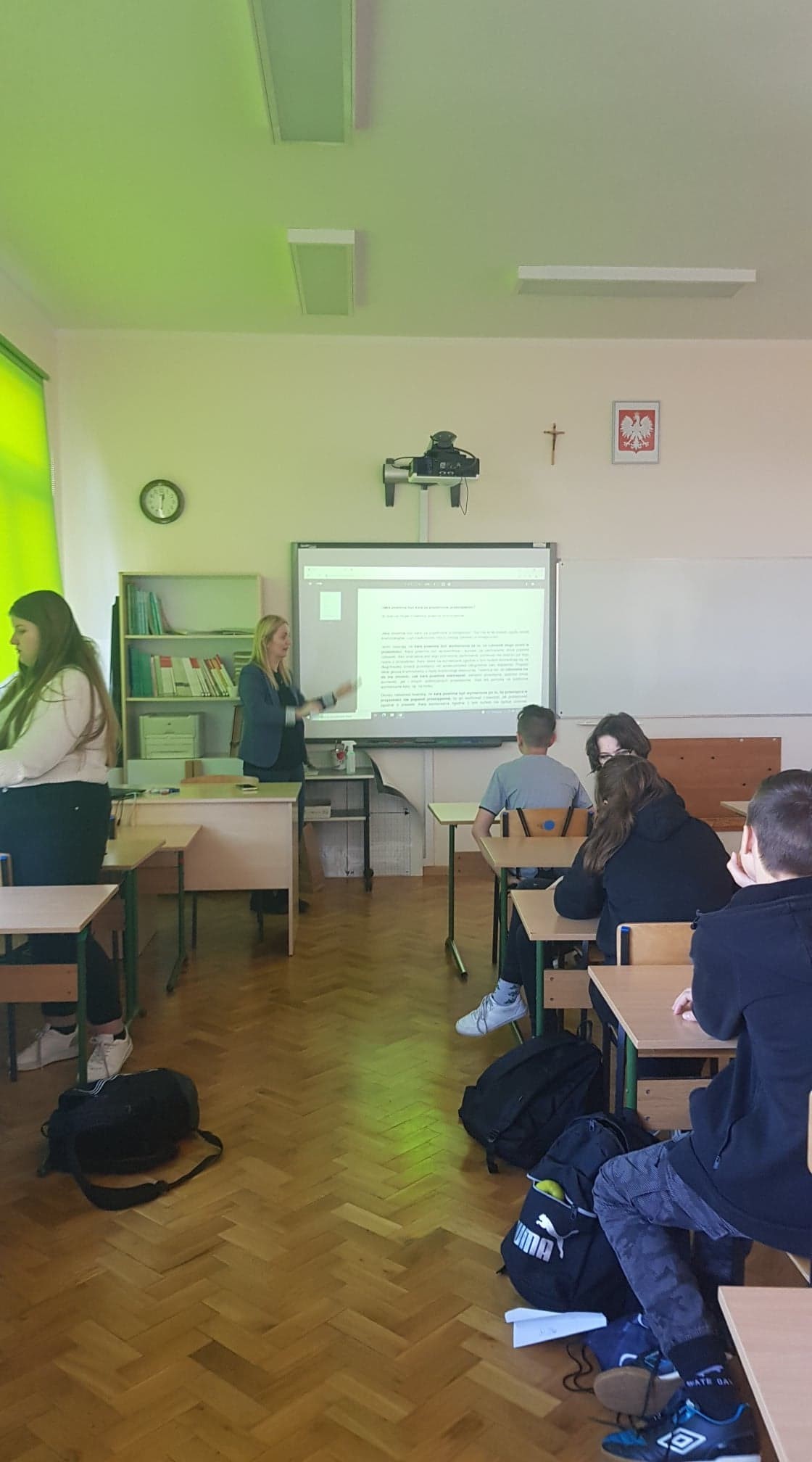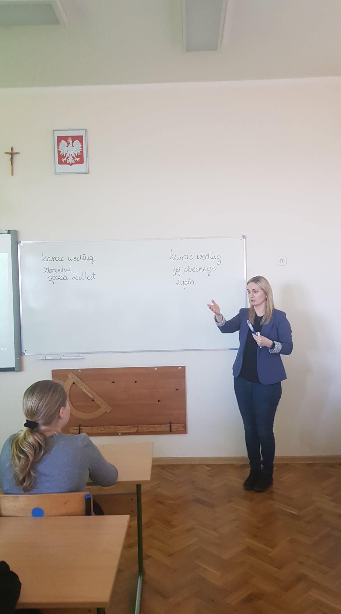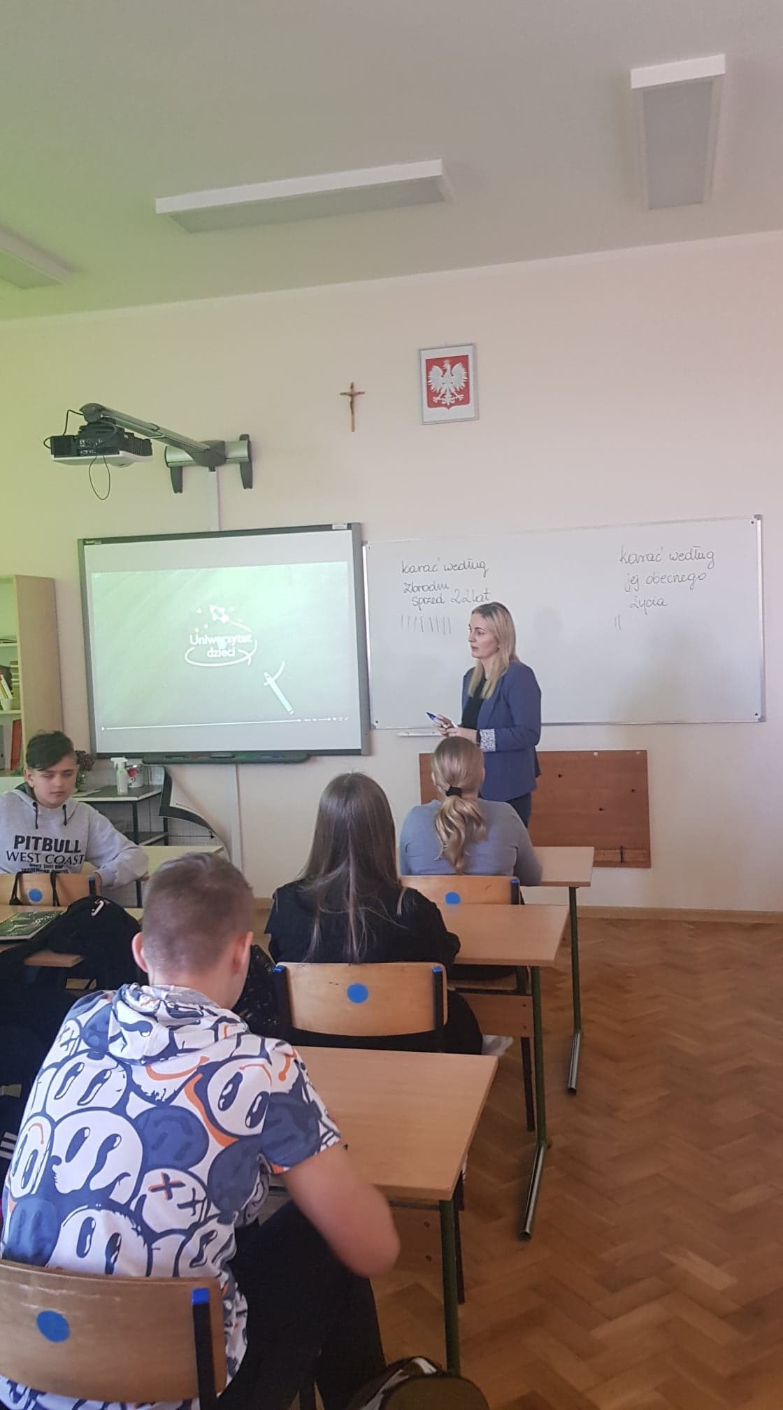 Uczniowie klasy 7 w ramach projektu "Ja w społeczeństwie. Jak mogę zmienić świat?", dyskutowali na bardzo ważny temat "Czy surowe karanie przestępców jest słuszne?". Zajęcia rozpoczęła projekcja wykładu prof. Andrzeja Zolla, który wyjaśniał jak trudne i zawiłe jest prawo karne. Opowiedział też prawdziwą historię, namawiając uczniów do rozmowy nad zadanym problemem. Wszyscy uczniowie mogli wyrazić swój pogląd, co pozwoliło poprowadzić ciekawą dyskusję.