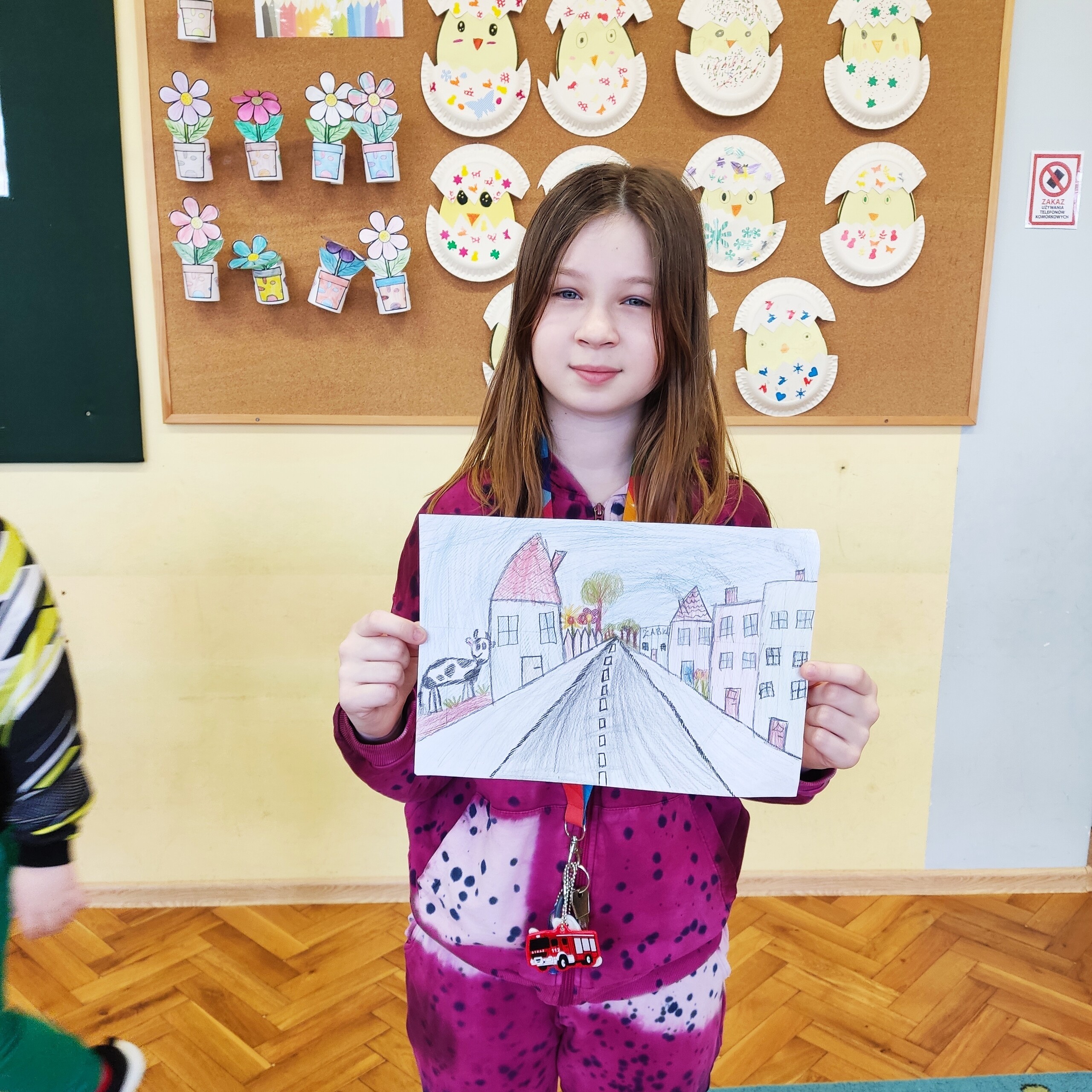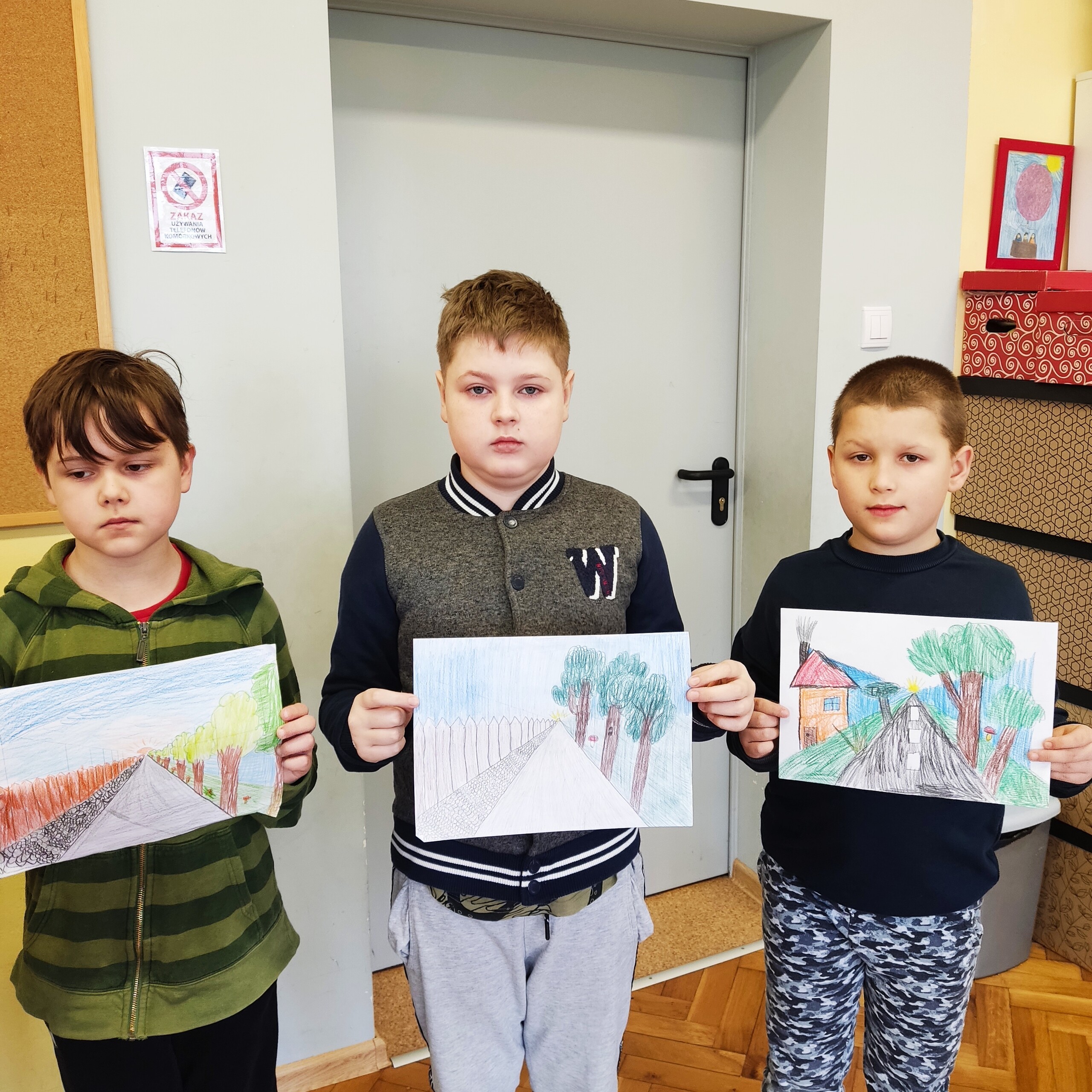 Zajęcia rozpoczął miniwykład, z którego uczniowie klasy 3 dowiedzieli się, czym jest perspektywa. Zainspirowani filmem stworzyli własne fotografie, na których wykorzystali złudzenia optyczne, by zaskoczyć widza. Następnie obejrzeli gotowe zdjęcia i omówili uzyskane efekty. W ramach pracy plastycznej poznali zastosowanie perspektywy jednozbiegowej i narysowali pejzaż, którego głównym motywem była droga. Zajęcia podobały się dzieciom.
