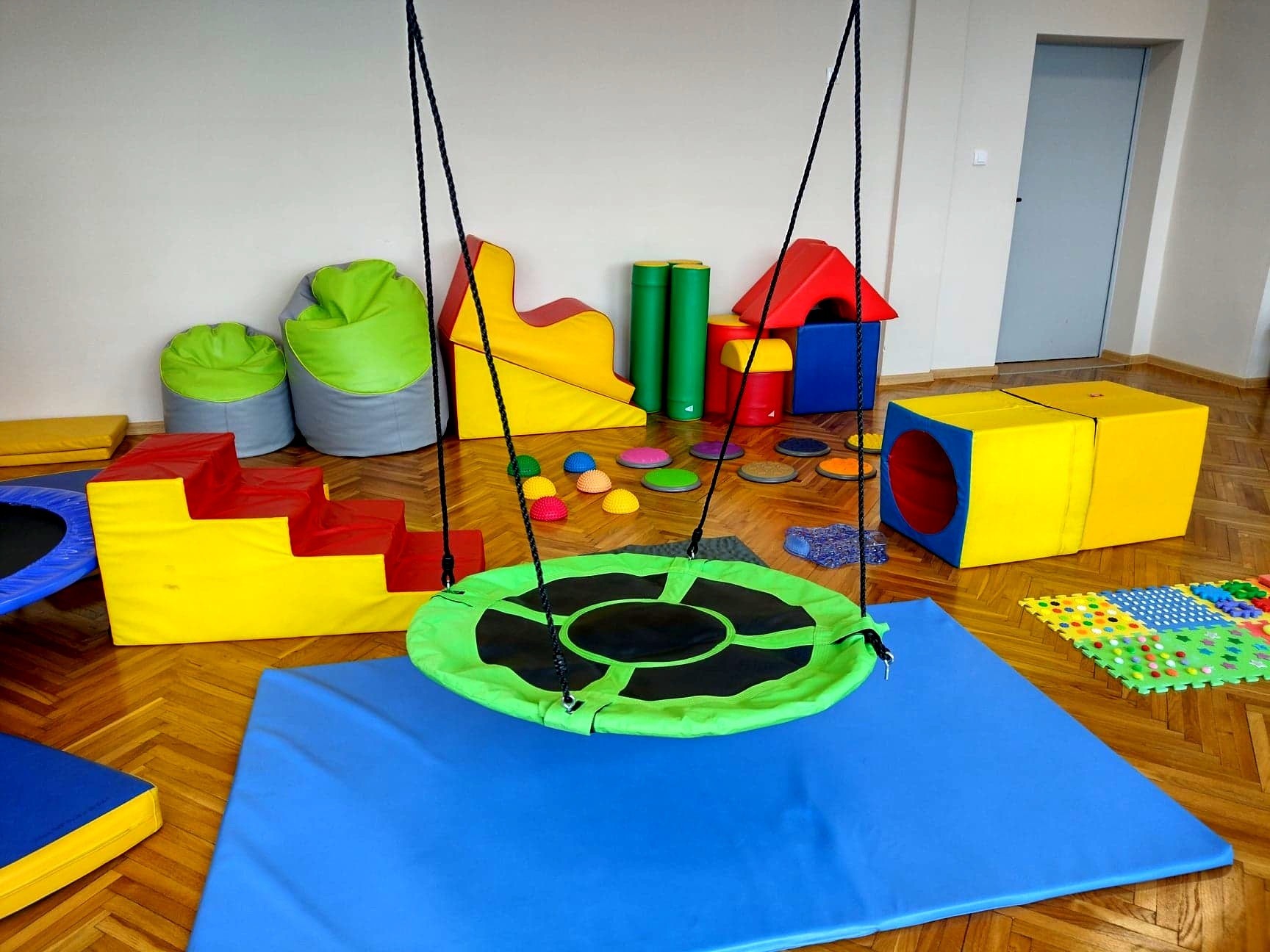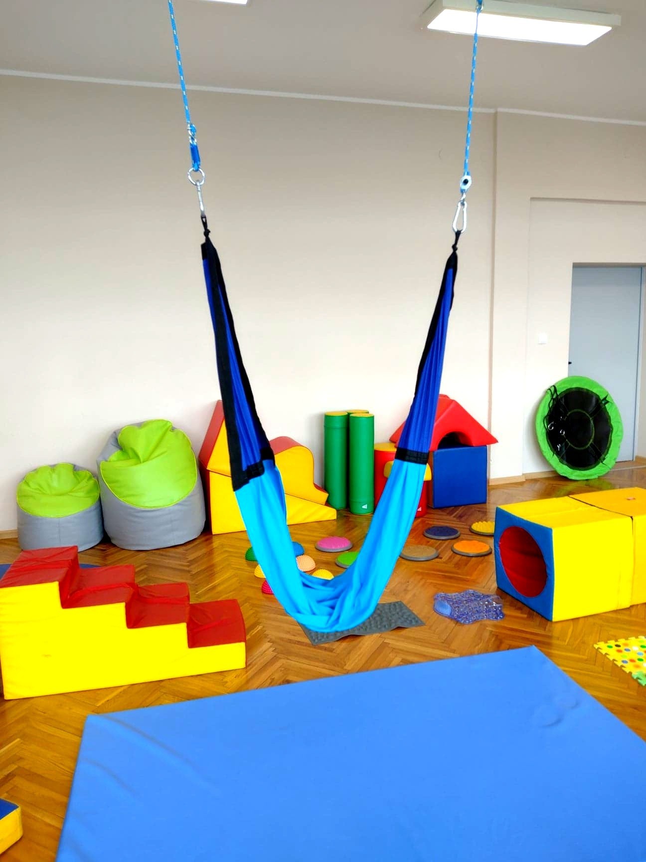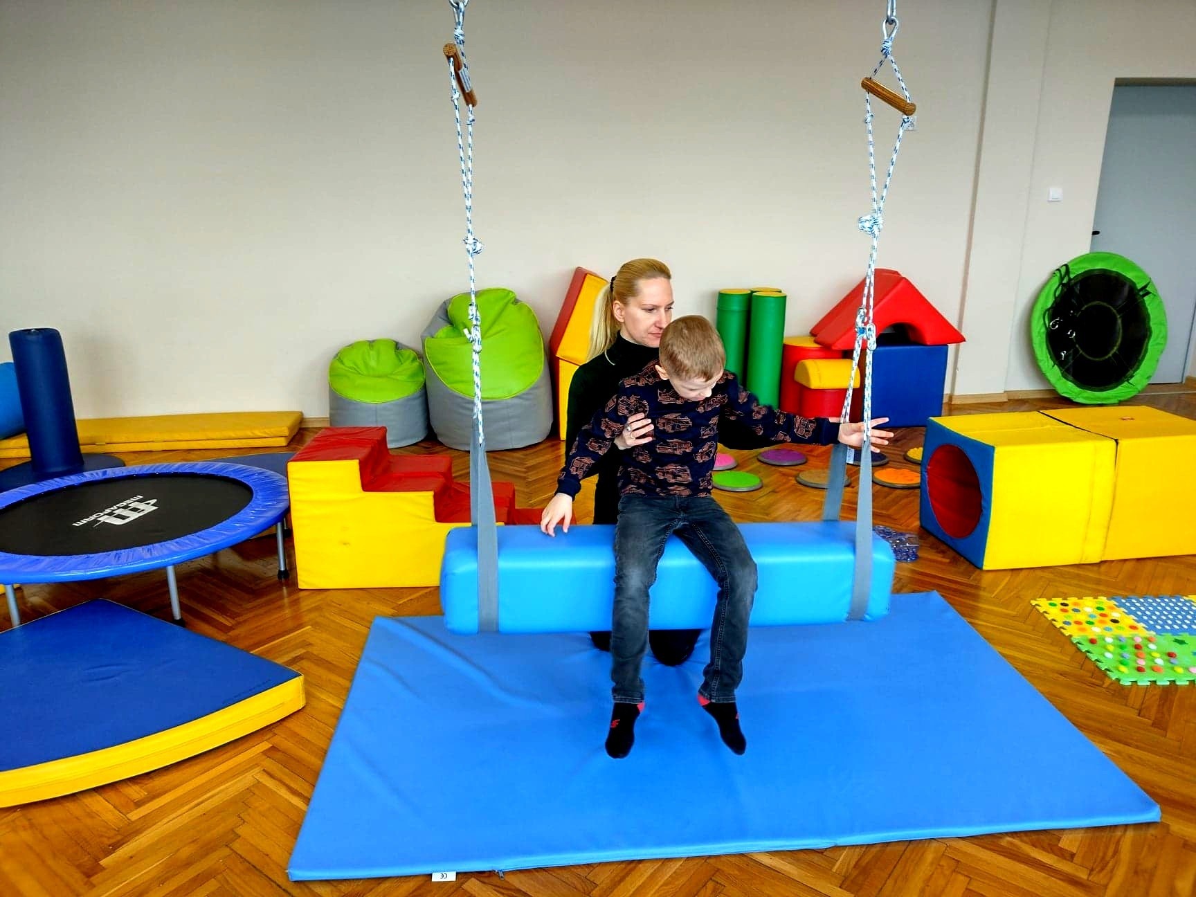 Cieszymy się niezmiernie, że w zasobach naszej szkoły posiadamy przestrzeń terapeutyczną, w której pod czujnym okiem terapeutki odbywają się zajęcia integracji sensorycznej. Są to zajęcia, których celem jest poprawa funkcjonowania ośrodkowego układu nerwowego odpowiedzialnego za odbiór i przetwarzanie bodźców zmysłowych - a zatem wrażeń wzrokowych, słuchowych, dotykowych, węchowych, smakowych oraz pochodzących z ruchu i grawitacji (czyli tak zwanej priopercepcji). Najprościej ujmując, jest to sposób porządkowania przez mózg informacji odbieranych przez zmysły.