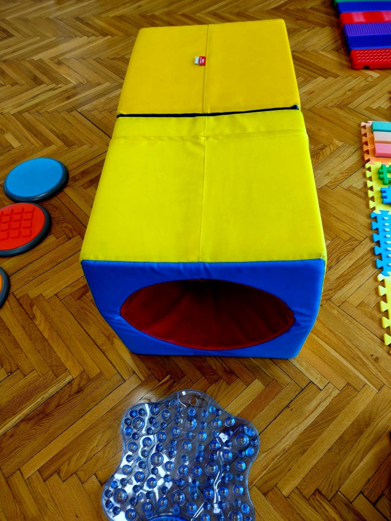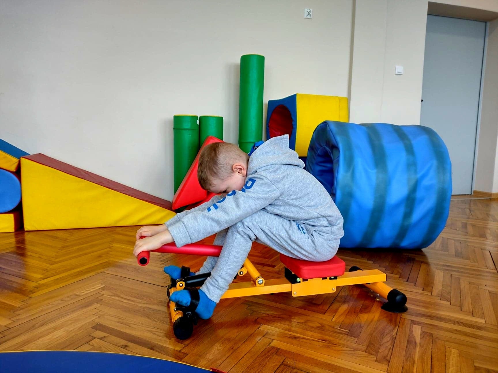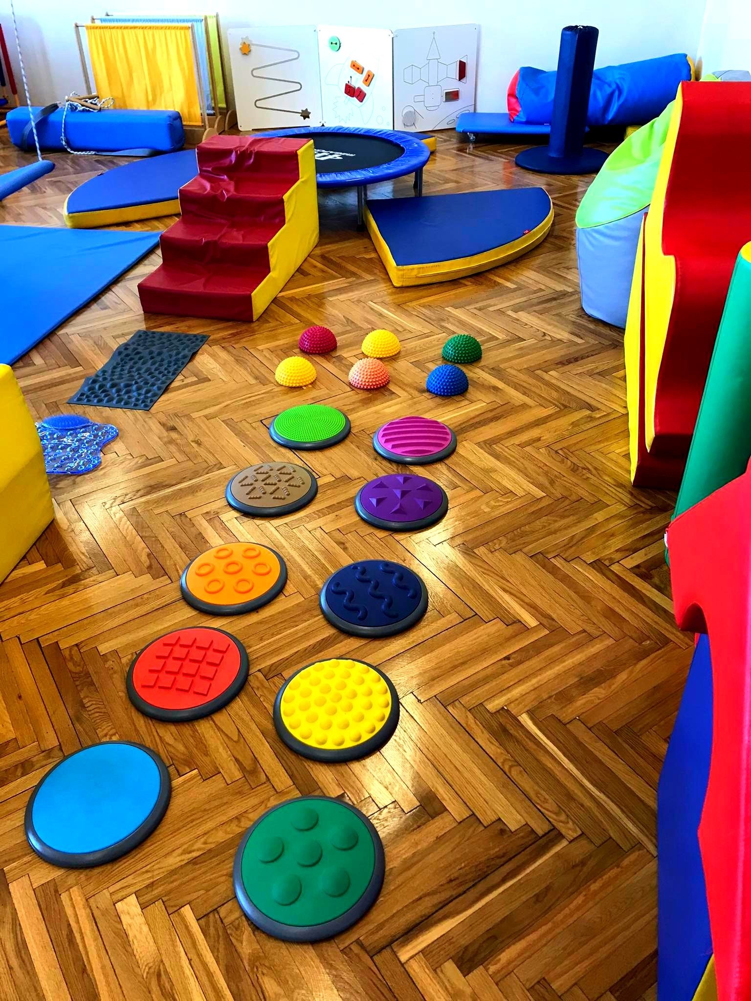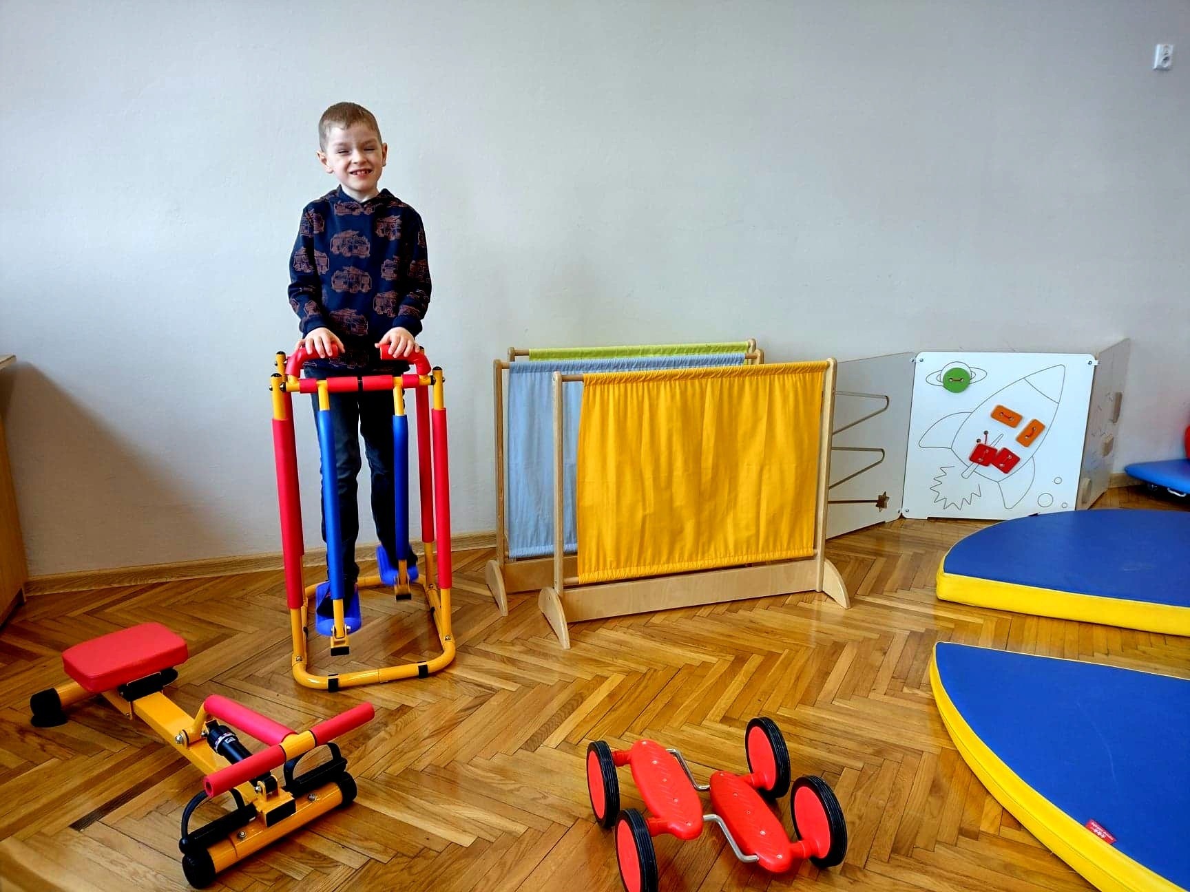 Cieszymy się niezmiernie, że w zasobach naszej szkoły posiadamy przestrzeń terapeutyczną, w której pod czujnym okiem terapeutki odbywają się zajęcia integracji sensorycznej. Są to zajęcia, których celem jest poprawa funkcjonowania ośrodkowego układu nerwowego odpowiedzialnego za odbiór i przetwarzanie bodźców zmysłowych - a zatem wrażeń wzrokowych, słuchowych, dotykowych, węchowych, smakowych oraz pochodzących z ruchu i grawitacji (czyli tak zwanej priopercepcji). Najprościej ujmując, jest to sposób porządkowania przez mózg informacji odbieranych przez zmysły.