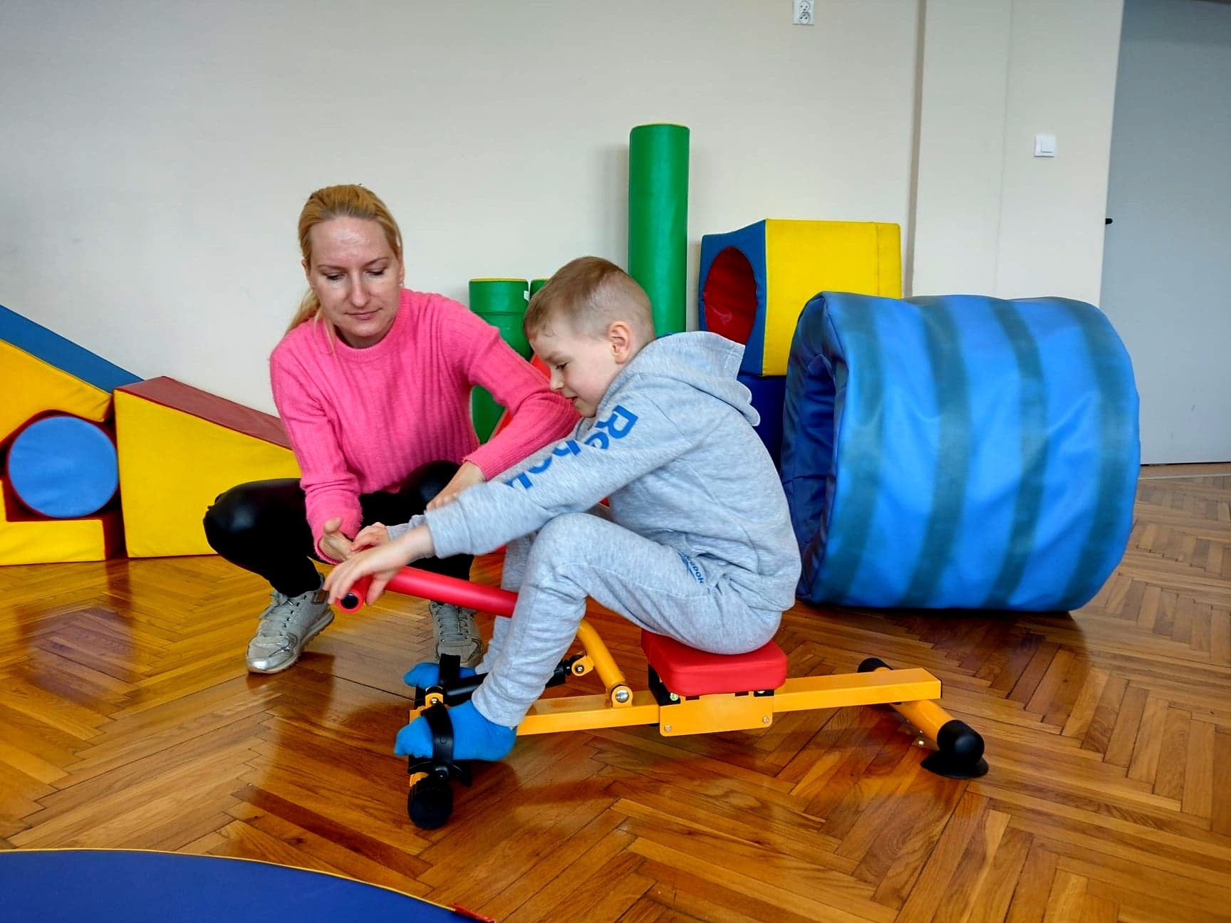 Do terapii wykorzystywany jest specjalistyczny sprzęt tj. podwieszane platformy, huśtawki, hamaki, trampoliny, tunele, piłki gimnastyczne, równoważnie, deskorolki, a także materiały o różnej fakturze do stymulacji dotykowej, materiały do stymulacji wzrokowej, słuchowej, smakowej (ścieżki sensoryczne, kształtki, pomoce dotykowe itp.).