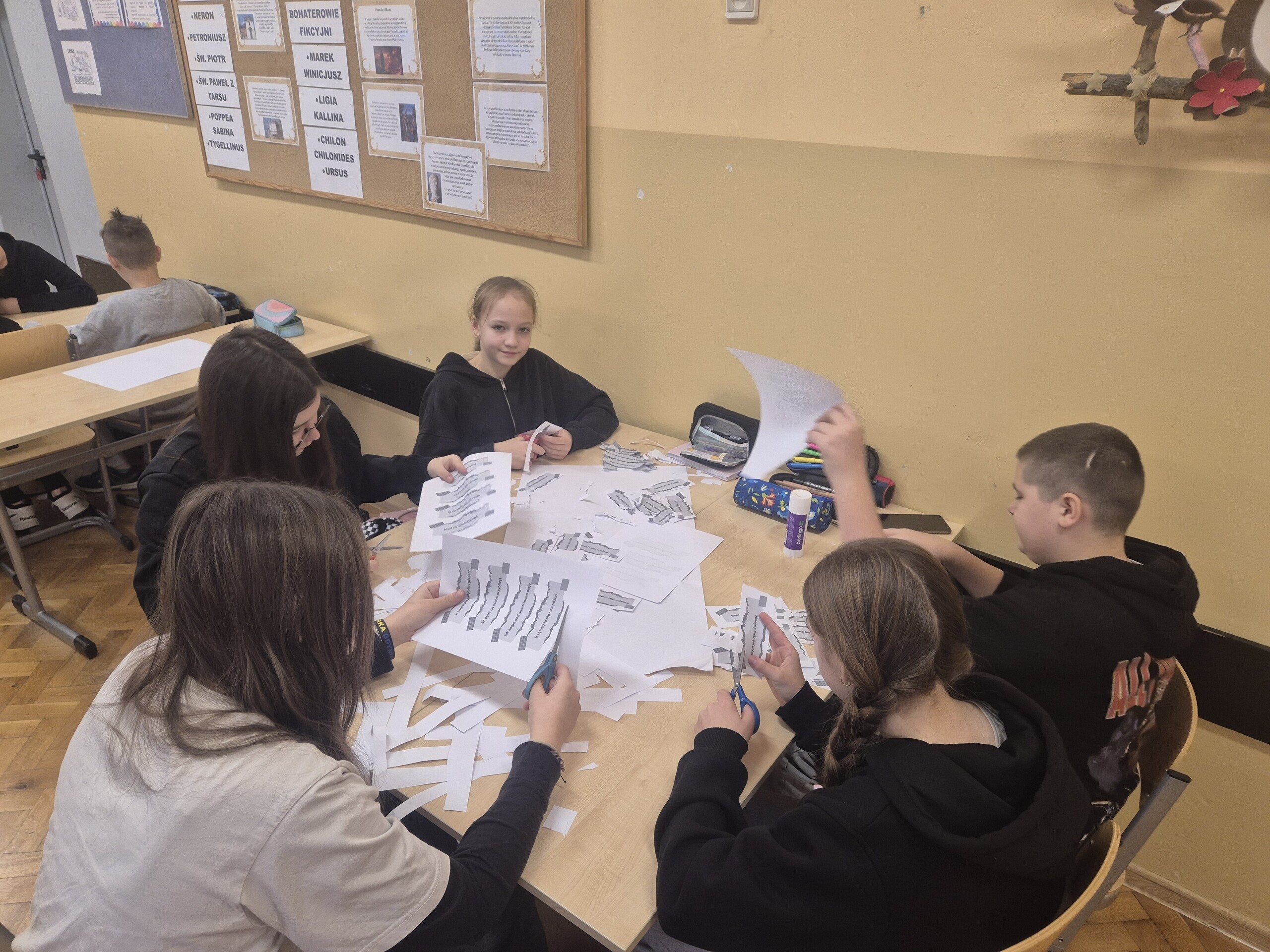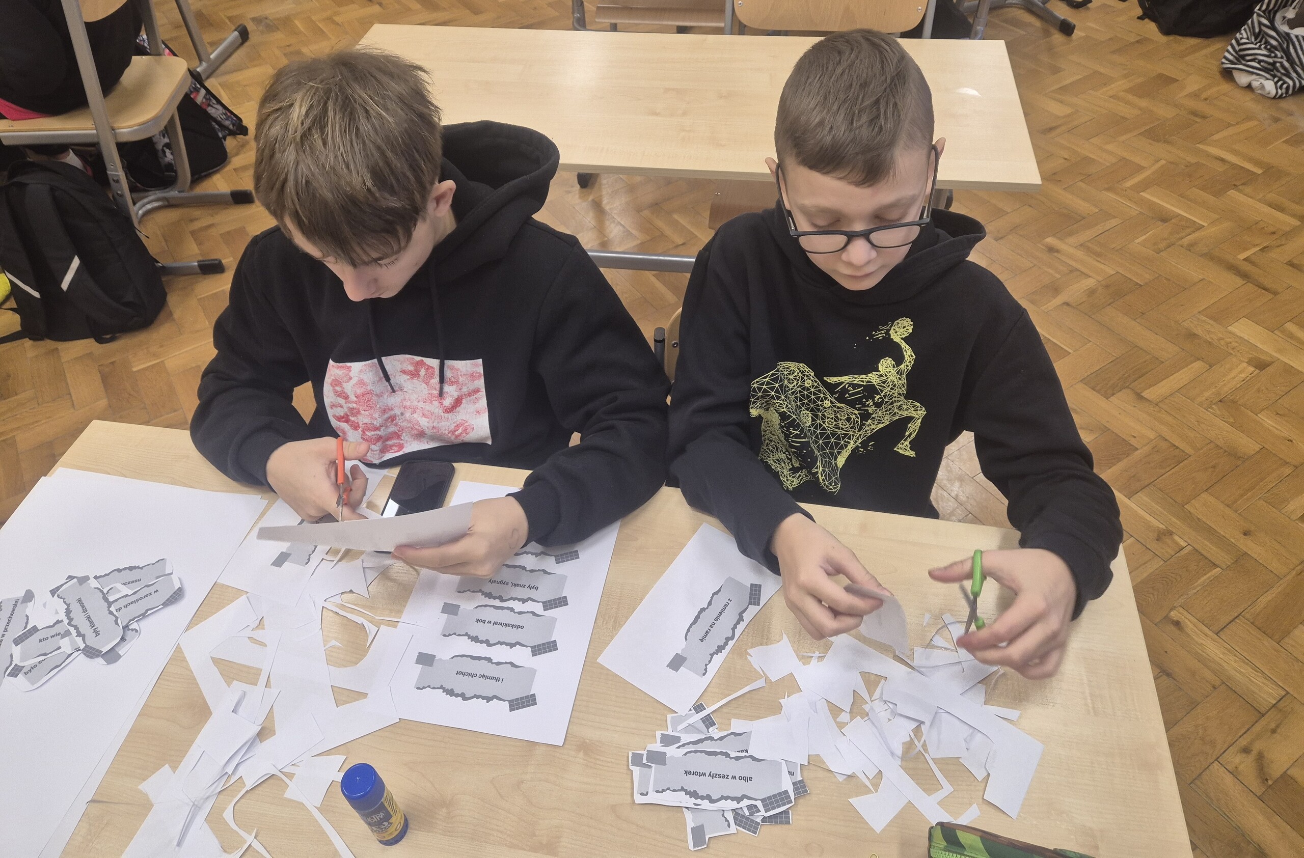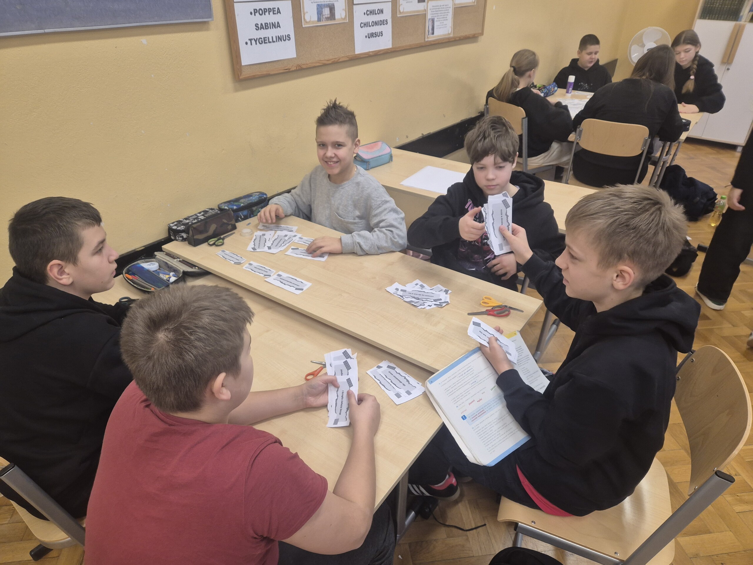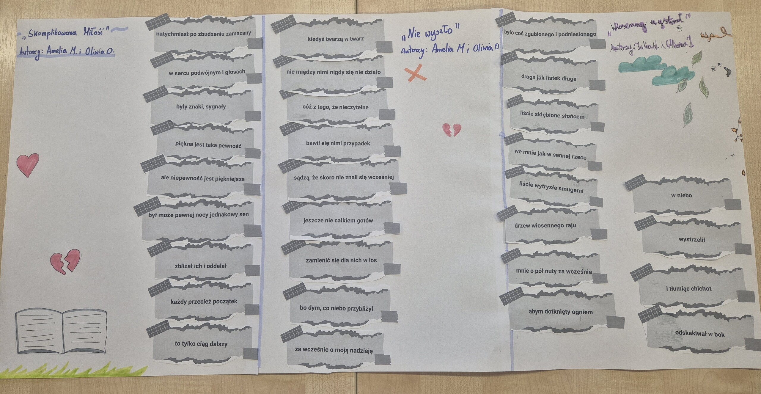 Wszystko wokół nas inspiruje do twórczości, a życie tętni różnorodnością, która zachęca do pisania wierszy. W duchu tej myśli postanowiliśmy spróbować w klasie 6 swoich sił w poezji. Zrealizowaliśmy kolejne zadanie z Ogólnopolskiego Projektu Edukacyjnego „Polak ma essę2.” Najpierw zapoznaliśmy się z sylwetkami Wisławy Szymborskiej, Krzysztofa Kamila Baczyńskiego i Tadeusza Gajcego oraz ich poezją. Następnie pocięliśmy ich wiersze „Wiosnę”, „Nad ranem” oraz „Miłość od pierwszego wejrzenia”, zmieszaliśmy wszystkie wersy i zabraliśmy się do pracy. Każdy z nas stworzył prawdziwy wiersz, a efekty zaskoczyły nawet tych największych niedowiarków. To była wspaniała przygoda w odkrywaniu poezji, która połączyła radość twórczości z bogactwem emocji i wyobraźni.