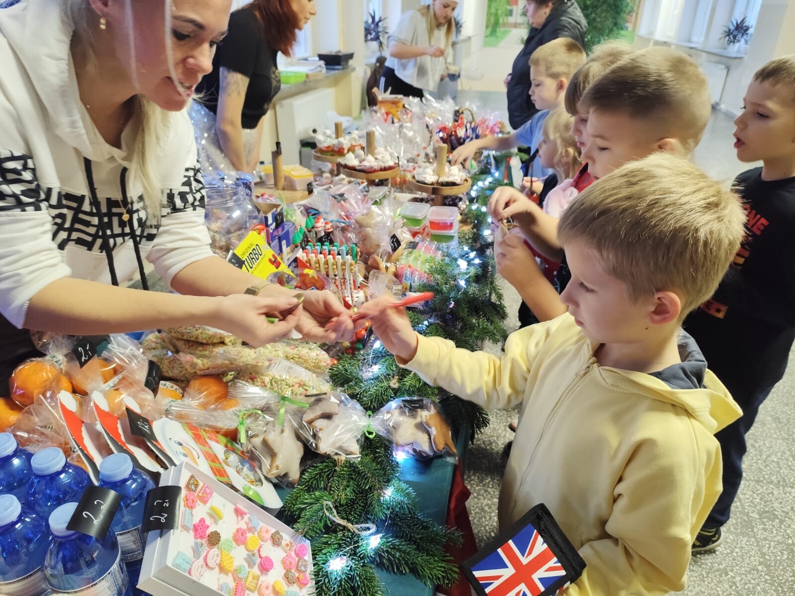 Nie zabrakło również gadżetów z wizerunkiem Mikołaja, wyrobów włókienniczych własnoręcznie zrobionych przez mamy uczniów, lemoniady z cytryną i miodem, lizaków i innych słodyczy. Zapachniało świętami …