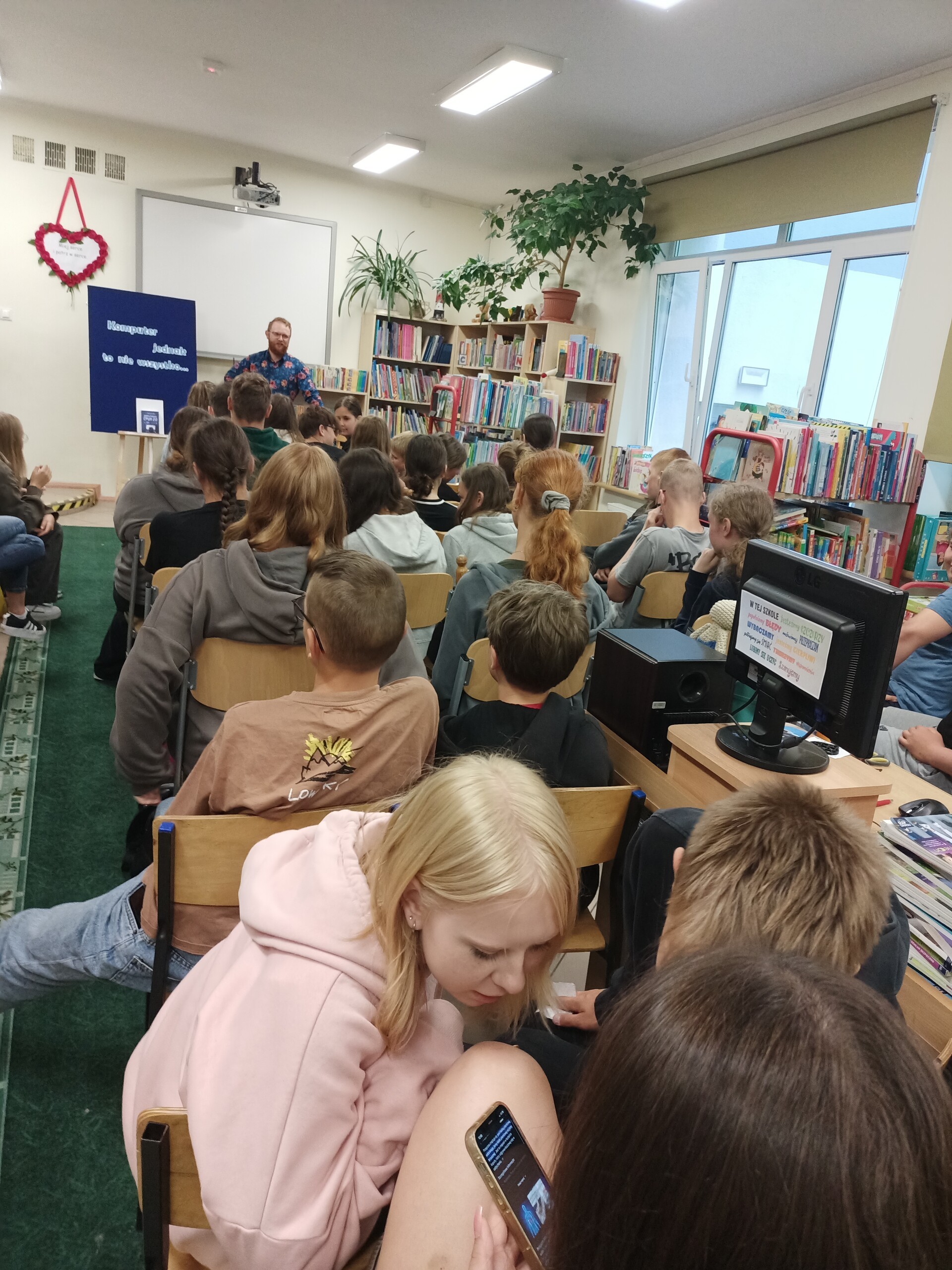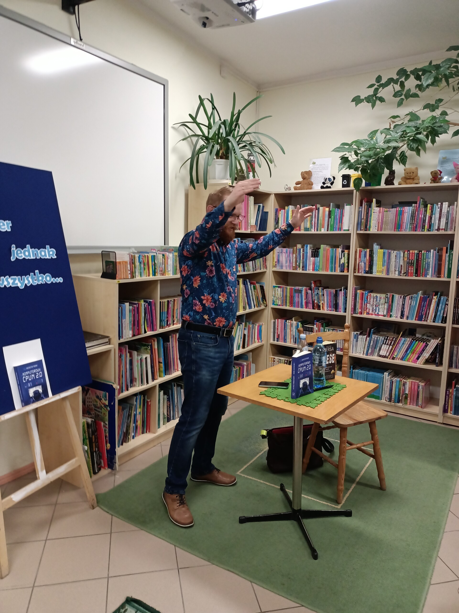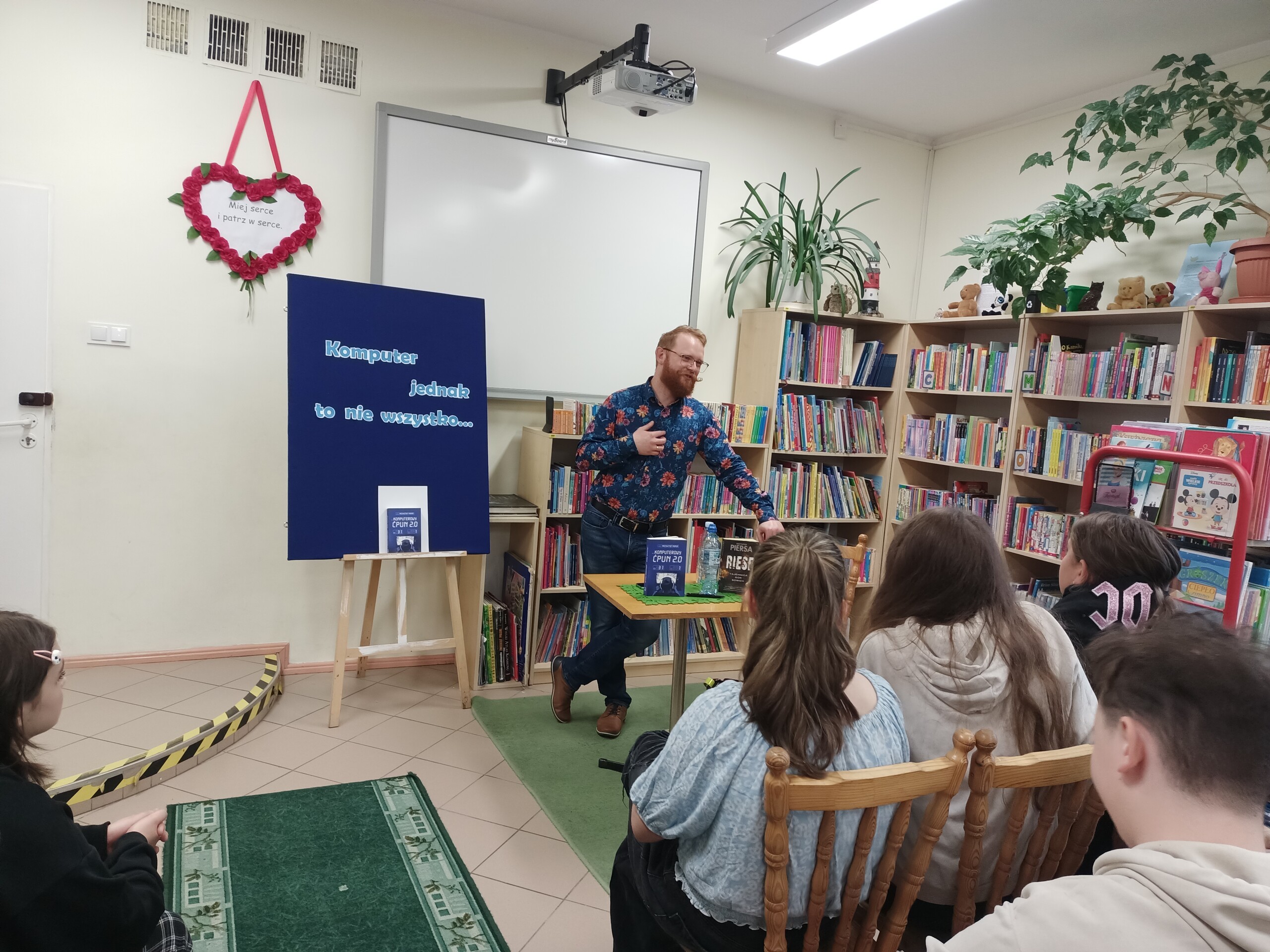 16 czerwca 2025 r. uczniowie klasy 8, 7 i 6 wzięli udział w niezwykle ciekawym spotkaniu autorskim z panem Krzysztofem Piersą - dziennikarzem, youtuberem, terapeutą do spraw nałogów, specjalistą w dziedzinie cyberzagrożeń i uzależnień od gier komputerowych oraz Internetu, autorem książek: “Komputerowy ćpun 2.0”, “Złota rybka w szambie” oraz serii “Kosmiczne bobry”.