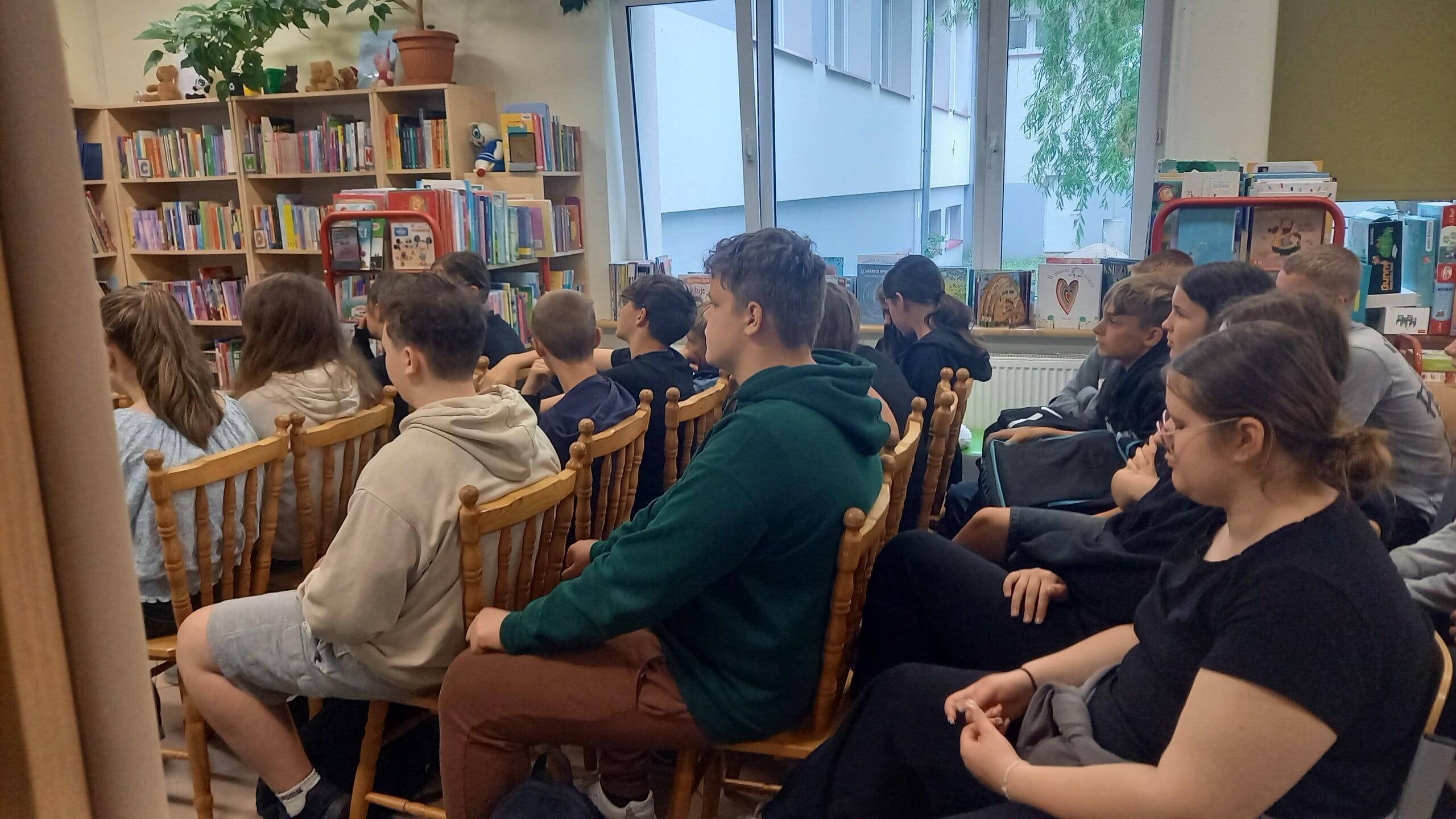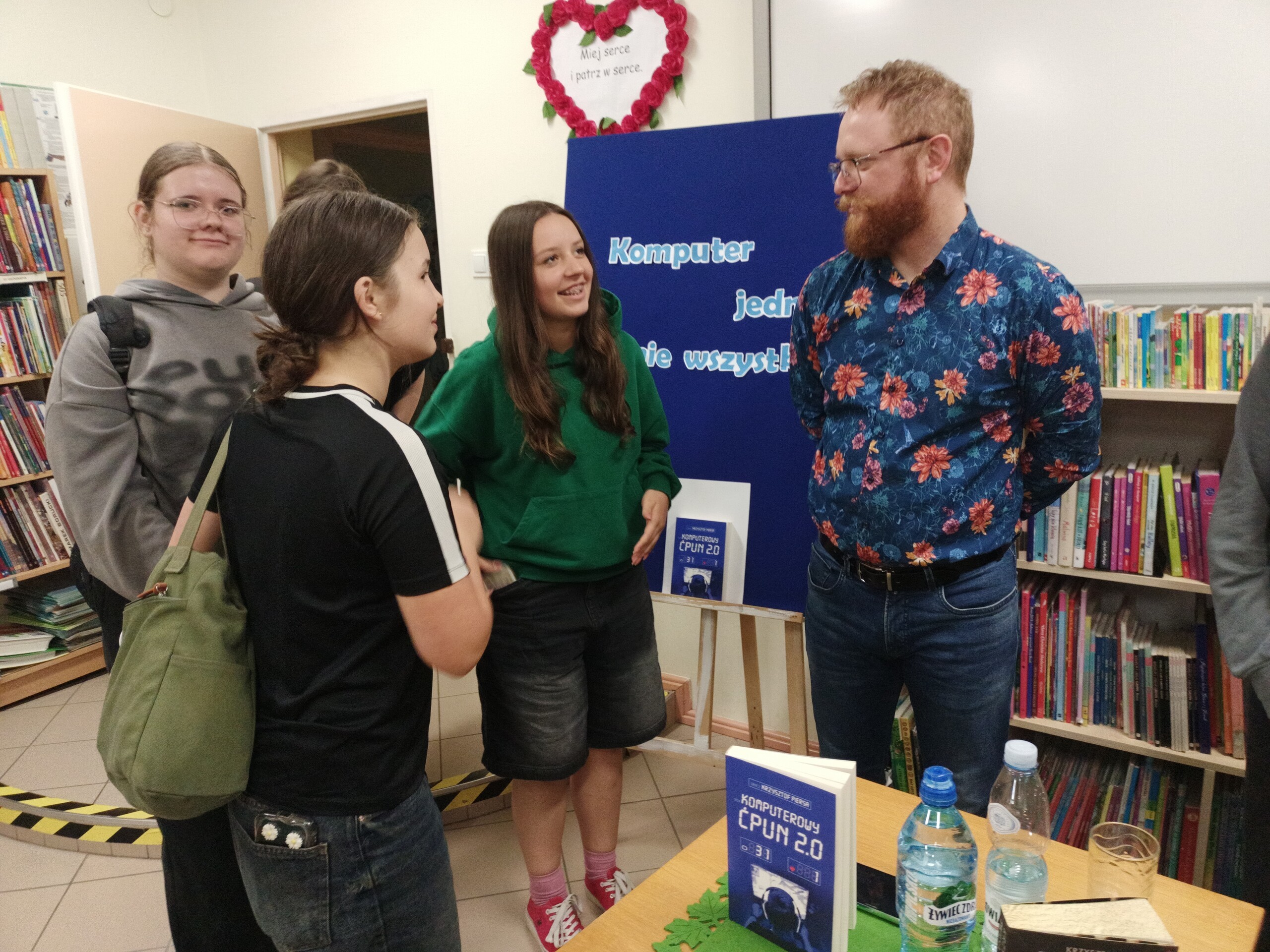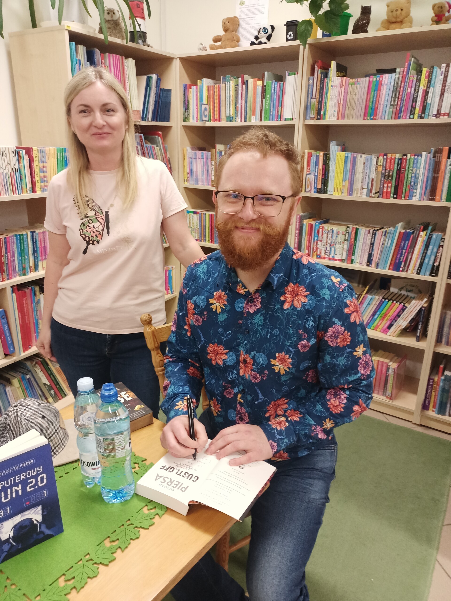 16 czerwca 2025 r. uczniowie klasy 8, 7 i 6 wzięli udział w niezwykle ciekawym spotkaniu autorskim z panem Krzysztofem Piersą - dziennikarzem, youtuberem, terapeutą do spraw nałogów, specjalistą w dziedzinie cyberzagrożeń i uzależnień od gier komputerowych oraz Internetu, autorem książek: “Komputerowy ćpun 2.0”, “Złota rybka w szambie” oraz serii “Kosmiczne bobry”.