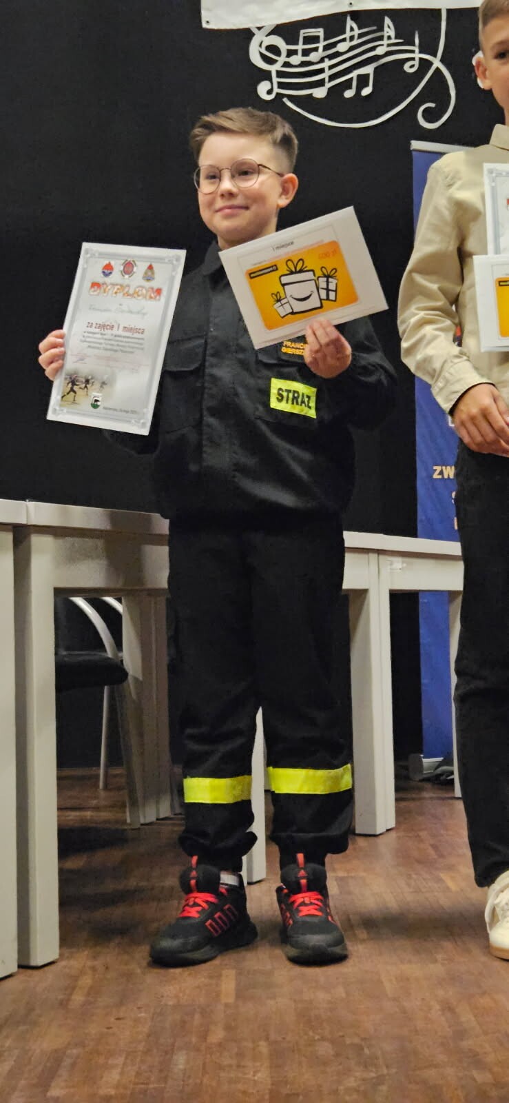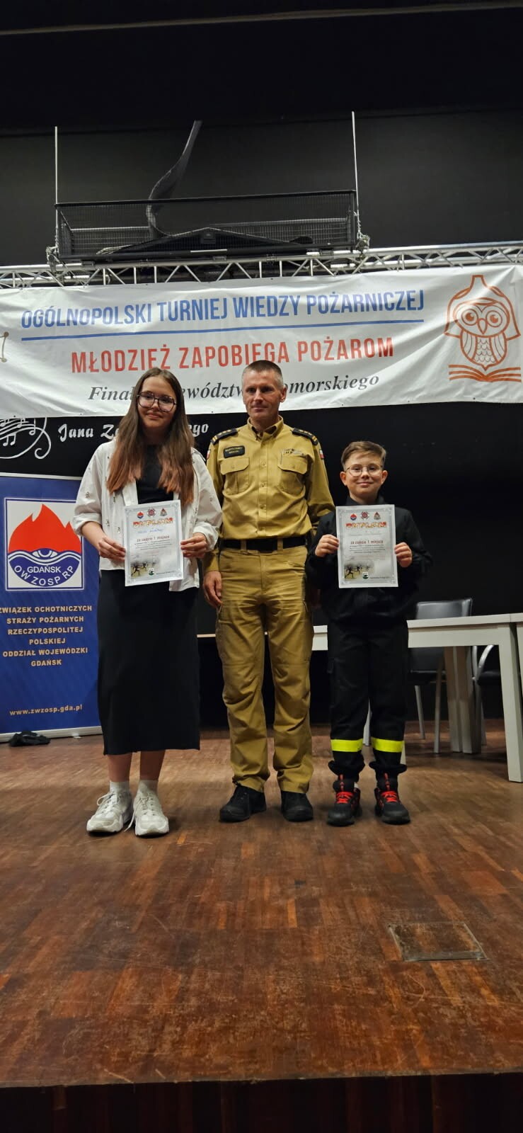 Nasza szkoła z dumą uczestniczyła w Ogólnopolskim Turnieju Wiedzy Pożarniczej „Młodzież Zapobiega Pożarom”, podczas którego uczniowie mieli okazję zaprezentować swoje umiejętności związane z bezpieczeństwem pożarowym. Konkurs ten, cieszący się prestiżem na szczeblu ogólnopolskim, stanowi wspaniałą okazję do praktycznego sprawdzenia wiedzy oraz rozwijania postaw obywatelskich i odpowiedzialności za środowisko, w którym żyjemy. W eliminacjach wojewódzkich młodszej grupy uczestników wyróżnił się Franciszek Gierszewski, który zdobył pierwsze miejsce w swojej kategorii. Jego wygrana to efekt nie tylko solidnego przygotowania i dogłębnej wiedzy z zakresu bezpieczeństwa pożarowego, ale też dowód determinacji i pasji do nauki. Dzięki temu sukcesowi Franciszek uzyskał awans do finału krajowego, gdzie będzie mógł dalej reprezentować naszą szkołę na forum ogólnopolskim. Osiągnięcia naszych uczniów są wynikiem ciężkiej pracy, zaangażowania oraz wzajemnej współpracy. Szczególne podziękowania kierujemy do pani Eweliny Jaskulskiej oraz przedstawicieli Ochotniczej Straży Pożarnej w Łebieniu. Ich wsparcie i merytoryczne przygotowanie umożliwiły uczniom zapoznanie się z zasadami postępowania w sytuacjach zagrożenia pożarowego, co jest nieocenione dla budowania bezpiecznej przyszłości naszej społeczności. Równie gorące wyrazy wdzięczności kierujemy do pani Kamili Gierszewskiej.