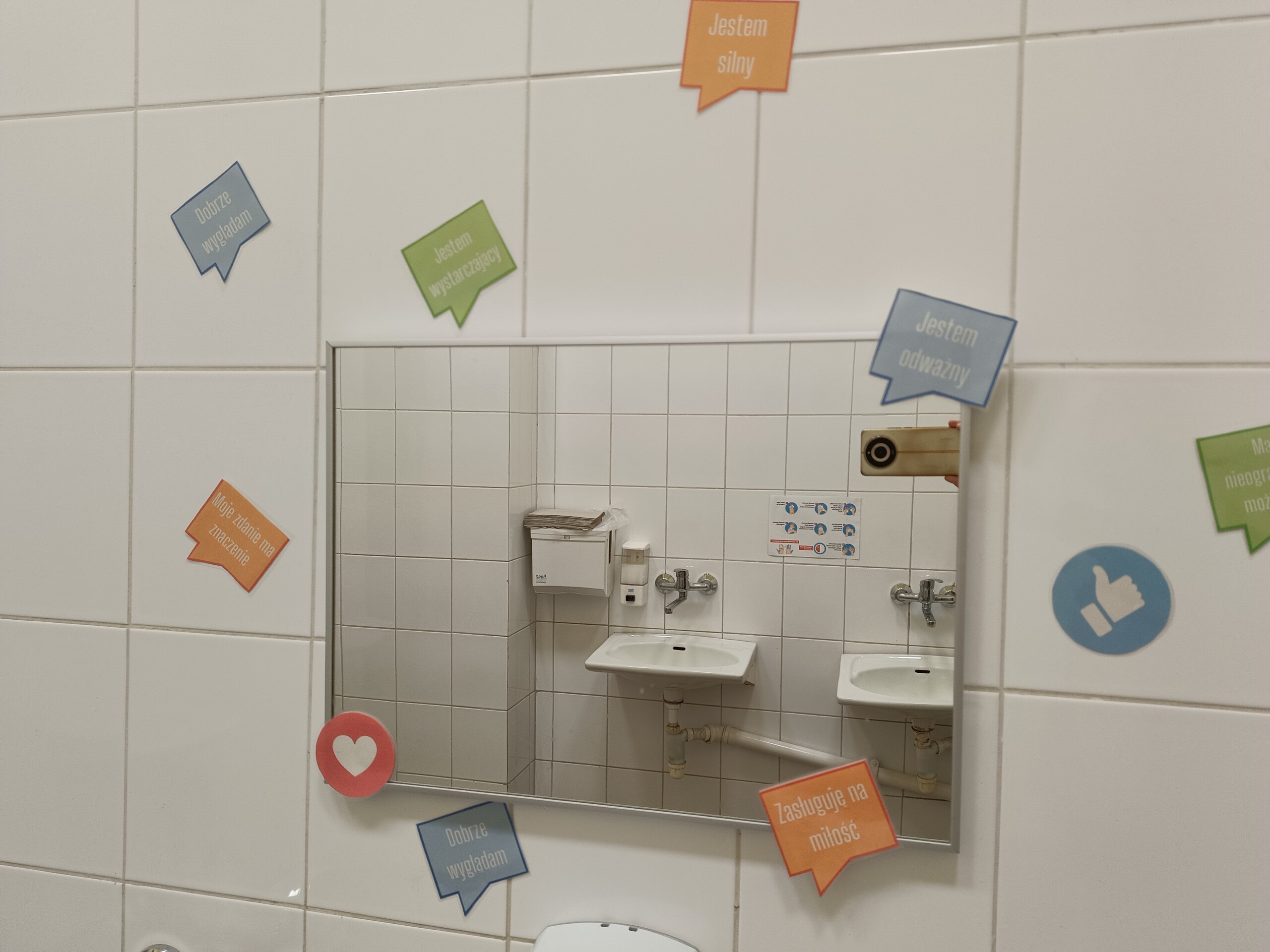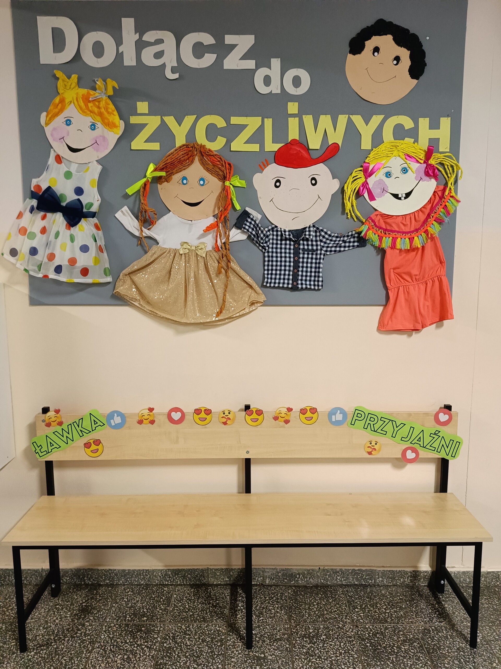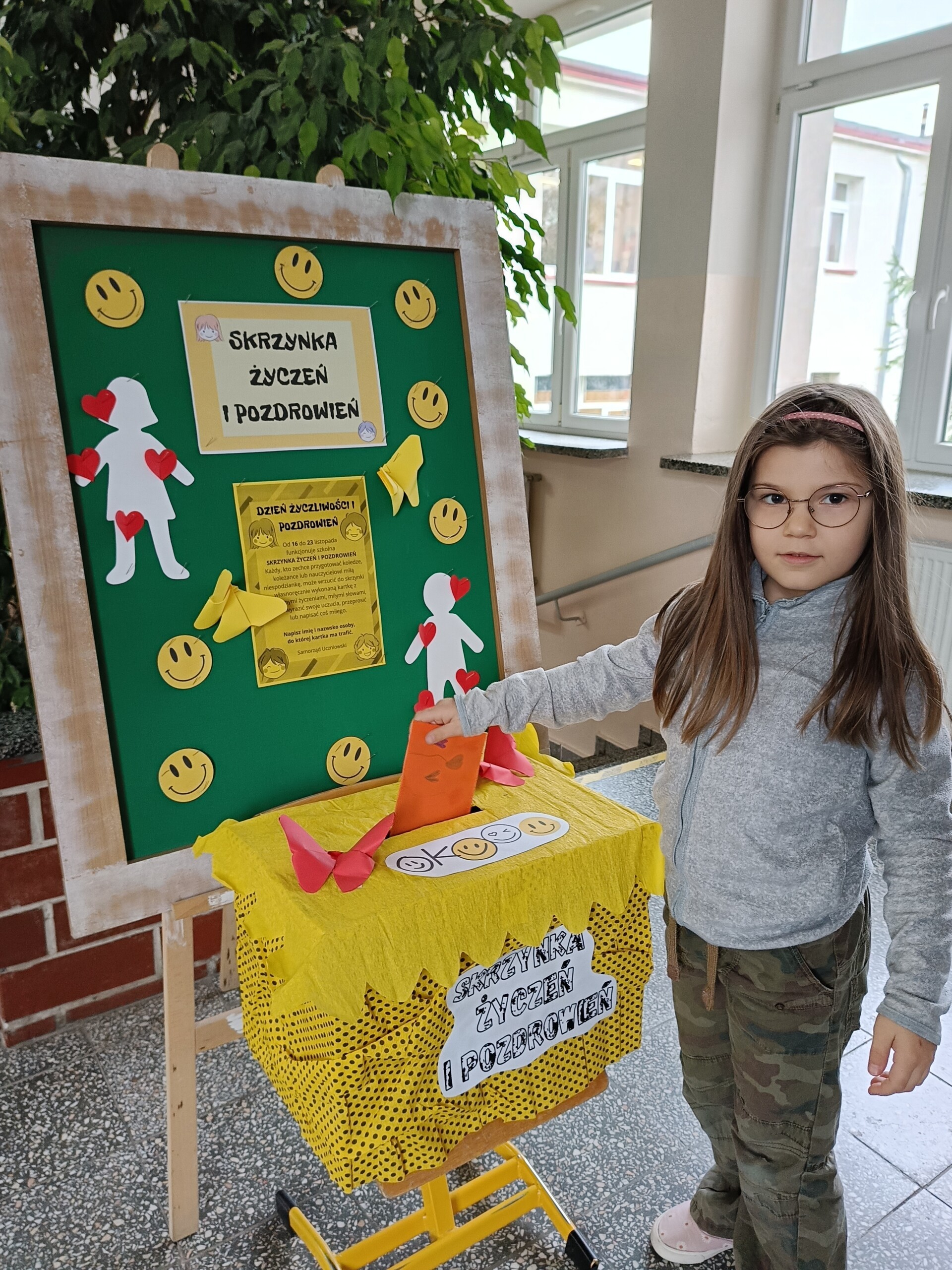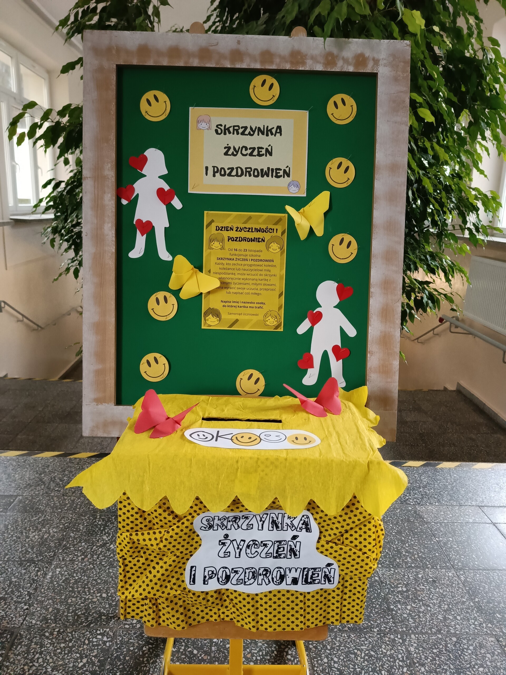 W naszej szkole Dzień Życzliwości i Pozdrowień upłynął pod hasłem „ Dołącz do życzliwych”. Na korytarzach szkolnych widniały zrywki z pozytywnymi myślami, na lustrach w toaletach umieszone zostały hasła z afirmacją o samoakceptacji i miłości do siebie. Na holu szkoły powstała szkolna ławka przyjaźni, na której można było odpocząć wspólnie z przyjacielem. Dużym zainteresowaniem cieszyła się poczta życzliwości. Do umieszczonej także na holu skrzynki na kartki można wrzucić liściki z pozytywnymi wiadomościami dla swoich kolegów, nauczycieli czy pracowników szkoły.