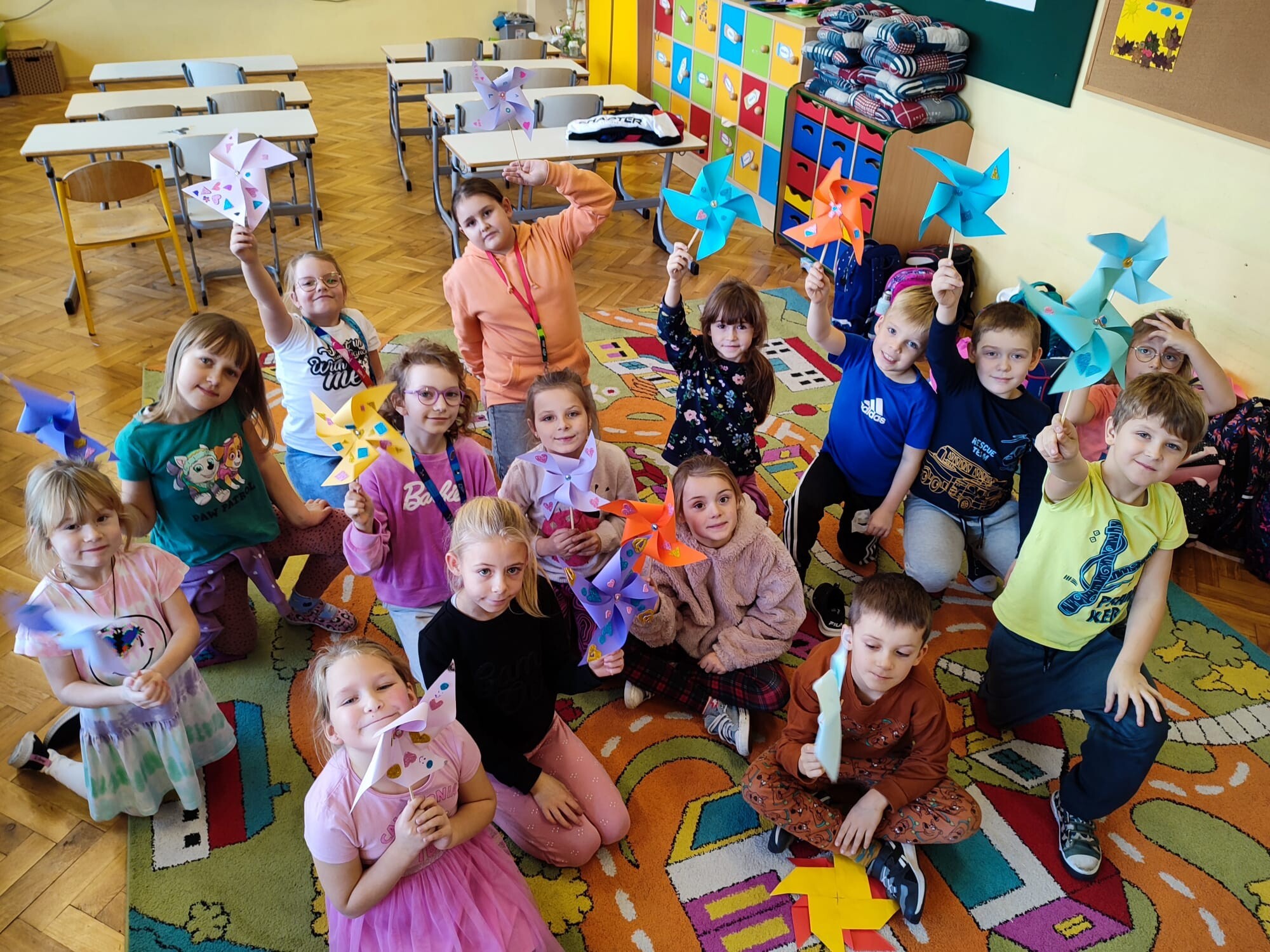 Dodatkowo uczniowie klas I-III i świetlica szkolna włączyli się do Europejskiego Tygodnia Świadomości o Mukowiscydozie poprzez organizację w szkole „Dnia Wiatraczka”. Dzieci z papieru wykonały z wielkim zaangażowanie i dokładnością różnokolorowe wiatraczki. Niech wiatraczek wprawiony w ruchu, szerzy wiedzę o mukowiscydozie.