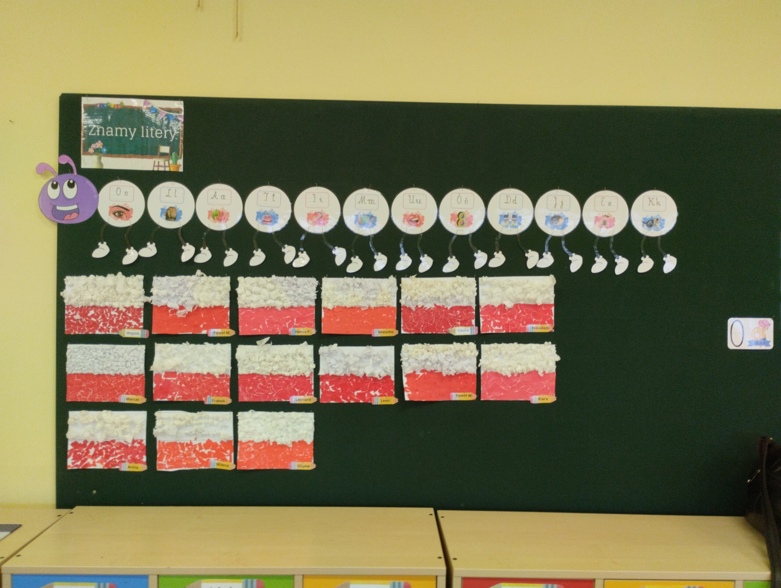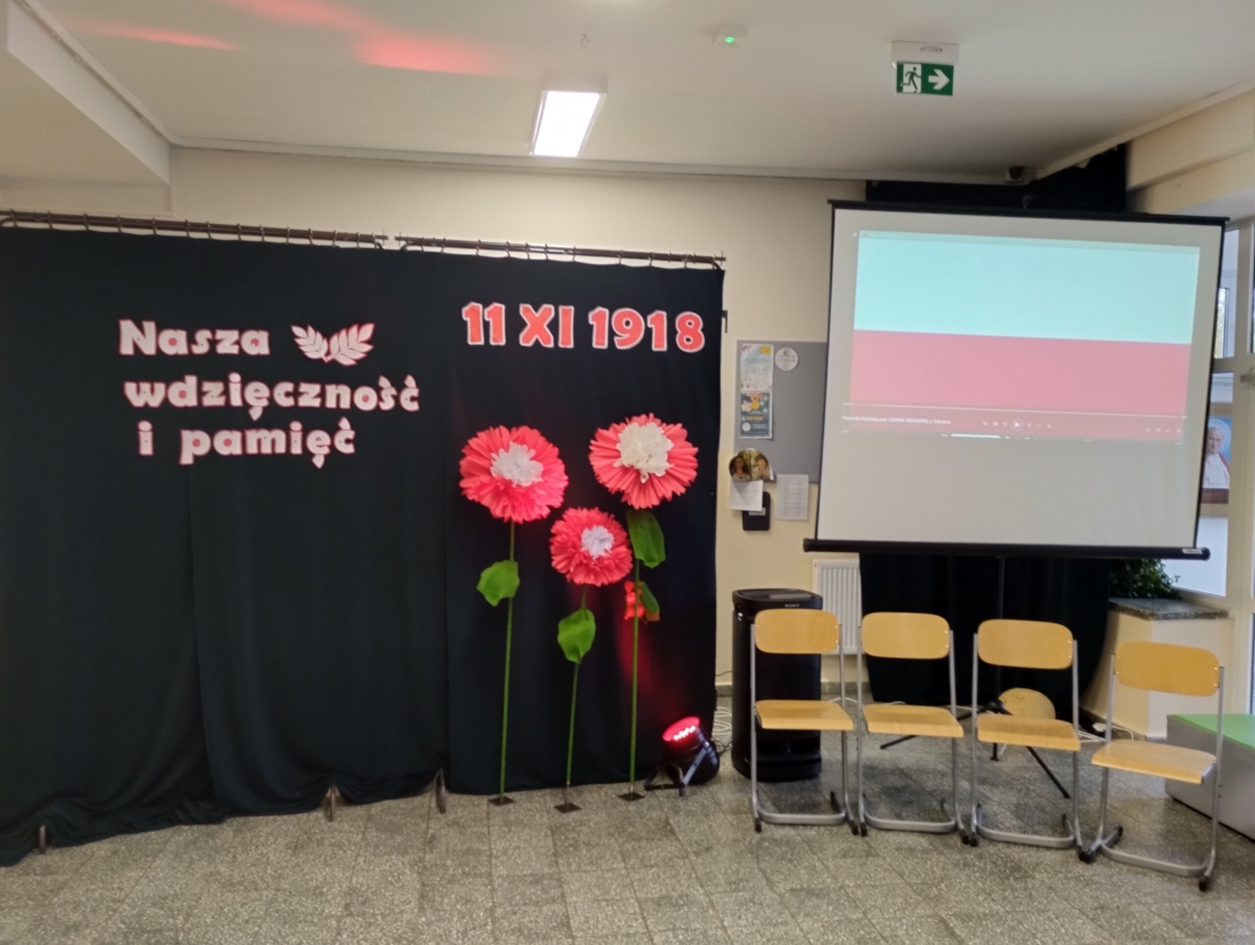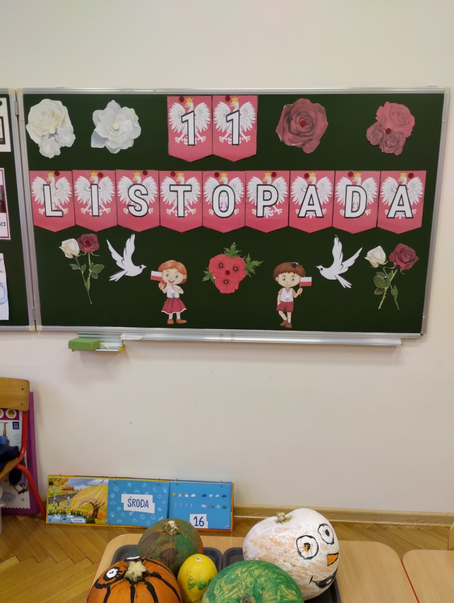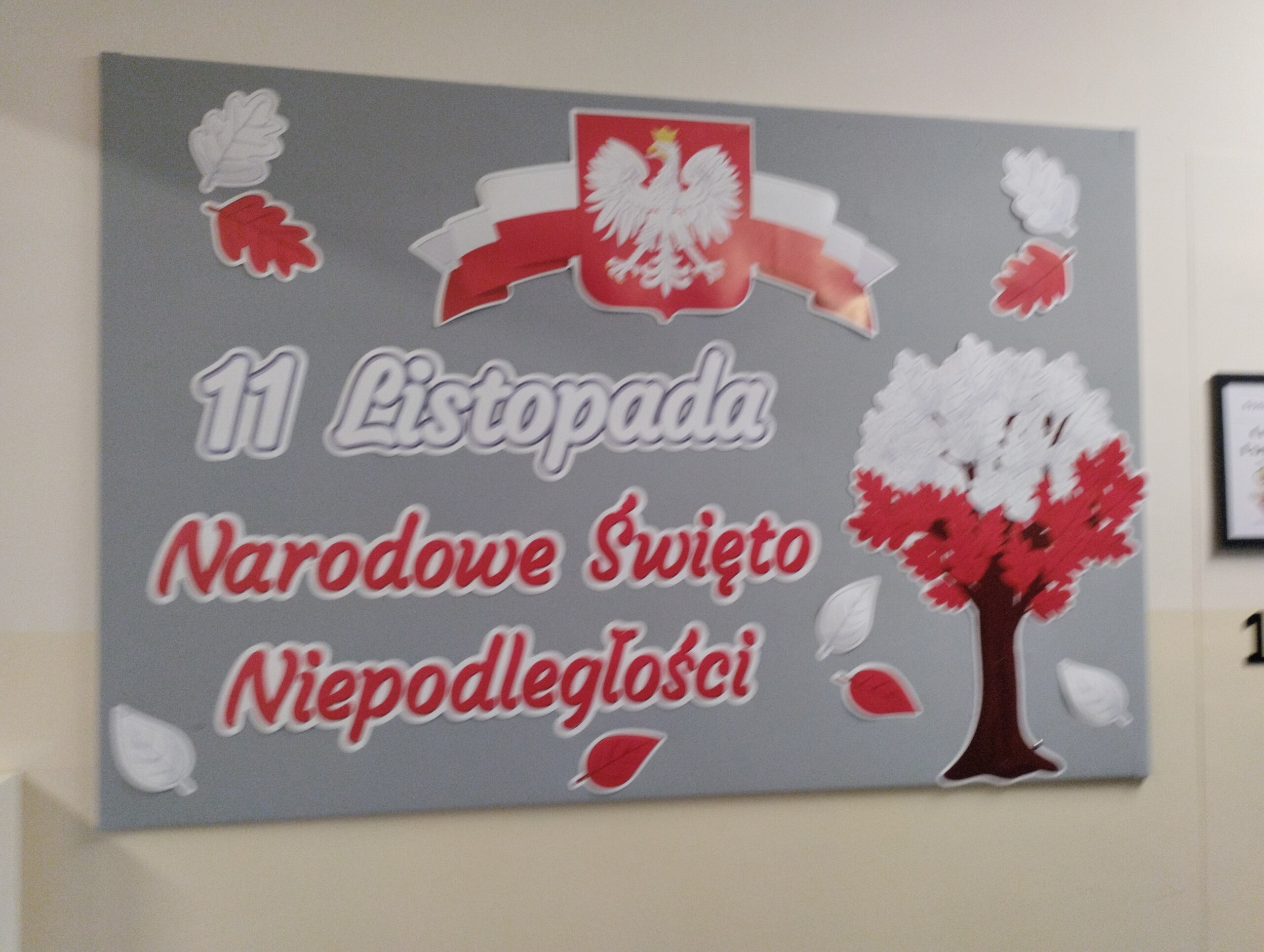Uroczystość rozpoczęło wprowadzenie Pocztu Sztandarowego oraz odśpiewanie Mazurka Dąbrowskiego. Podczas tej uroczystości wybrzmiały słowa miłości do Ojczyzny, wiary w wolność i szacunek do Polski. Można było też usłyszeć piękne słowa uczniów klasy 5 o wdzięczności dla polskich bohaterów. Zobaczyliśmy też niesamowity taniec w wykonaniu przedszkolaków grup 5 latków i zerówki. Wspaniałej atmosfery tego święta dopełniała nastrojowa dekoracja. We wszystkich pomieszczeniach w naszej szkole dominował w tym tygodniu kolor biało – czerwony, który przypominał o ważnych dla Polaków symbolach narodowych.