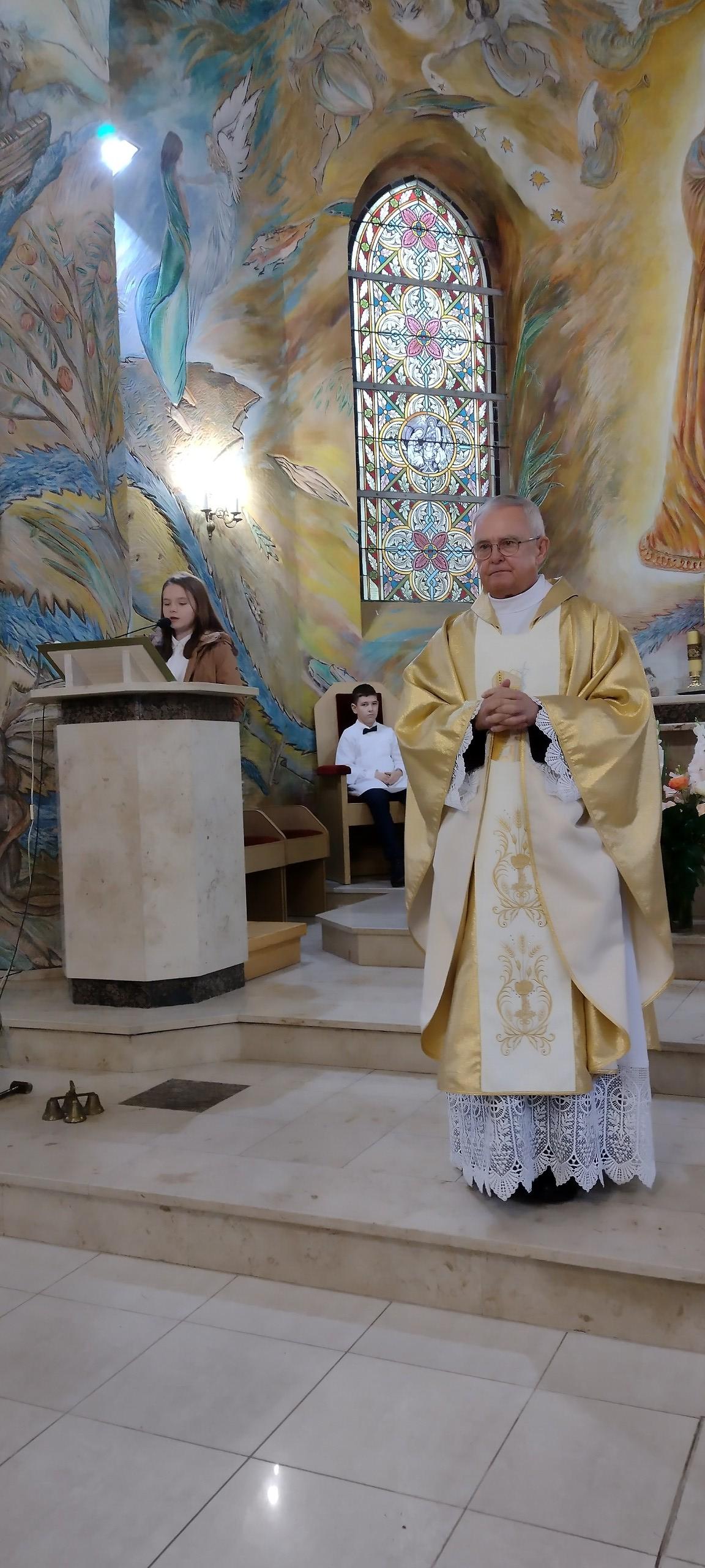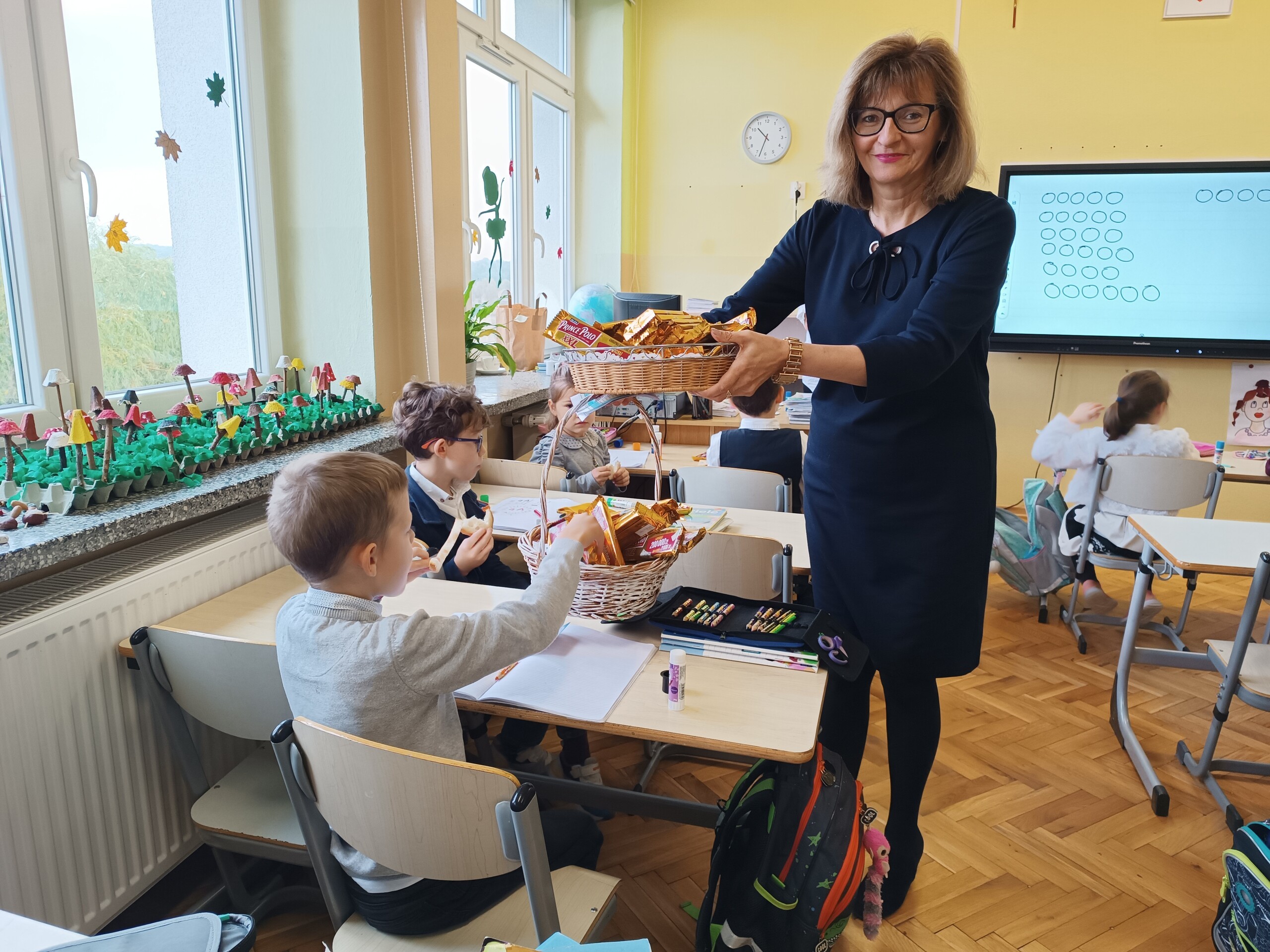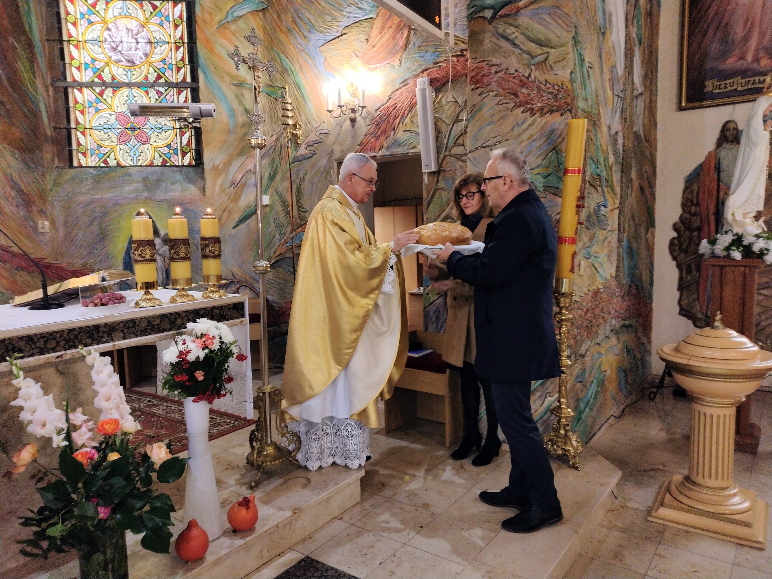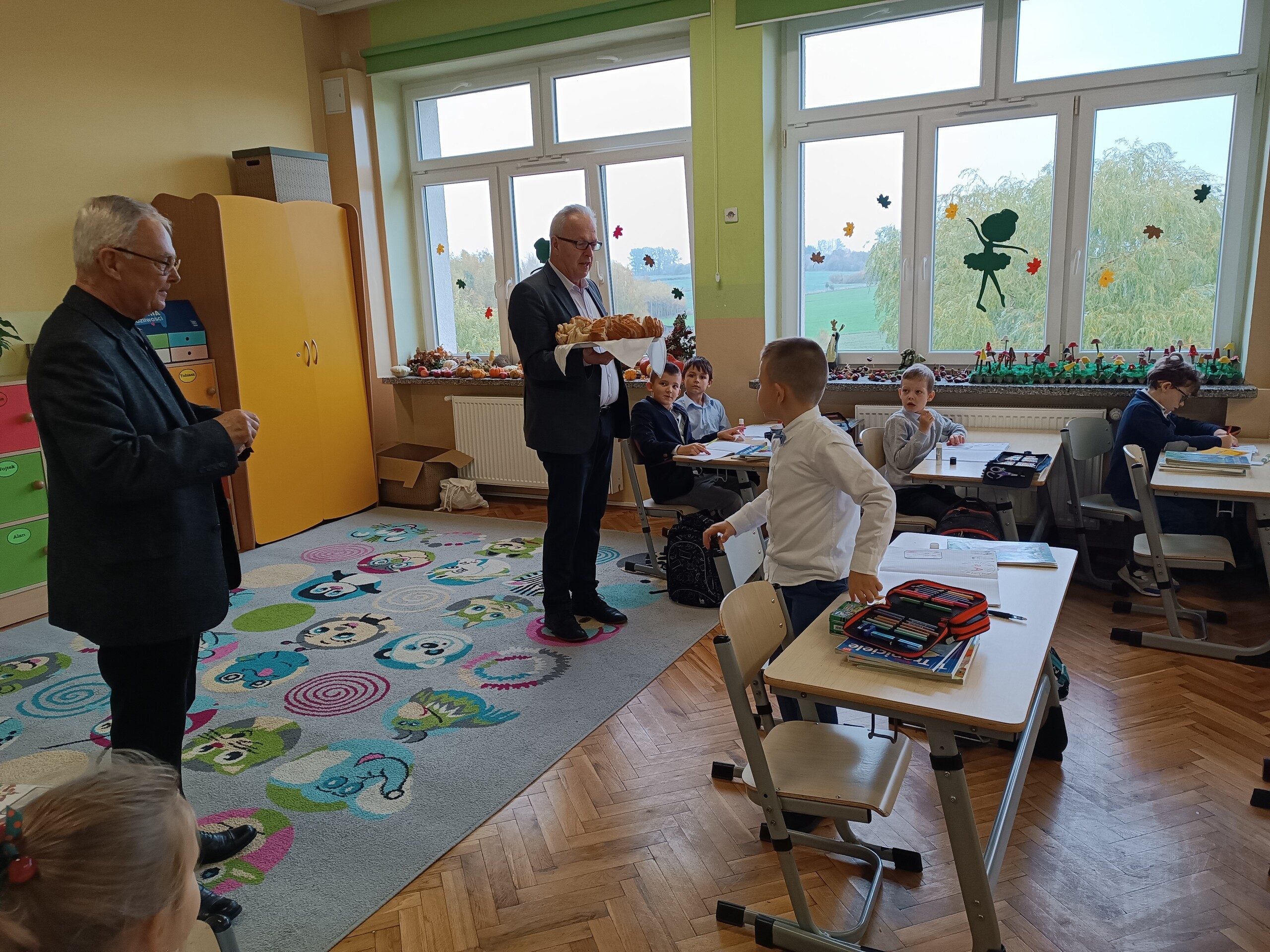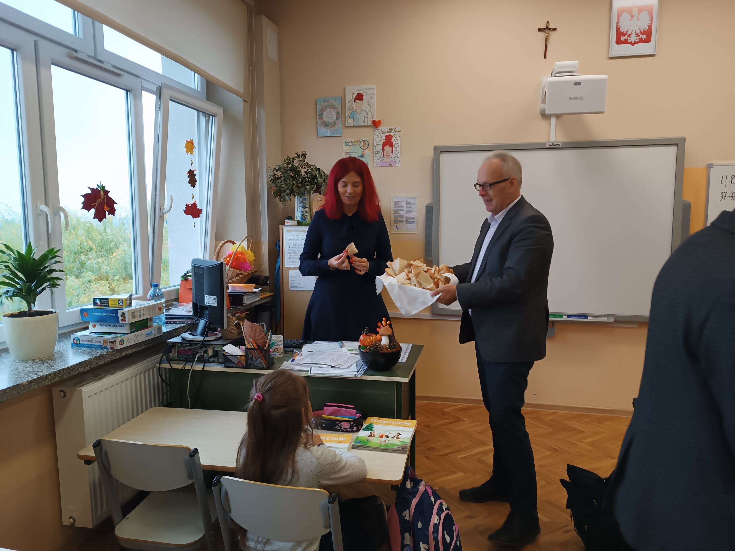 Miłym akcentem tego dnia było spożycie chleba, przez całą społeczność szkolną, który był składany podczas Mszy św. na ołtarzu pańskim. Pan dyrektor częstował chlebem, pani wicedyrektor wręczała słodkie batoniki ufundowane przez księdza proboszcza Janusz Górala, a ksiądz proboszcz wręczał każdemu obrazek z wizerunkiem Papieża Świętego Jana Pawła II.