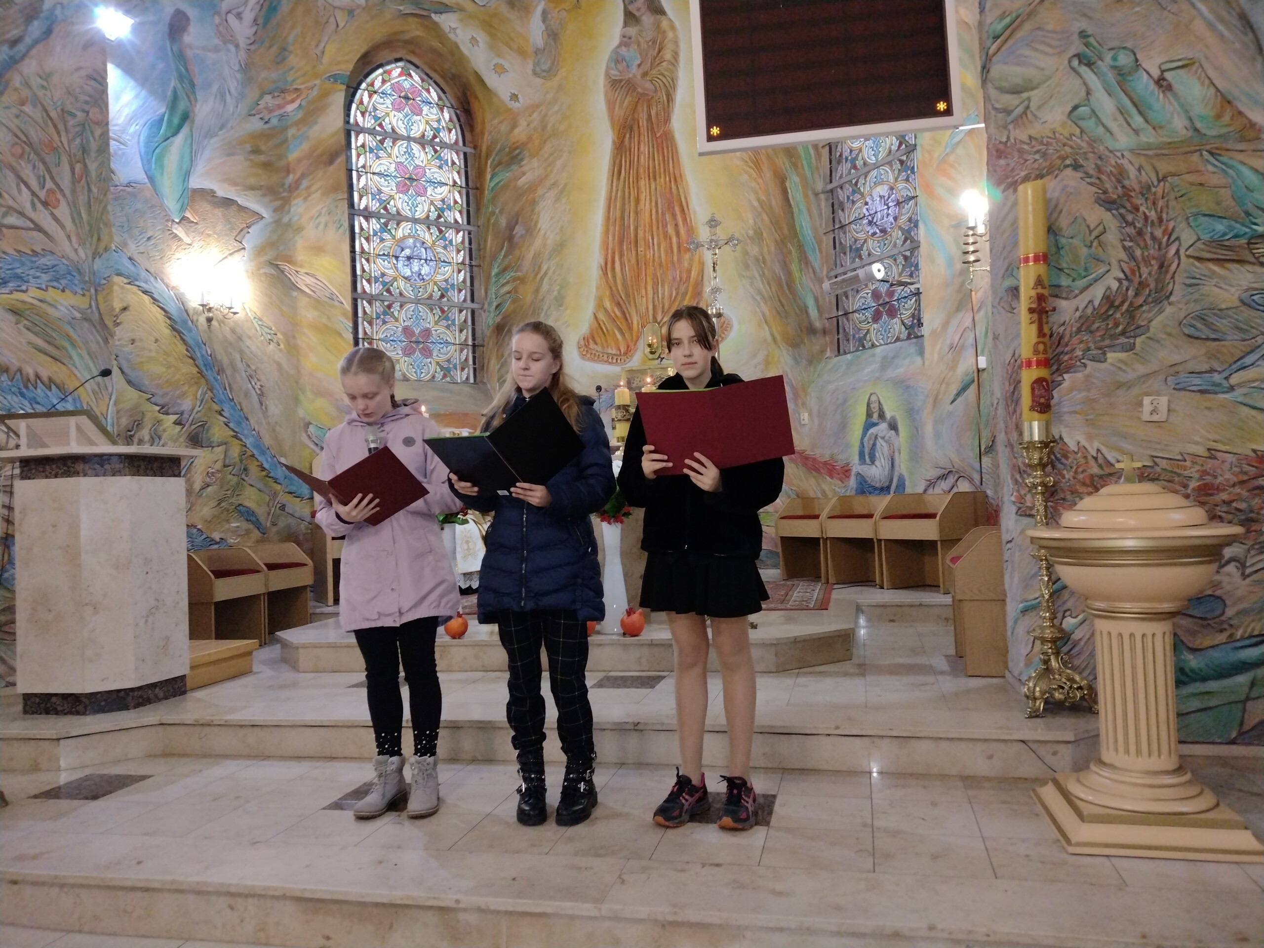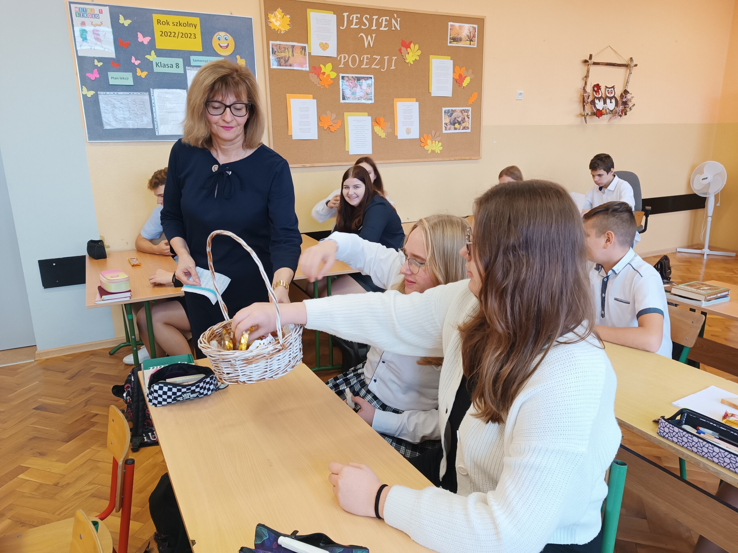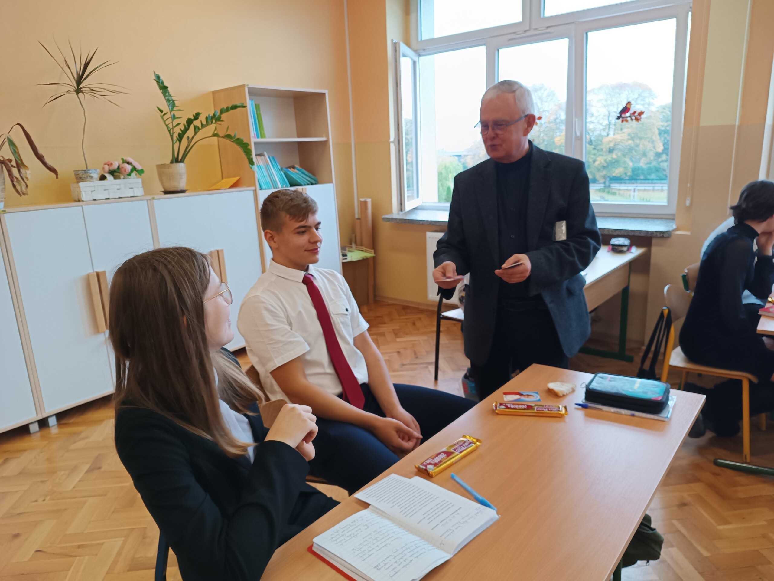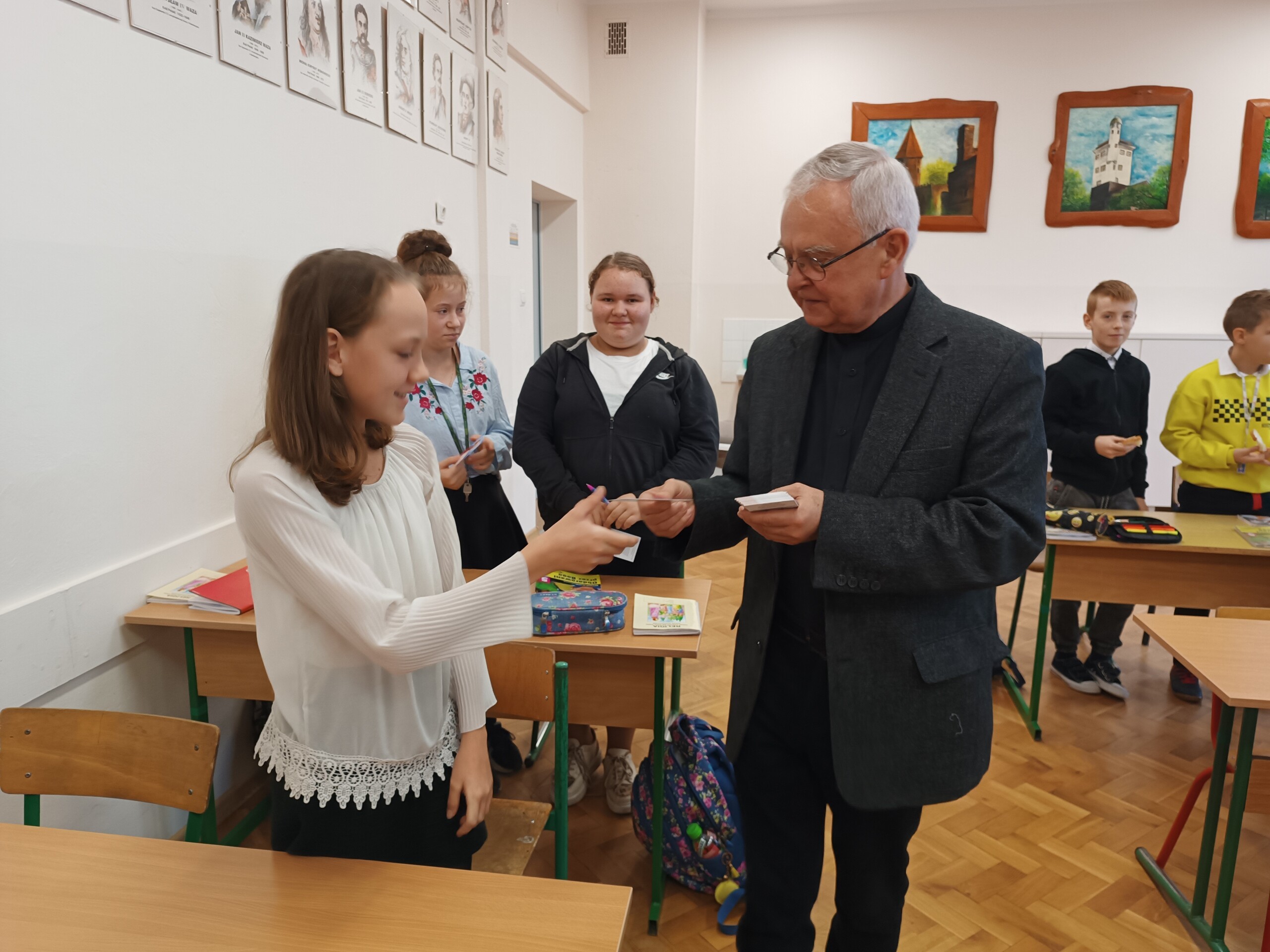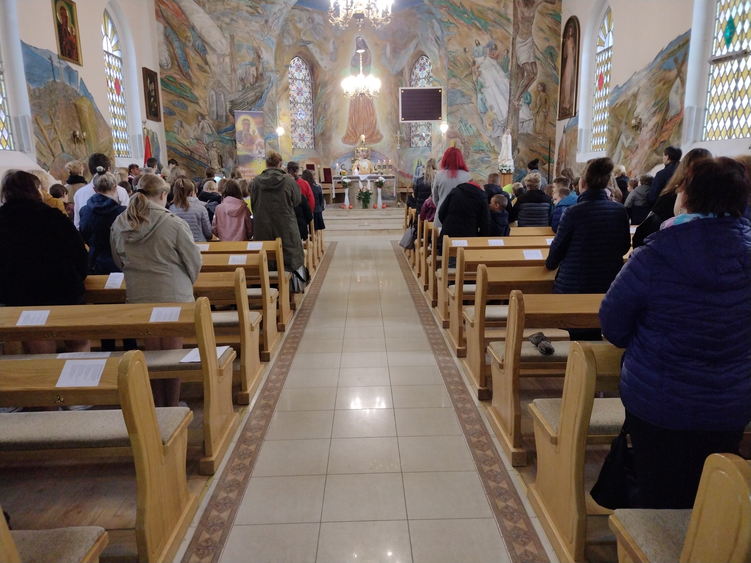 Miłym akcentem tego dnia było spożycie chleba, przez całą społeczność szkolną, który był składany podczas Mszy św. na ołtarzu pańskim. Pan dyrektor częstował chlebem, pani wicedyrektor wręczała słodkie batoniki ufundowane przez księdza proboszcza Janusz Górala, a ksiądz proboszcz wręczał każdemu obrazek z wizerunkiem Papieża Świętego Jana Pawła II.