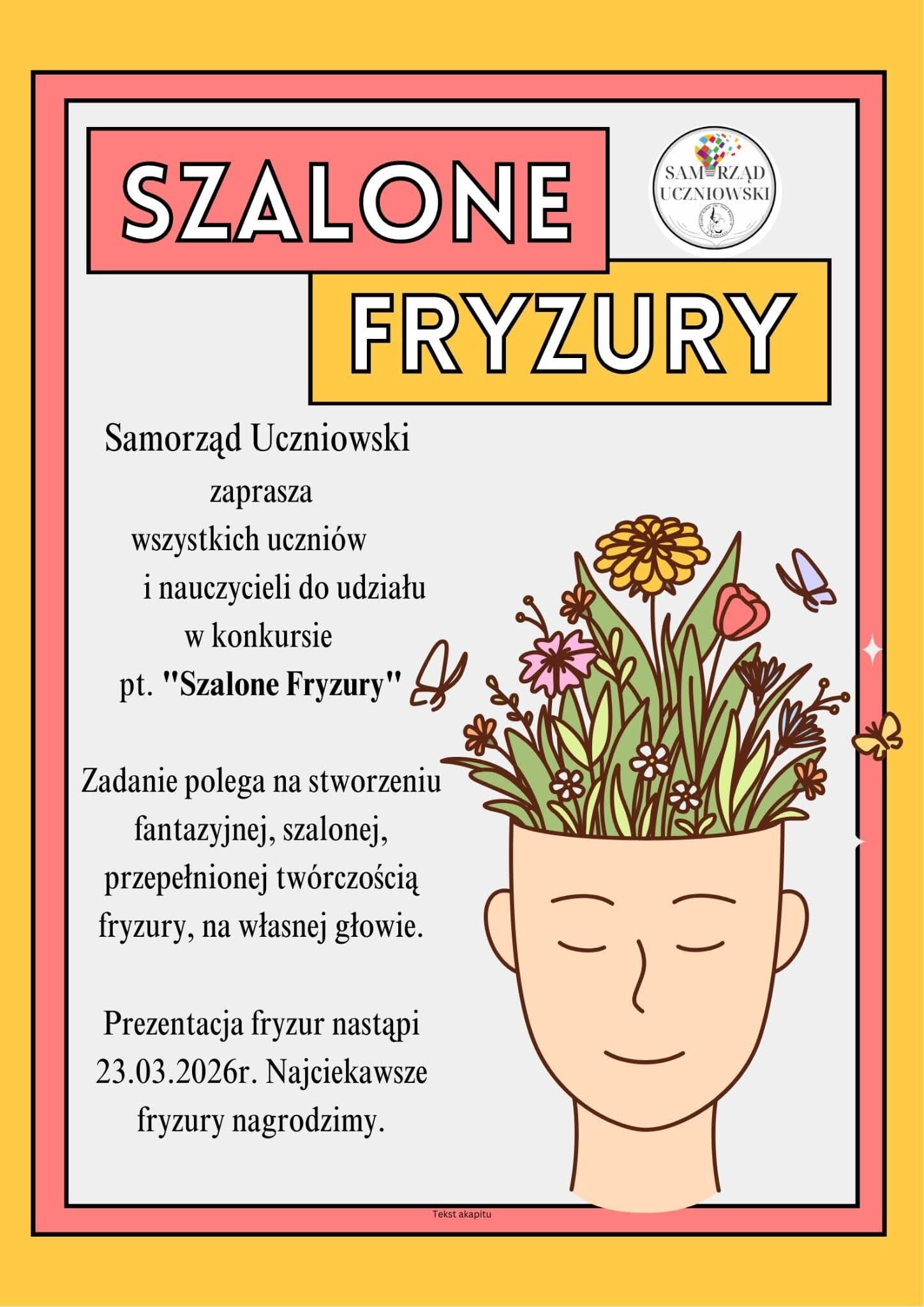 Samorząd Uczniowski serdecznie zaprasza wszystkich uczniów i nauczycieli do udziału w konkursie „Szalone fryzury”