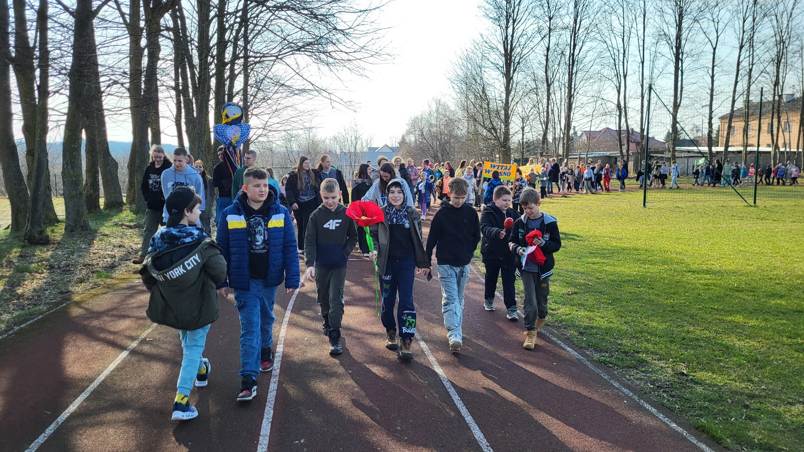 Przedostatni tydzień marca w naszej szkole był czasem realizacji pomysłów uczniowskich na powitanie wiosny. Zaczęliśmy od Dnia bez Plecaka w poniedziałek. Wtorek był dniem kolorowych twarzy. W środę rozegrał się Szkolny Turniej Szachowy. Czwartek to Dzień Przyszłego Zawodu. oraz piłeczkowego paintballu cieszącego się co roku wielkim zainteresowaniem. W piątek odbył się pokaz mody wiosenno-ekologicznej, a także konkurs na szalone fryzury. Na koniec okolicznymi uliczkami ruszył pochód z marzanną żegnający zimę i witający wiosnę.