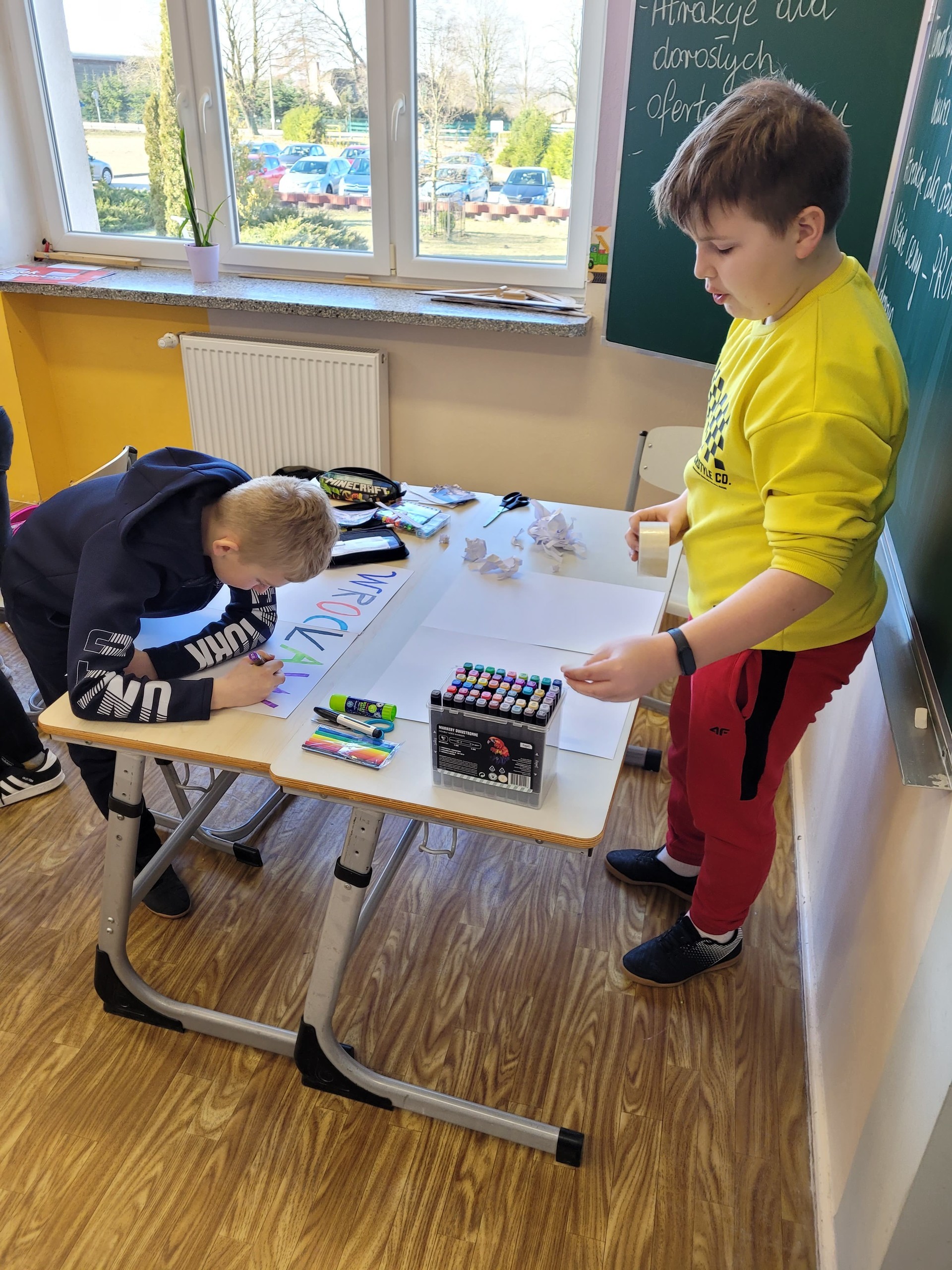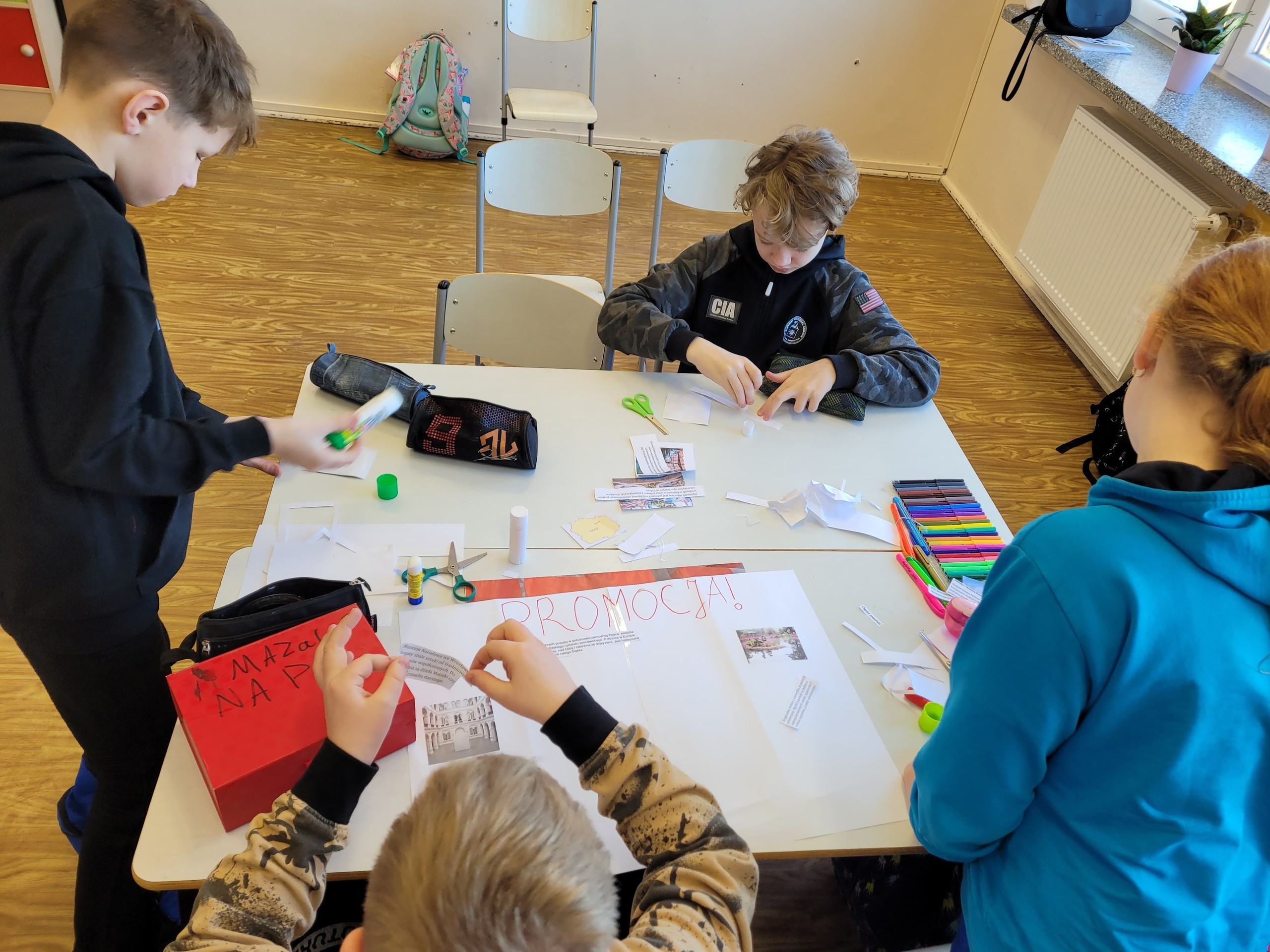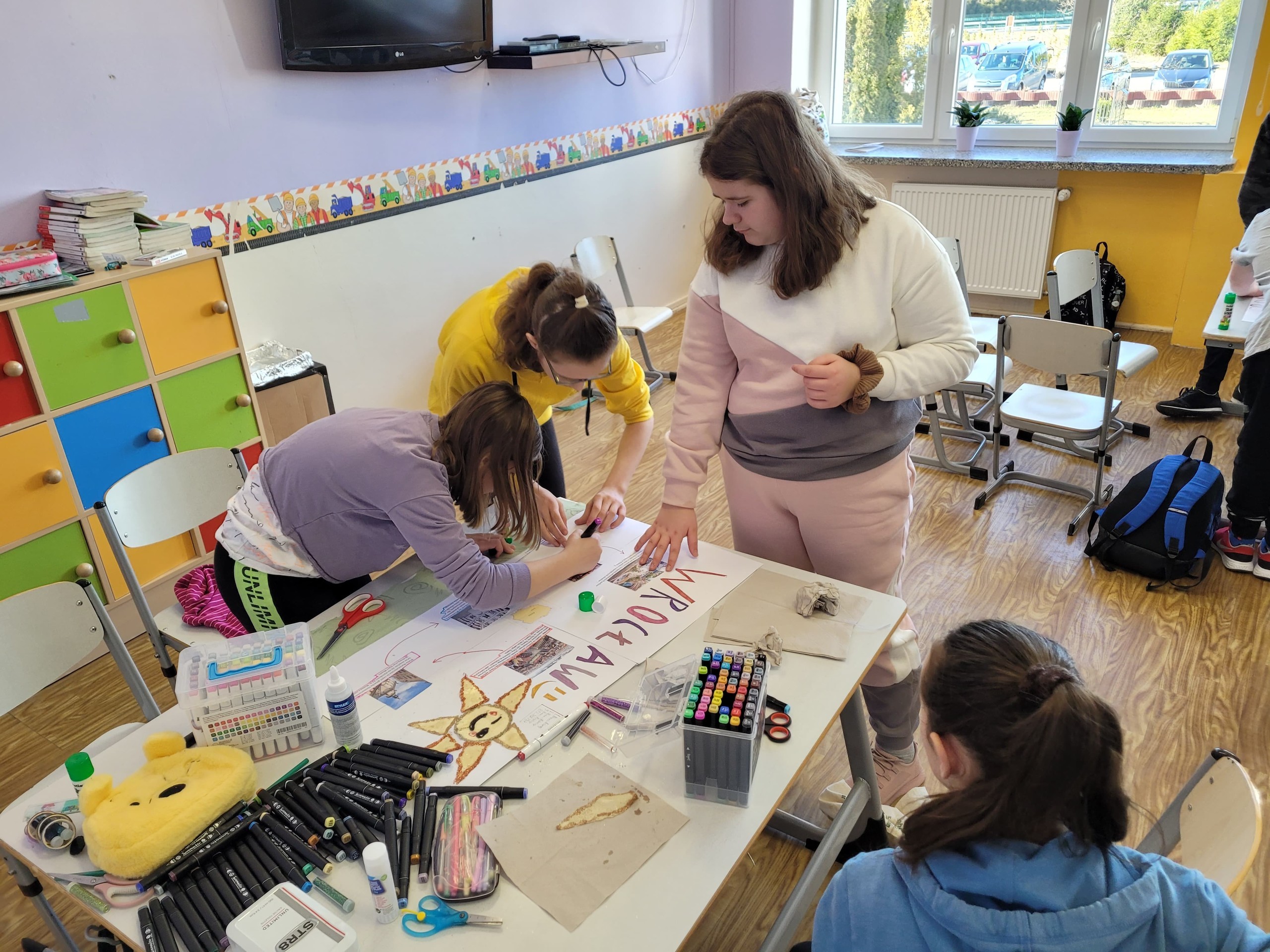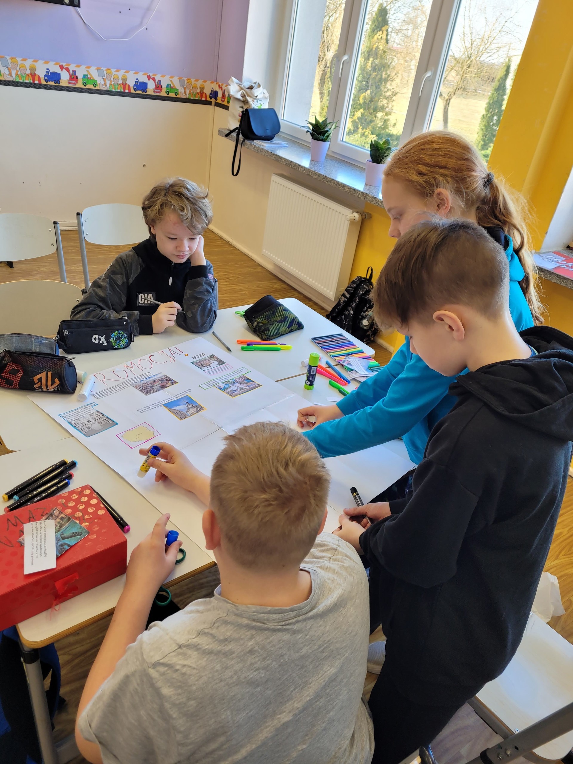 Uczniowie klasy V pracowali na lekcjach języka polskiego metodą projektu. W zespołach wspólnie opracowali ofertę biura podróży, która dotyczyła wycieczki do Wrocławia. Uczniowie korzystając z informacji o mieście, wymieniali się pomysłami, a także przeanalizowali oferty biur podróży. Praca zespołowa przebiegała bardzo sprawnie. Uczniowie zauważyli, że oferowanie usług turystycznych jest związane z przyciągnięciem uwagi odbiorcy za pomocą odpowiednich zdjęć, zaskakujących haseł, przemyślanej szaty graficznej.