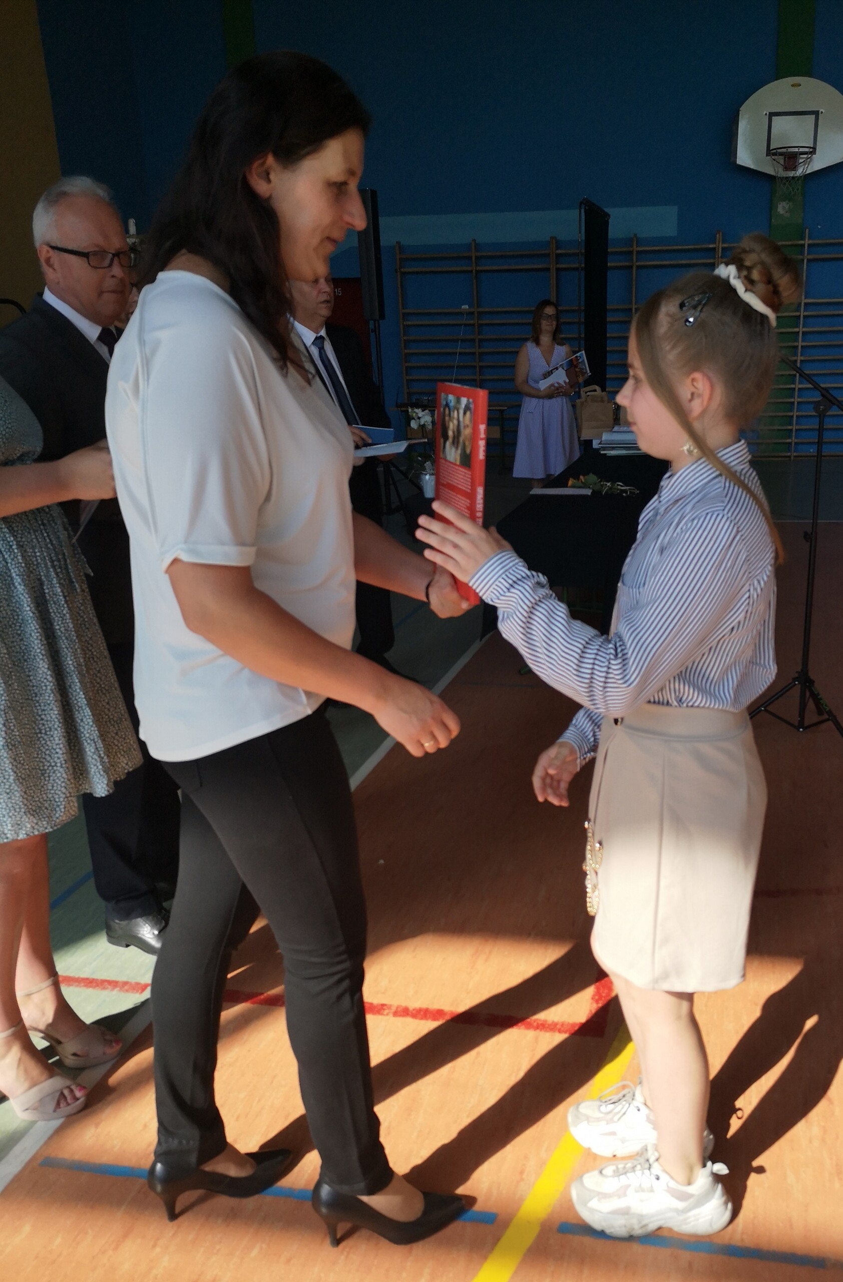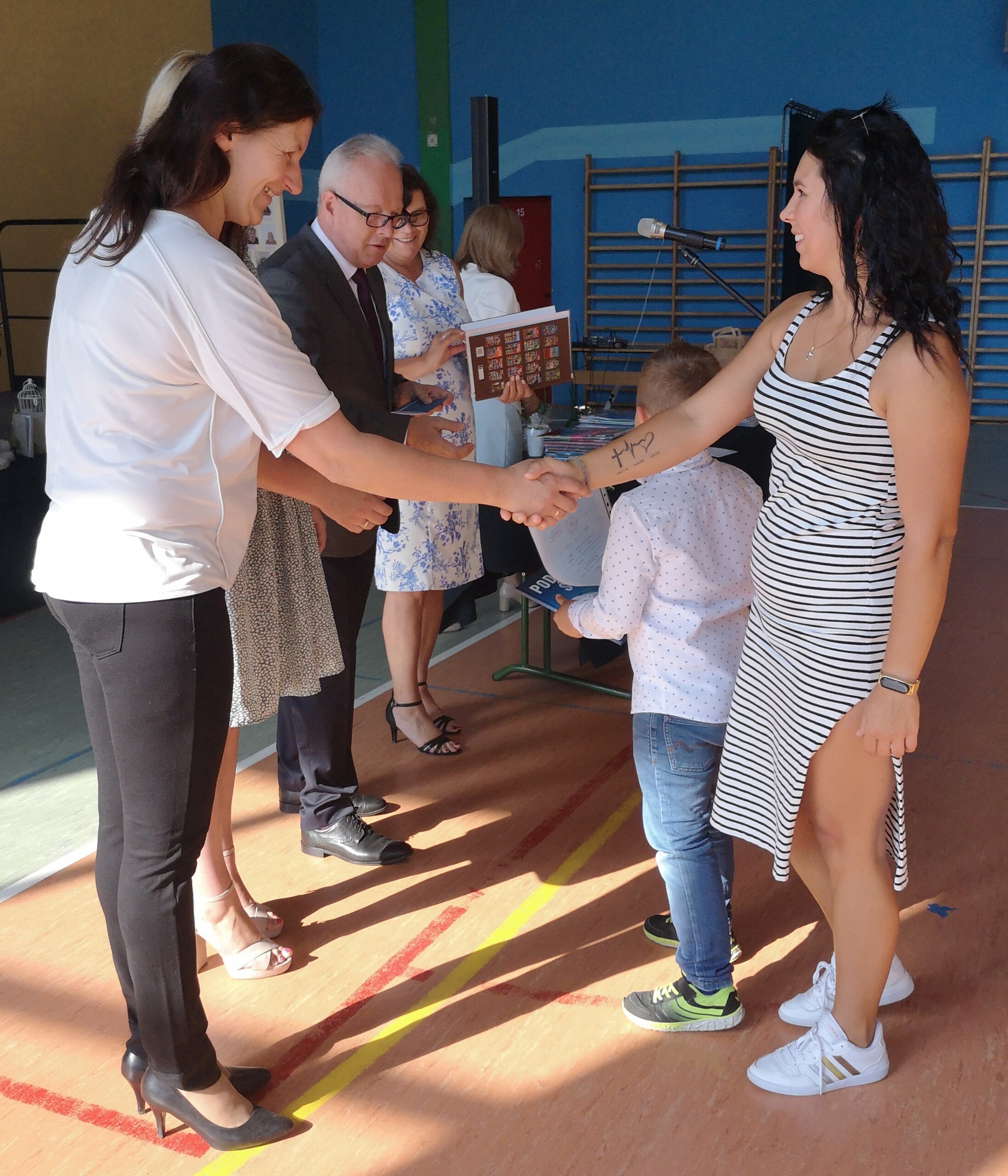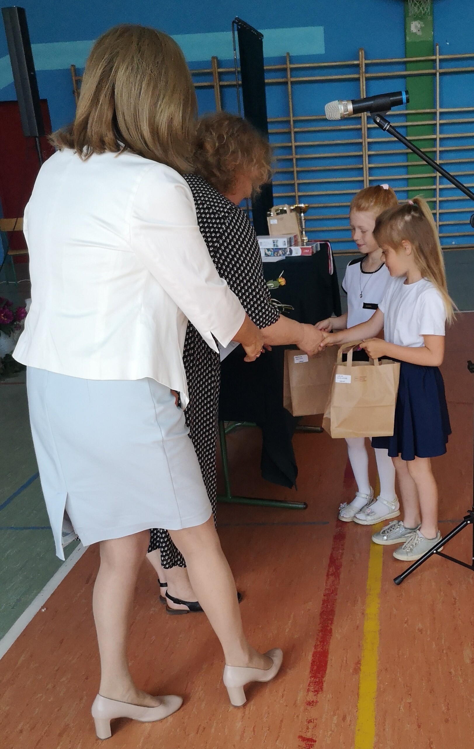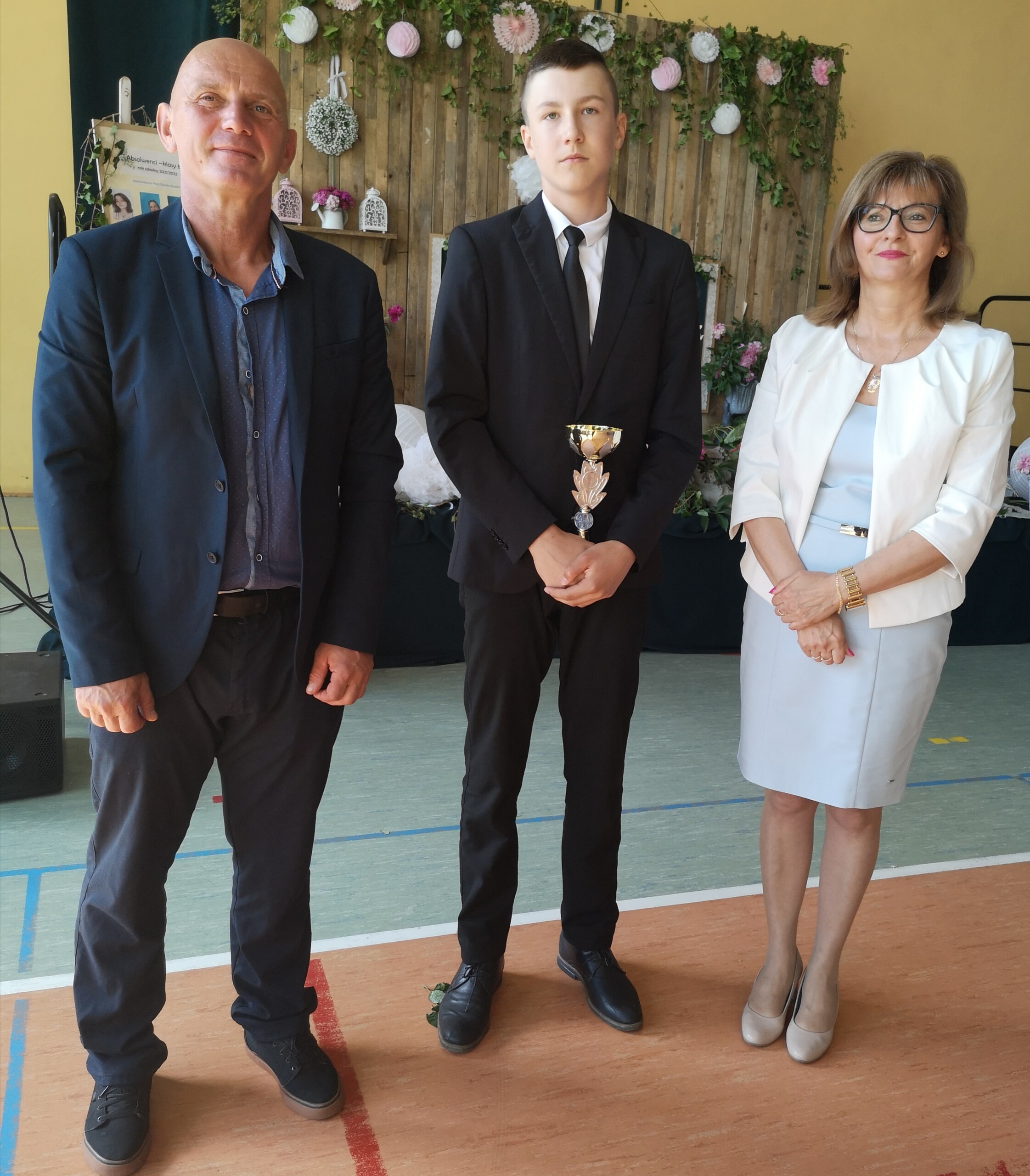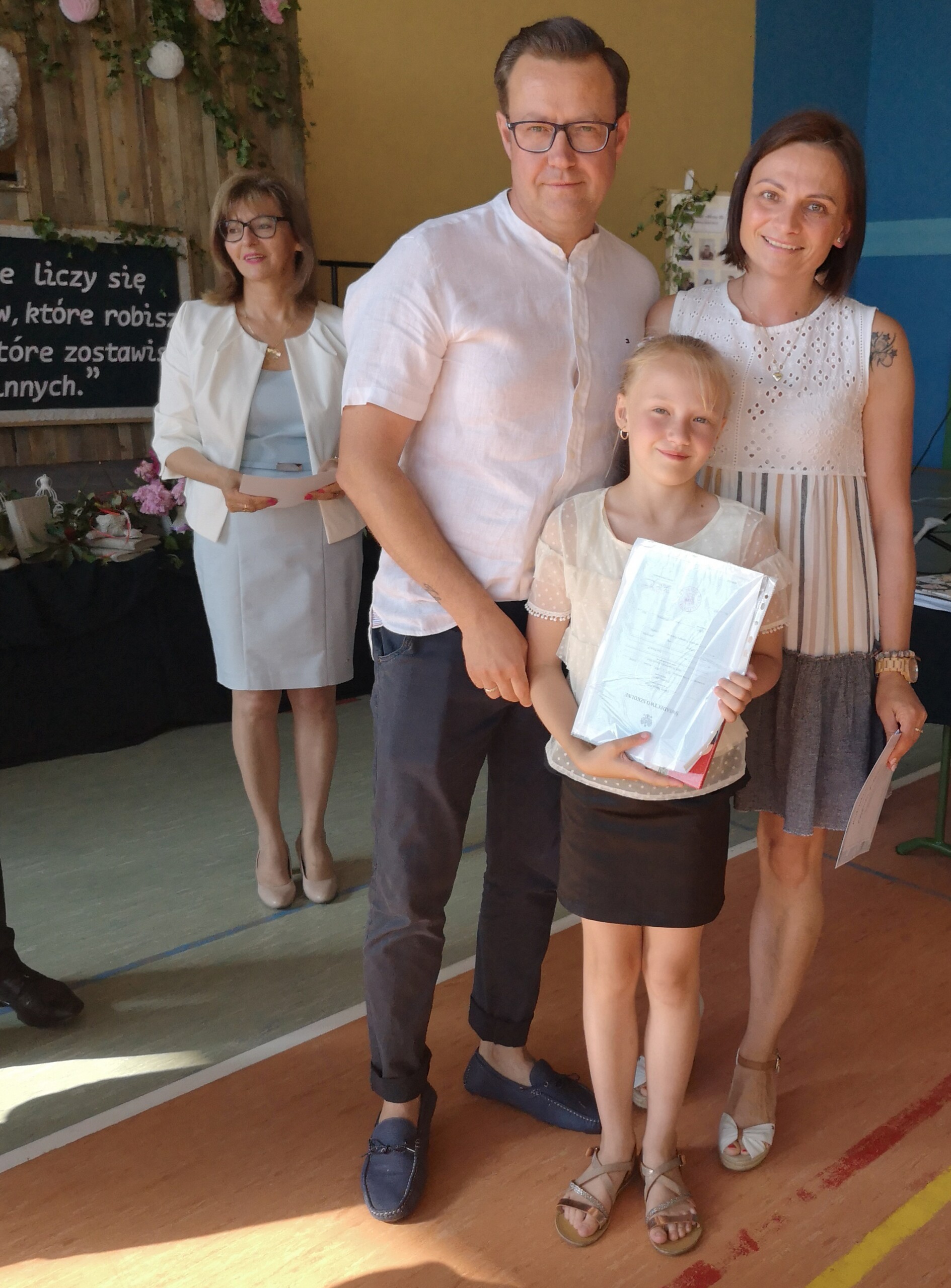 Po tej szczególnej chwili nastąpiło uroczyste wręczenie świadectw i nagród uczniom wyróżniającym się w nauce, listów gratulacyjnych i podziękowań dla rodziców oraz nagród laureatom konkursów szkolnych, gminnych, powiatowych i ogólnopolskich. Od wielu lat przyznajemy wyróżnienia wychowawcze. W tym roku szkolnym tytuł „Uczeń z klasą” otrzymała Alicja Stanuch z klasy VIIIa, „Reprezentant szkoły” otrzymali: Zofia Brokowska z klasy VII, Julia Folga z klasy VI i Pola Sterkowicz z klasy IV. Uczeń klasy VII Michał Twardowski za osiągnięcia sportowe, a przede wszystkim w Wojewódzkich Igrzyskach Młodzieży nagrodzony został tytułem „Sportowiec roku”. Na ten sam tytuł zasłużyła Alicja Stanuch za wybitne osiągnięcia na ogólnopolskich arenach sportowych. Wręczono również medale i puchary wyróżniającym się wolontariuszom i sportowcom.