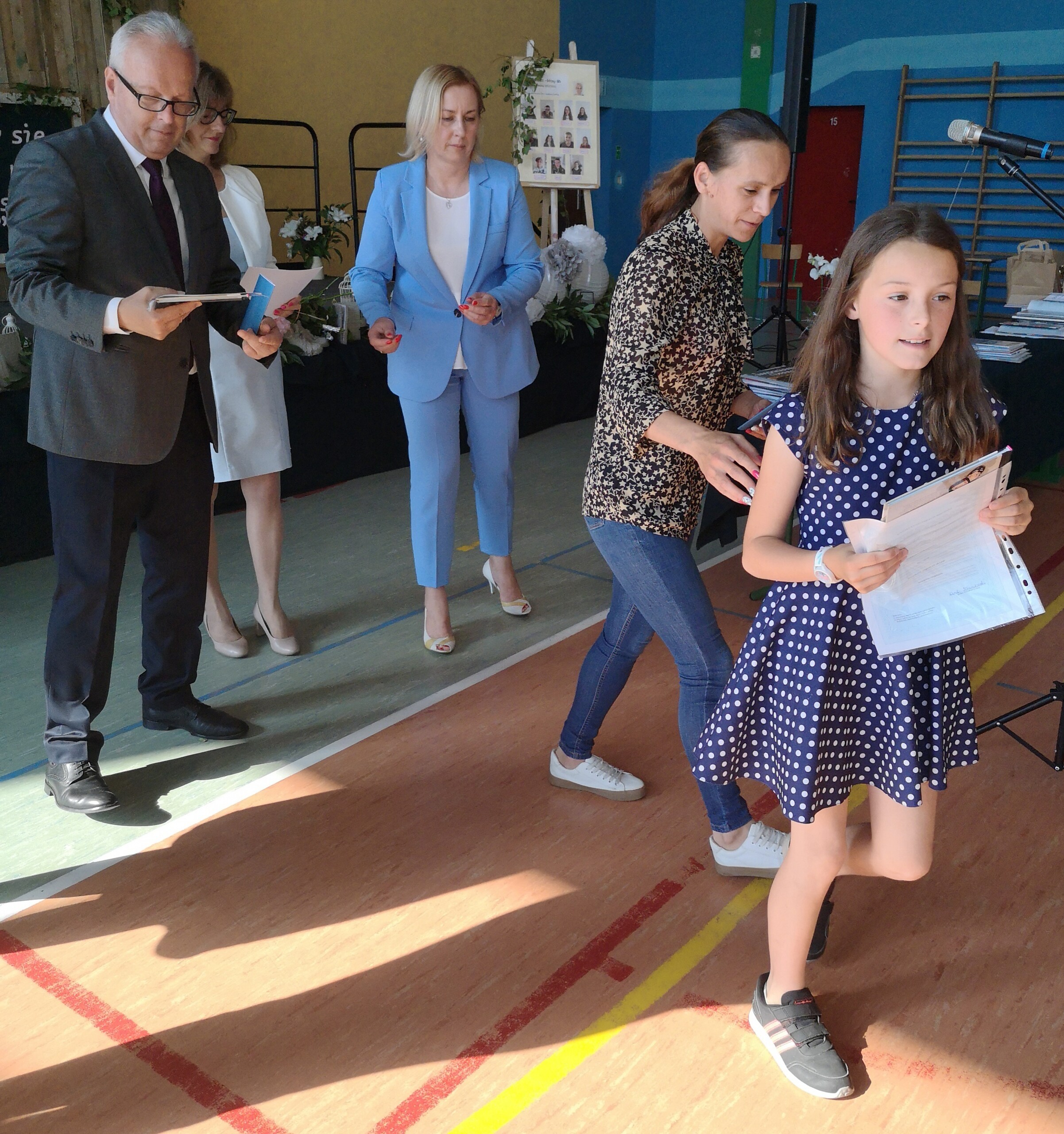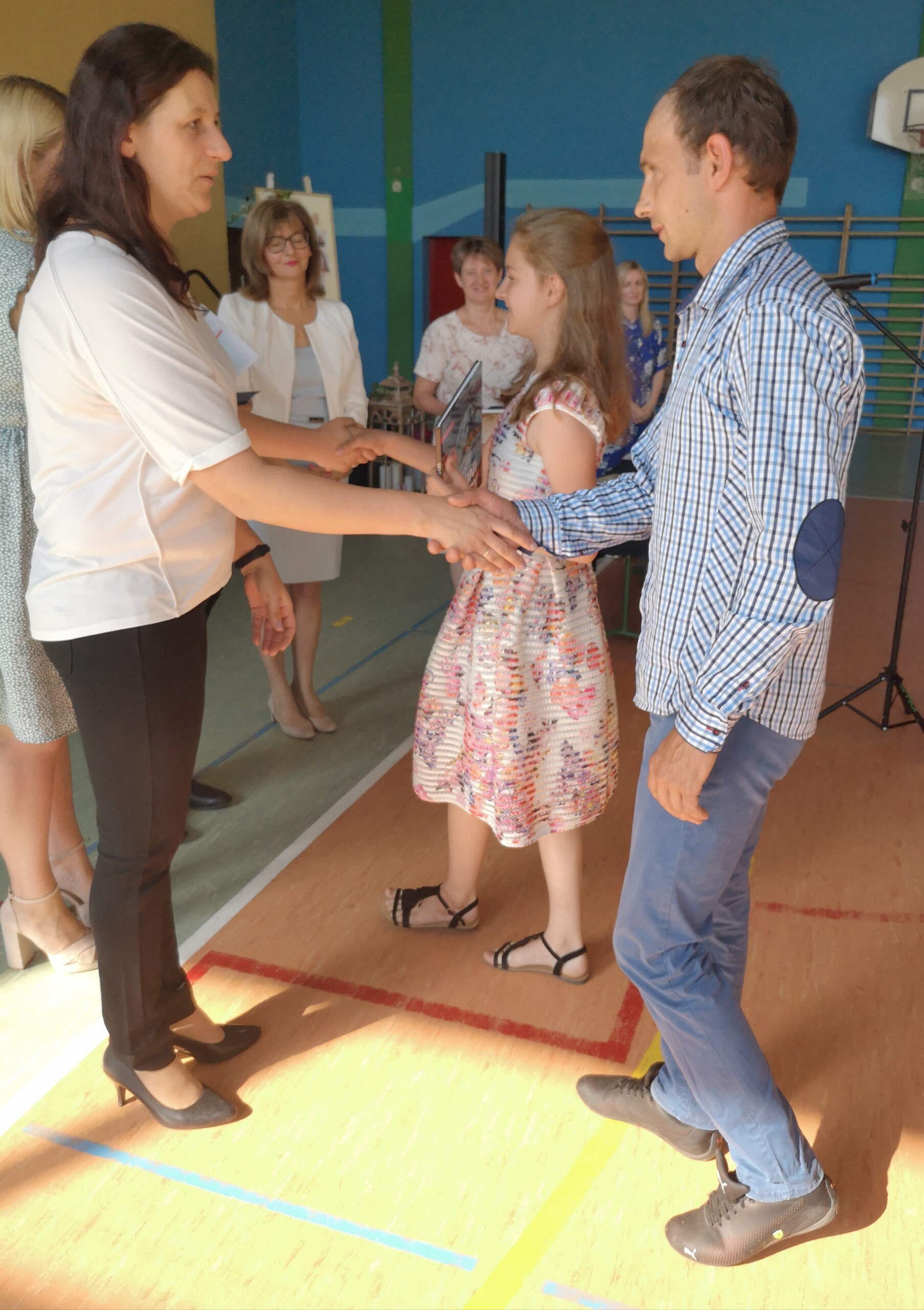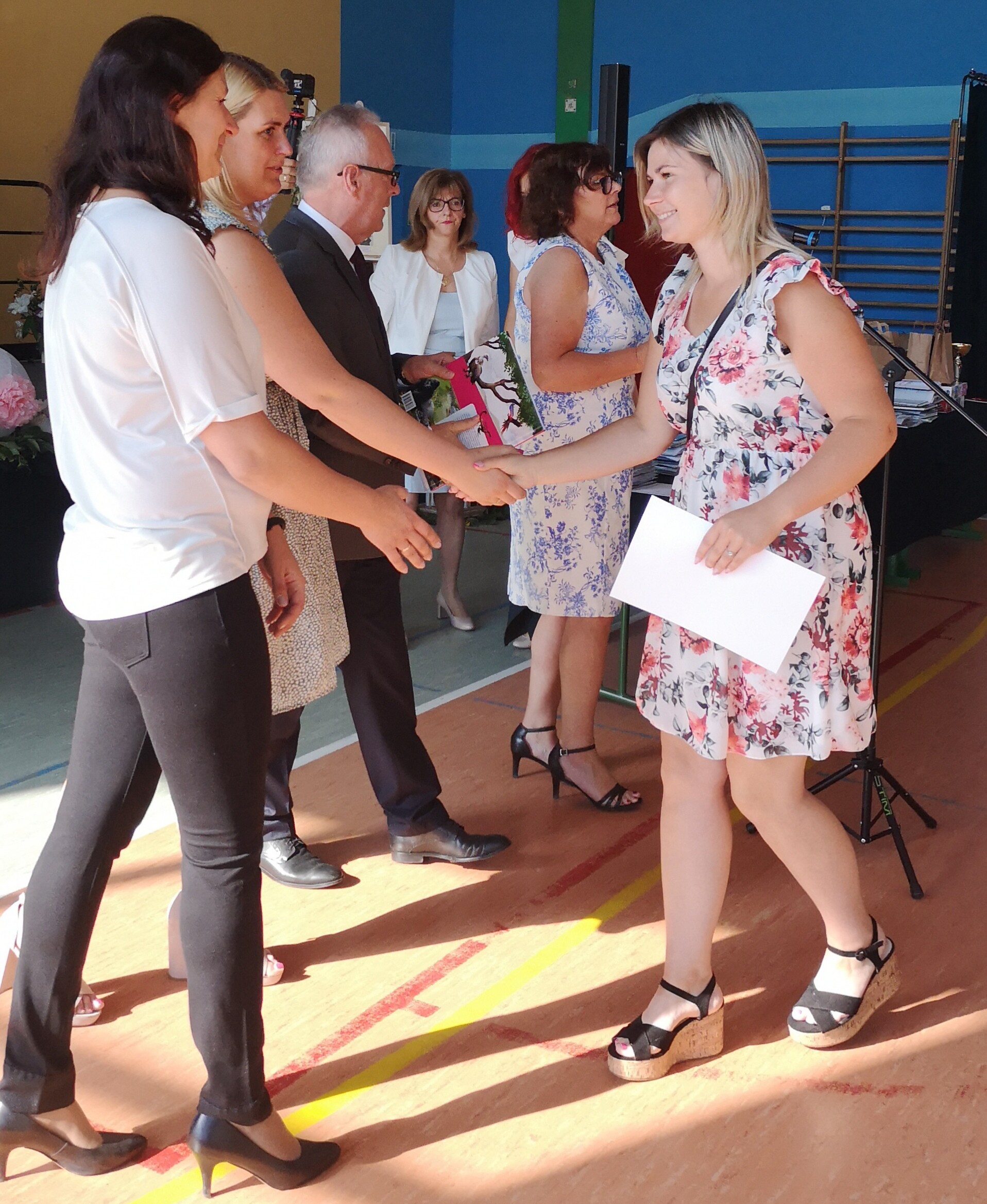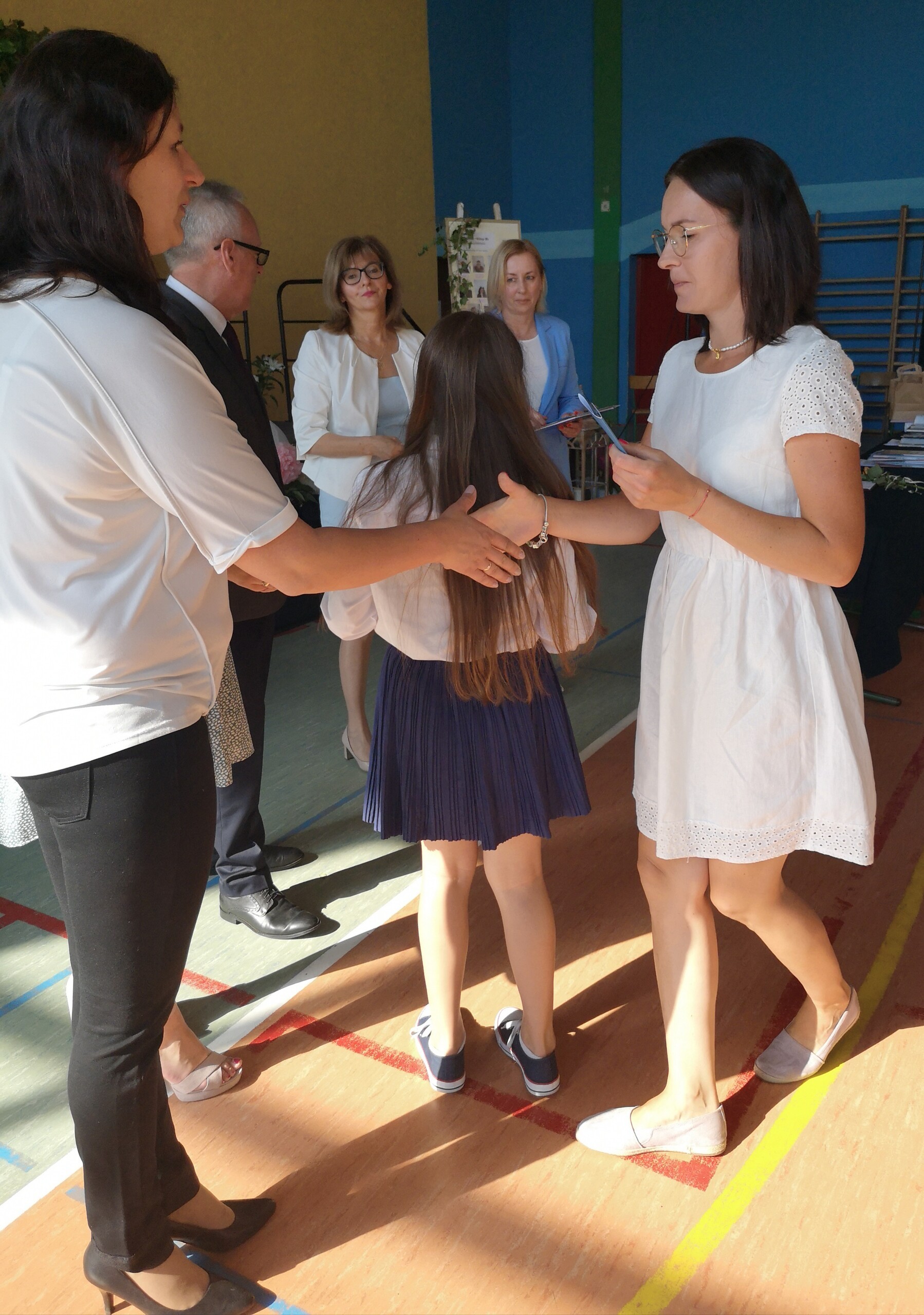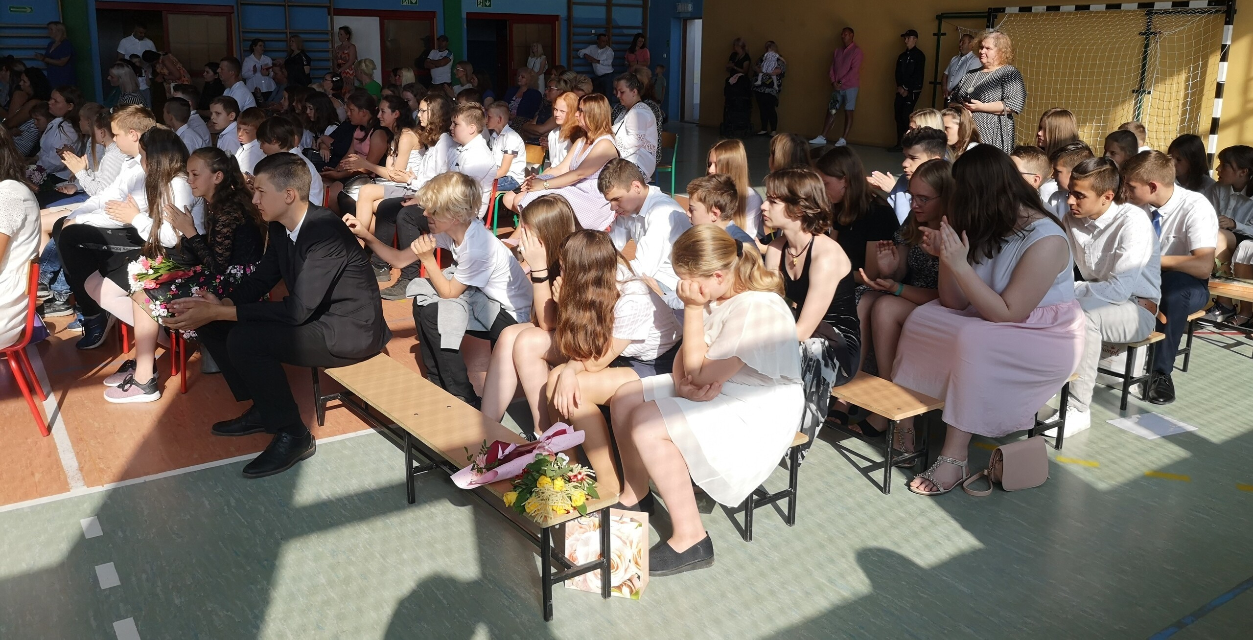 Po tej szczególnej chwili nastąpiło uroczyste wręczenie świadectw i nagród uczniom wyróżniającym się w nauce, listów gratulacyjnych i podziękowań dla rodziców oraz nagród laureatom konkursów szkolnych, gminnych, powiatowych i ogólnopolskich. Od wielu lat przyznajemy wyróżnienia wychowawcze. W tym roku szkolnym tytuł „Uczeń z klasą” otrzymała Alicja Stanuch z klasy VIIIa, „Reprezentant szkoły” otrzymali: Zofia Brokowska z klasy VII, Julia Folga z klasy VI i Pola Sterkowicz z klasy IV. Uczeń klasy VII Michał Twardowski za osiągnięcia sportowe, a przede wszystkim w Wojewódzkich Igrzyskach Młodzieży nagrodzony został tytułem „Sportowiec roku”. Na ten sam tytuł zasłużyła Alicja Stanuch za wybitne osiągnięcia na ogólnopolskich arenach sportowych. Wręczono również medale i puchary wyróżniającym się wolontariuszom i sportowcom.