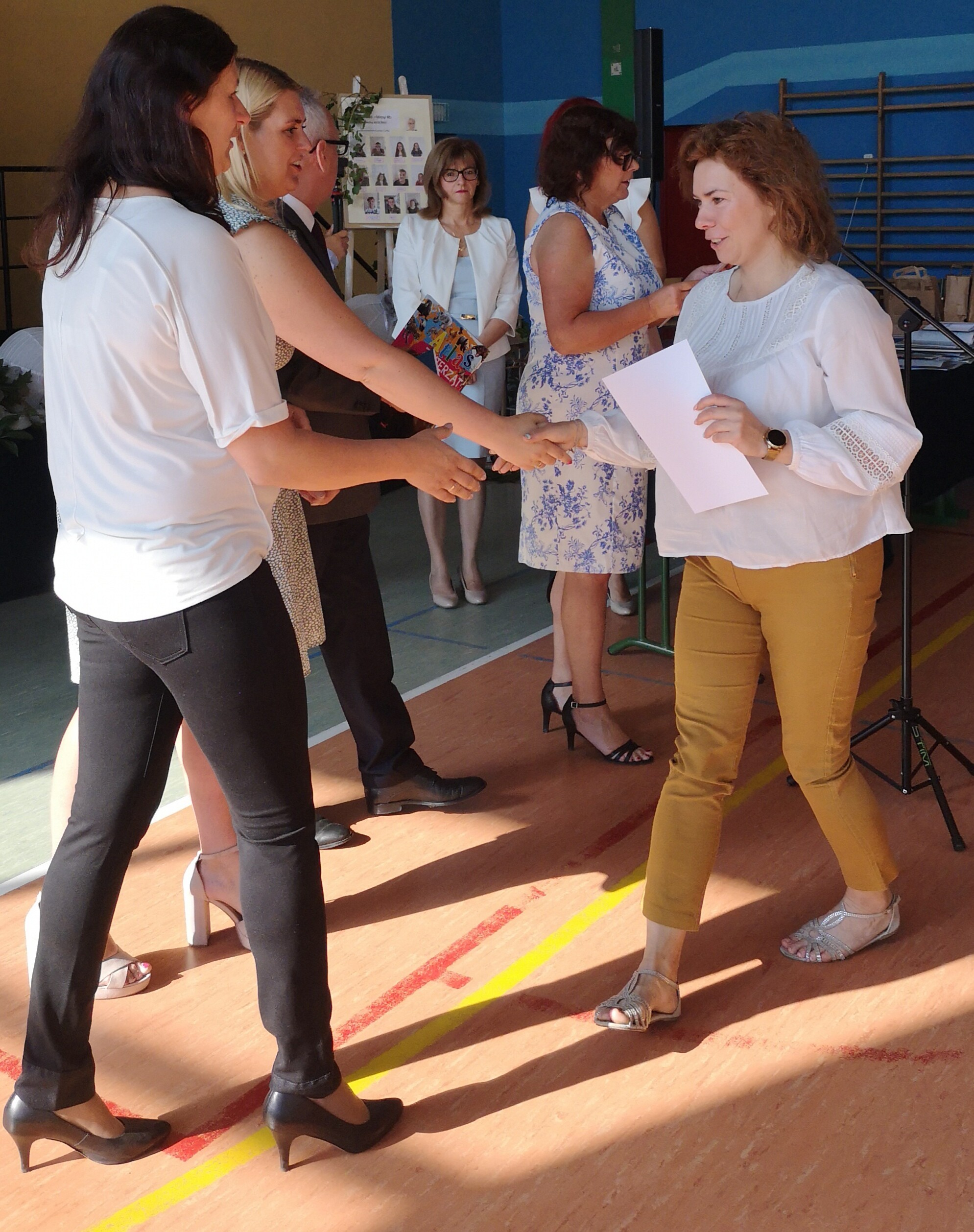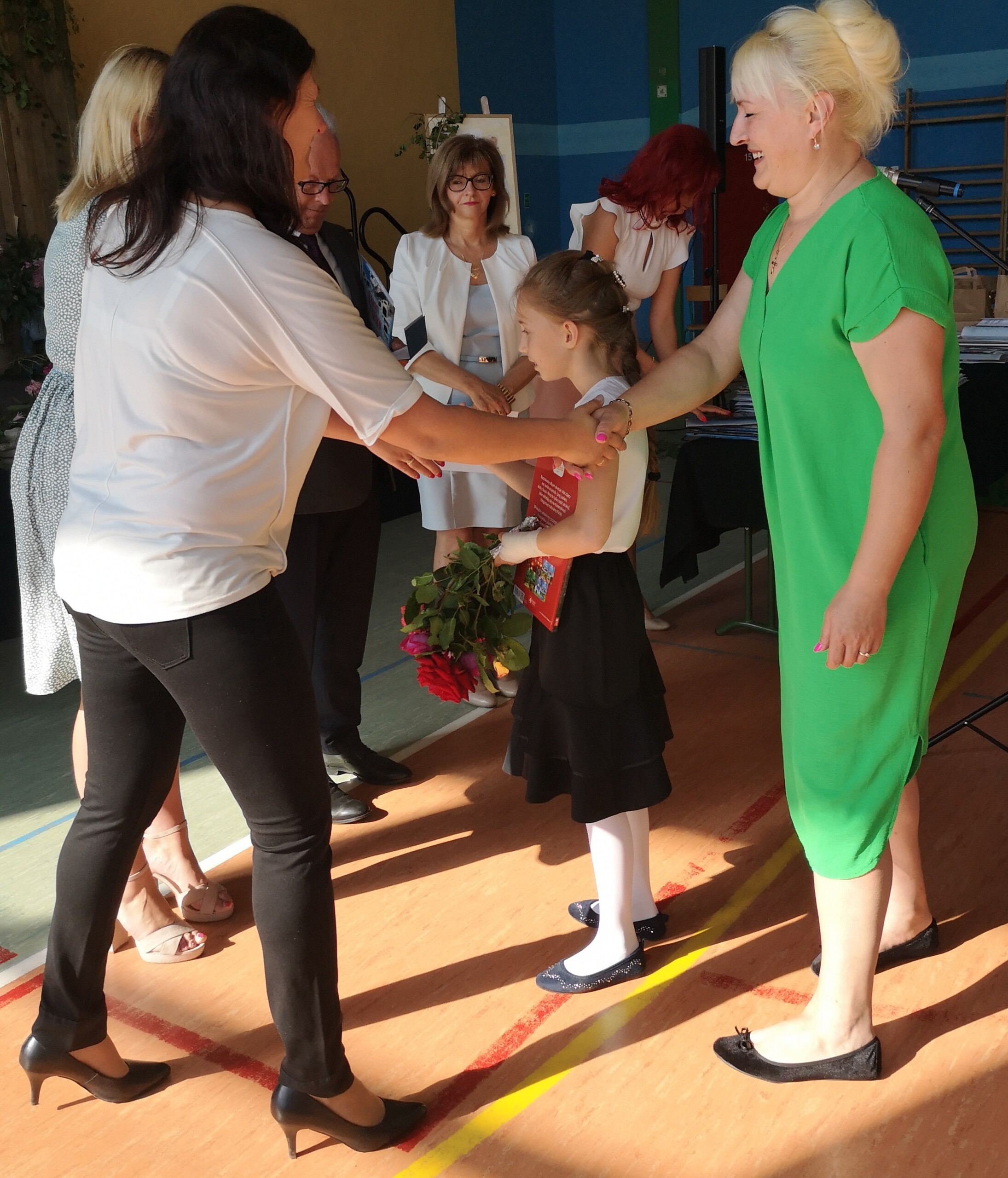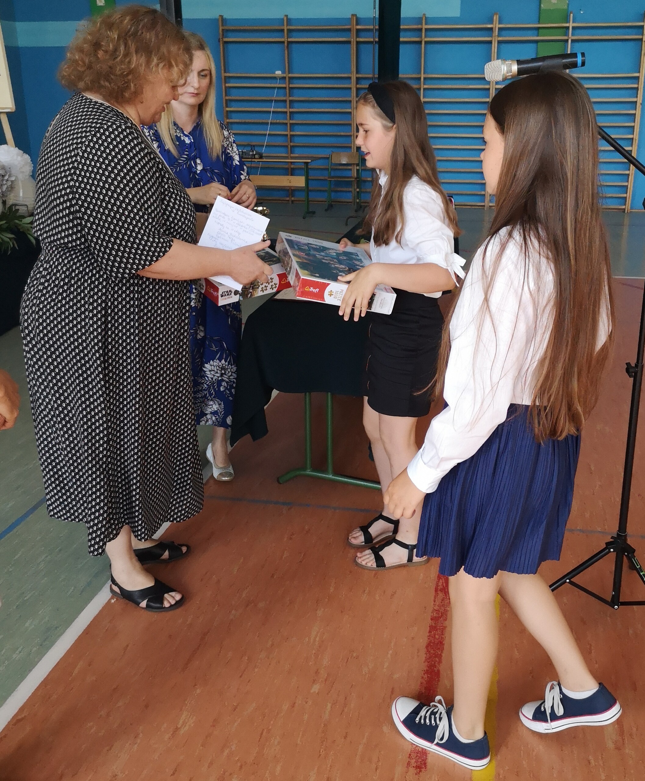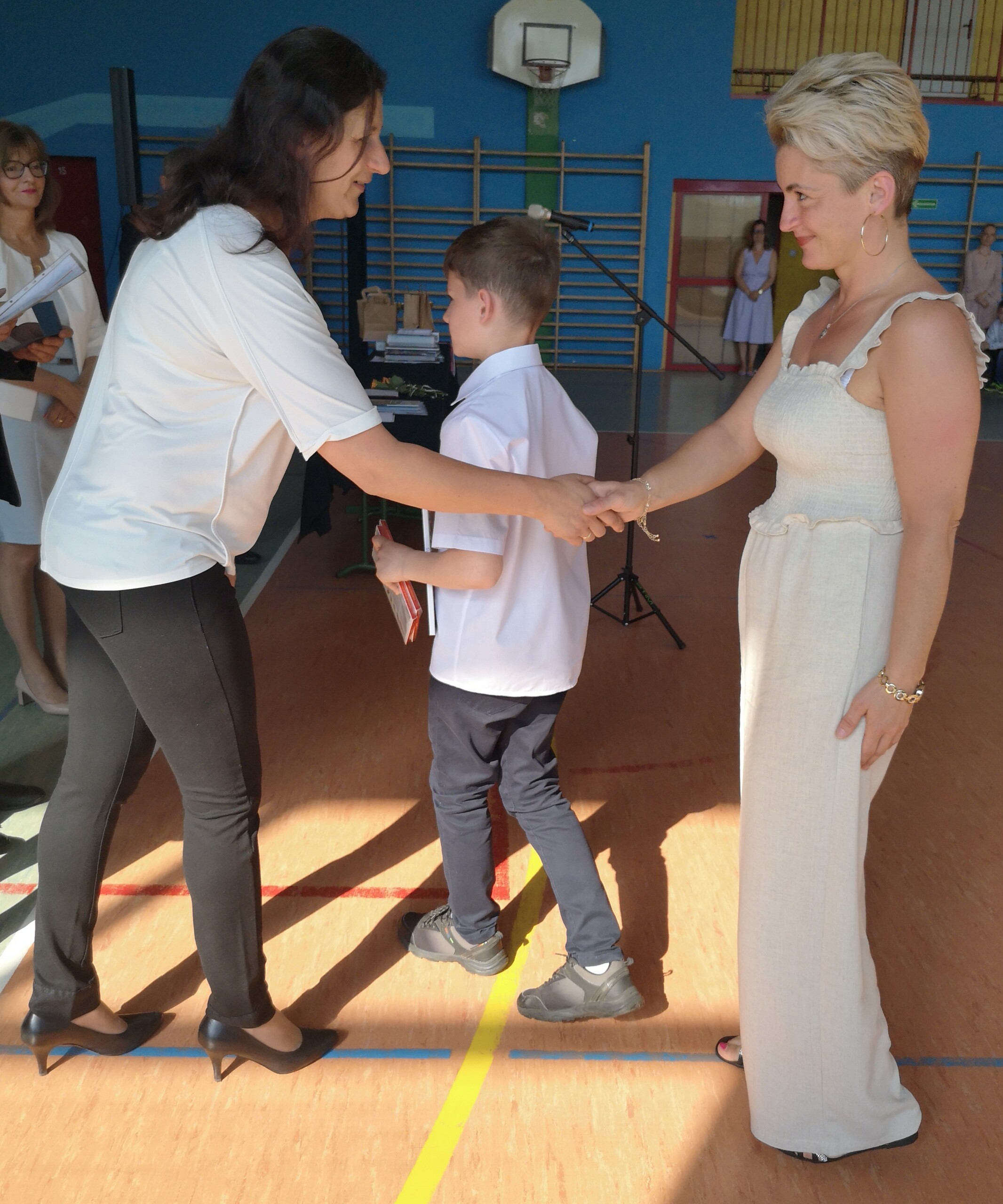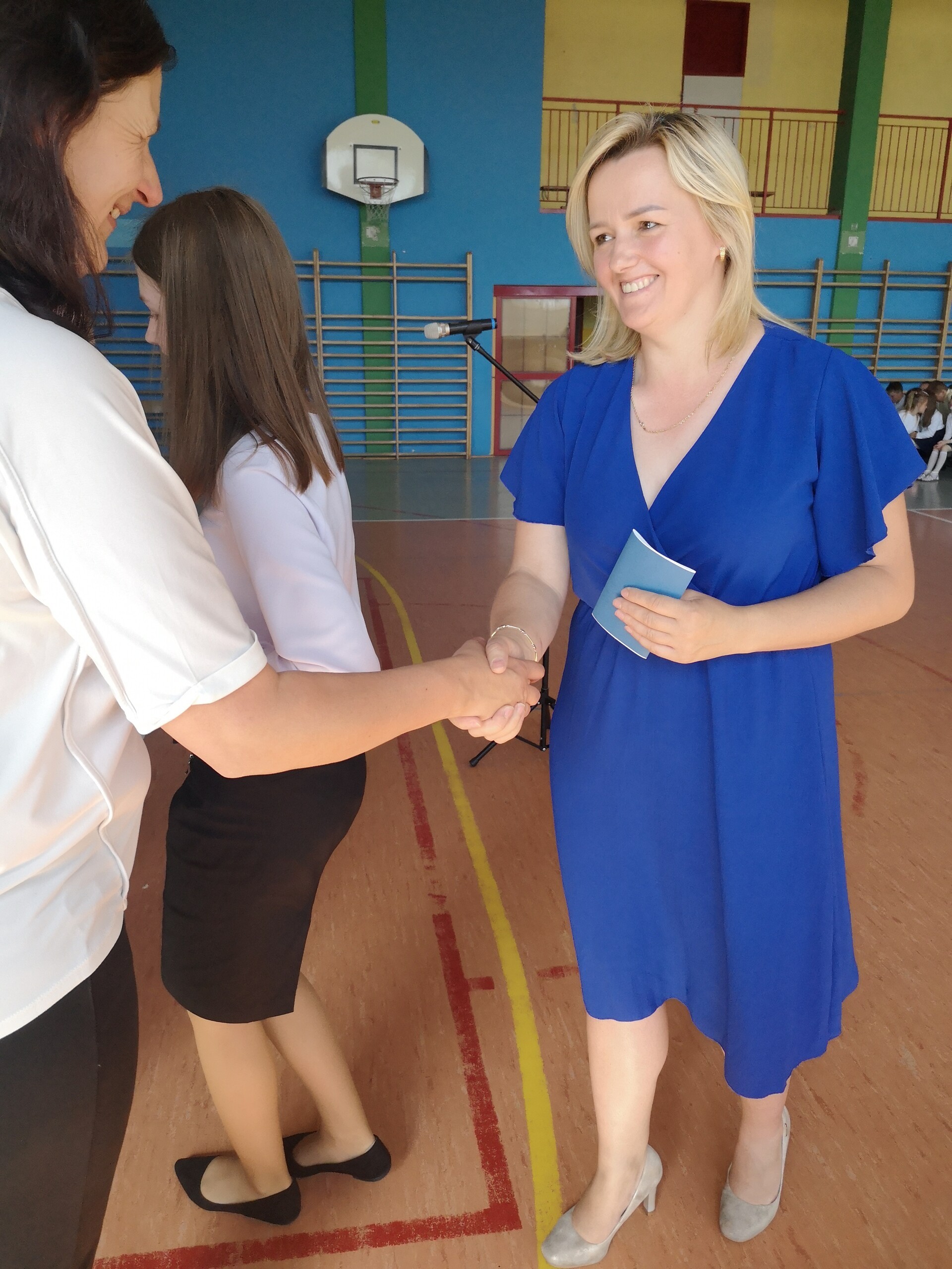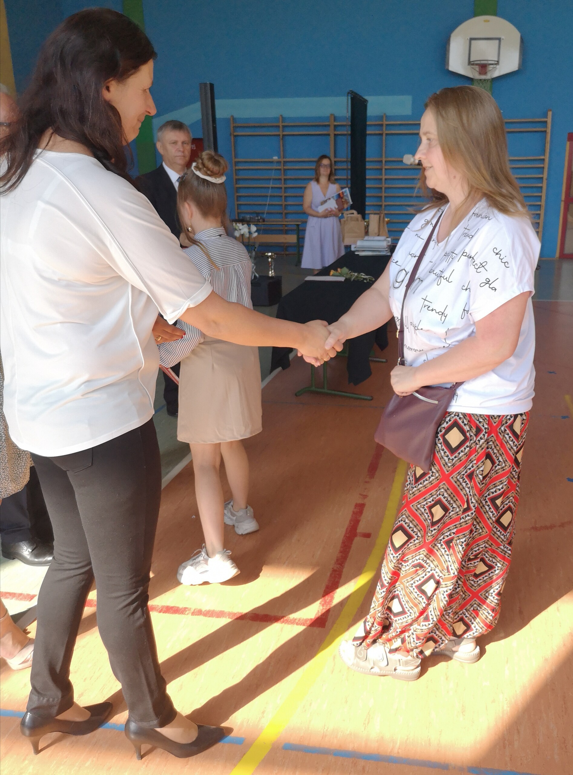 Po tej szczególnej chwili nastąpiło uroczyste wręczenie świadectw i nagród uczniom wyróżniającym się w nauce, listów gratulacyjnych i podziękowań dla rodziców oraz nagród laureatom konkursów szkolnych, gminnych, powiatowych i ogólnopolskich. Od wielu lat przyznajemy wyróżnienia wychowawcze. W tym roku szkolnym tytuł „Uczeń z klasą” otrzymała Alicja Stanuch z klasy VIIIa, „Reprezentant szkoły” otrzymali: Zofia Brokowska z klasy VII, Julia Folga z klasy VI i Pola Sterkowicz z klasy IV. Uczeń klasy VII Michał Twardowski za osiągnięcia sportowe, a przede wszystkim w Wojewódzkich Igrzyskach Młodzieży nagrodzony został tytułem „Sportowiec roku”. Na ten sam tytuł zasłużyła Alicja Stanuch za wybitne osiągnięcia na ogólnopolskich arenach sportowych. Wręczono również medale i puchary wyróżniającym się wolontariuszom i sportowcom.