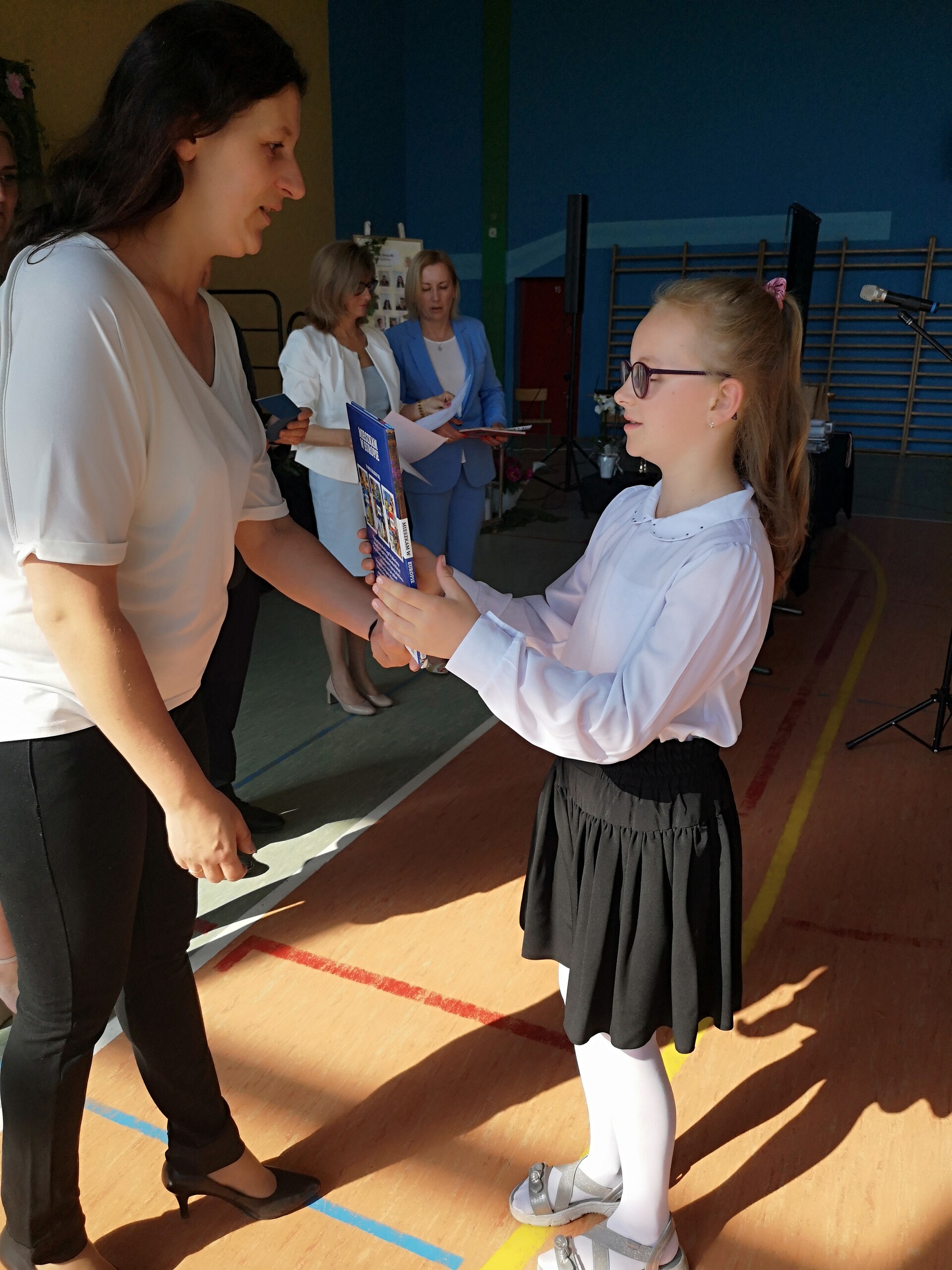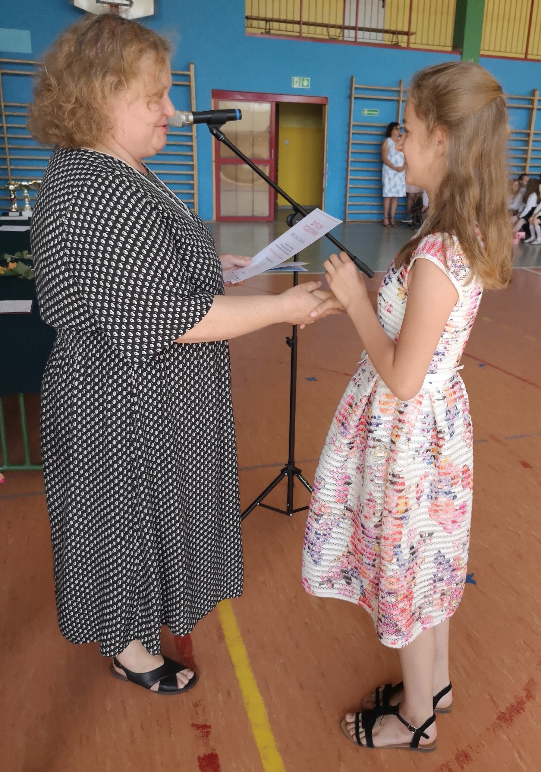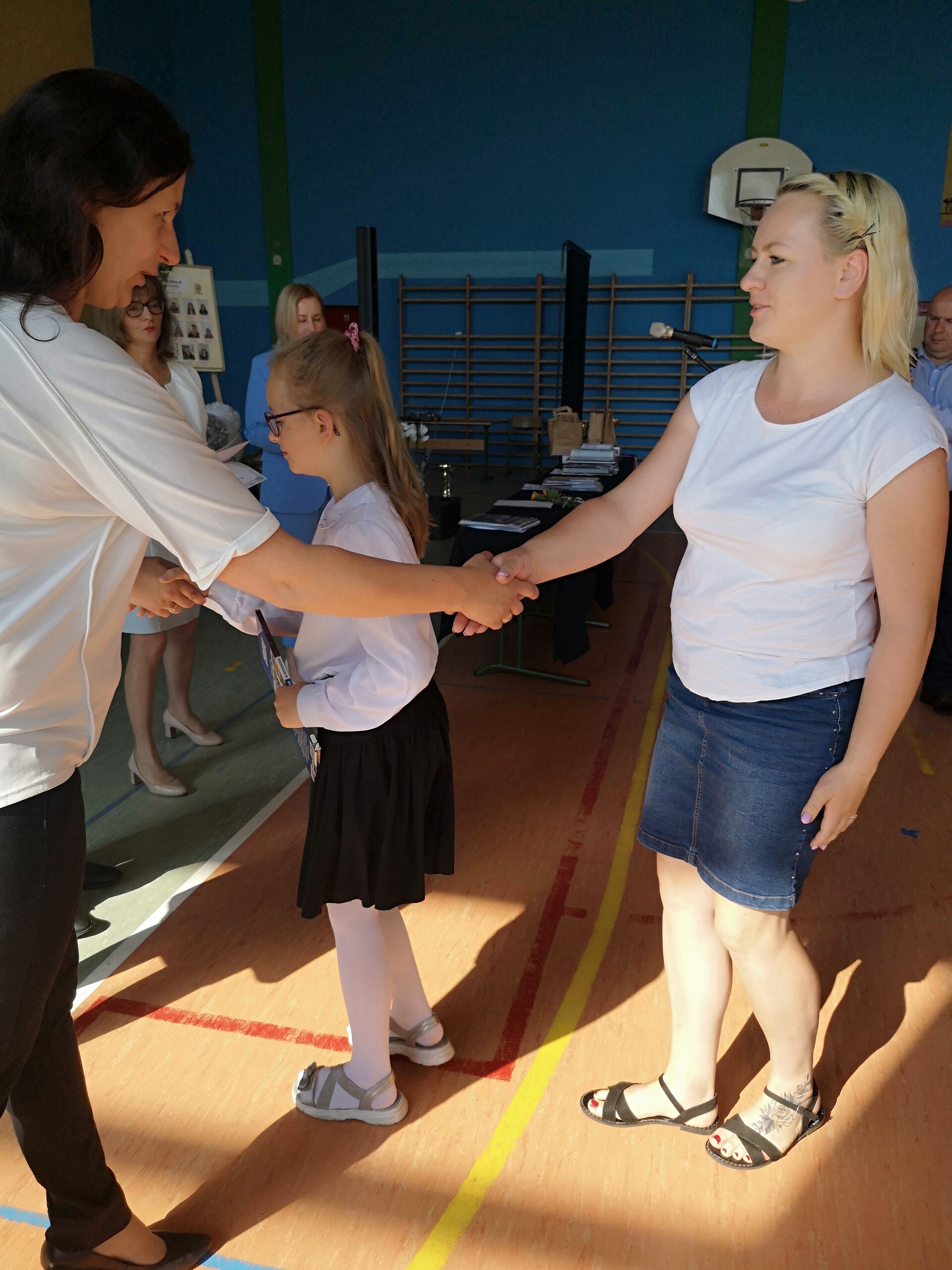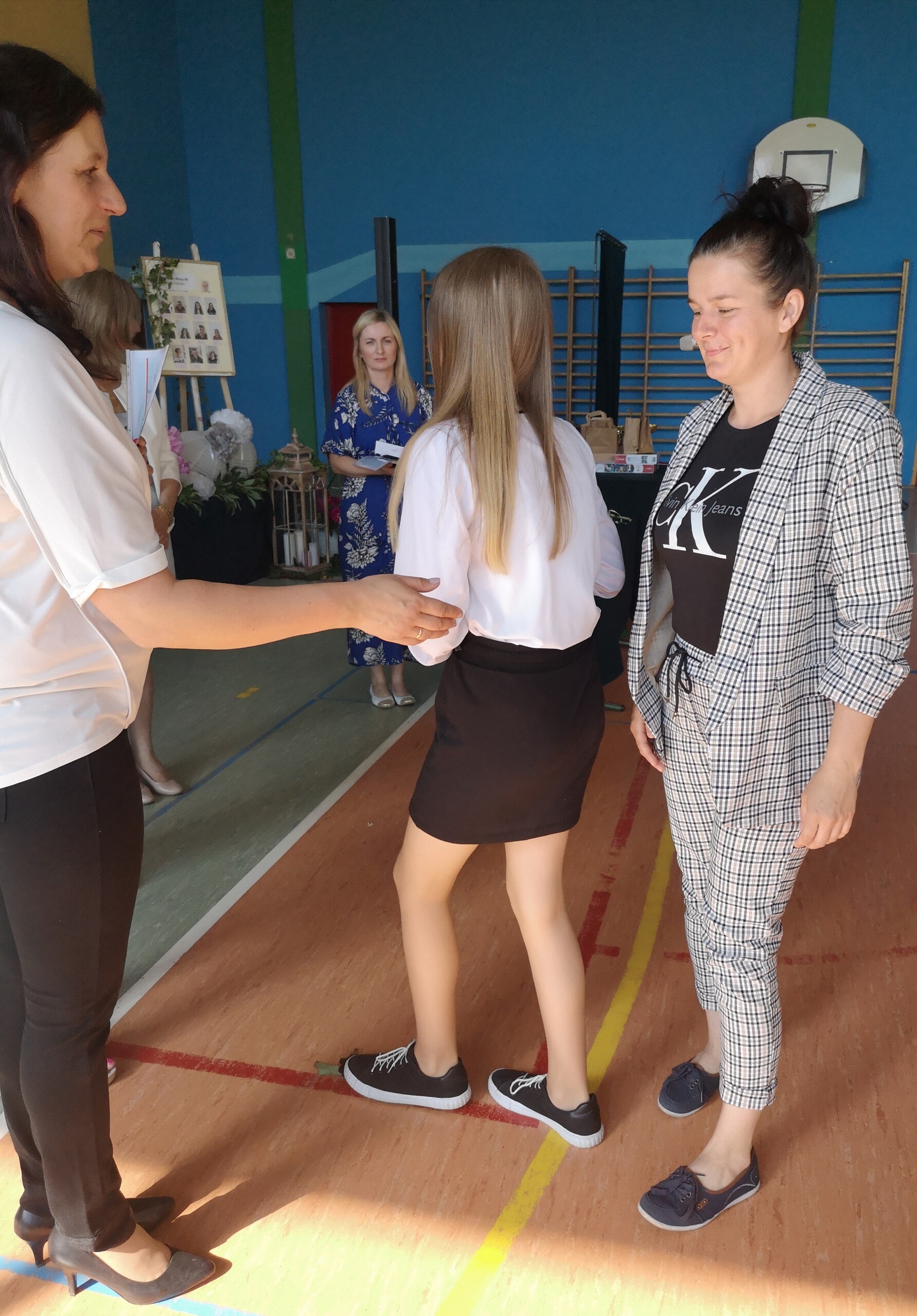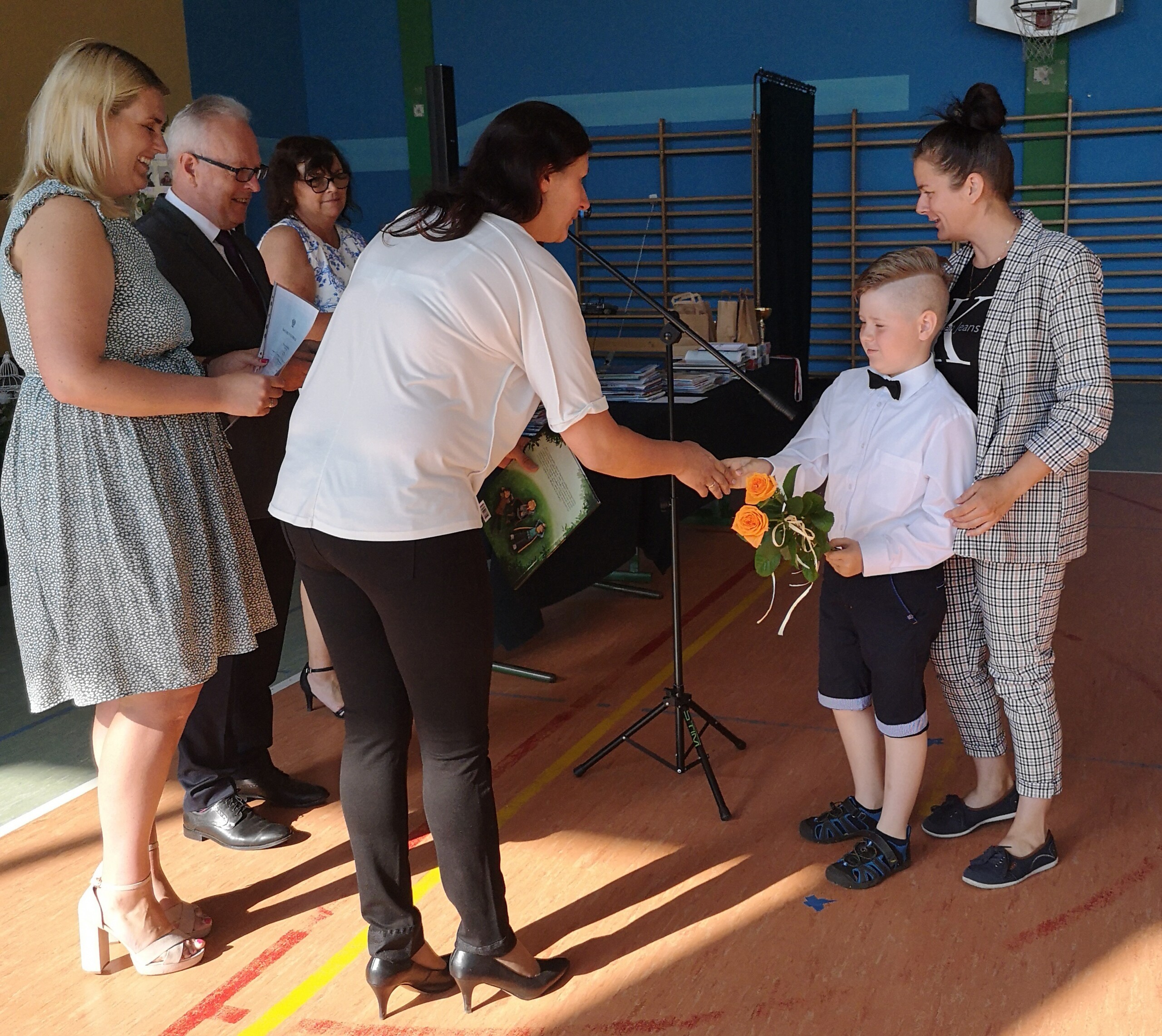 Po tej szczególnej chwili nastąpiło uroczyste wręczenie świadectw i nagród uczniom wyróżniającym się w nauce, listów gratulacyjnych i podziękowań dla rodziców oraz nagród laureatom konkursów szkolnych, gminnych, powiatowych i ogólnopolskich. Od wielu lat przyznajemy wyróżnienia wychowawcze. W tym roku szkolnym tytuł „Uczeń z klasą” otrzymała Alicja Stanuch z klasy VIIIa, „Reprezentant szkoły” otrzymali: Zofia Brokowska z klasy VII, Julia Folga z klasy VI i Pola Sterkowicz z klasy IV. Uczeń klasy VII Michał Twardowski za osiągnięcia sportowe, a przede wszystkim w Wojewódzkich Igrzyskach Młodzieży nagrodzony został tytułem „Sportowiec roku”. Na ten sam tytuł zasłużyła Alicja Stanuch za wybitne osiągnięcia na ogólnopolskich arenach sportowych. Wręczono również medale i puchary wyróżniającym się wolontariuszom i sportowcom.