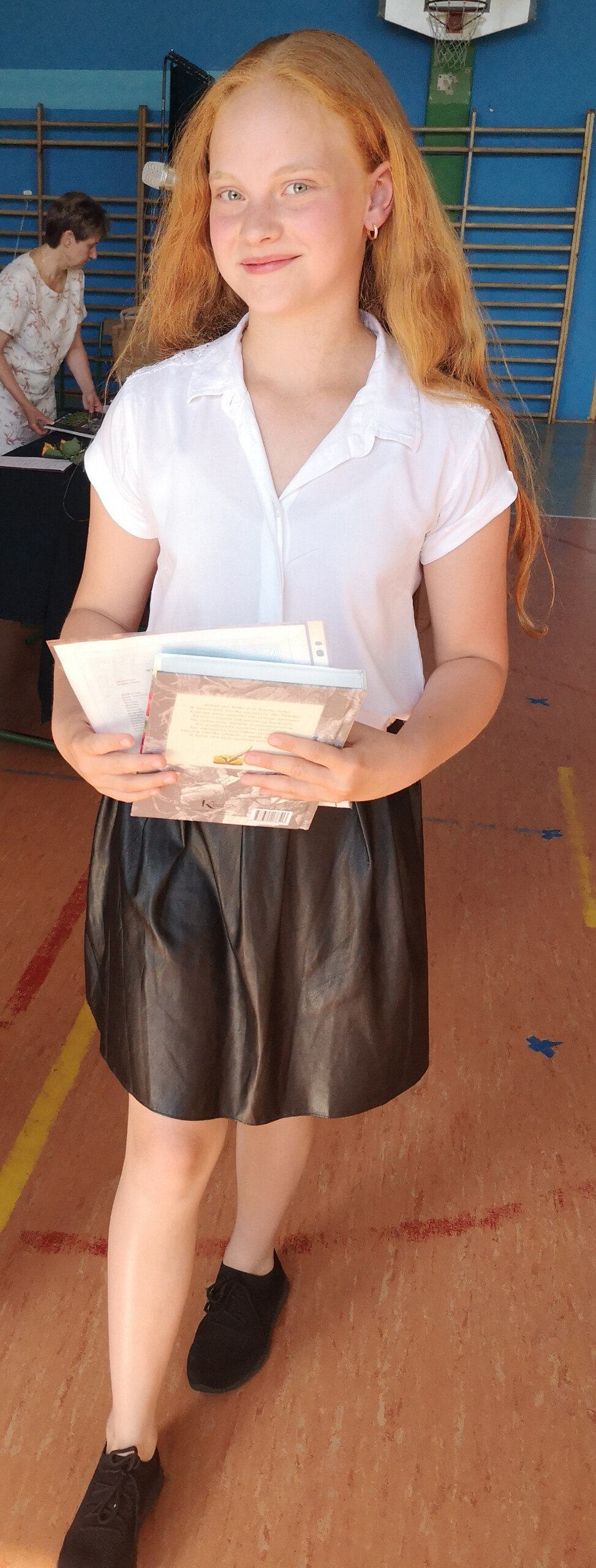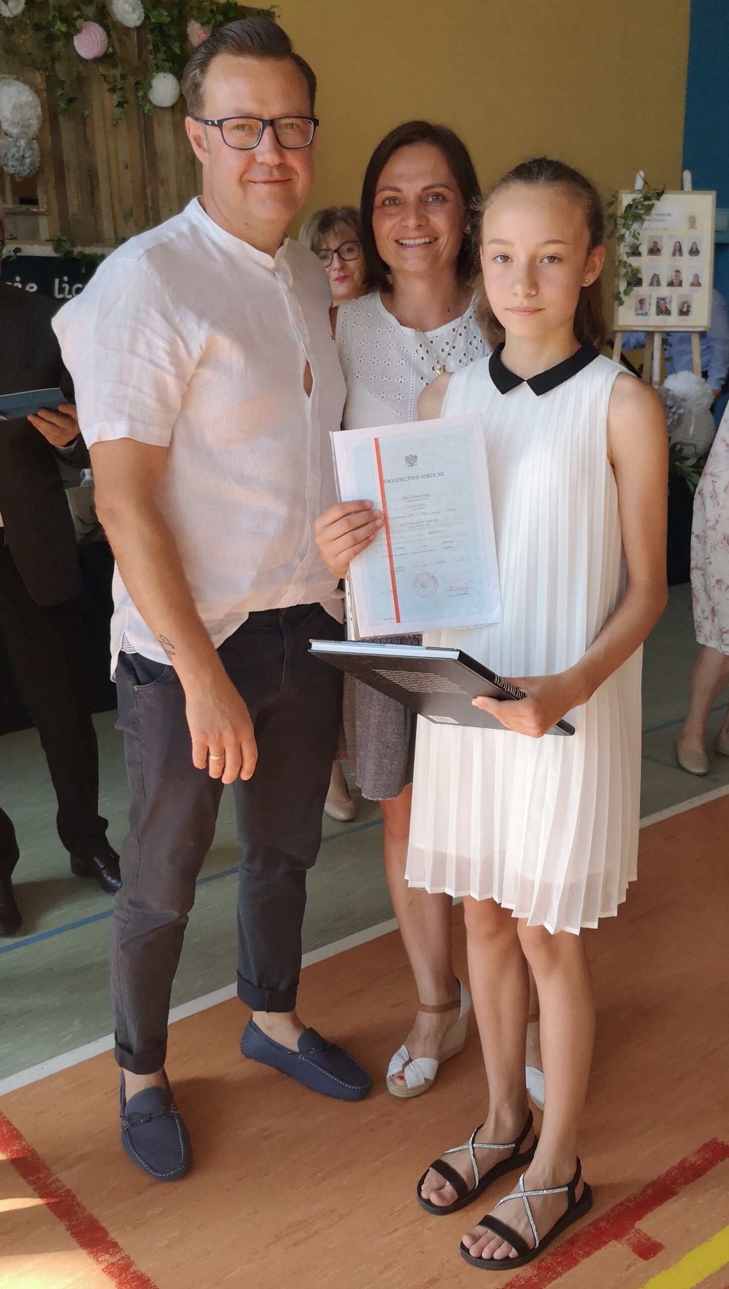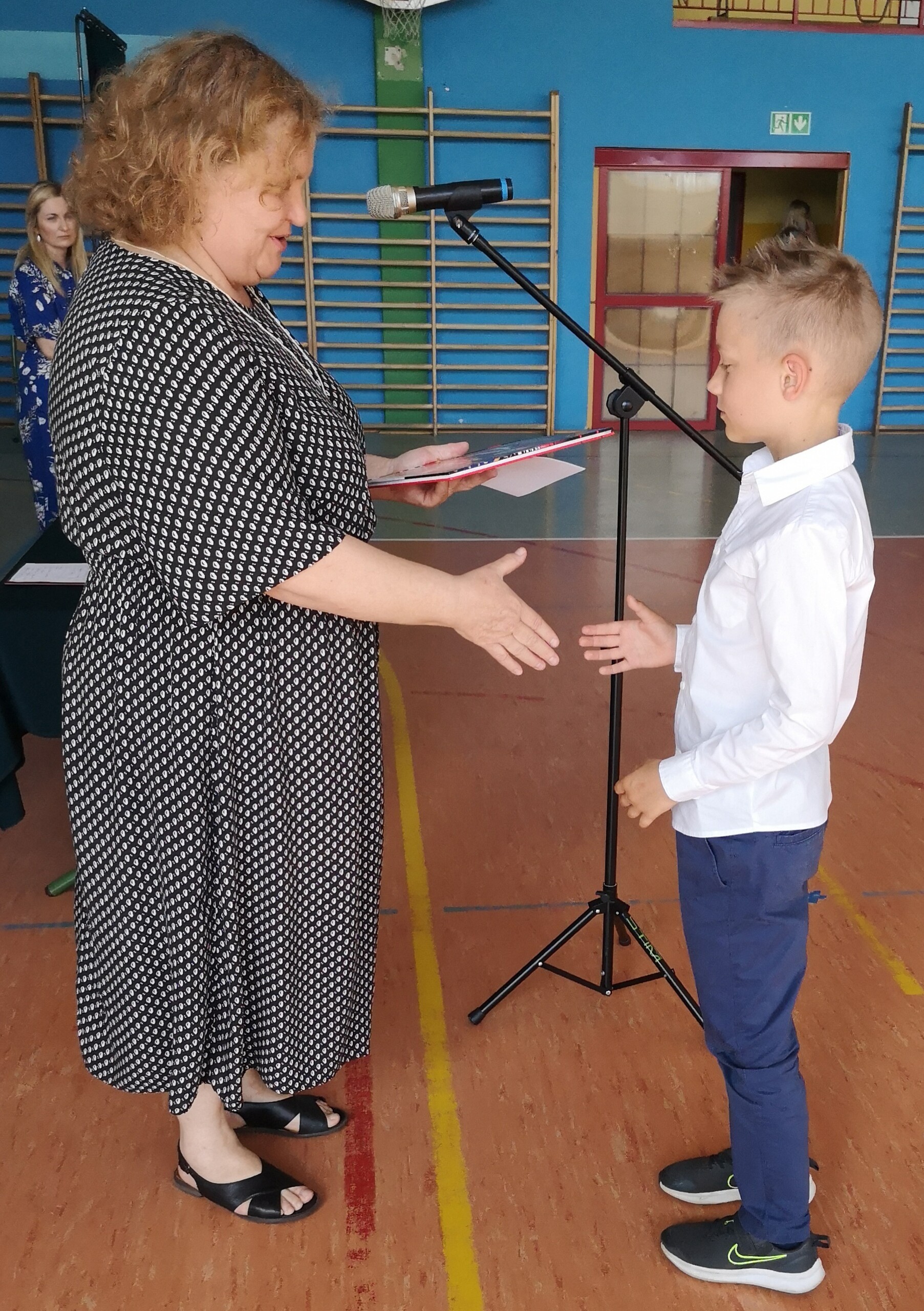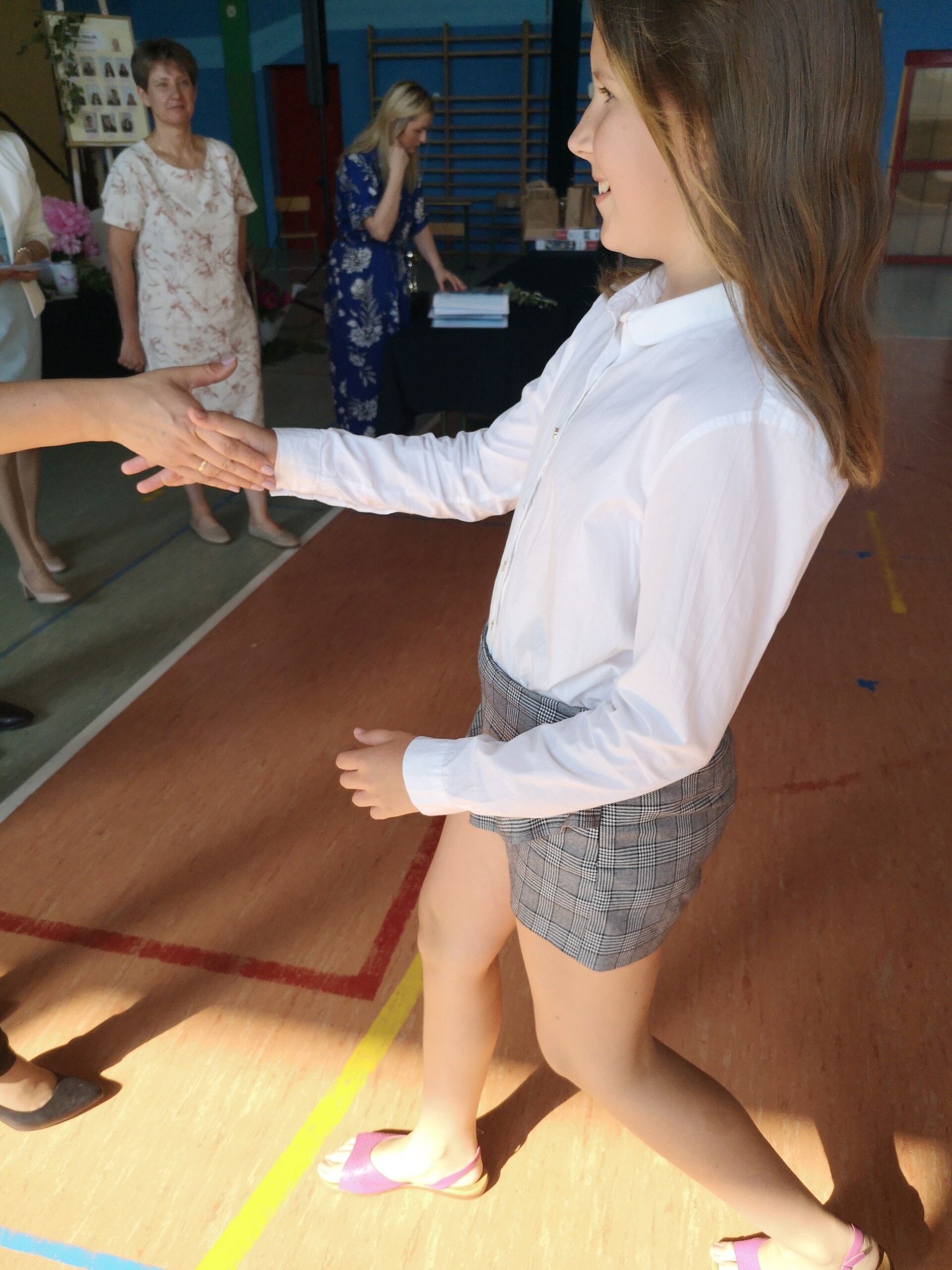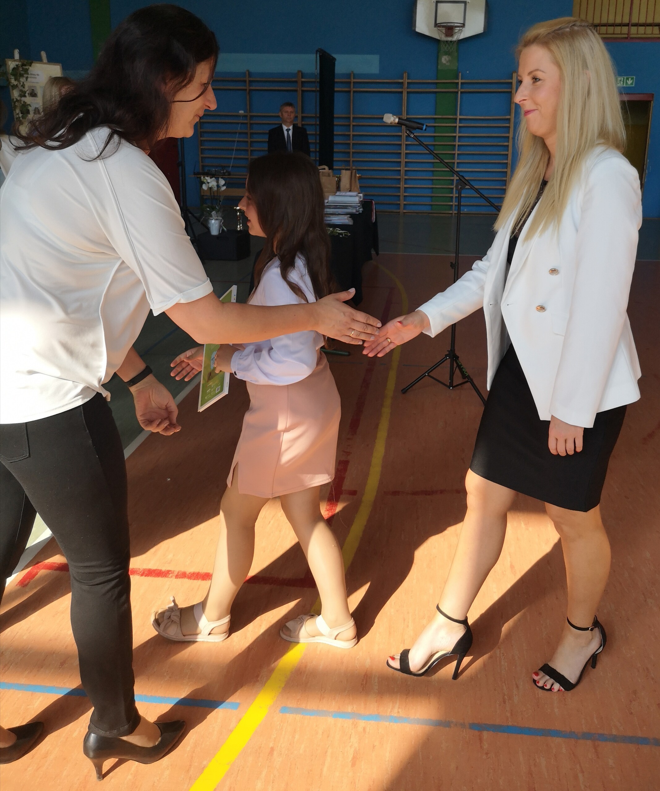Po tej szczególnej chwili nastąpiło uroczyste wręczenie świadectw i nagród uczniom wyróżniającym się w nauce, listów gratulacyjnych i podziękowań dla rodziców oraz nagród laureatom konkursów szkolnych, gminnych, powiatowych i ogólnopolskich. Od wielu lat przyznajemy wyróżnienia wychowawcze. W tym roku szkolnym tytuł „Uczeń z klasą” otrzymała Alicja Stanuch z klasy VIIIa, „Reprezentant szkoły” otrzymali: Zofia Brokowska z klasy VII, Julia Folga z klasy VI i Pola Sterkowicz z klasy IV. Uczeń klasy VII Michał Twardowski za osiągnięcia sportowe, a przede wszystkim w Wojewódzkich Igrzyskach Młodzieży nagrodzony został tytułem „Sportowiec roku”. Na ten sam tytuł zasłużyła Alicja Stanuch za wybitne osiągnięcia na ogólnopolskich arenach sportowych. Wręczono również medale i puchary wyróżniającym się wolontariuszom i sportowcom.
