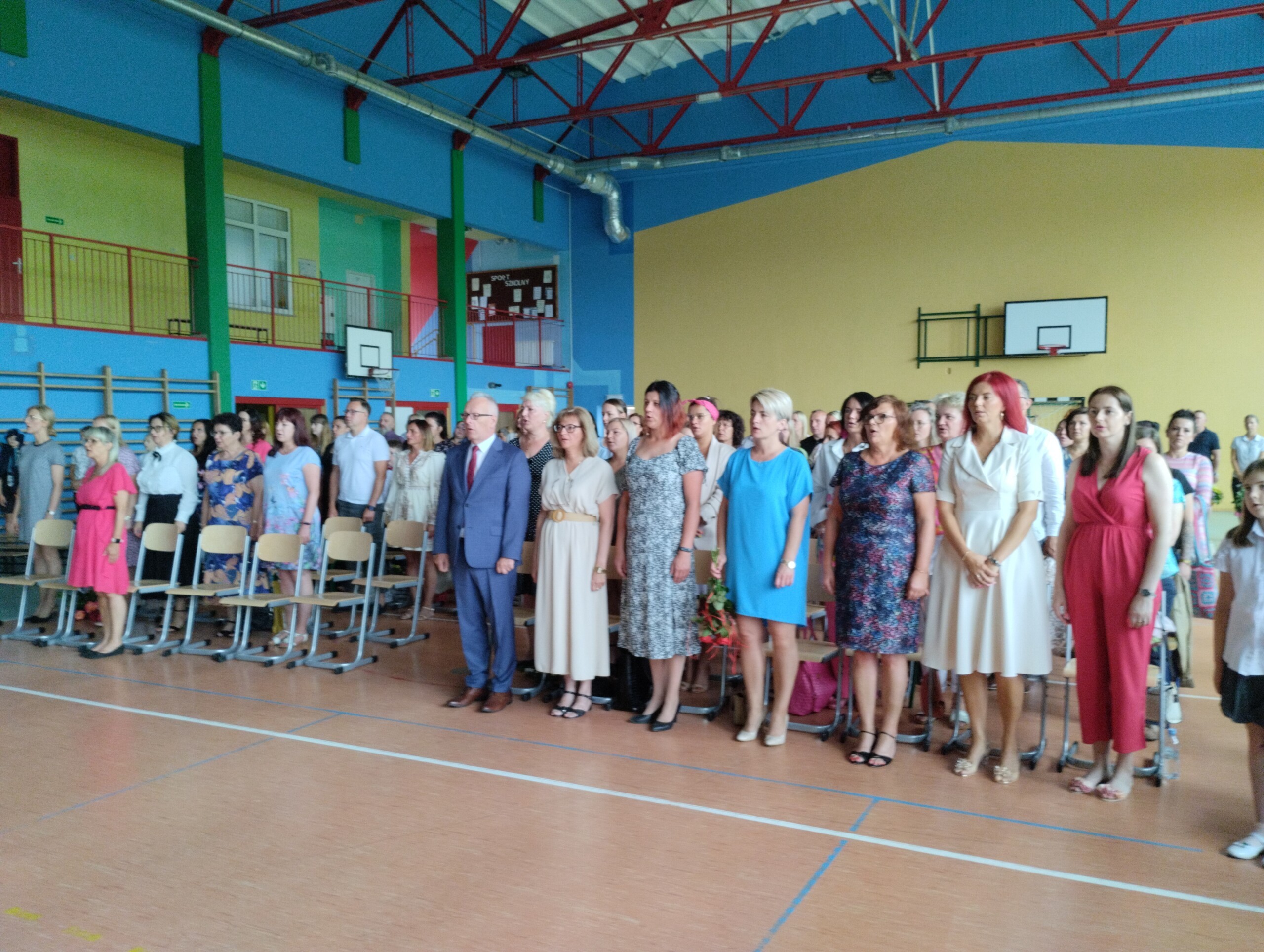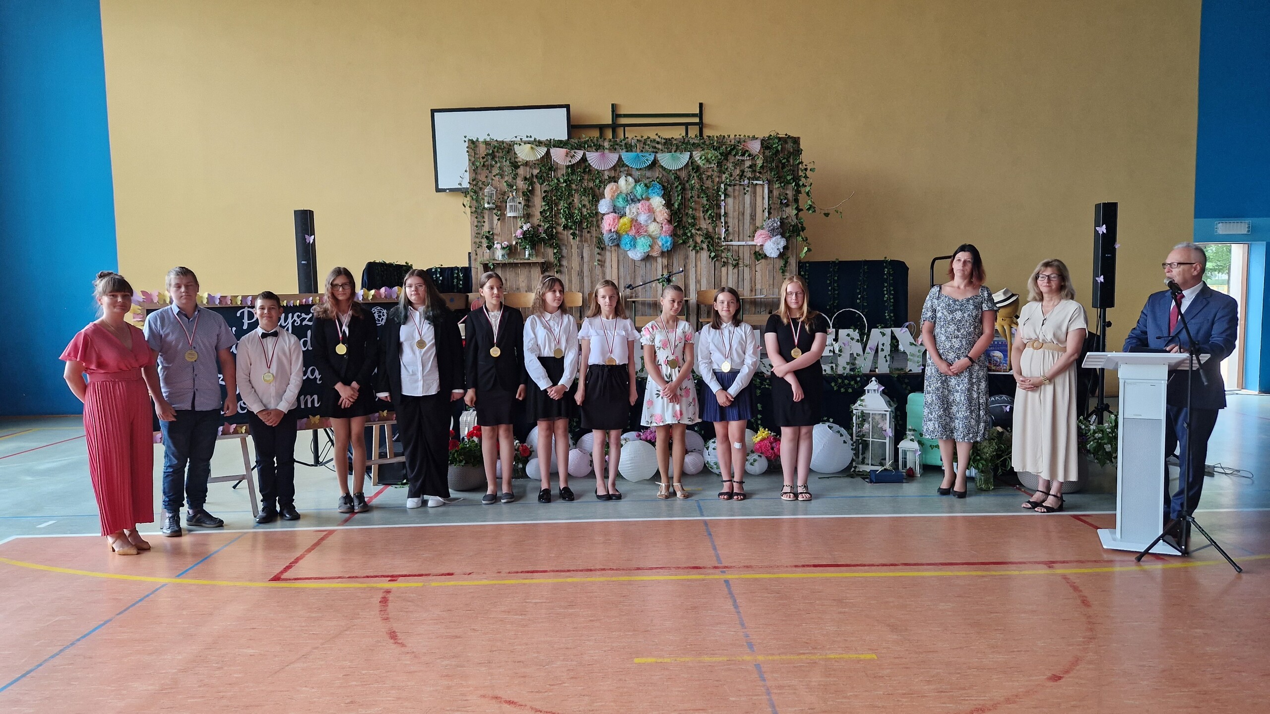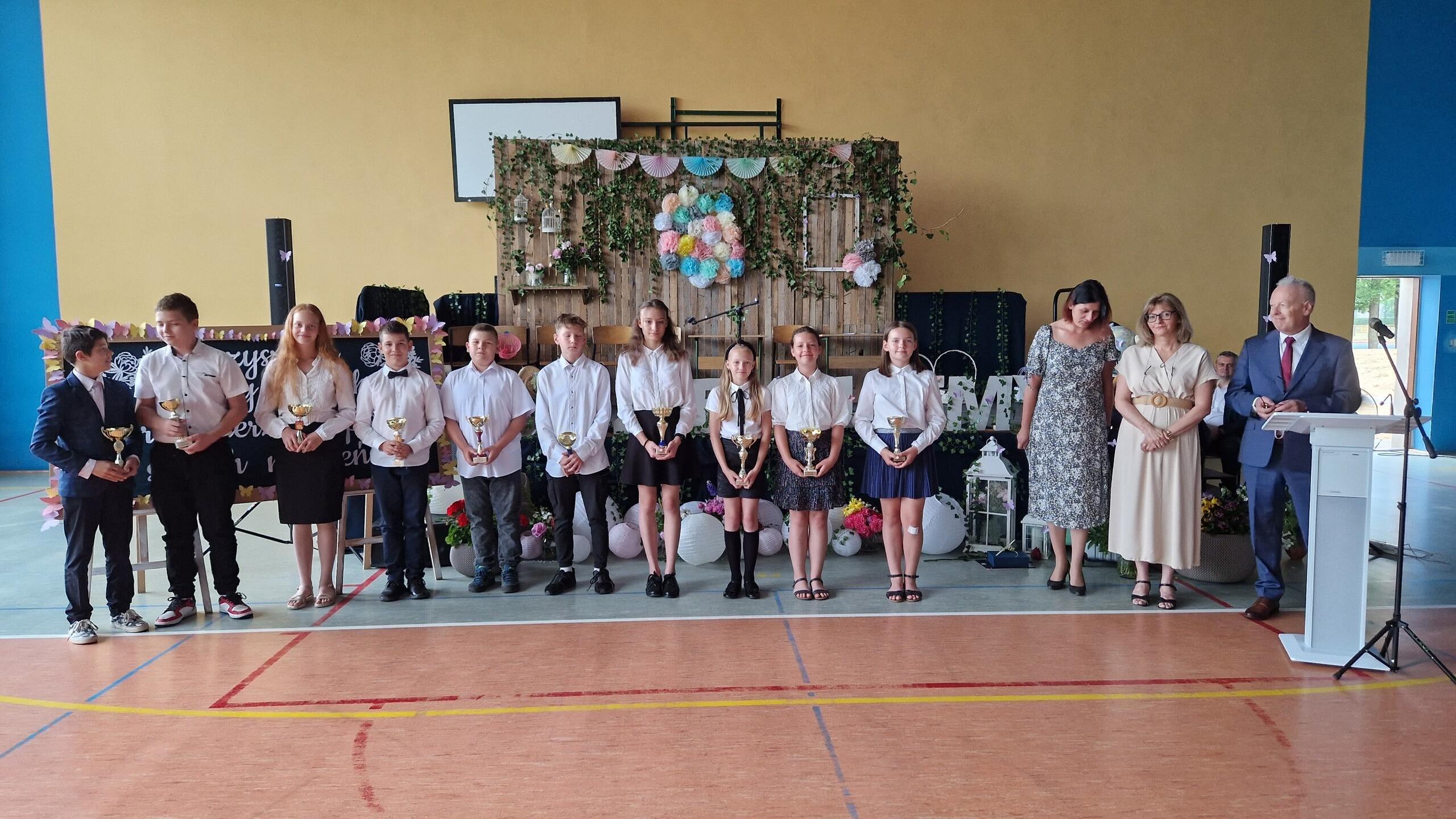 23 czerwca 2023r. zakończyliśmy rok szkolny 2022/2023. Na uroczysty apel przybyli uczniowie, ich rodzice, nauczyciele , pracownicy szkoły oraz zaproszeni goście. Dyrektor szkoły Krzysztof Wojtysiak powitał wszystkich przybyłych. Podziękował uczniom, nauczycielom i wszystkim pracownikom szkoły za ich sumienną i rzetelną pracę, za wytrwałość, serce, zaangażowanie i cierpliwość w podejmowaniu wyzwań edukacyjnych. Szczególne podziękowania złożył rodzicom i osobom, dzięki którym udało się zrealizować wiele działań na rzecz szkoły i środowiska lokalnego. Swoje słowa skierował również do uczniów. Życzył im udanych i bezpiecznych wakacji, pełnych wrażeń i słonecznej pogody. Aby w trakcie ich trwania nabrali siły i energii na nadchodzące od września wyzwania.