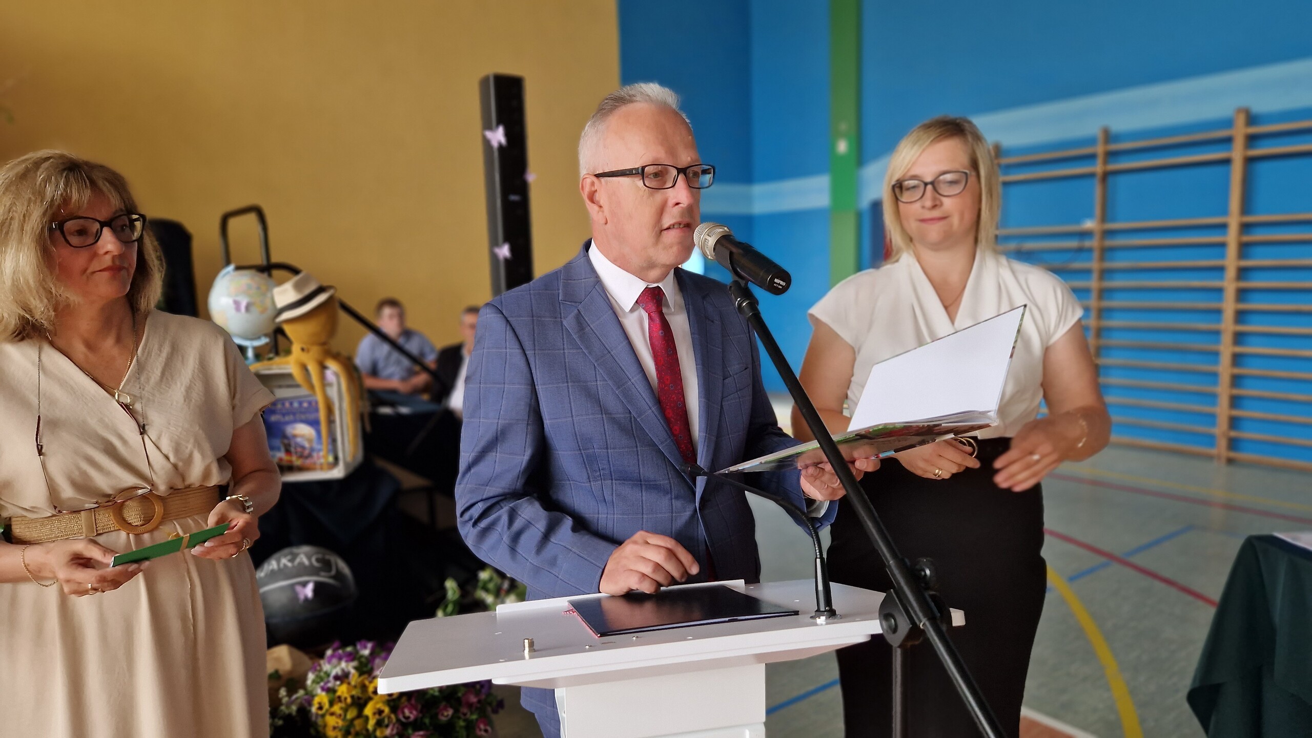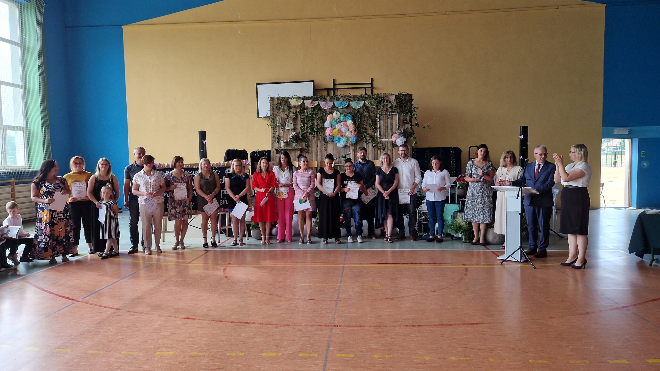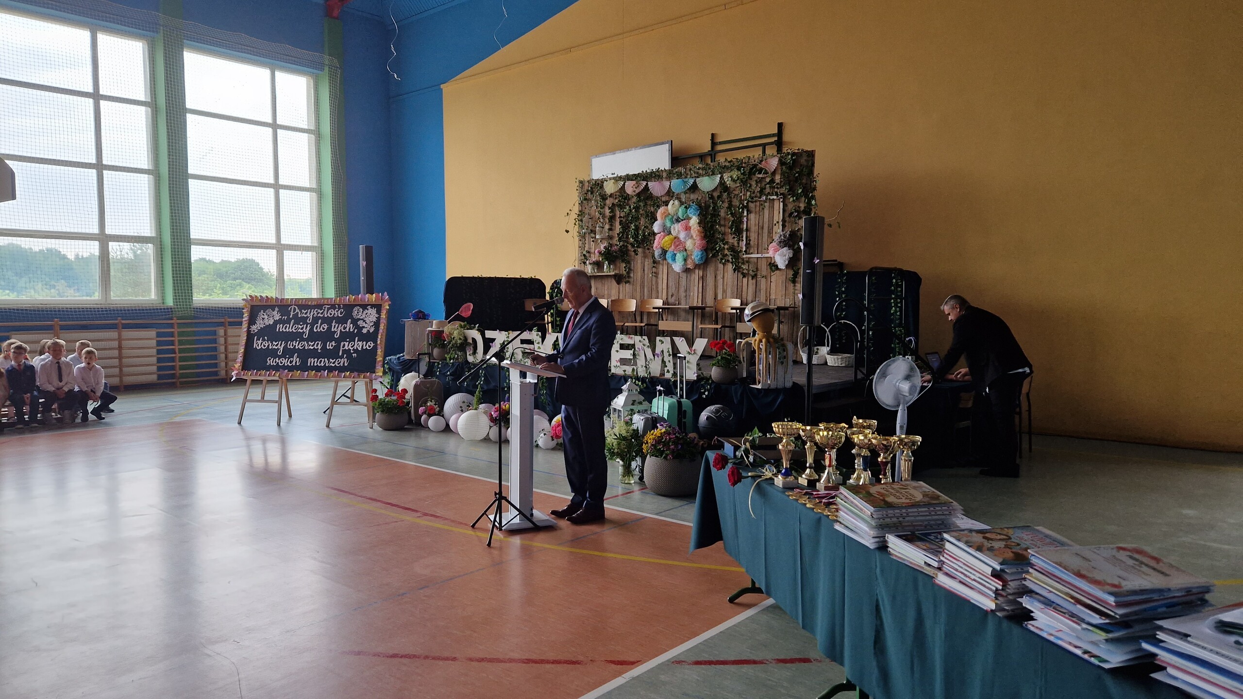 23 czerwca 2023r. zakończyliśmy rok szkolny 2022/2023. Na uroczysty apel przybyli uczniowie, ich rodzice, nauczyciele , pracownicy szkoły oraz zaproszeni goście. Dyrektor szkoły Krzysztof Wojtysiak powitał wszystkich przybyłych. Podziękował uczniom, nauczycielom i wszystkim pracownikom szkoły za ich sumienną i rzetelną pracę, za wytrwałość, serce, zaangażowanie i cierpliwość w podejmowaniu wyzwań edukacyjnych. Szczególne podziękowania złożył rodzicom i osobom, dzięki którym udało się zrealizować wiele działań na rzecz szkoły i środowiska lokalnego. Swoje słowa skierował również do uczniów. Życzył im udanych i bezpiecznych wakacji, pełnych wrażeń i słonecznej pogody. Aby w trakcie ich trwania nabrali siły i energii na nadchodzące od września wyzwania.
