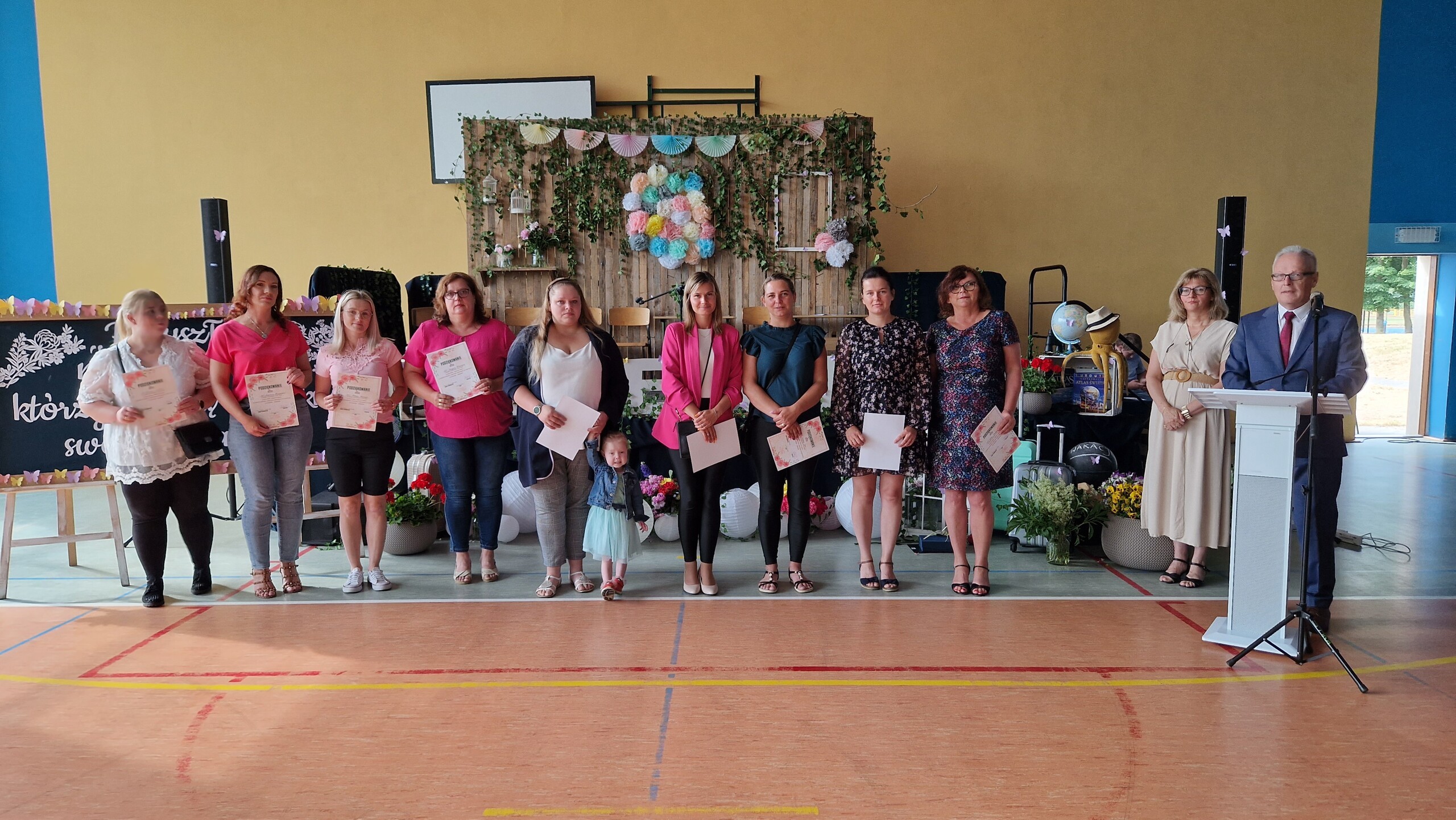 Po przemówieniu nastąpił uroczysty moment wręczenia statuetek i certyfikatów „Przyjaciel szkoły”. W tym roku szkolnym Kapituła funkcjonująca przy Zespole Szkół im. Jana Pawła II w Łebieniu przyznała tytuł „Przyjaciel szkoły” w uznaniu za bezinteresowne działania na rzecz szkolnej społeczności, w podziękowaniu za liczne inicjatywy, wsparcie w realizacji zadań podejmowanych przez naszą szkołę Emilii Stanuch, Sylwii Twardowskiej i Krzysztofowi Górlikowskiemu. Podczas wręczania owacjom nie było końca.